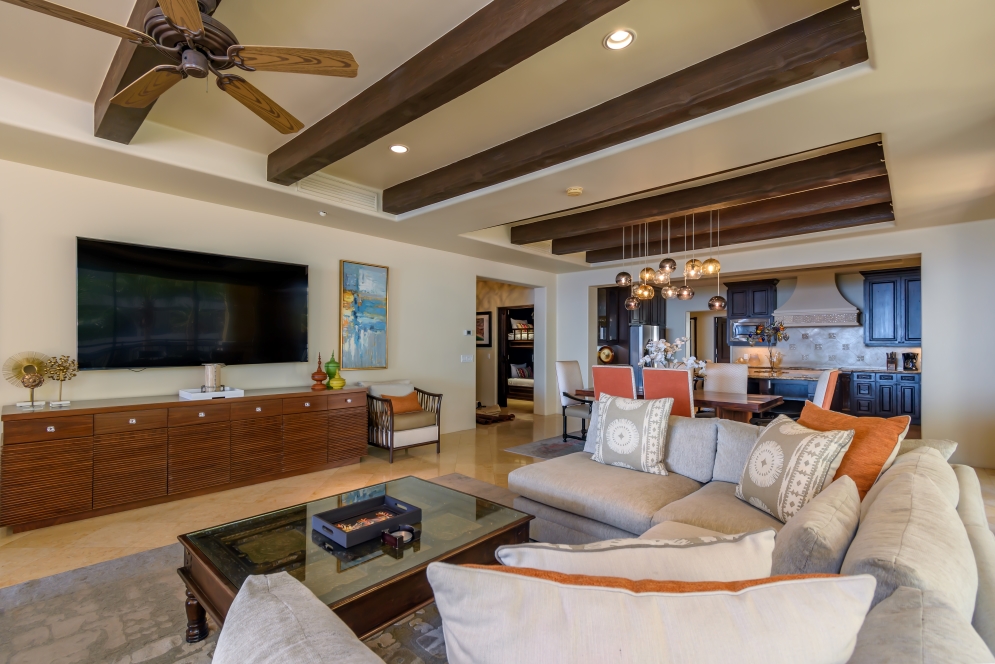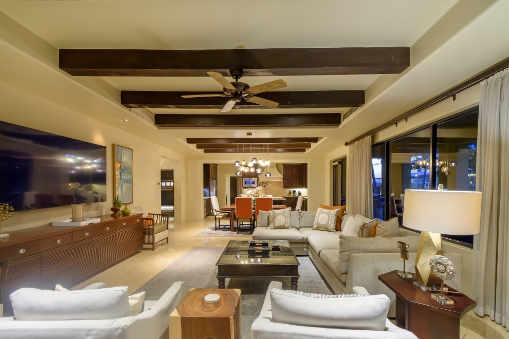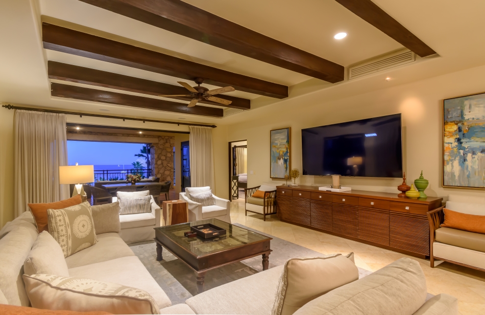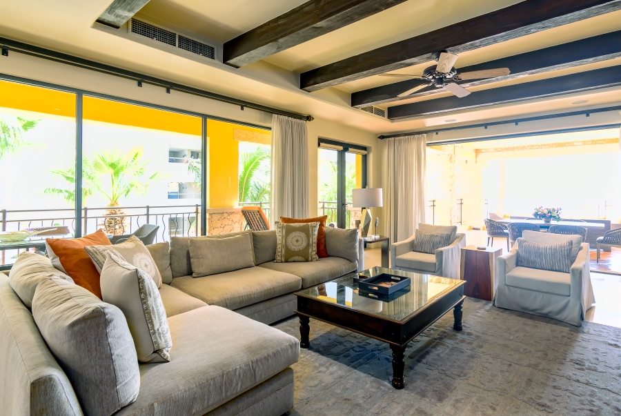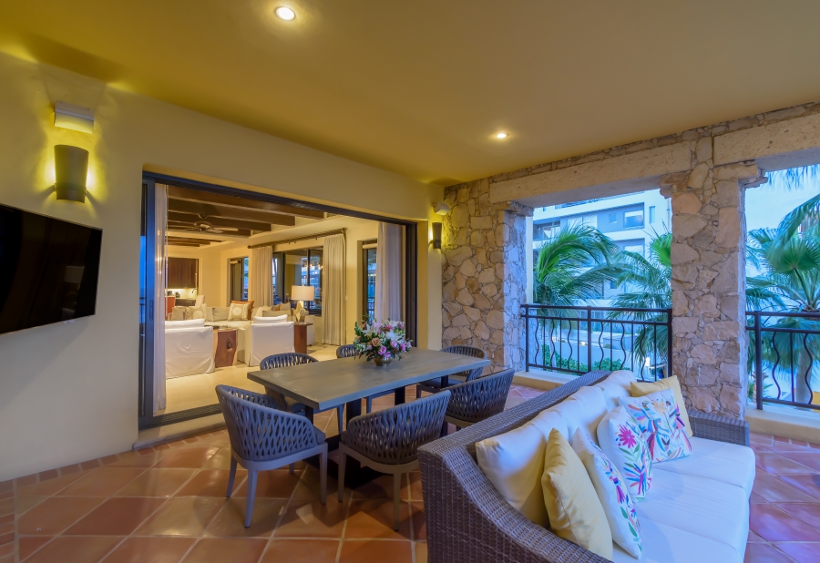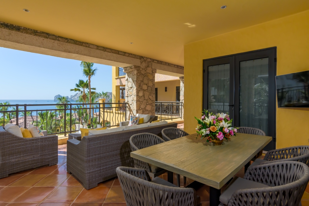 Welcome to paradise at Hacienda Beach Club & Residences! This stunning three-bedroom residence offers an exceptional living experience in one of Cabo San Lucas's most coveted communities. Floor-to-ceiling windows flood the space with natural light and offer panoramic views of the Sea of Cortez and Land's End. The gourmet kitchen, complete with a granite island, is perfect for gatherings. Enjoy movies or sports on the 85-inch flat-screen TV in the living room or on the expansive terraces. With access to the renowned Médano Beach, the exclusive Beach Club, two infinity pools, jacuzzi, and a pool bar, there's no shortage of luxury amenities. The 24-hour concierge service ensures worry-free living, while the gated community offers security and privacy. Just minutes from the marina, restaurants, nightlife, and Cabo Airport, this residence is the epitome of coastal living. Discover luxury at Hacienda Beach Club & Residences!