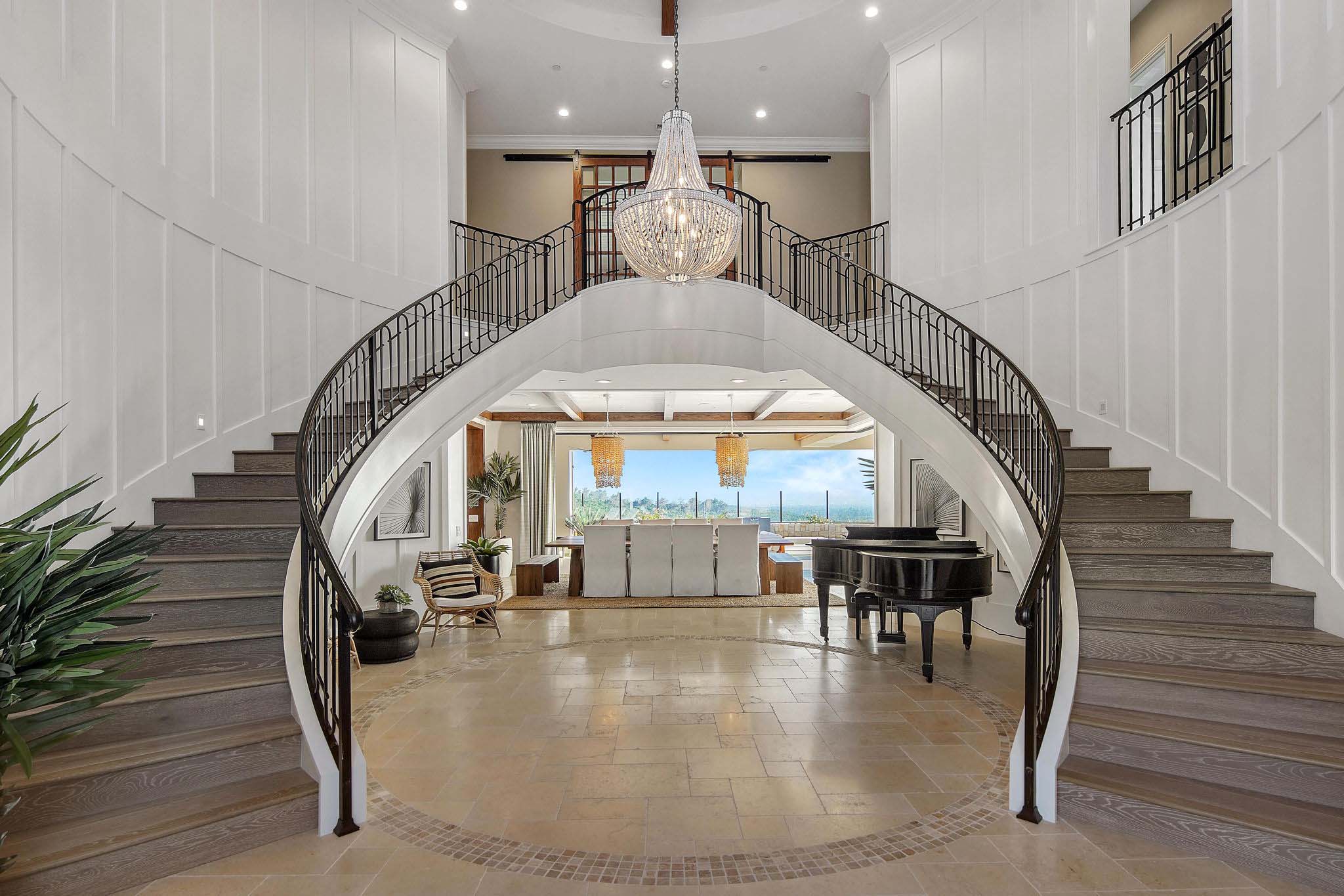 Arguably the most impressive property ever built in Irvine. An exceptional offering that combines the ultimate in interior finishes and exterior amenities, all located within the prestigious 24-hour gated community of The Grove at Orchard Hills. Recently built in 2019 on a corner lot with only one neighbor, the home impresses with a soaring foyer with dual curved staircases framed by incredible panoramic city and canyon views. Rustic exposed wood-beamed ceilings highlight the open living and dining areas, with sliding floor-to-ceiling allowing a plethora of natural light. An unparalleled transition of indoor/outdoor living, the current owners spent $1.5 million on a one-of-a-kind entertainer's yard boasting a conversation pit with built-in fireplace surrounded by a massive wrap-around infinity-edge resort-style pool and spa, multiple fire features, grassy yard, outdoor kitchen, and multiple lounging areas. The chef's kitchen is replete with dual islands with built-in breakfast bar seating and top-of-the-line Wolf appliances. Upstairs the oversized primary retreat showcases a see-through dual-sided fireplace with separate living area, stunning coffered ceilings, private balcony, and a spa-like ensuite bathroom with double vanity sinks and large custom walk-in closet. 4 additional guest bedrooms with ensuite baths and ample space, all of which are centered by a generous bonus room and covered view deck. Experience the utmost in contemporary living within a convenient location, top-rated schools, unmatched quality and design, and high-efficiency upgrades including solar panels. 4-car garage.