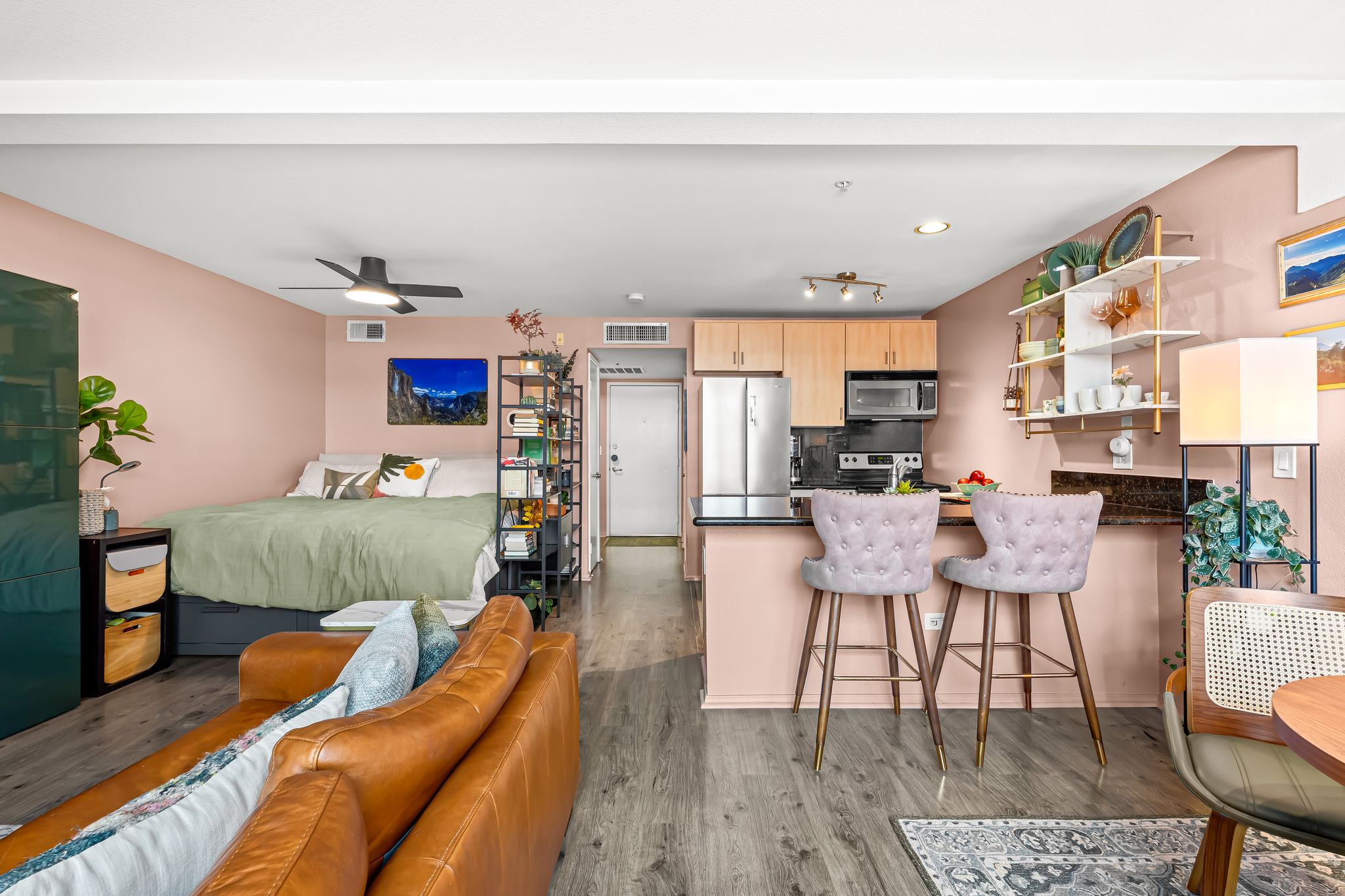 Welcome to your chic, spacious Marina District studio straight out of a magazine spread. Perfectly positioned in the highly sought-after Marina District of Downtown San Diego, this gem puts you at the center of it all. With over 500 square feet of stylish living space, this home offers everything you need to embrace vibrant city living. The thoughtfully designed kitchen boasts stainless steel appliances, including refrigerator, microwave, dishwasher, AND the ultimate urban luxury: a newer Samsung washer and dryer IN-UNIT. Also featured is a spacious custom closet, just shy of a walk-in, adding both style and functionality. This hidden gem is exactly what you’ve been looking for. You’re less than 10 blocks from the iconic Padres Stadium (Petco Park) and within walking distance to an endless array of restaurants, bars, coffee shops, fitness studios, shopping, entertainment, Seaport Village, the Convention Center, and more. The gorgeous Atria community offers a collection of beautiful and convenient amenities, including a 24-hour fitness center, on-site security, a professional conference room, and a stunning 4th-floor terrace complete with lounge seating, a BBQ area, and a cozy, atmospheric fireplace, all set against breathtaking views of the Downtown San Diego skyline. Additional features include a designated bike storage area and a secure package room for your convenience. FHA and VA approved! VA assumable loan opportunity: lock in 2.875%!