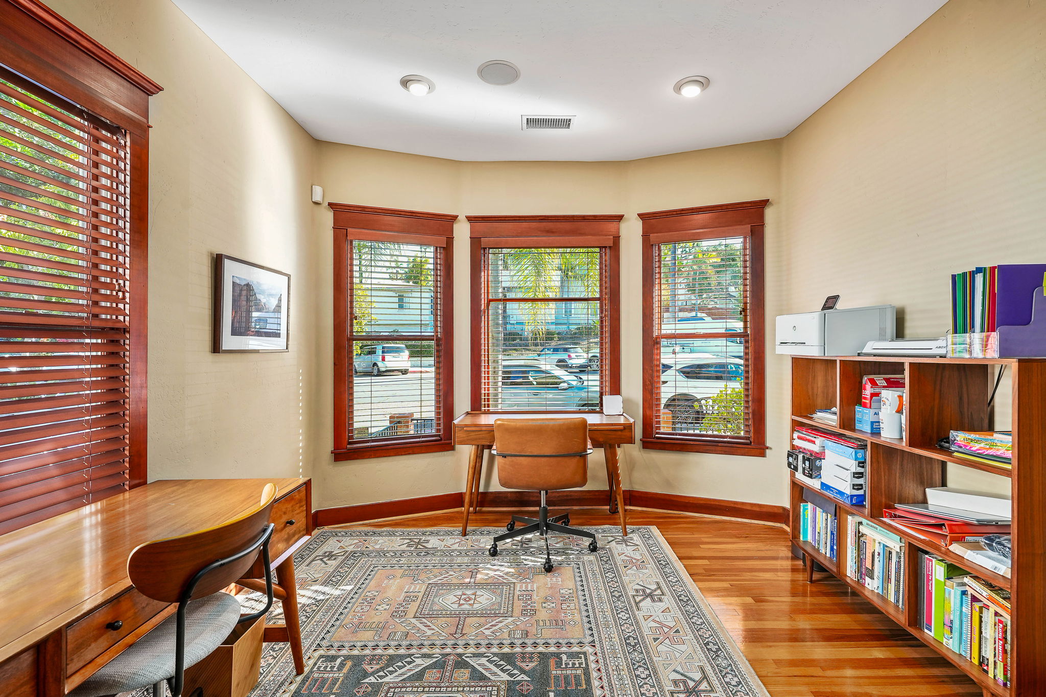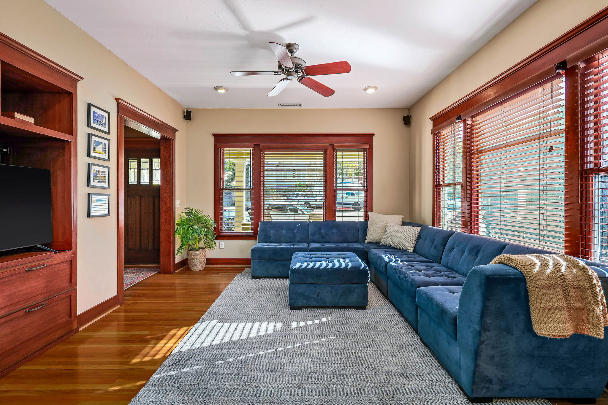 Step into the embrace of this lovingly restored 1929 Craftsman home boasting city views and additional ADU. Effortlessly weaving together the threads of history with the convenience of modern comfort, the home combines classic features such as stunning hardwood floors, intricate wood trim, and stylish built-ins, with modern upgrades including granite countertops, stainless steel appliances, new plumbing, and solar panels. The main house is replete with four bedrooms, with a versatile space that easily transforms into a fifth. The deck, adorned with freshly stained wood, offers a serene vantage point to soak in the city views. The spacious one-bedroom ADU with its own entrance and patio is perfect for extended family, friends, or additional rental income. Ideally situated with easy access to nearby coffee shops and restaurants. A must-see for even the most discerning buyer seeking a home with character, style, and convenience.