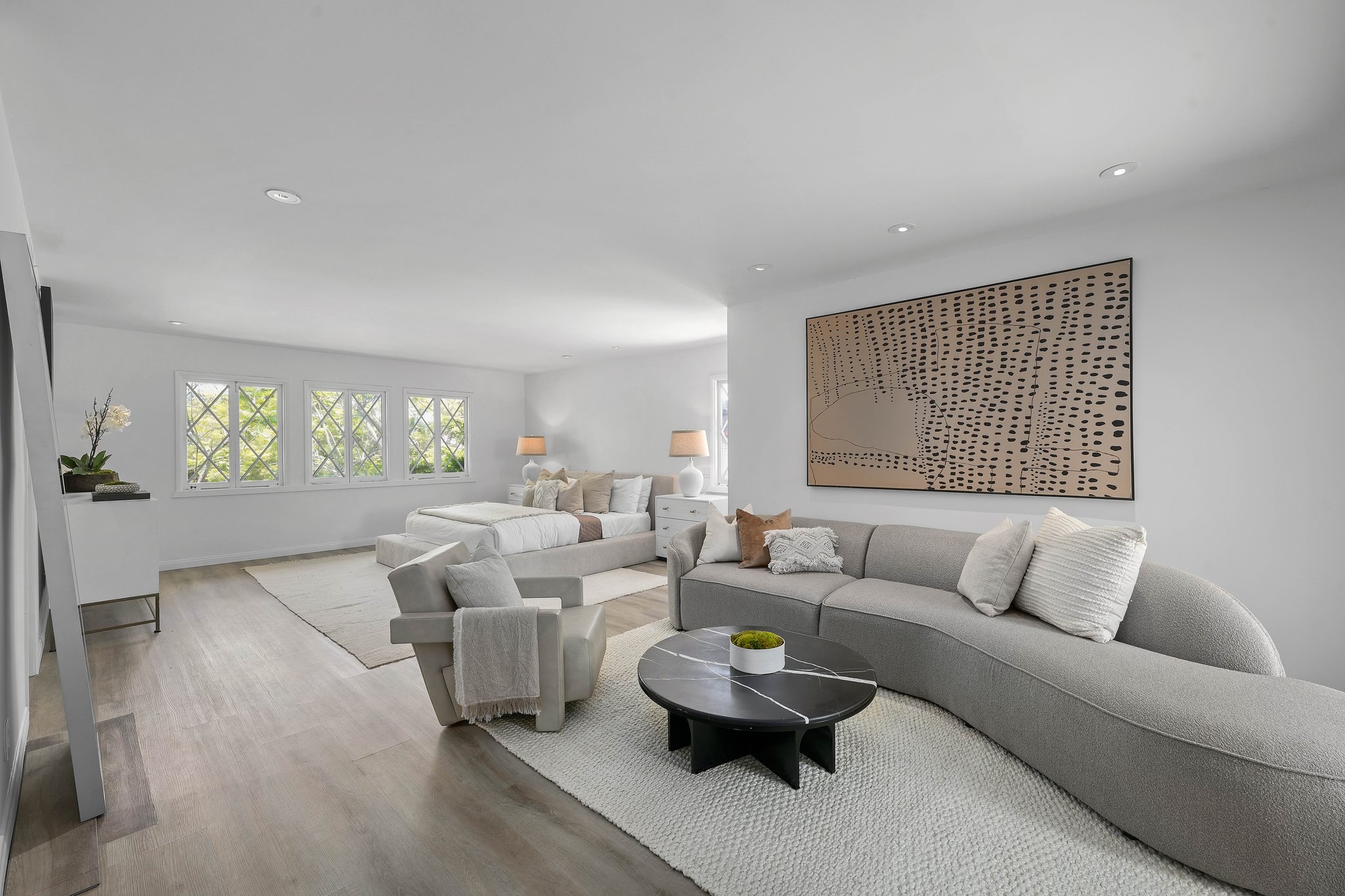 Welcome to this magnificent 4-bedroom, 4-bathroom estate nestled in the prestigious enclave of Bel Air. Spanning an impressive 3,985 sq ft on a generous .31-acre lot, this home exudes luxury and sophistication. As you step inside, you'll be immediately captivated by the breathtaking views that define this property. The expansive family room and cozy den are perfect for both relaxing and entertaining, each offering a front-row seat to the city's iconic skyline. The gourmet kitchen is a culinary masterpiece, featuring top-of-the-line appliances, custom cabinetry, and an oversized island, all framed by stunning views. Whether you're hosting a dinner party or enjoying a quiet evening at home, this space is sure to impress. The primary bedroom is a true retreat, offering a sanctuary of luxury with a spa-like bathroom and a spacious seating area. The remaining three bedrooms are spacious and versatile, providing serene retreats for family or guests. Outside, the property's lush landscaping and serene ambiance create a private oasis. The expansive lot offers endless possibilities for outdoor living and entertaining, from al fresco dining to lounging under the stars. The generously sized pool is perfect for a refreshing dip on warm days or for hosting lively poolside gatherings. This Bel Air gem combines unparalleled views with exquisite design, offering a truly unique and luxurious living experience. Don't miss the opportunity to make this extraordinary home yours. Schedule a private showing today and experience the best of Bel-Air living.