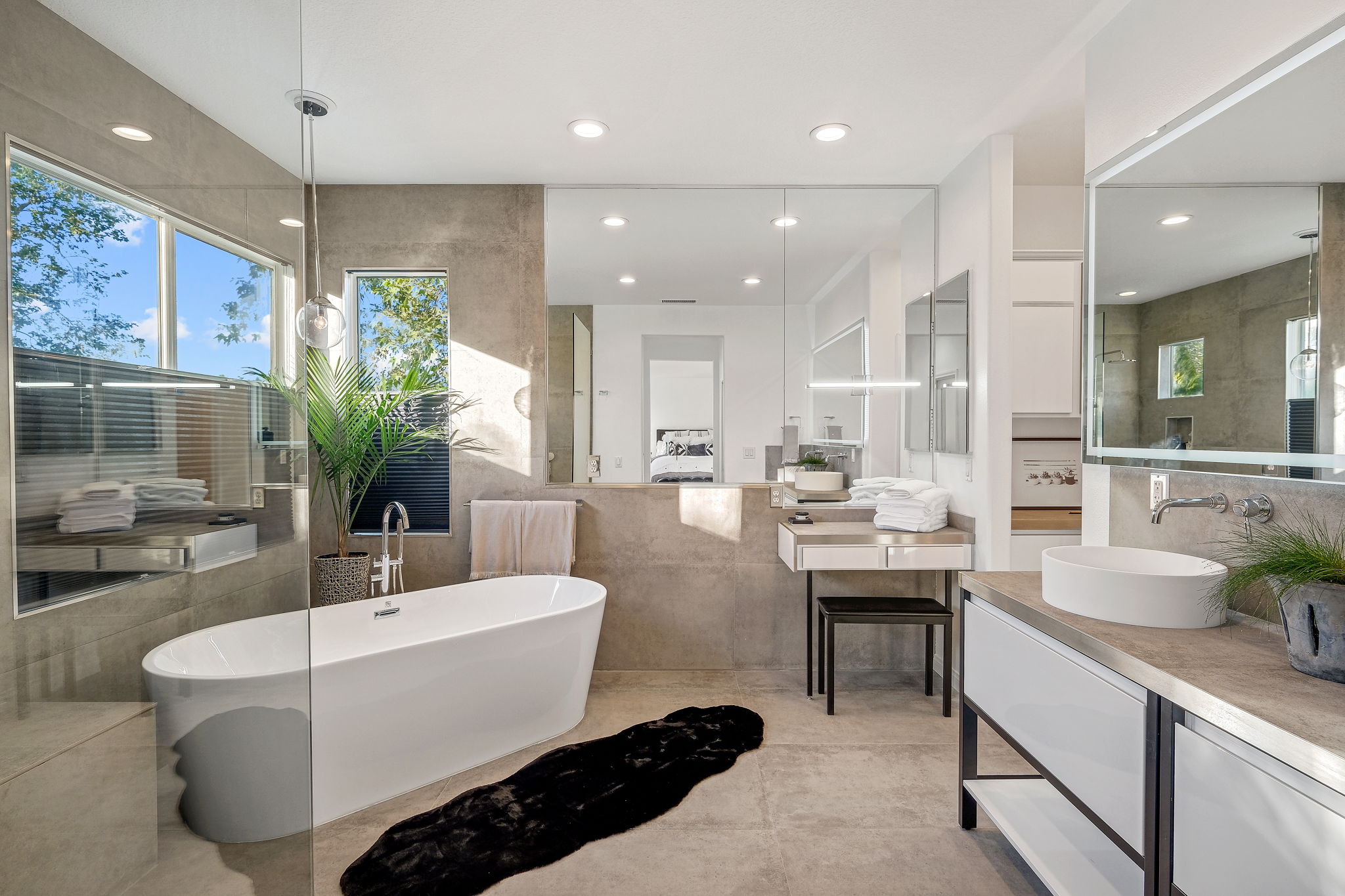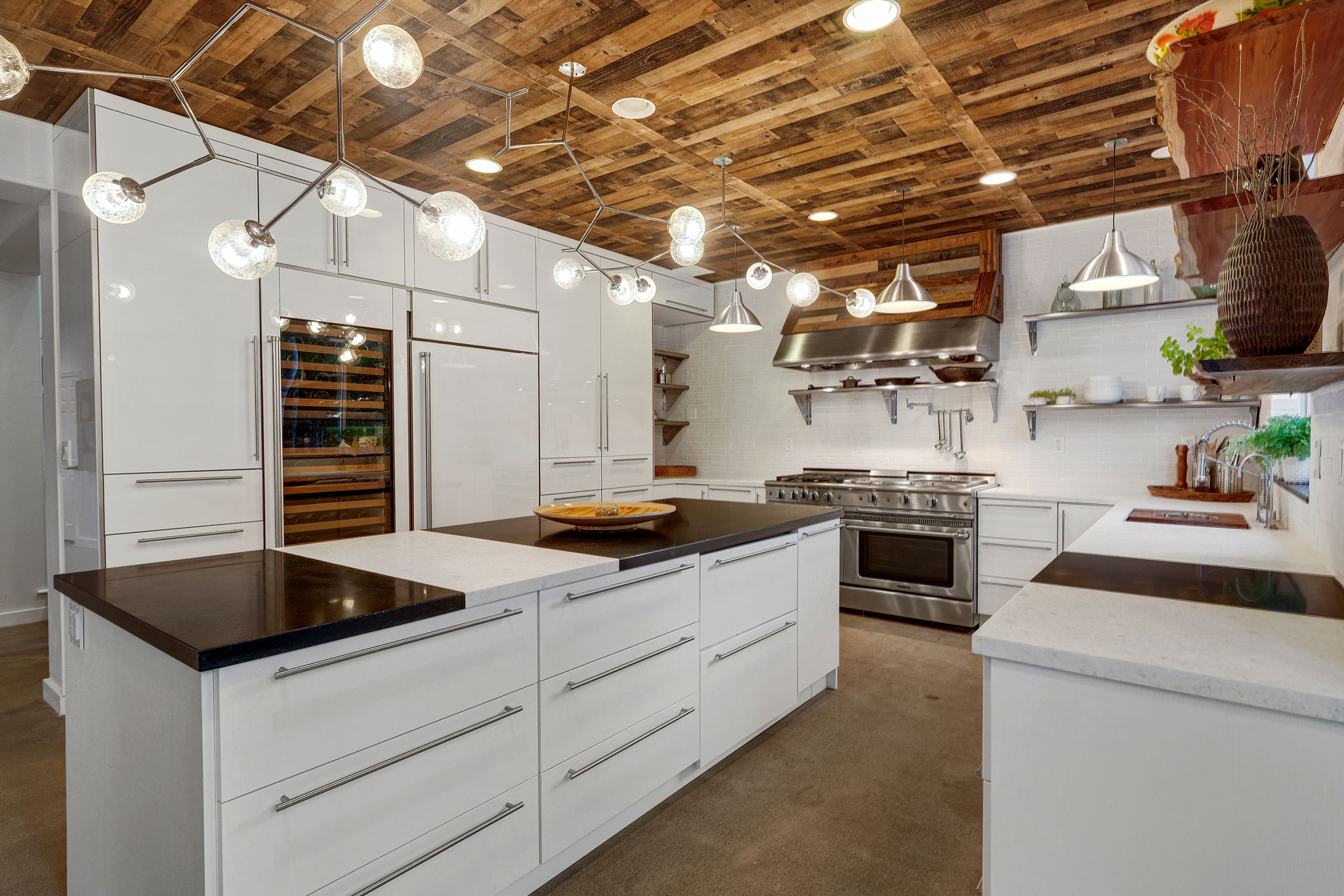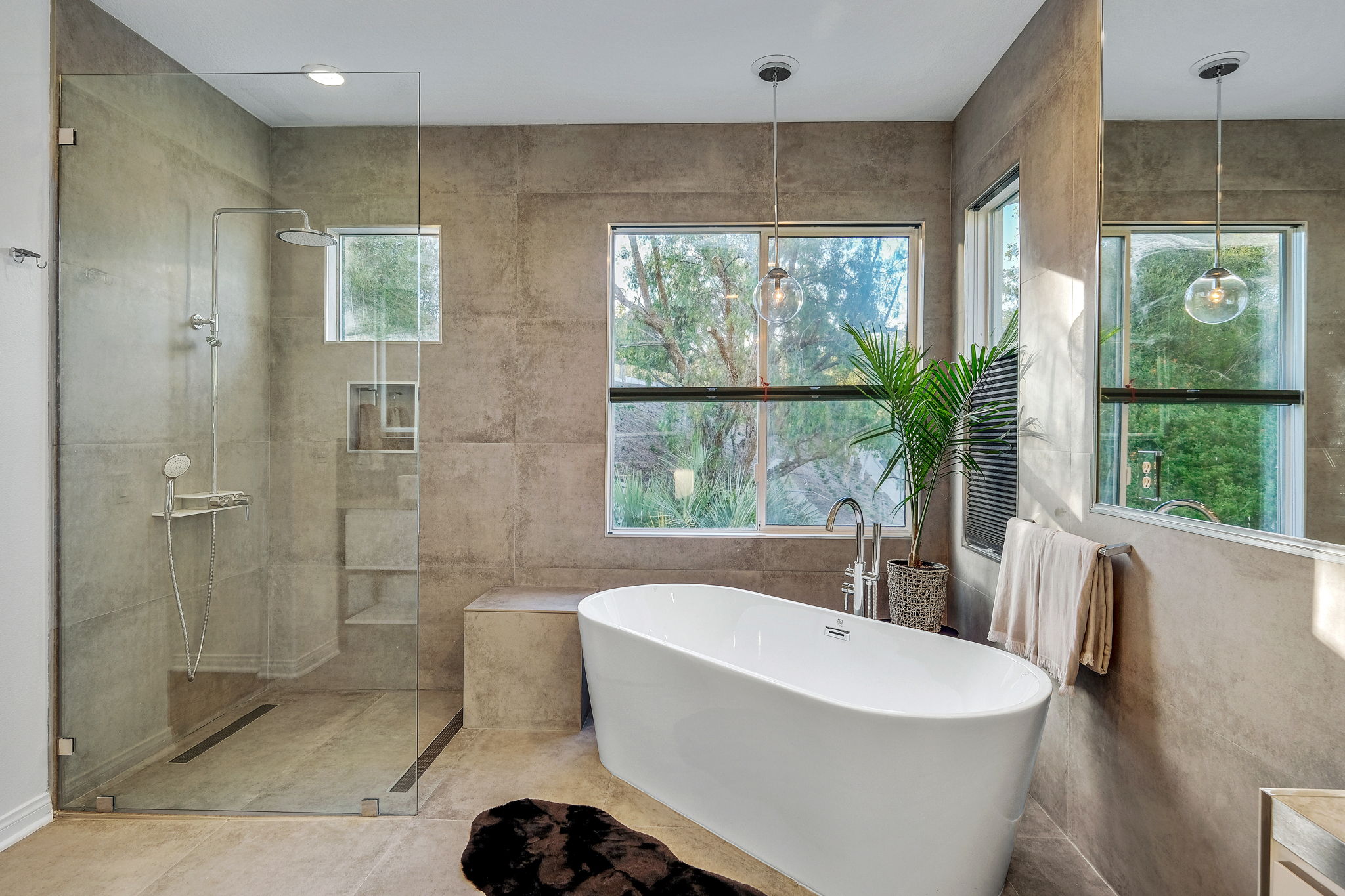 Nestled in the pristine gated community of Oak View Estates in charming Aliso Viejo, this impeccably curated contemporary home boasts a breathtaking entrance with polished concrete flooring, fireplace, soaring vaulted ceilings, and oak flooring throughout. The first floor boasts a generously sized formal dining area and a spacious family room adjacent to the exquisite open concept kitchen with mixed granite and quartz oversized island, top-of-the-line appliances, and a temperature-controlled wine cooler. A completely private and tranquil yard with a pool, spa, and fully-equipped outdoor kitchen is ideal for entertaining. The luxurious owner's suite comes replete with two walk-in closets and a spa-like bathroom with a free-standing tub and walk-in shower. Four additional bedrooms with one of them enjoying its own en-suite bathroom and large balcony. Attached 3-car garage and oversized driveway.