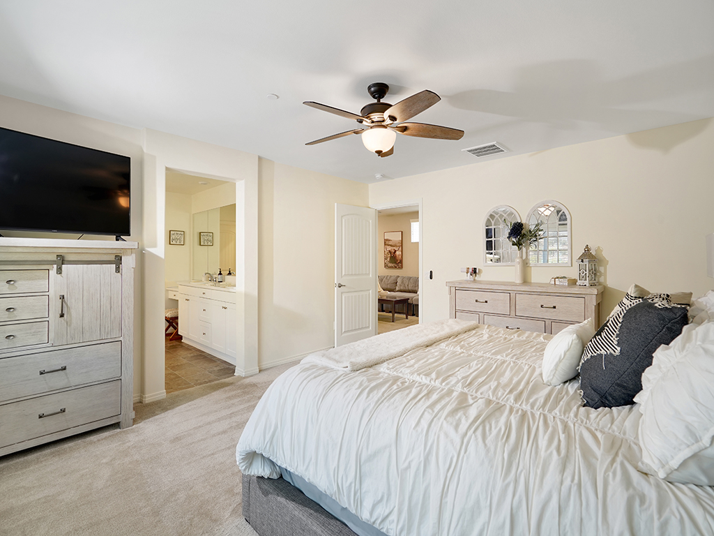 Nestled in the beautiful community of Sycamore Creek, this immaculate 4 bed/2.5 bath, 2,809 sq. ft. home is the perfect family abode. The newly landscaped front garden and smart entry set an impressive tone that continues throughout this Lennar Smart Home. This beautifully maintained property enjoys an expansive kitchen with granite countertops, an oversized island, and stainless steel appliances throughout, including a double oven, 5 burner gas stove, farmhouse sink, and separate sizable pantry. The open-concept first floor also boasts a spacious dining room and great room areas off of the kitchen with a gas fireplace and an abundance of natural light with sliding doors opening out to the large, private back garden. The first floor of this property has an office with a closet (5th bedroom if desired), a separate powder room, and entry to the 2-car garage with epoxy flooring and built-in storage. On the upper level of this beautiful home, the sweeping owner's suite enjoys mountain views and an accompanying en-suite with double vanity, tub and separate shower, and substantial walk-in closet. 3 further generously sized bedrooms, family bath, large laundry room, and cozy family room completes this wonderful home.