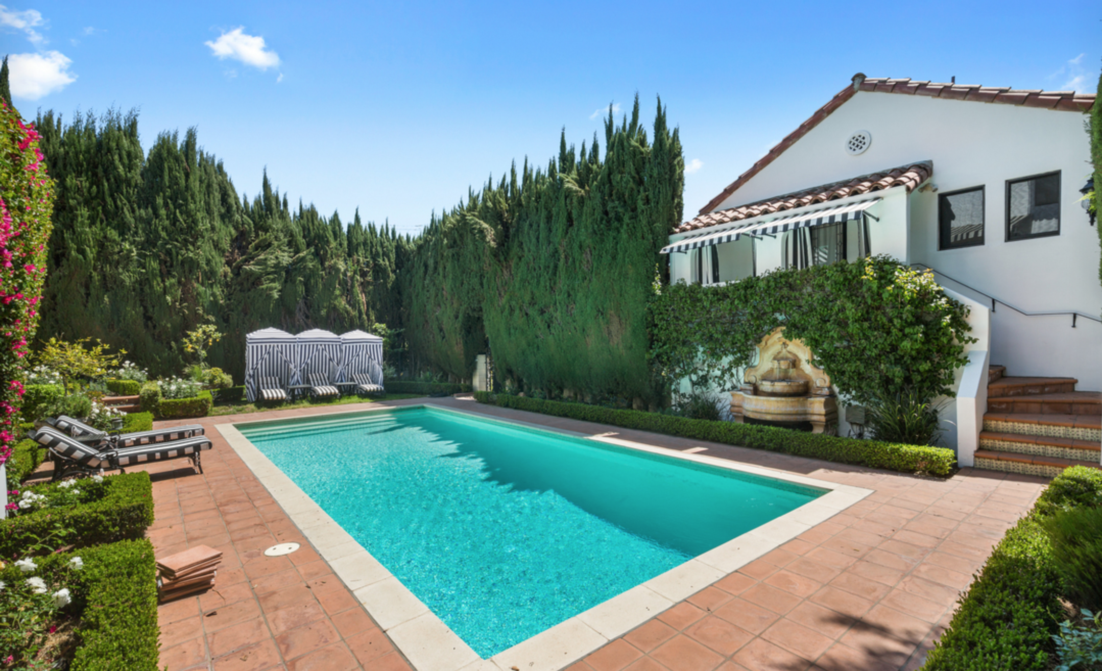 Located on a lot extending street-to-street, this stately Mediterranean home is truly a private compound. The home sits behind gates at both the front and back entrances to the property. The main house offers a lavish, classic, ambiance throughout. A large formal living room, chef's kitchen, breakfast room, and outdoor dining make this home an exquisite place to entertain. The rambling backyard features a very large pool with plenty of space to lounge and enjoy the sun. A generous guest house sits above the detached parking garage. This grand property is a must see.