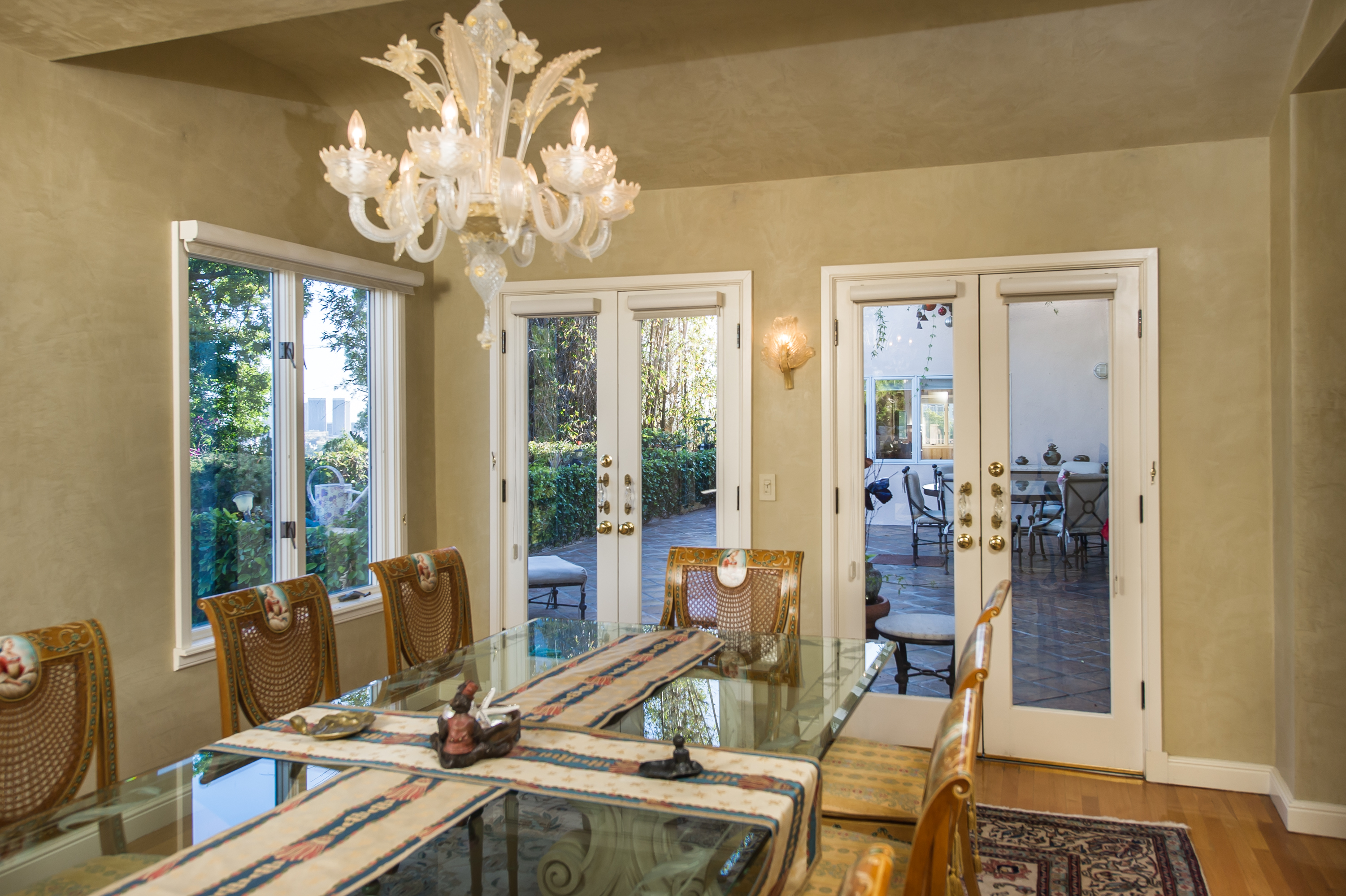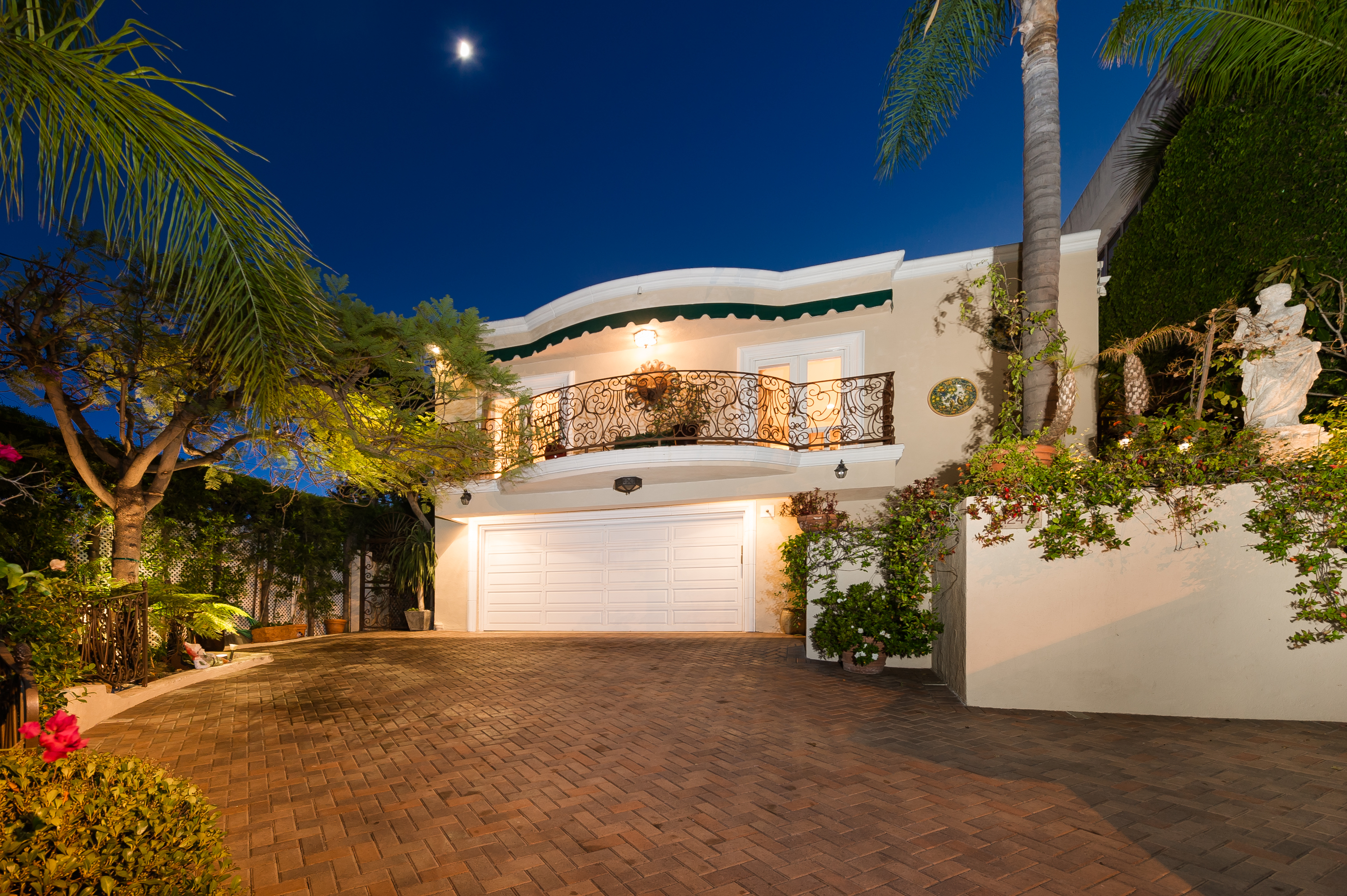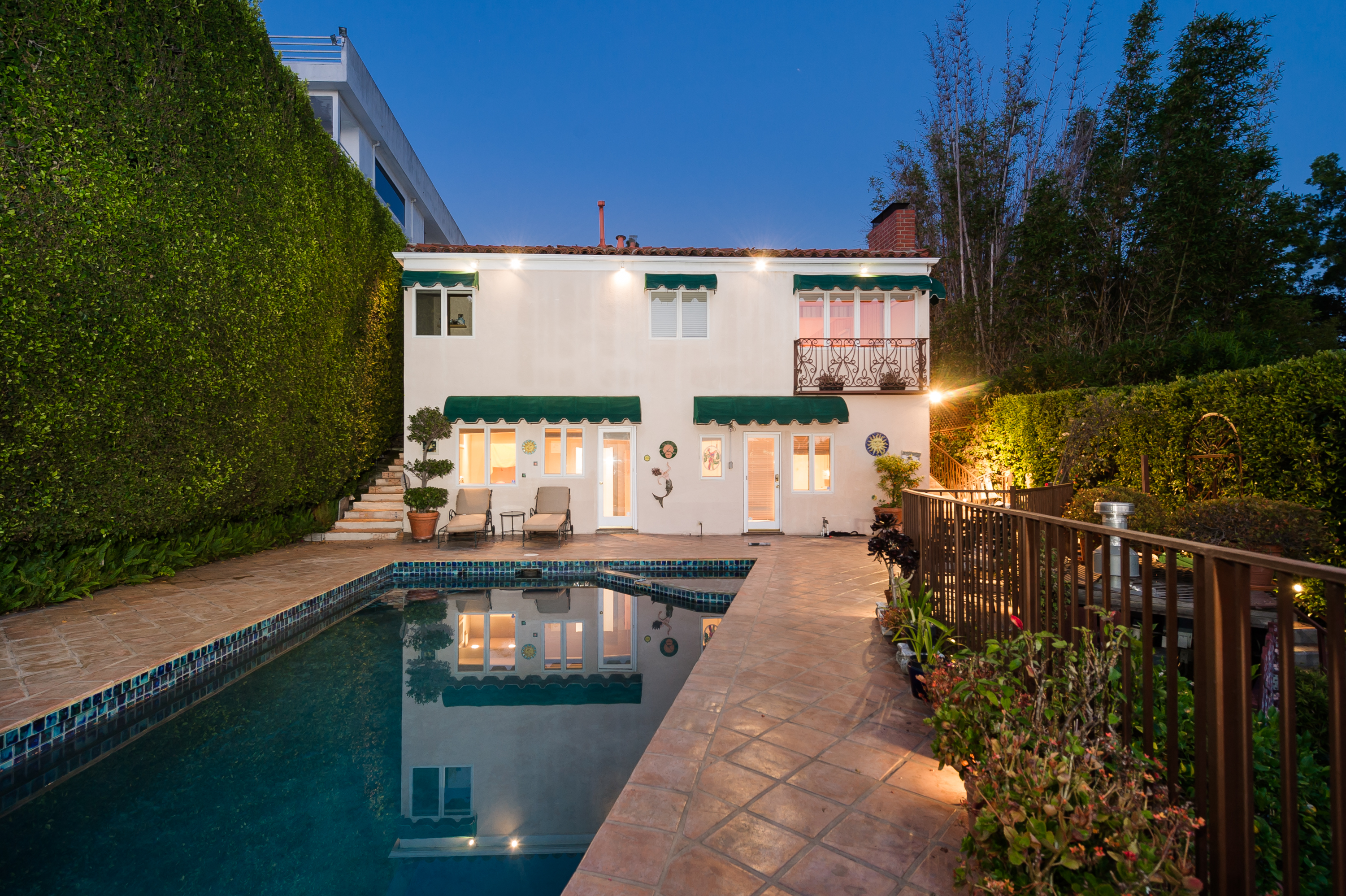 A stunning privately gated villa on a tremendous street-to-street lot in the famed "Sunset Strip". The 4,200+ sq. ft. home boasts 5 bedrooms and 4 baths, soaring ceilings, an expansive living room with fireplace and floor-to-ceiling French doors that open up to a romantic 800 sq. ft. terrace overlooking the city lights and ocean. Large master retreat with sitting area and 180 degree views from DTLA to the Pacific Ocean, fireplace, large bathroom with steam shower and huge walk-in closet. Private, saltwater pool and large grassy area.