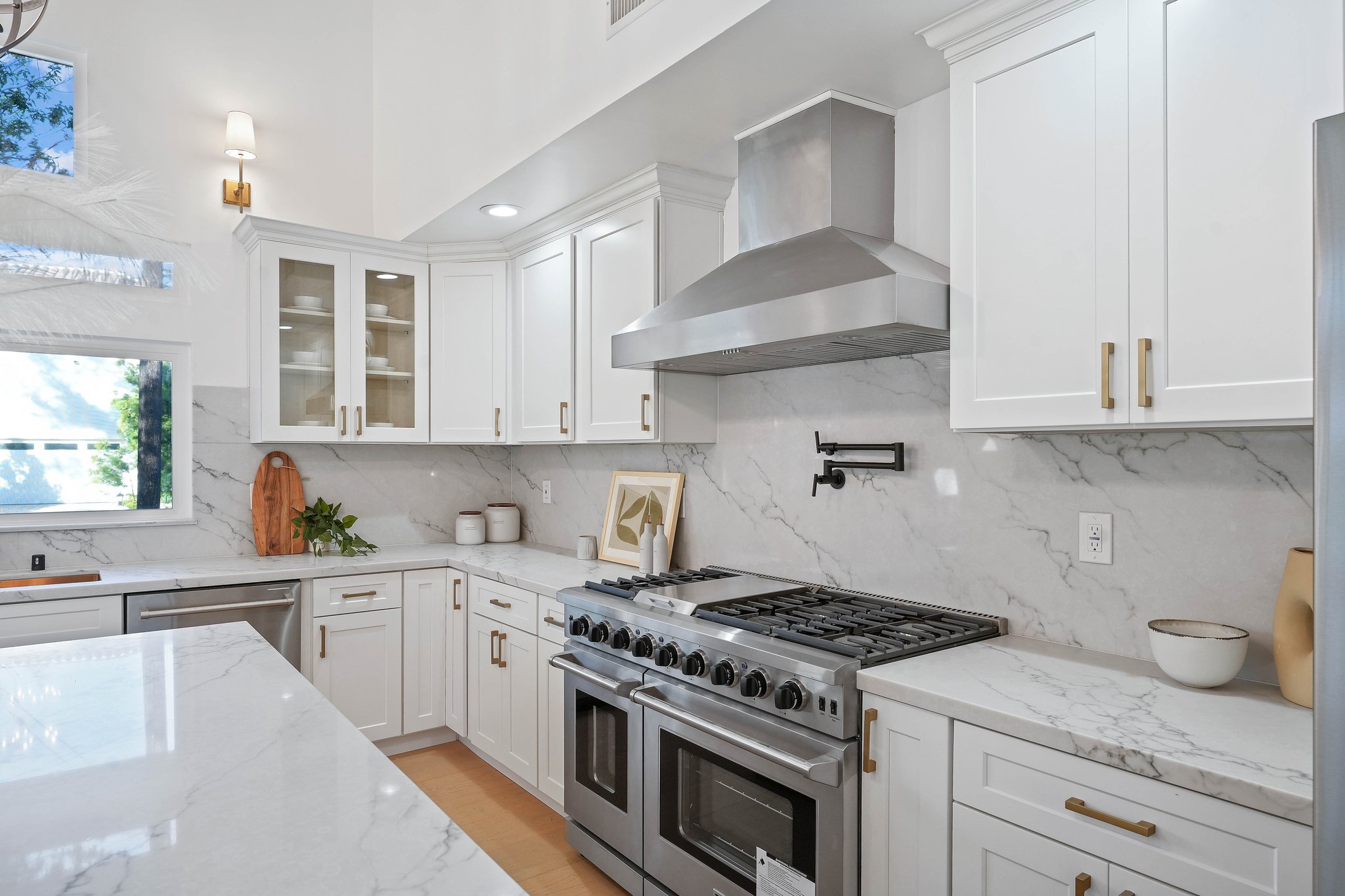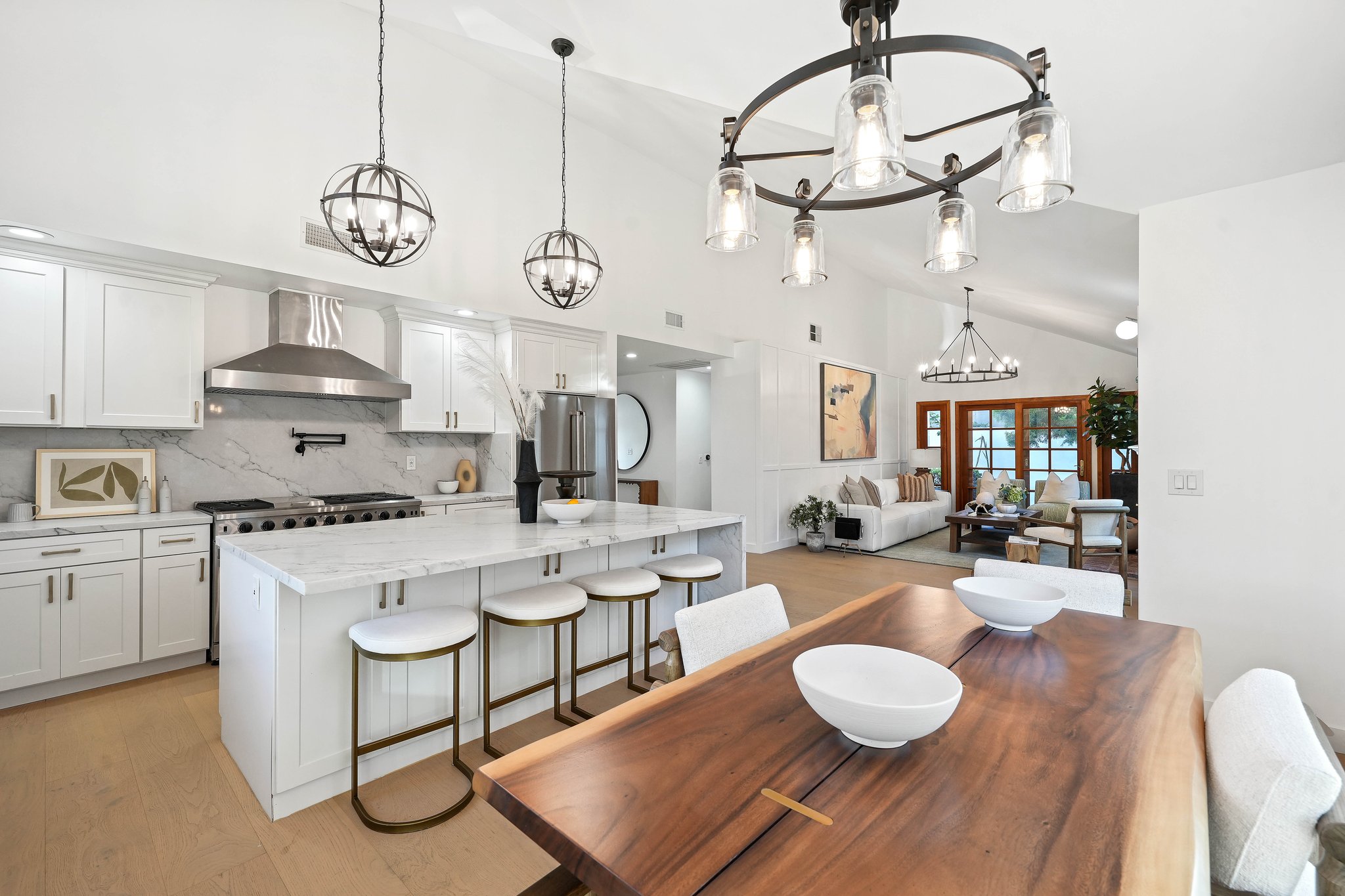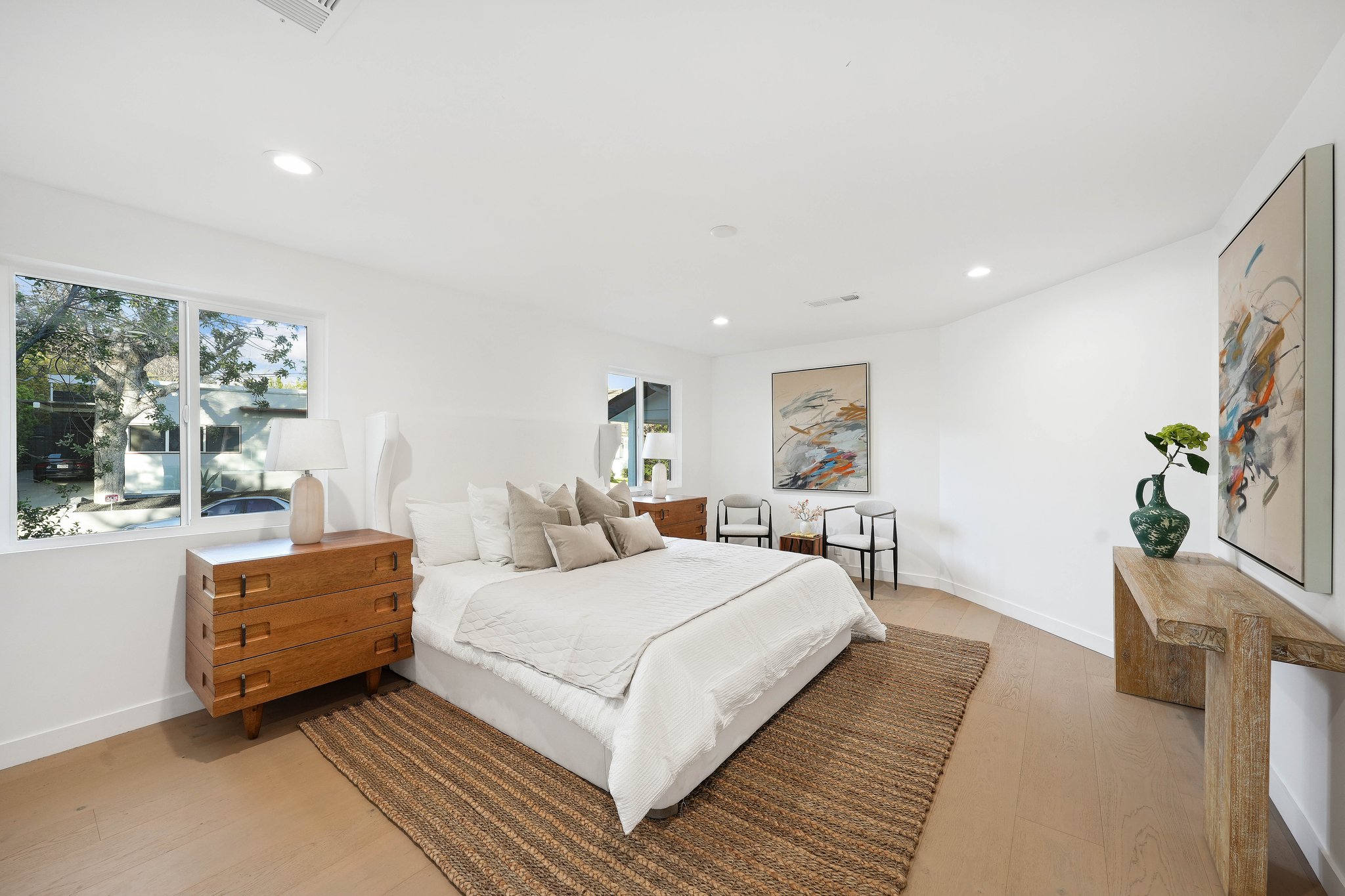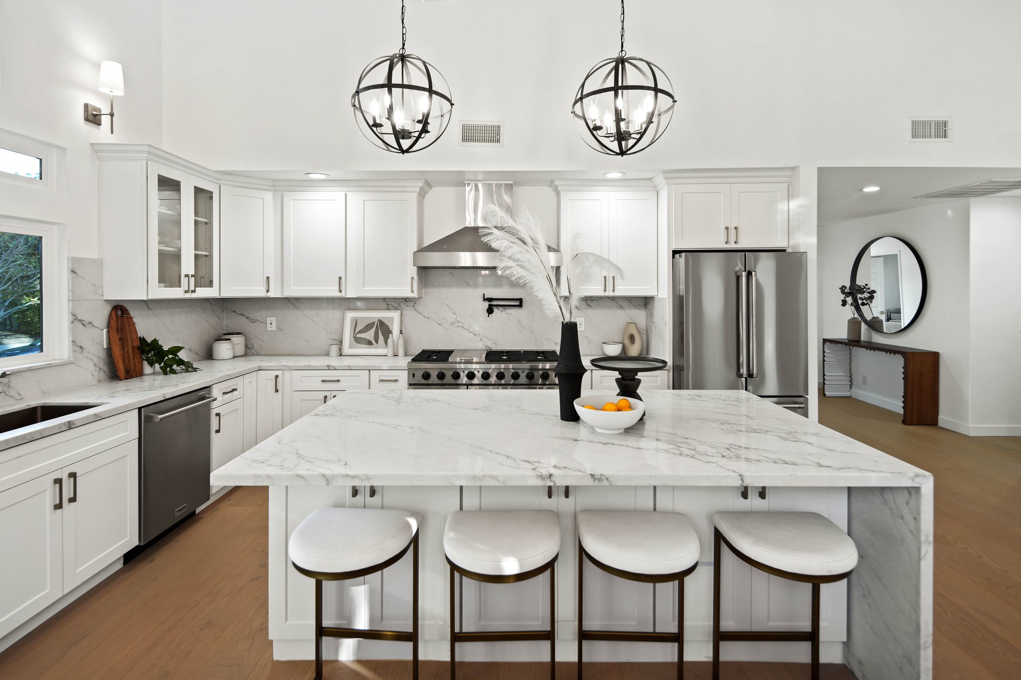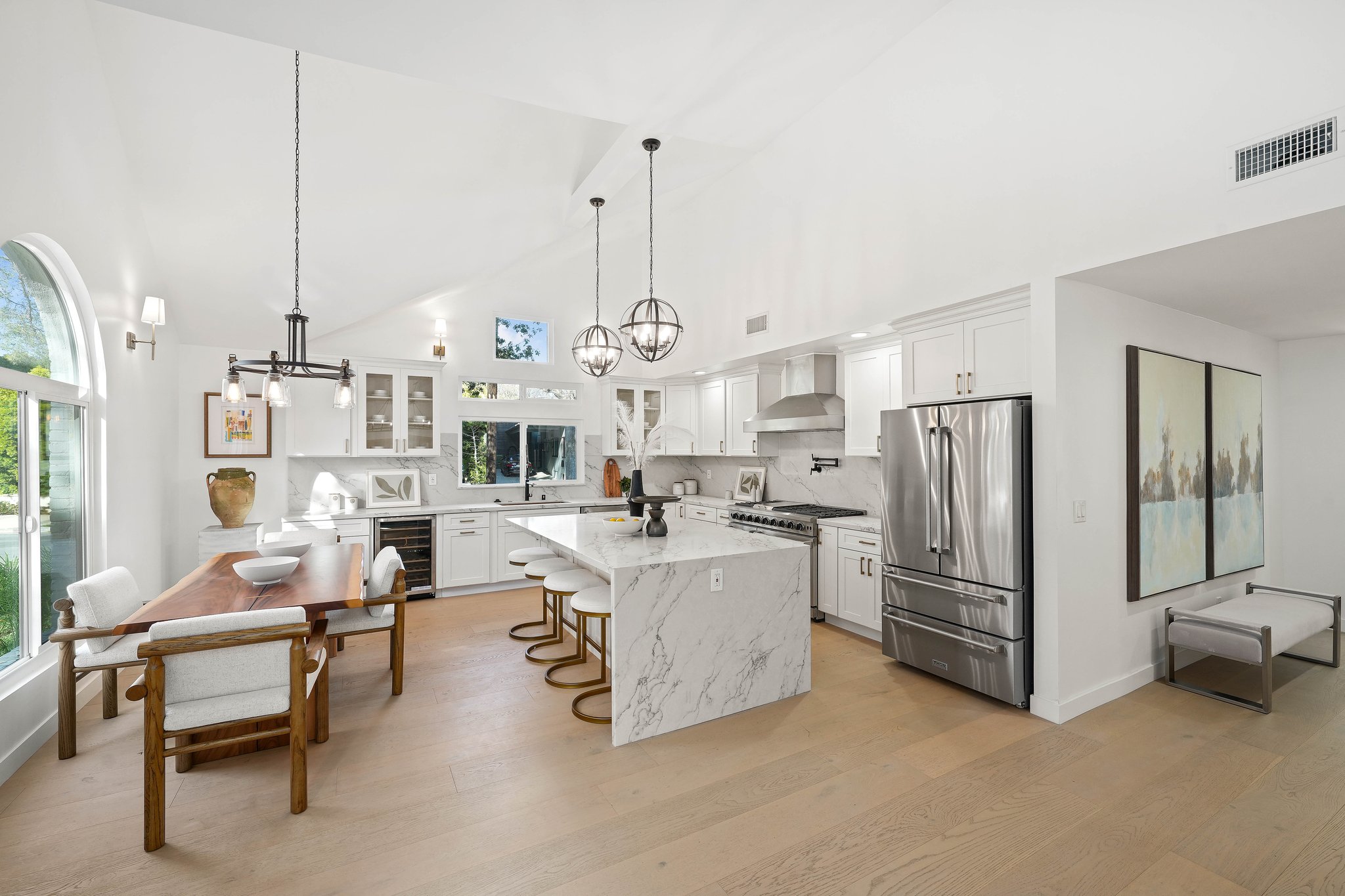 Impeccably renovated farmhouse nestled in the heart of Westwood, this charming abode exudes timeless elegance with modern amenities. Poised on a coveted corner lot, its board and batten exterior seamlessly blend with original brick accents, while sleek black windows add a contemporary flair. Step inside to unveil a captivating open-concept layout seamlessly merging the kitchen, dining, and family areas. The space is adorned with soaring ceilings, accentuated by large arched windows that bathe the room in natural light. A striking contemporary plaster fireplace adds both warmth and character. Follow the wide plank floors to discover exquisite wood French doors that invite you to the outdoors. The primary bedroom offers a serene retreat, boasting a spacious walk-in closet and a luxurious spa-like bath complete with dual head shower. Additional accommodation options include a well-appointed guest bedroom and an upstairs bedroom or bonus room. Outside, a picturesque backyard awaits, featuring a charming brick paver patio and lush green lawn. Enhancing the outdoor experience is an additional entertainment space, complete with a sunken fire pit seating area, built-in fridge, and TV.