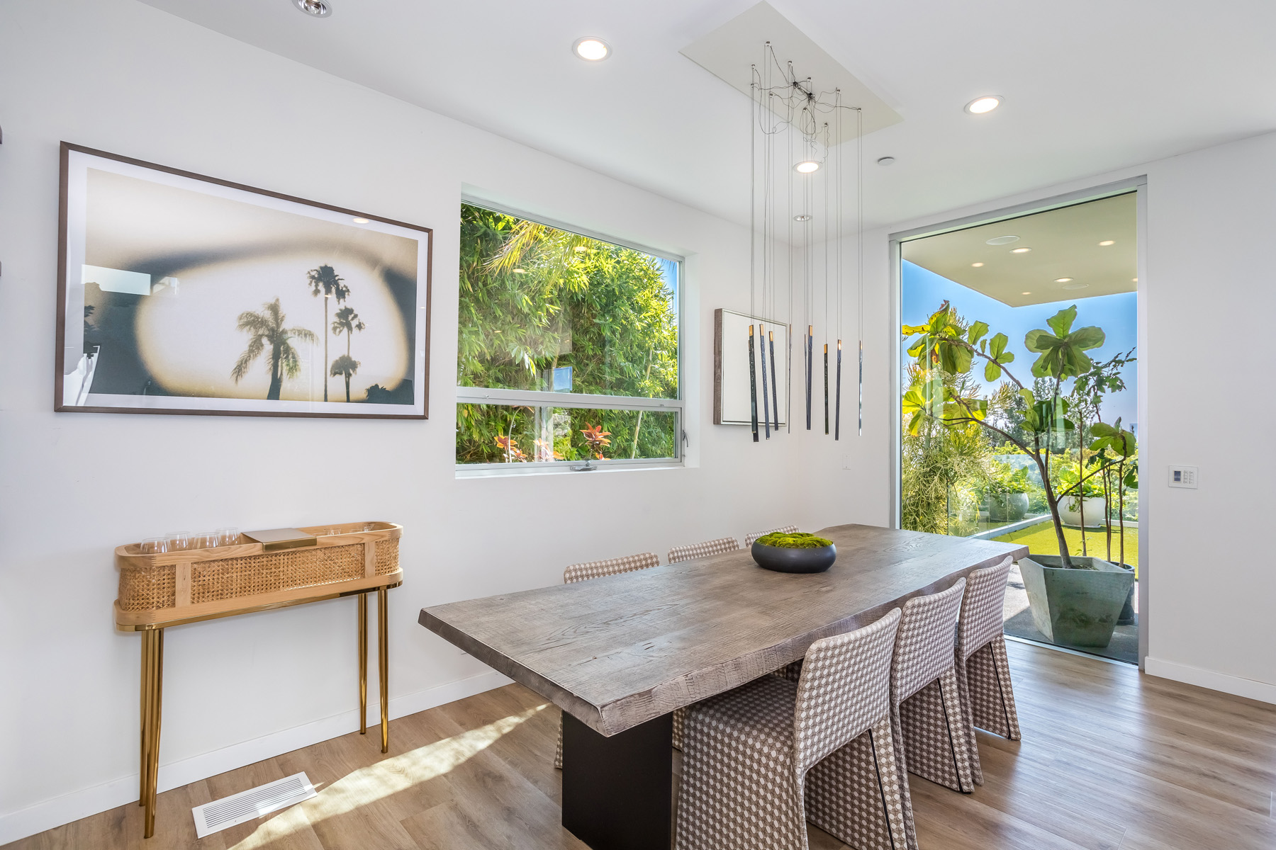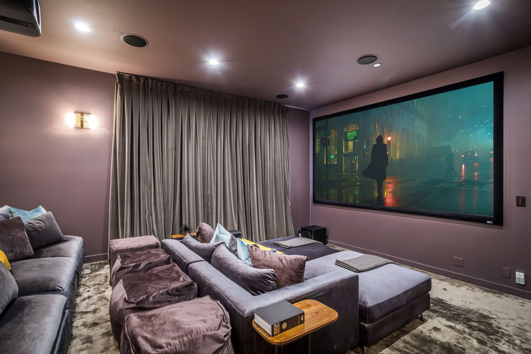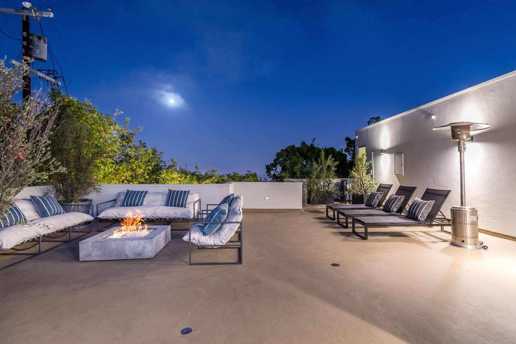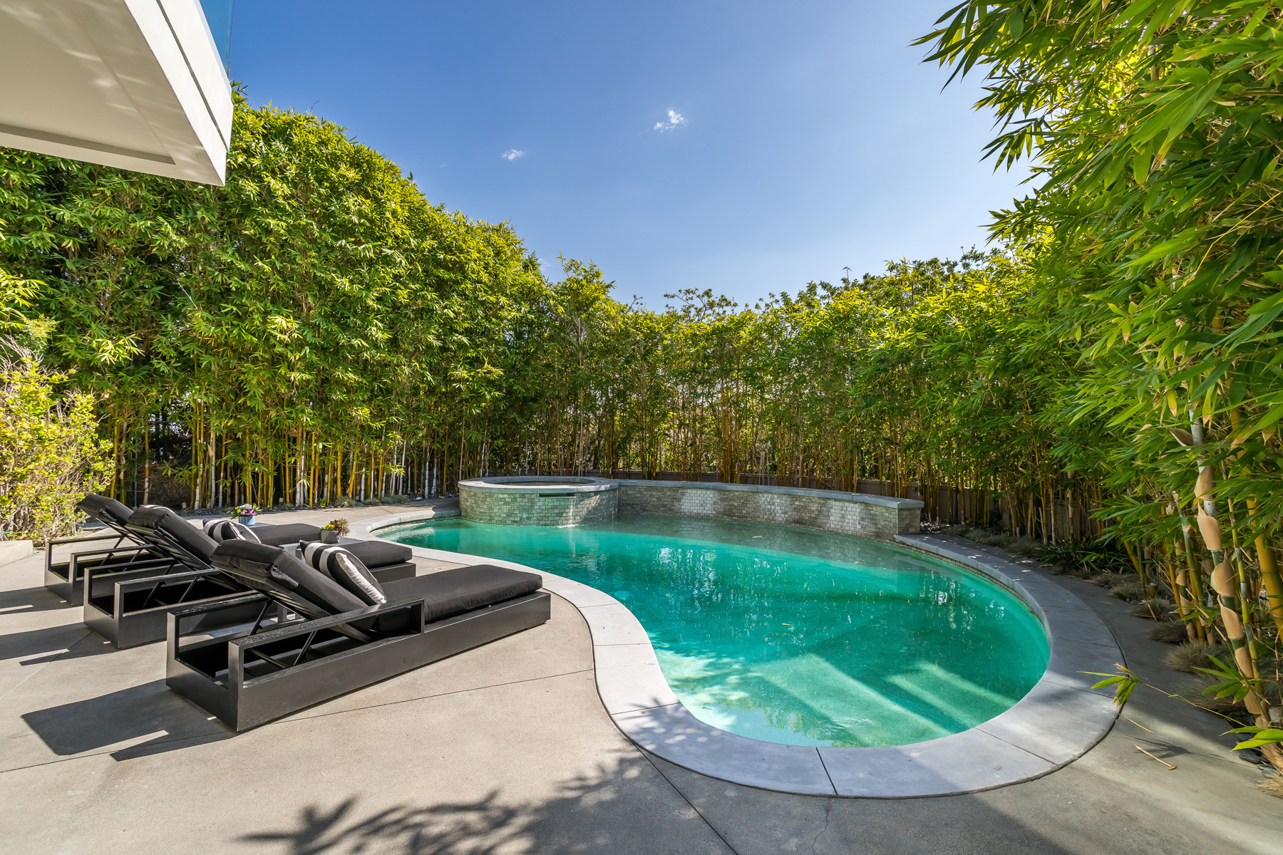 Located behind private gates above the Sunset Strip, this Modern home boasts spectacular panoramic views from Downtown to the ocean. The main level features an open floor plan with soaring ceilings and hardwood flooring throughout. The living area with a fireplace and disappearing walls of glass opens up to a grassy terrace with expansive views. The gourmet kitchen comes replete with sleek white cabinetry, grey stone countertops, a large center island, and top-of-the-line appliances. Upstairs, the luxurious owner's suite offers breathtaking jetliner views, a private balcony, a walk-in closet, and a spa-like bathroom with dual vanity, sumptuous tile work, a large infinity-edge tub, and a walk-in shower with more panoramic views. All additional spacious guest bedrooms each include an exquisite ensuite bathroom. The backyard is a private oasis, with a sparkling pool and hot tub surrounded by mature greenery and an impressive cabana with a sitting area, bar, and bathroom, perfect for entertaining. Other amenities include a home theater, gym, office, and a large private terrace upstairs with plenty of room and head-on views of the downtown LA skyline. A large 2-car garage and a long private driveway with motor court/additional parking. Only minutes away from the best dining and shopping West Hollywood has to offer.