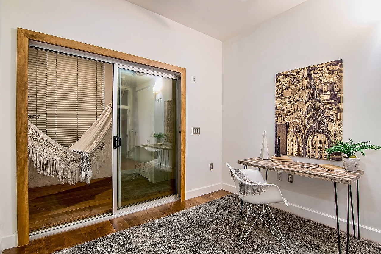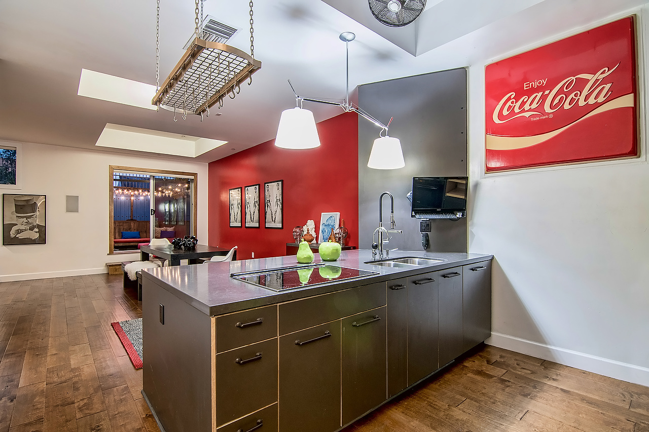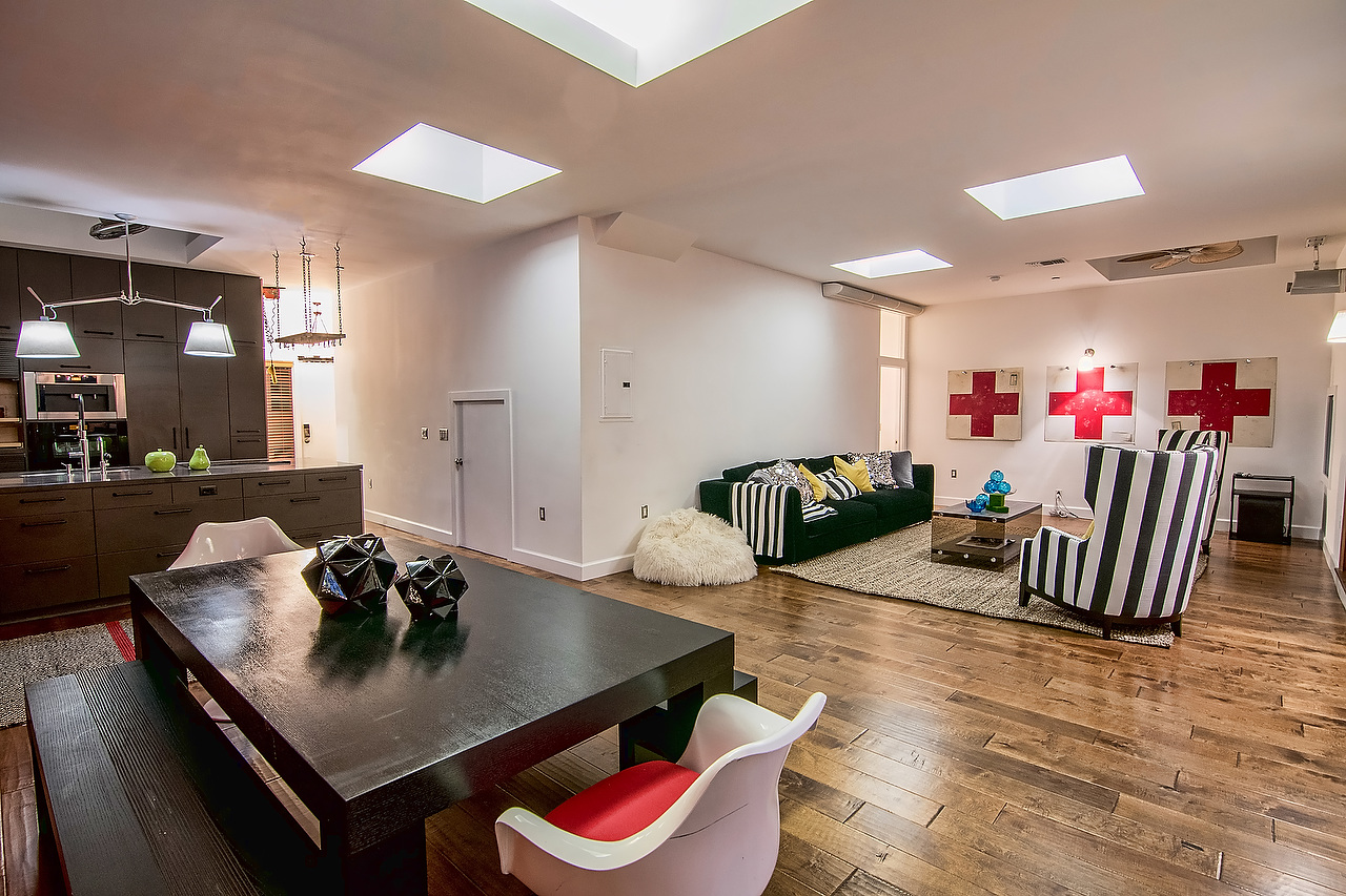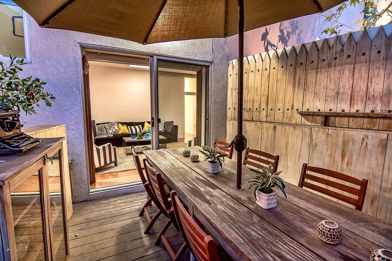 With over $200,000 of remodel/upgrades and winner of the AIA design award by famed architects Predrock/Frane, this stunning ground floor 2-bedroom condo is located just steps from some of the best West Hollywood has to offer. Inviting entry opens to a gourmet chef's kitchen with built-in Miele appliances, custom cabinetry, coffee/cappuccino machine, and flat-screen TV. Expansive living and dining area with 1080p projector and 100" electric movie screen, subtle faux-skylights accents, and exits to two charming, private patios with mature greenery. A downstairs bedroom is complimented with a Grohe digital spa/teak shower, mirror-TV, walk-in closet, and outdoor patio. The upstairs master bedroom features a spa-like bathroom with ample closet place. High end features include a wine refrigerator, top-of-the-line Electrolux washer/dryer, electric bike lift, electric blinds throughout, and two separate garage parking spaces.