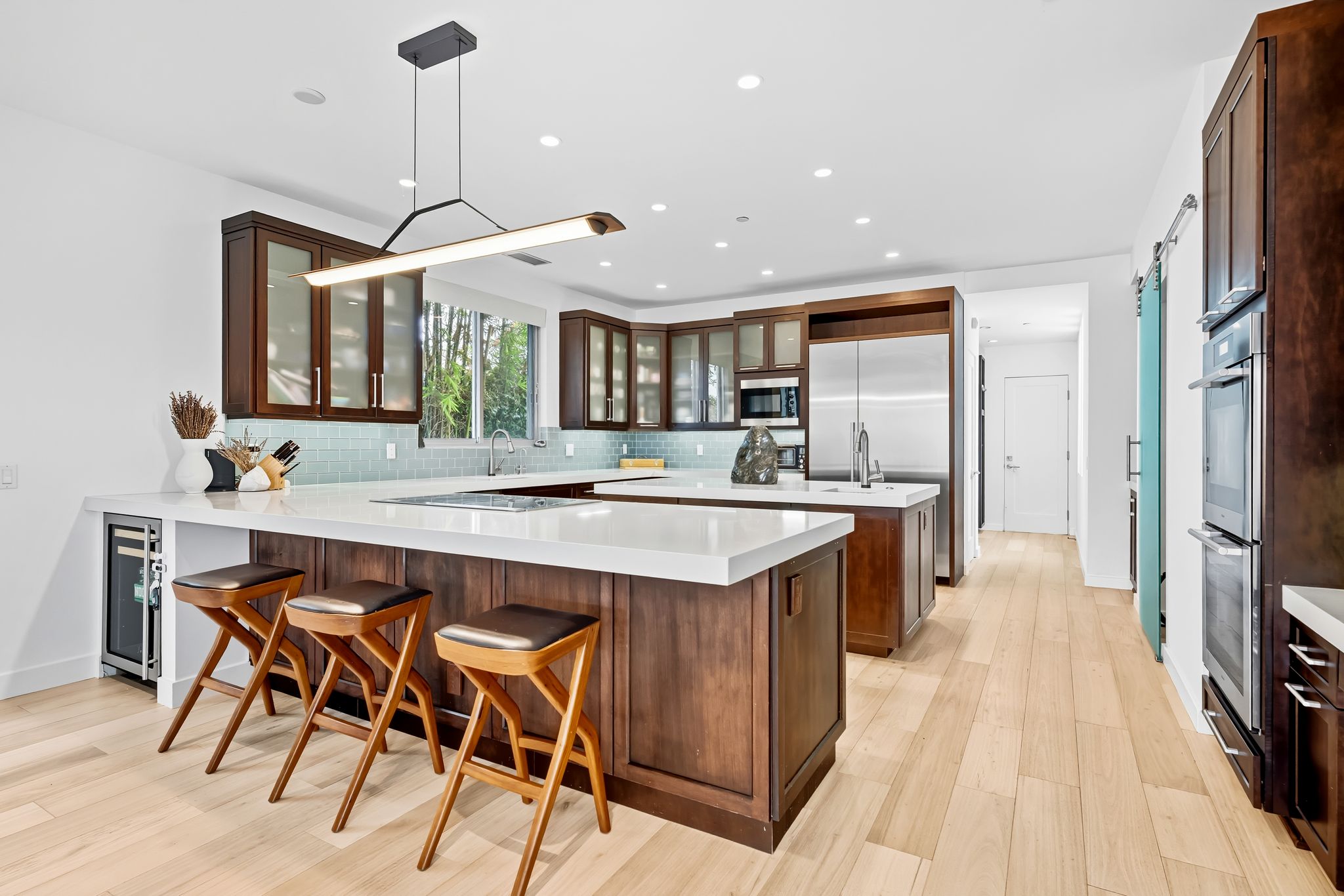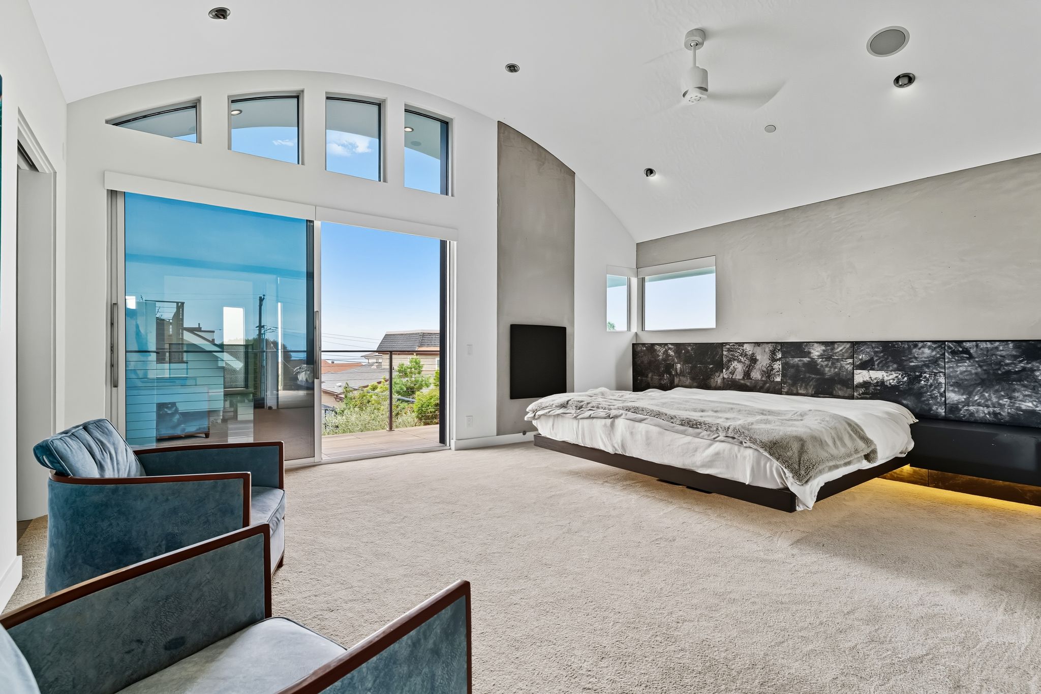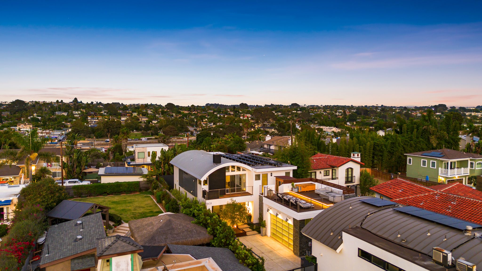 Positioned along one of Encinitas’ most sought-after coastal streets, this modern residence blends striking architecture with the relaxed elegance of beachside living. Bathed in natural light and just moments from some of North County’s most iconic beaches, the home offers a lifestyle that is both vibrant and serene. A distinctive curved roofline, bold architectural lines, and expansive windows define the design, creating interiors that feel airy and connected to their surroundings. The expansive rooftop deck serves as a true highlight, perfect for entertaining or unwinding—complete with lounge seating, a fire feature, and a private sauna that transforms the space into a retreat-like escape. Inside, an open-concept layout seamlessly connects the main living spaces, anchored by a chef’s kitchen appointed with refined finishes. Multiple balconies and thoughtfully designed outdoor areas enhance the indoor/outdoor connection. A generous garage, off-street parking, and lush landscaping provide privacy while keeping local beaches, dining, and the boutiques of downtown Encinitas within easy reach. Set along Neptune Avenue, this residence captures the essence of modern coastal luxury in one of Southern California’s most desirable locations.