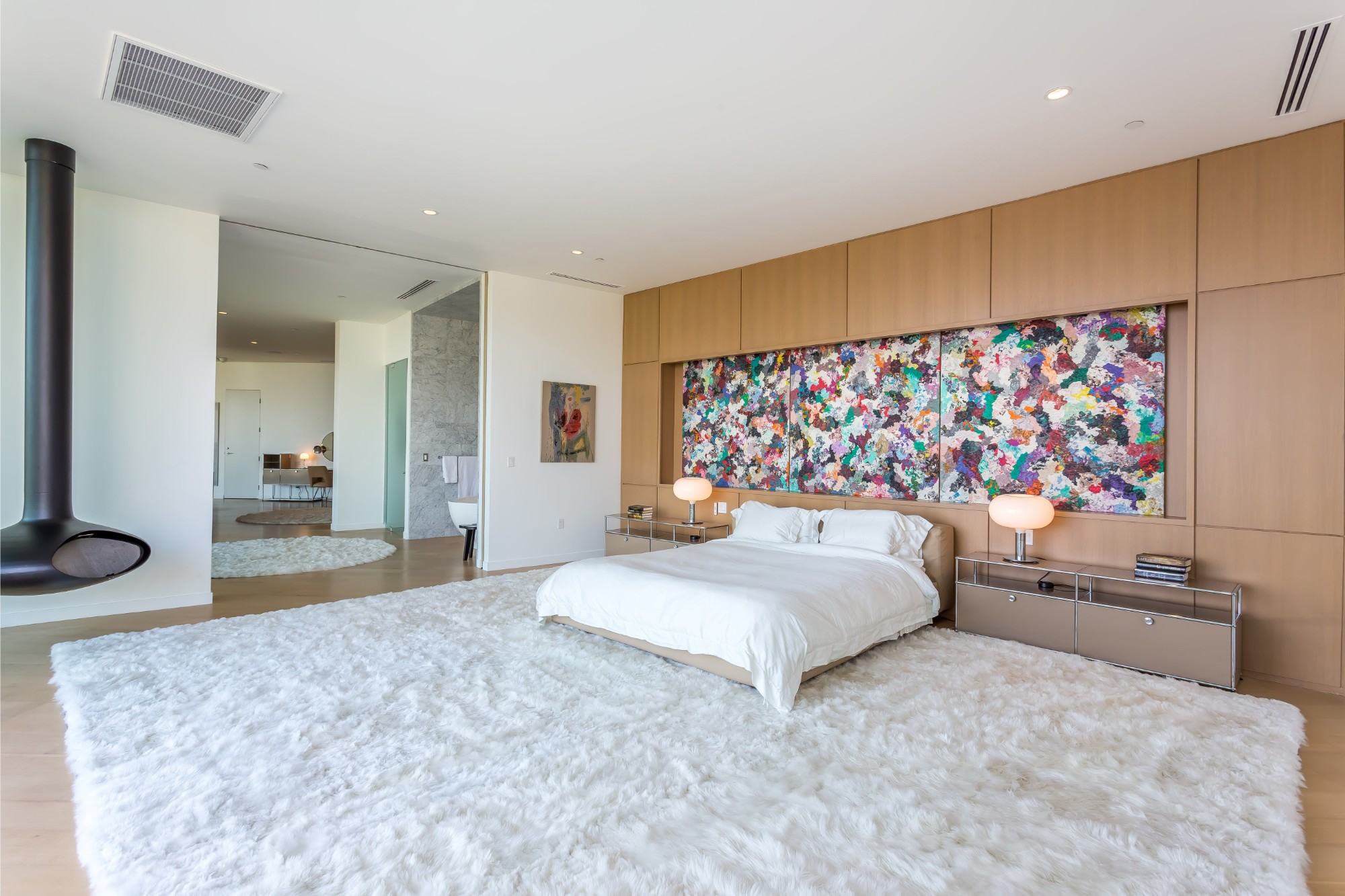 Currently in the middle of a significant remodel, this 12,000+ sq. ft. stunning contemporary estate sits above the Sunset Strip on a quiet cul-de-sac street, boasting panoramic city and ocean views. A perfect opportunity for someone to finish their dream home, or a developer looking for a project with tremendous upside. The main level of the home is completely open and perfect for entertaining, with an Italian kitchen, soaring ceilings and walls of sliding glass doors that lead to massive decks and yard with infinity pool and spa. The owner's suite boasts its own living room and office area, relaxation tub, open bath, floating fireplace, and walk-in closet. Four en-suite guest bedrooms. The previous layout featured a movie theater, entertainer's bar/media area, poker room, billiards room, and gym with separate dry and wet saunas, cold-plunge, therapy bath, massage areas and showers. Two separate 2-car garages. Listing photos include the previously finished home, as well as photos showing its current condition.