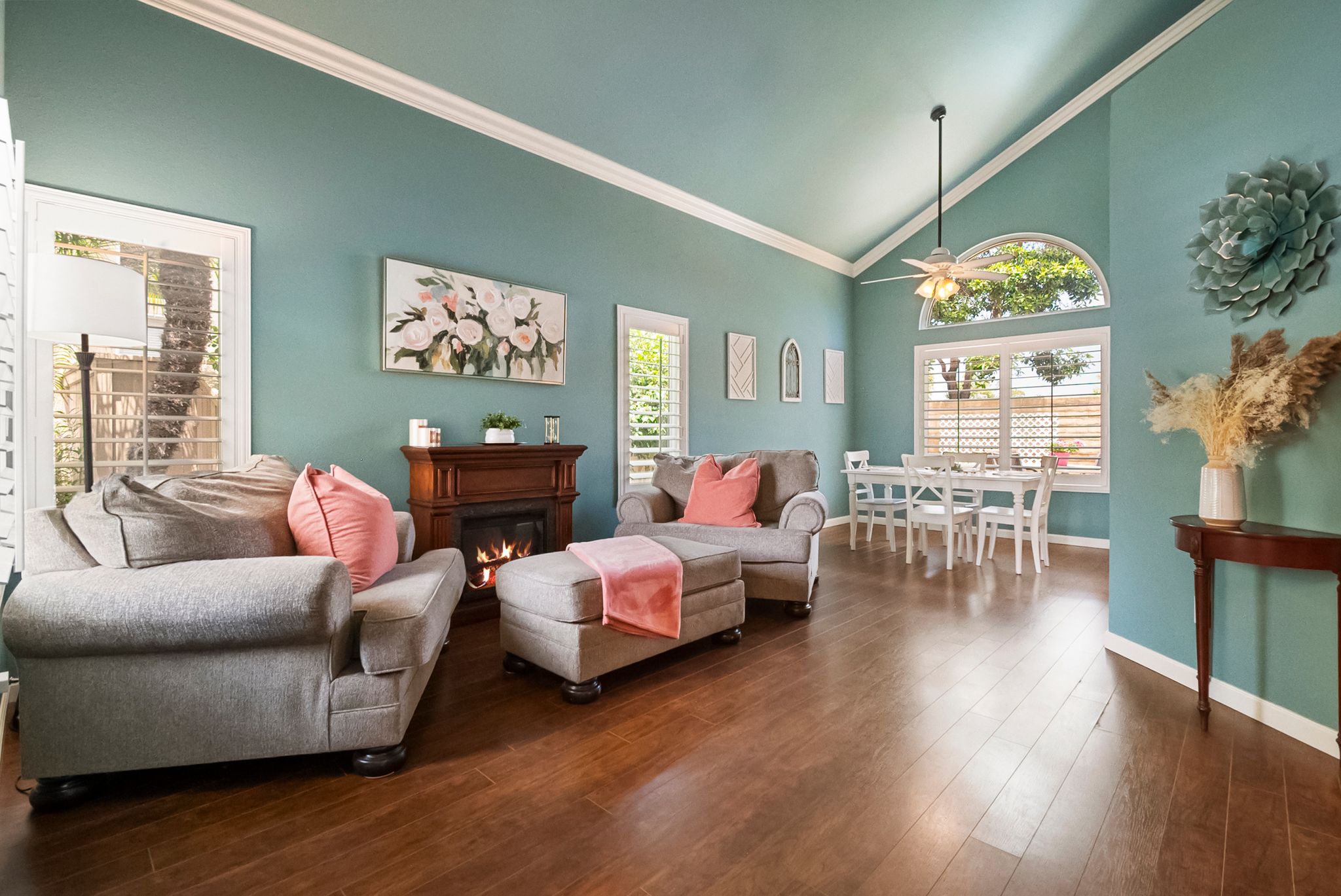 Discover a magnificent residence in the highly sought-after neighborhood of Crest Landing ll in Shadowridge Vista! Spanning over 1500 square feet, this home offers a meticulously upgraded living space, boasting three generously proportioned bedrooms. Upon entry, the ambiance is enriched by the warmth of the wood flooring, designer paint, crown molding and dramatic vaulted ceilings. An abundance of newer vinyl dual pane windows allows natural light to cascade in through the plantation shutters creating a light and bright atmosphere. The thoughtfully appointed kitchen opens to the family room and features tray ceiling with recessed lighting, white kitchen cabinets with plenty of storage including pantry pullout shelves. Beyond the slider the great room opens to the spacious, newly paved and private backyard that is ideal for endless entertaining. Retreat to the primary suite of your dreams, featuring a prewired ceiling fan, spacious closet and impeccably updated primary bathroom with stunning combination of Carrera style and pebble stone tile. Located just moments from the beach, trails, Shadowridge golf club, Melrose Village plaza and Bressi Ranch shopping plaza. Enjoy resort-style community amenities, including a newly resurfaced pool, spa, and playground, all with the added benefit of low HOA fees and no Mello-Roos.