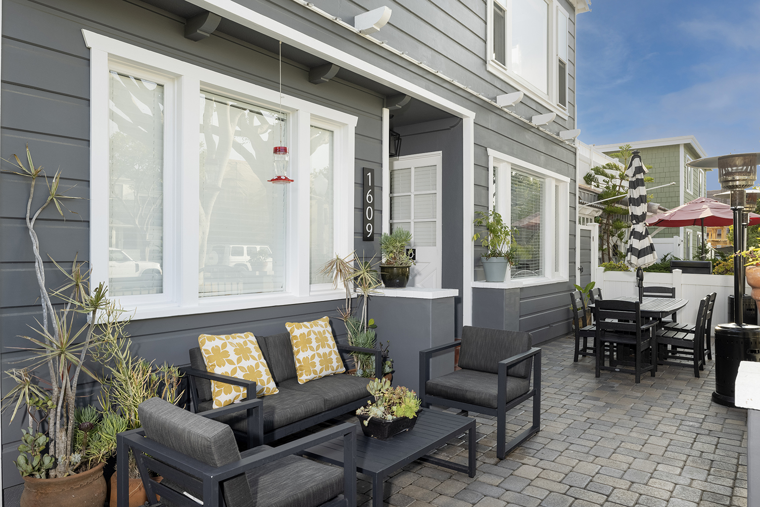 Located in one of the most desirable destinations in Newport Beach, only steps from the beach and bay, 1609 E Balboa Blvd is your opportunity to own the most charming quadruplex on the Balboa Peninsula Point. Meticulously maintained and extensively upgraded last year, this truly exceptional property allows you to reap the benefits of instant and reliable income while enjoying the beach lifestyle for yourself if you so choose. Embodying the perfect NANTUCKET coastal style vibe with (1) two-bedroom, one-bathroom unit, a bonus studio and (3) completely remodeled one-bedroom, one-bathroom units with new wood-planked laminate flooring, custom wainscoting, crown molding, trending barn doors throughout and fireplaces make this property feel like an upscale eastern seaboard retreat. In addition, the fully updated kitchens are guaranteed to impress, with new cabinetry, subway tile backsplash, white-quartz countertops and large farm sinks. Refrigerators, the gas stove/ovens, microwaves and new USB outlets top it all off, while the immaculate bathrooms will leave you feeling blissful. Stay cool and relaxed in the ocean breeze with new windows and custom shades for privacy and comfort. The building also includes an on-site laundry room with two sets of brand new front-load washers & dryers and plentiful storage for your paddleboards and bikes. Three epoxied and redone garages provide additional storage and income opportunity. The spacious and newly furnished front patio is the perfect scene for your summer barbecues and gatherings. Last but not least enjoy peace of mind with a completely new sewer line from the property to the city main, as well as new plumbing and electrical. The property has the potential to gross over $200,000 in short-term rental income. Walking distance to the beach, bay, restaurants, boutiques, and world famous Wedge surf spot, this property offers the quintessential Newport lifestyle. The Peninsula Point is famous for its iconic festivities, including the Christmas Boat Parade, 4th of July parade and fireworks, Friday night potlucks at the private Bay Beach, the private tennis club. This is a rare chance to place your stake amongst some of the most prized and sought-after real estate in the world.