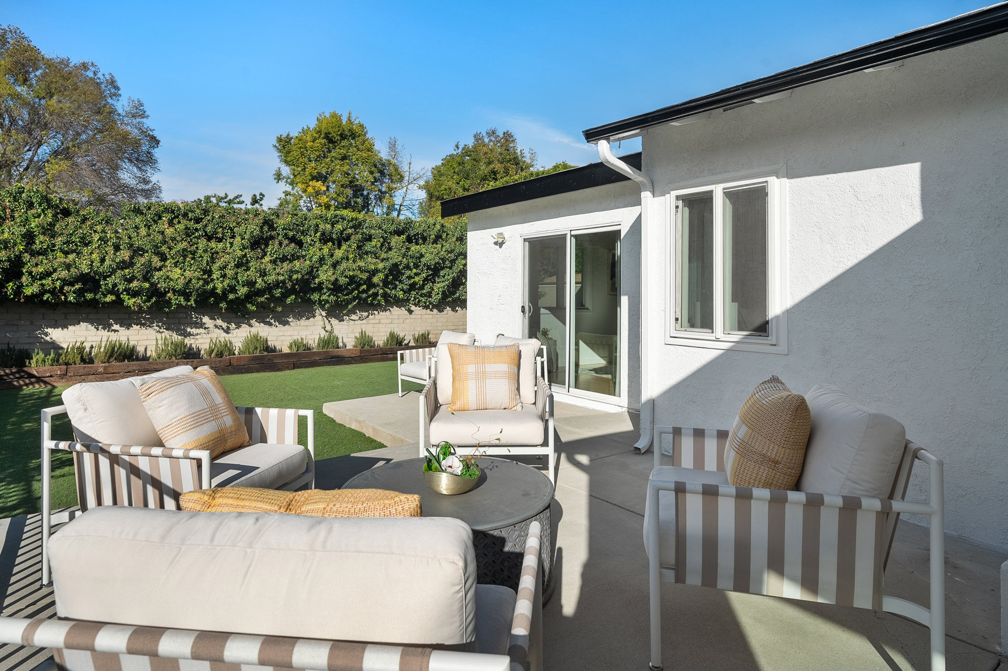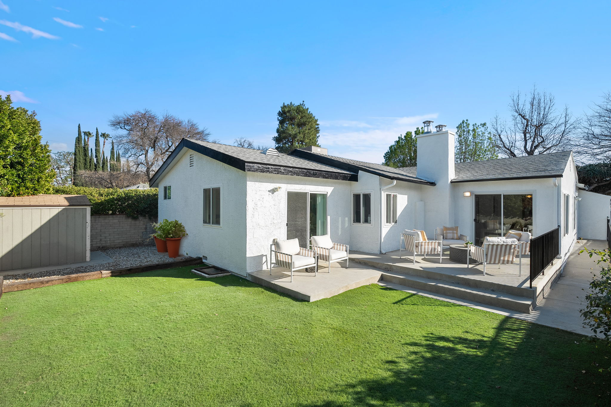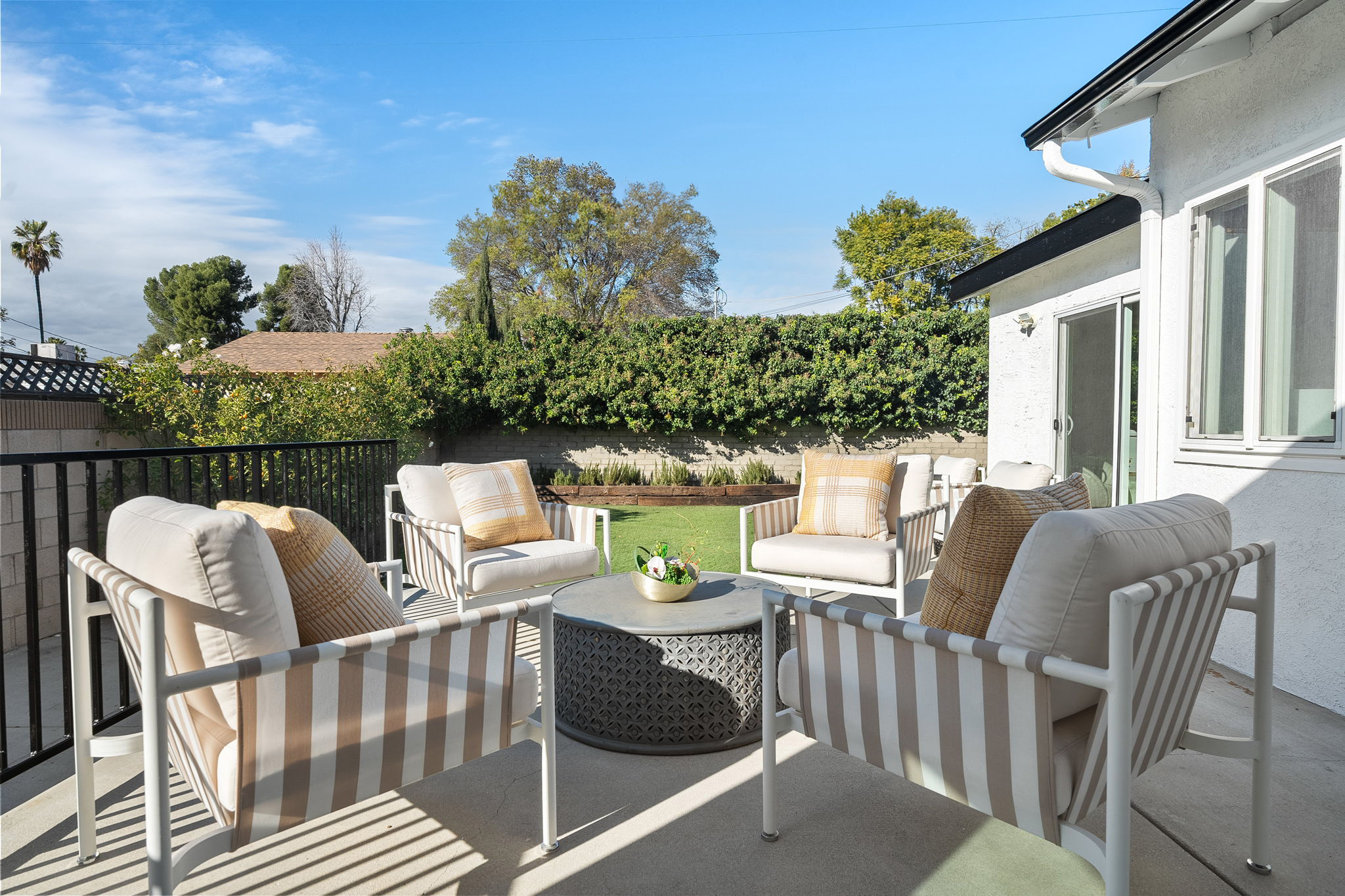 Nestled on a serene cul-de-sac in the highly sought-after Lake Balboa neighborhood, this exquisitely updated 3 bed / 3 bath home offers a perfect blend of comfort and style, with close proximity to the Van Nuys Golf Course. The expansive living room is bathed in natural light and features a cozy gas fireplace, while the adjacent dining area provides an ideal setting for both intimate meals and entertaining. The gourmet kitchen is complemented by sleek granite countertops and an abundance of cabinetry, offering ample storage for culinary essentials. The impressive master suite boasts a generous ensuite bath, complete with a separate soaking tub and shower, a dual-sink vanity, and a spacious walk-in closet. A second bedroom is equally inviting, featuring a charming decorative fireplace that adds a touch of warmth and character. Upgraded windows and doors enhance both energy efficiency and aesthetic appeal, seamlessly connecting the interior to the tranquil patio and beautifully landscaped backyard. Additional features include a two-car garage with additional driveway parking, and convenient in-home washer and dryer hookups located in the dedicated laundry room.