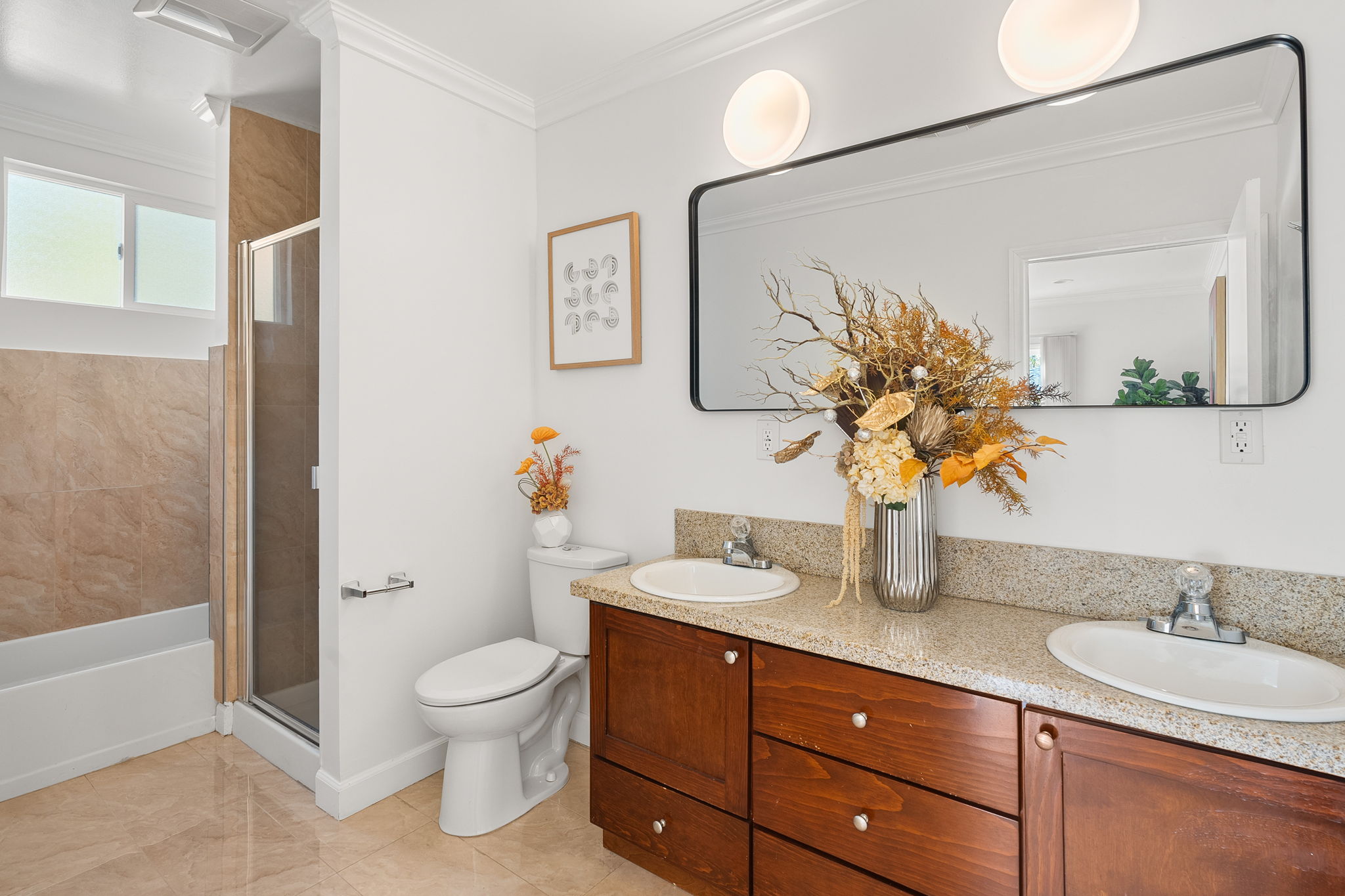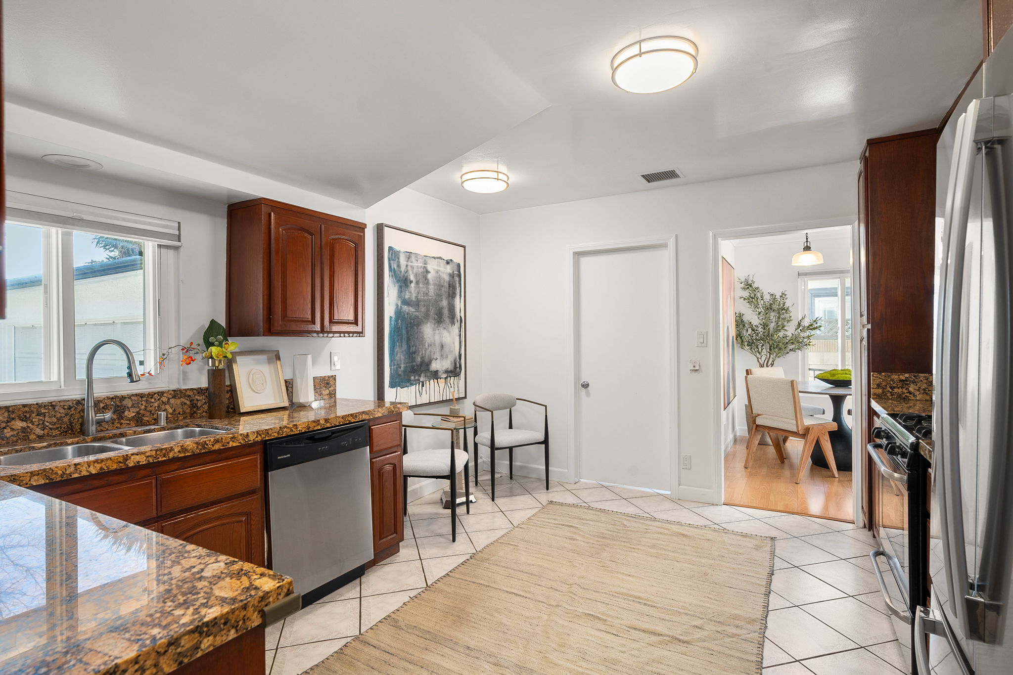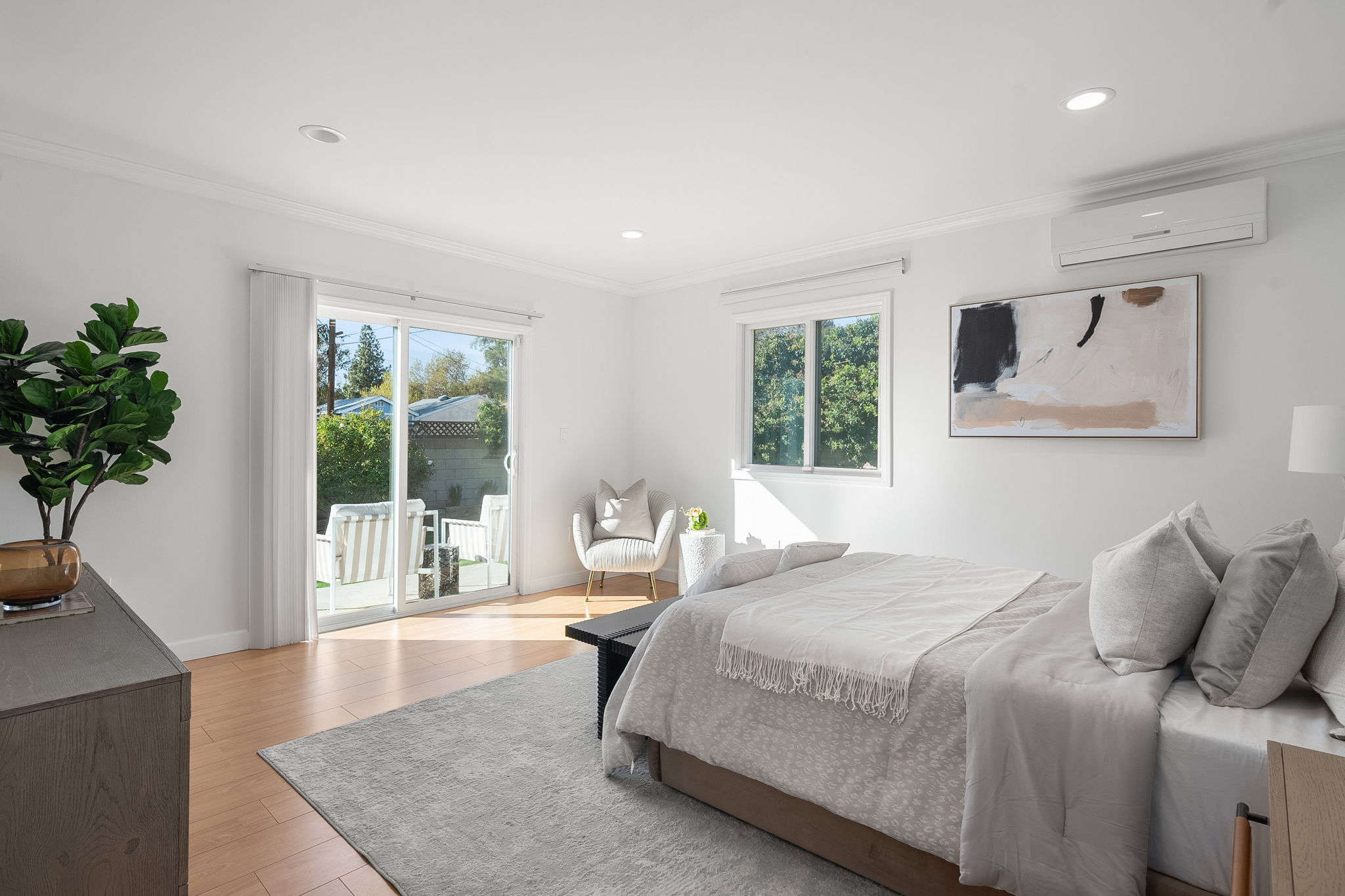 Nestled on a serene cul-de-sac in the highly sought-after Lake Balboa neighborhood, this exquisitely updated 3 bed / 3 bath home offers a perfect blend of comfort and style, with close proximity to the Van Nuys Golf Course. The expansive living room is bathed in natural light and features a cozy gas fireplace, while the adjacent dining area provides an ideal setting for both intimate meals and entertaining. The gourmet kitchen is complemented by sleek granite countertops and an abundance of cabinetry, offering ample storage for culinary essentials. The impressive master suite boasts a generous ensuite bath, complete with a separate soaking tub and shower, a dual-sink vanity, and a spacious walk-in closet. A second bedroom is equally inviting, featuring a charming decorative fireplace that adds a touch of warmth and character. Upgraded windows and doors enhance both energy efficiency and aesthetic appeal, seamlessly connecting the interior to the tranquil patio and beautifully landscaped backyard. Additional features include a two-car garage with additional driveway parking, and convenient in-home washer and dryer hookups located in the dedicated laundry room.