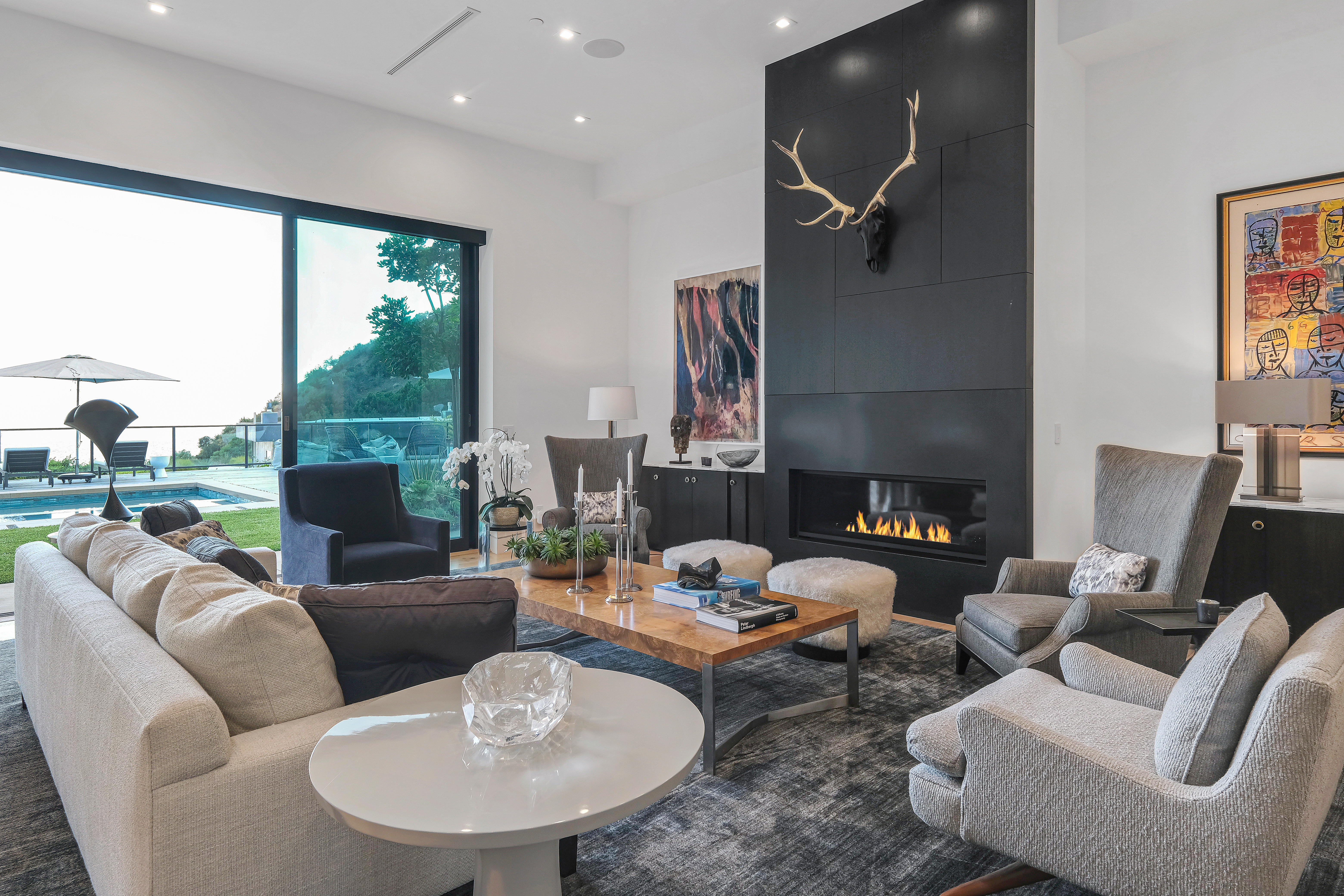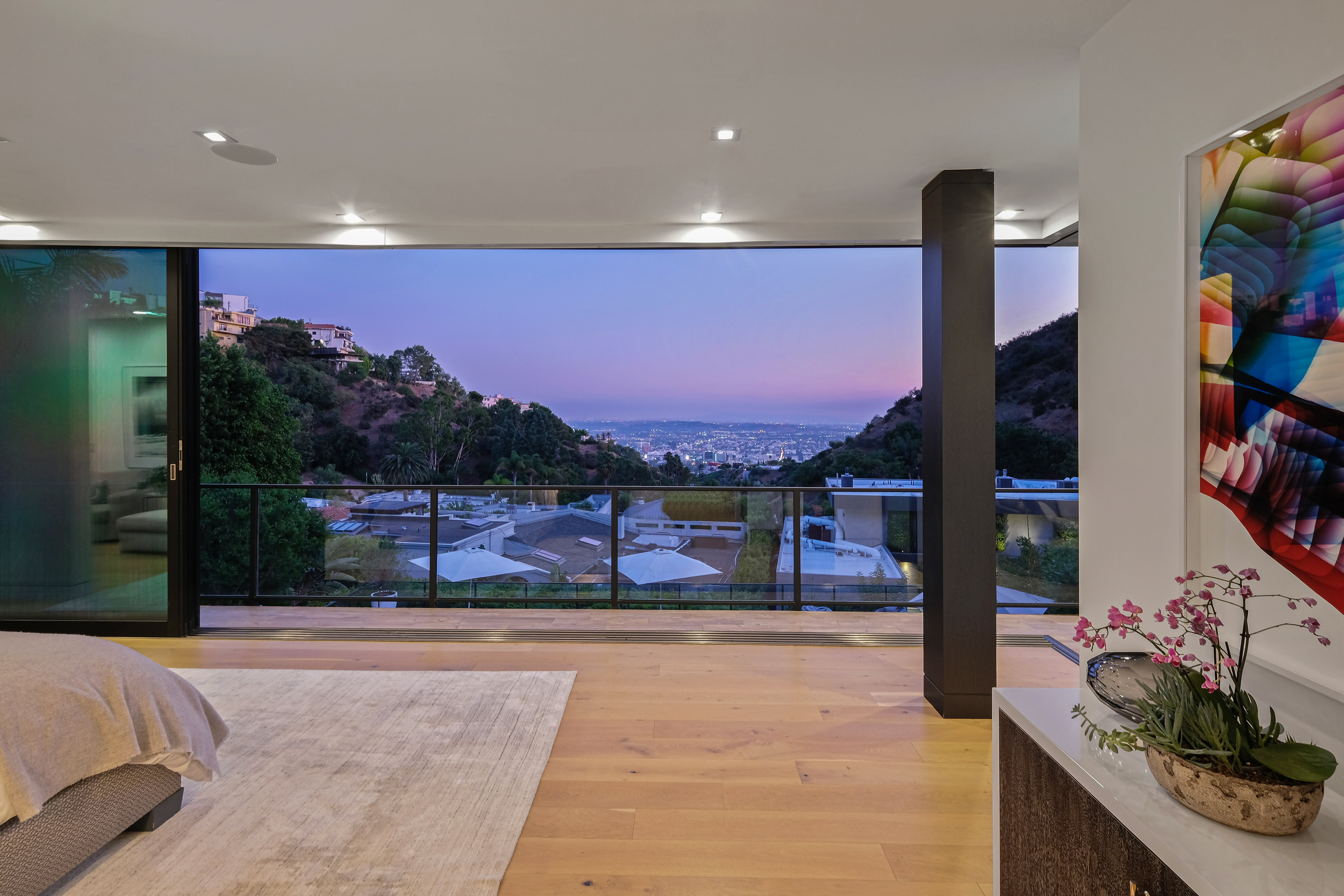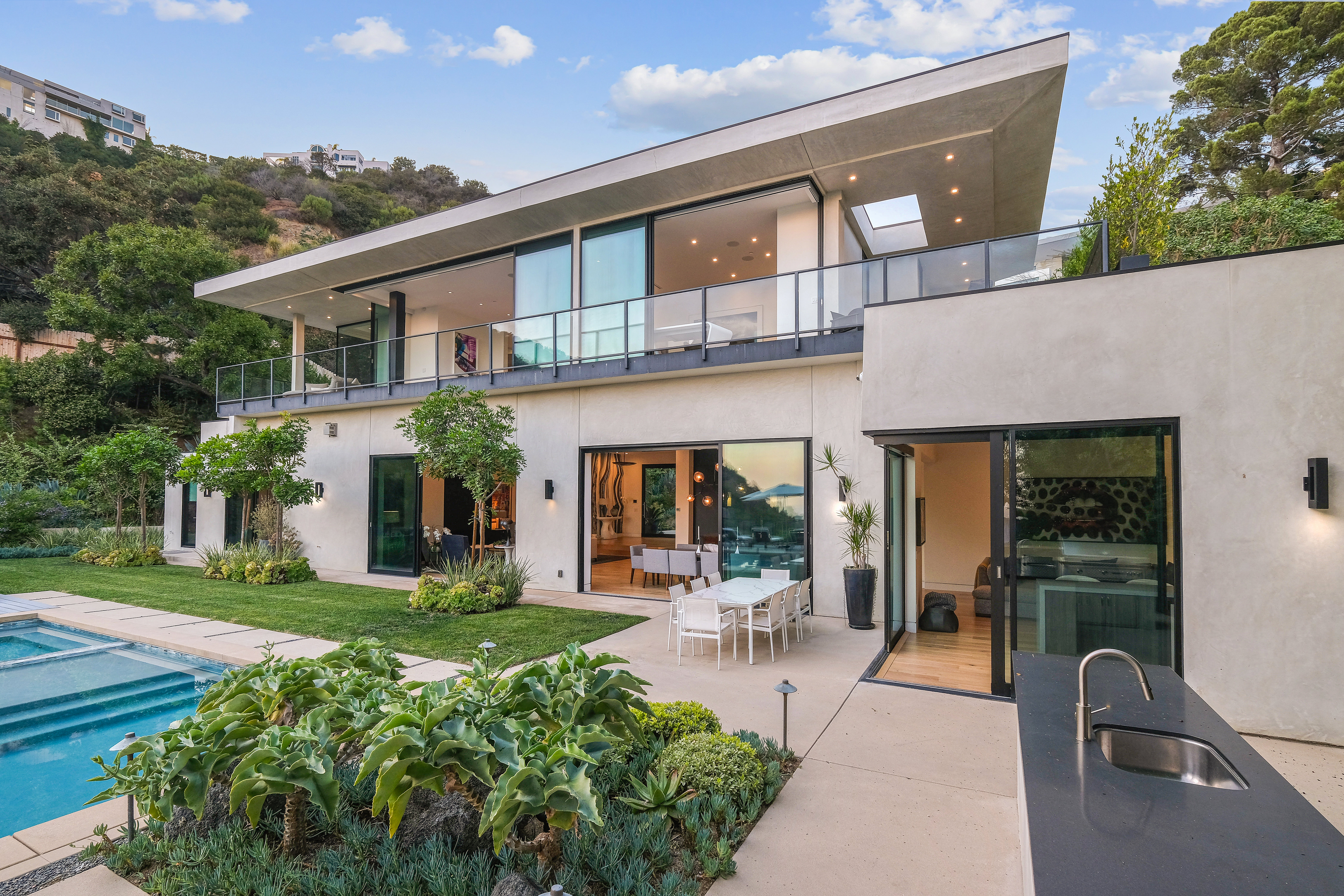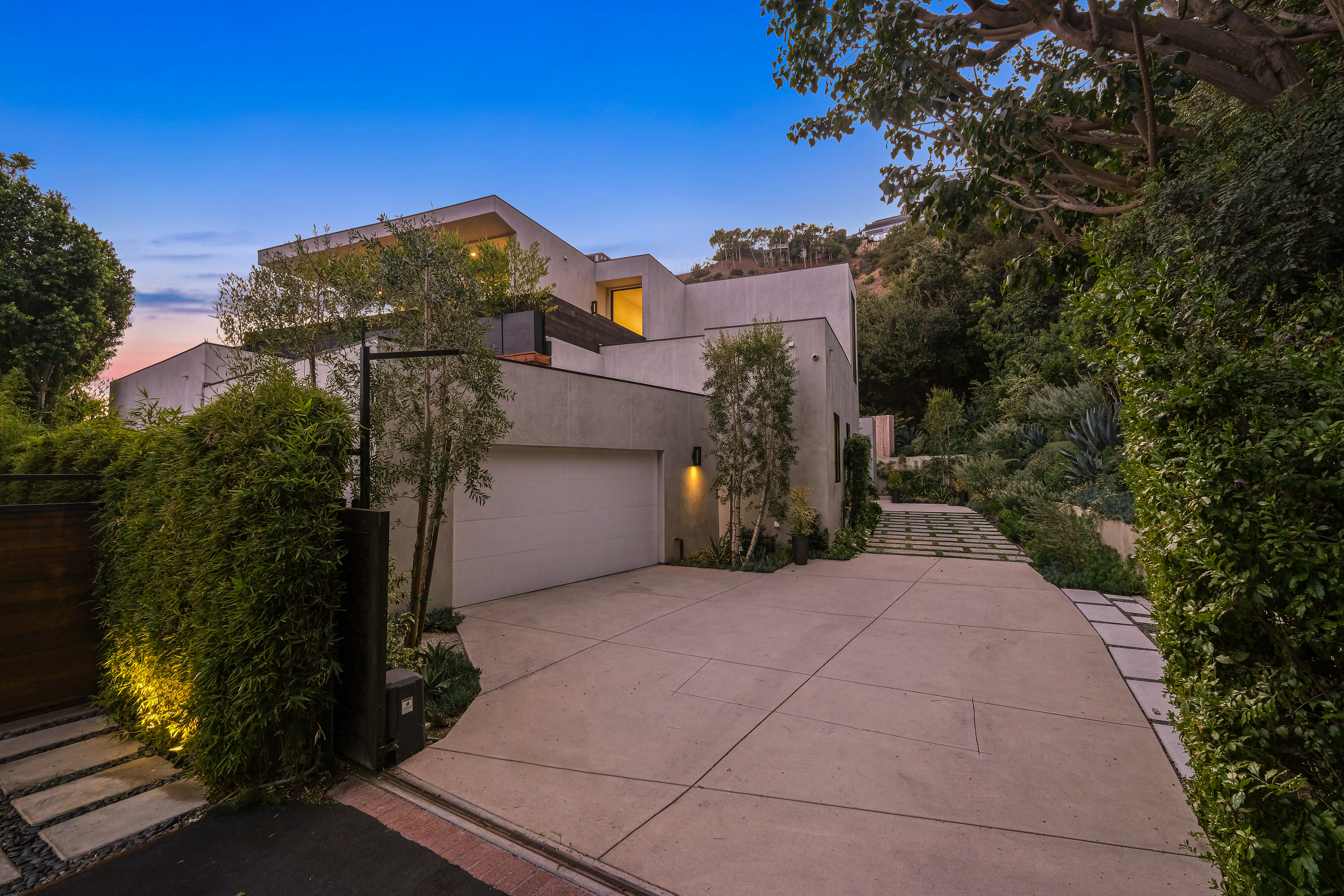 Set behind private gates on one of the Bird Street's most coveted cul-de-sac streets, this contemporary estate offers complete seclusion while boasting stunning city-to-ocean and canyon views. An open floor plan with soaring ceilings lined by massive Fleetwood doors boasts exceptional indoor-outdoor living and abundant natural light. A sleek Chef's kitchen comes replete with an impressive island, dual copper sinks, Miele appliances, and custom cabinetry with black marble countertops. The owner's suite occupies the entire upper level and includes an art gallery, a double-bath suite, dual walk-in closets, and multiple terraces to soak in the breathtaking views. The expansive backyard is a tranquil retreat with large pool and spa, grassy yard, outdoor bbq/kitchen, and ample space for entertaining.