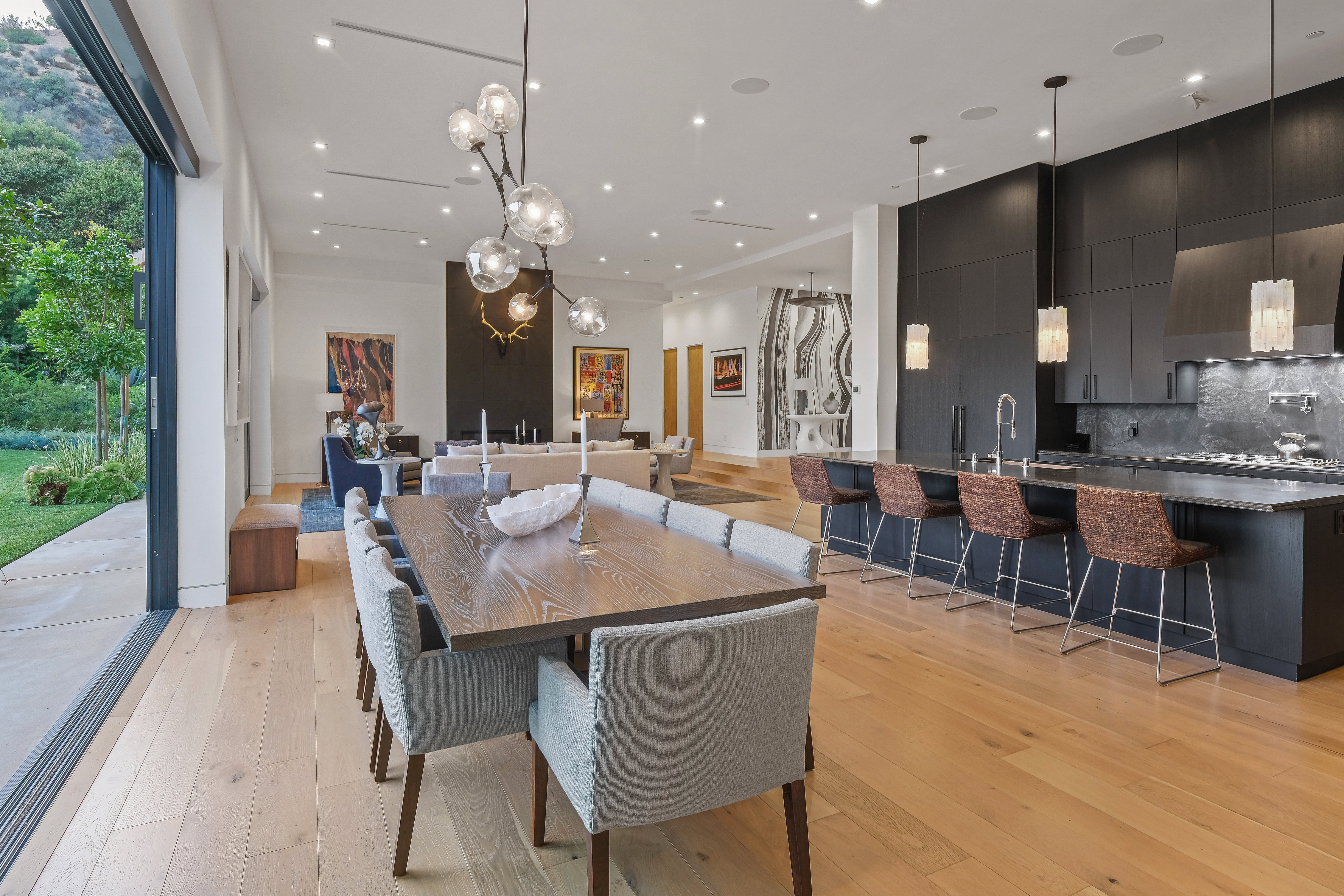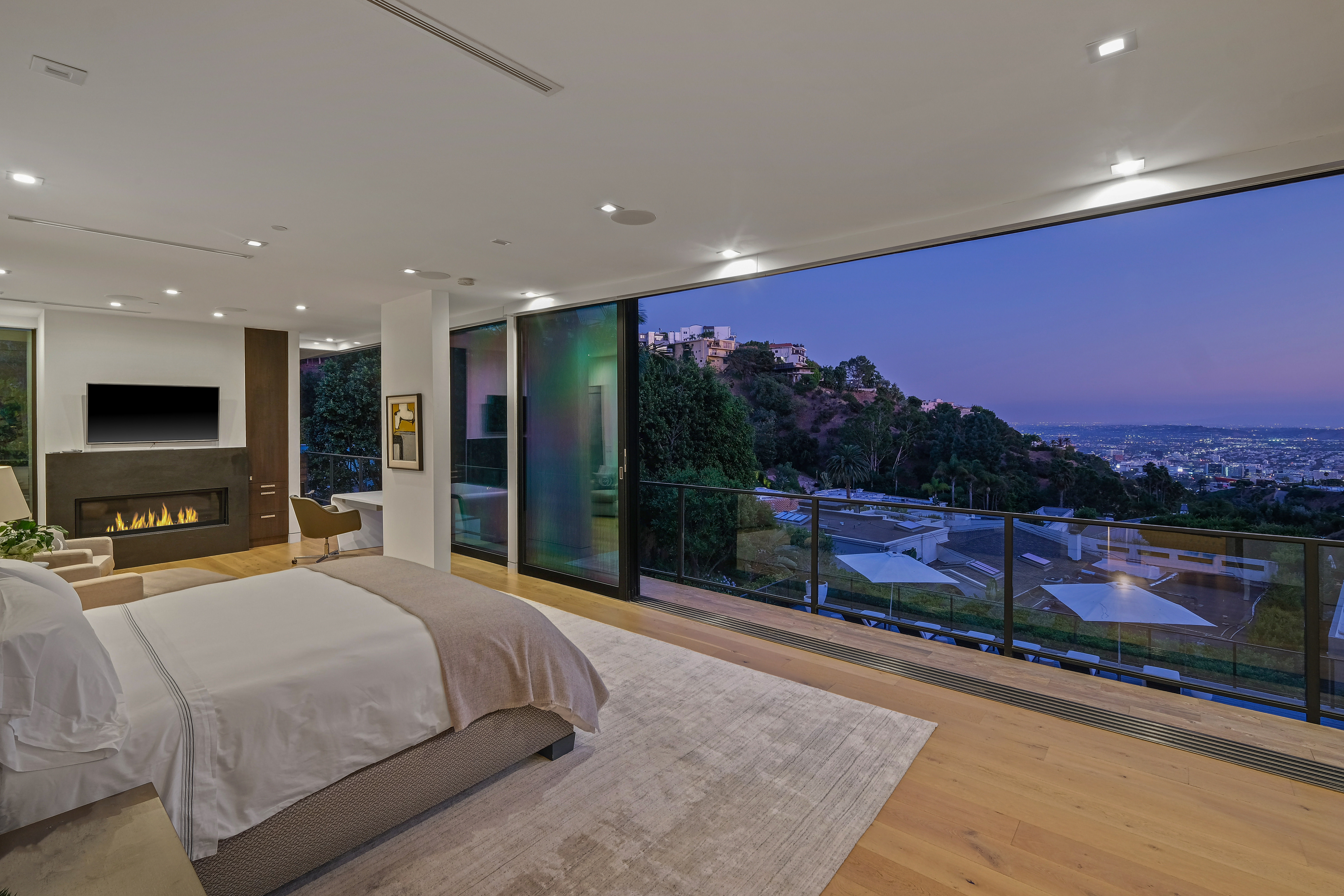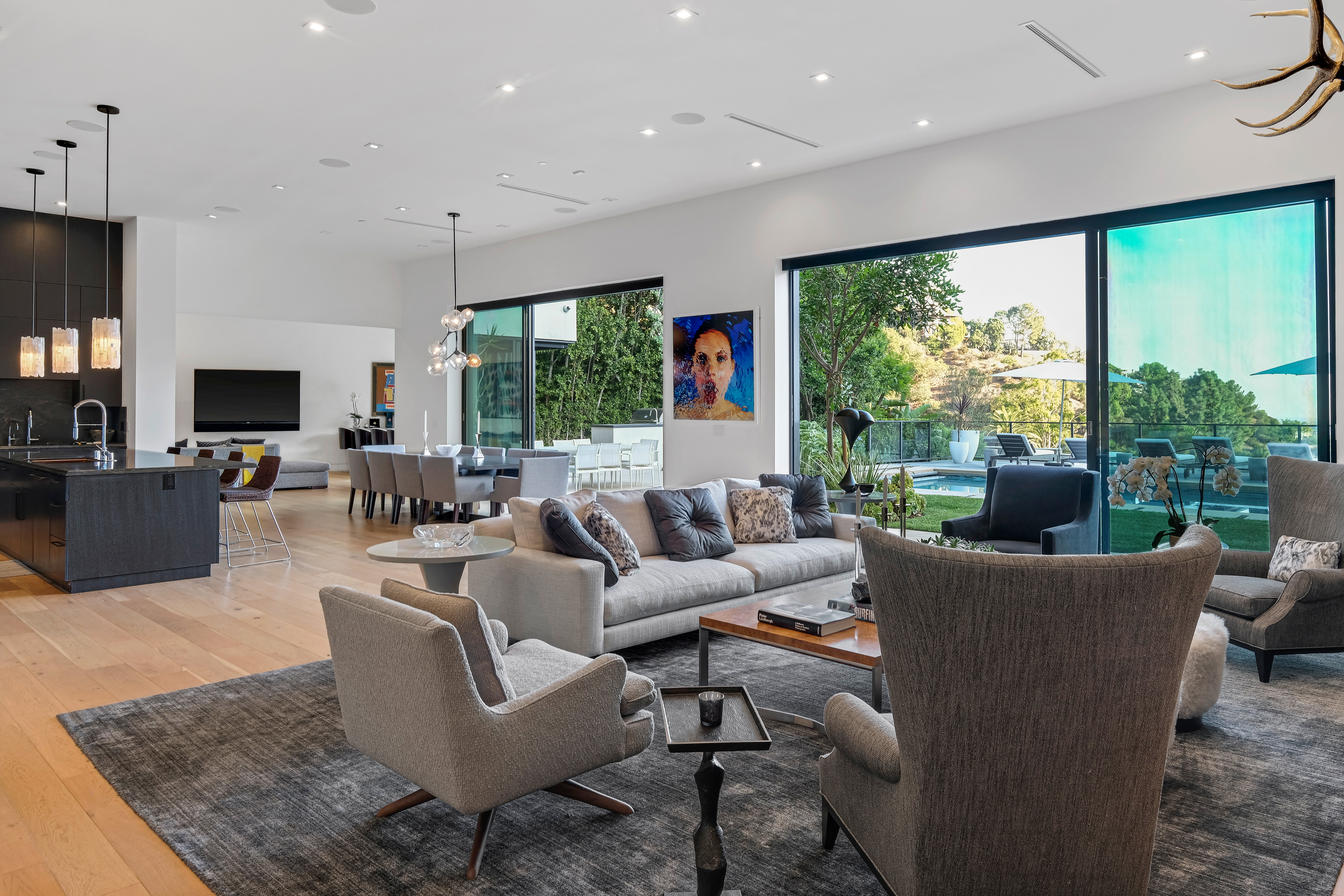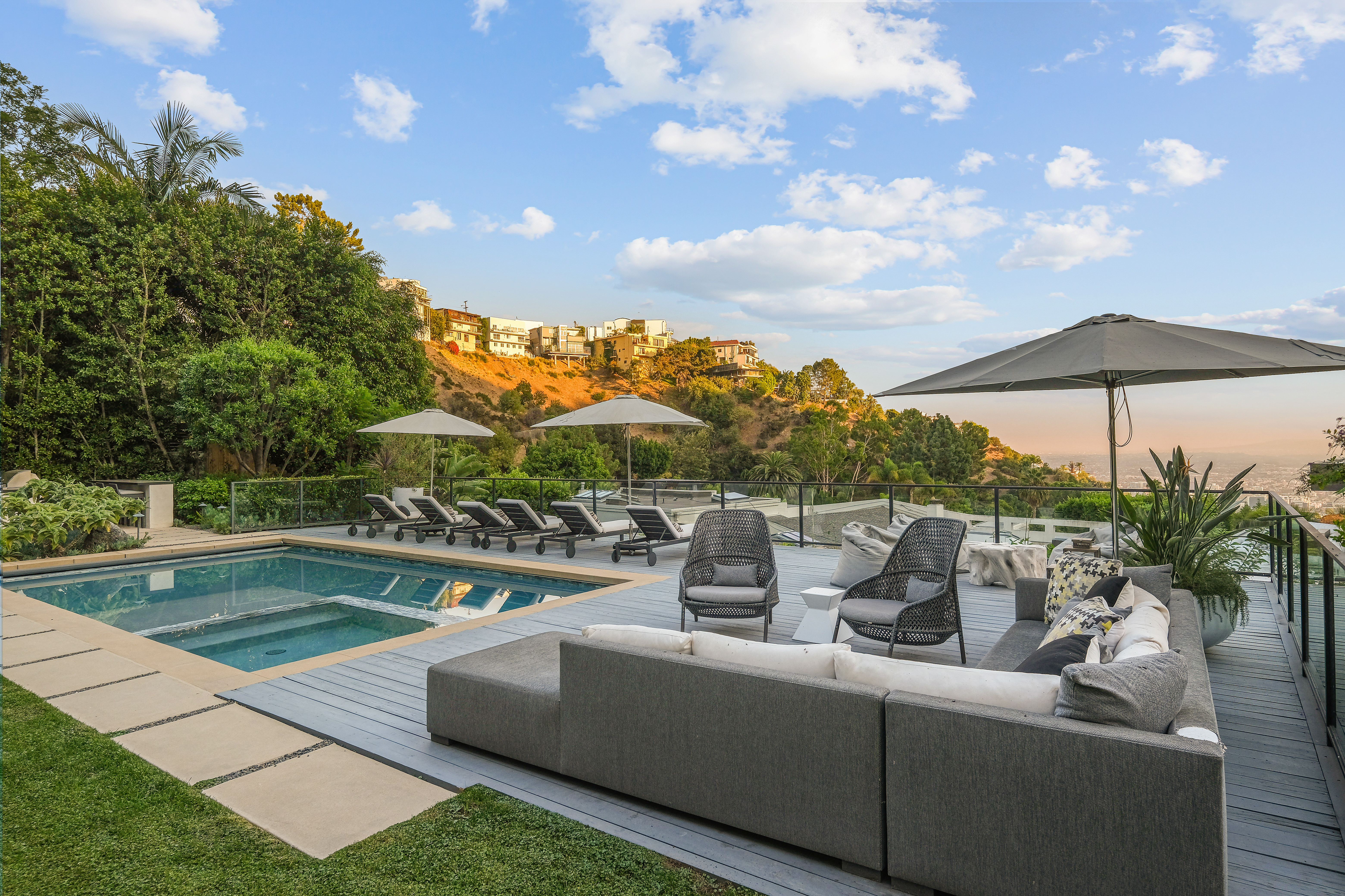 Set behind private gates on one of the Bird Street's most coveted cul-de-sac streets, this contemporary estate offers complete seclusion while boasting stunning city-to-ocean and canyon views. An open floor plan with soaring ceilings lined by massive Fleetwood doors boasts exceptional indoor-outdoor living and abundant natural light. A sleek Chef's kitchen comes replete with an impressive island, dual copper sinks, Miele appliances, and custom cabinetry with black marble countertops. The owner's suite occupies the entire upper level and includes an art gallery, a double-bath suite, dual walk-in closets, and multiple terraces to soak in the breathtaking views. The expansive backyard is a tranquil retreat with large pool and spa, grassy yard, outdoor bbq/kitchen, and ample space for entertaining.
