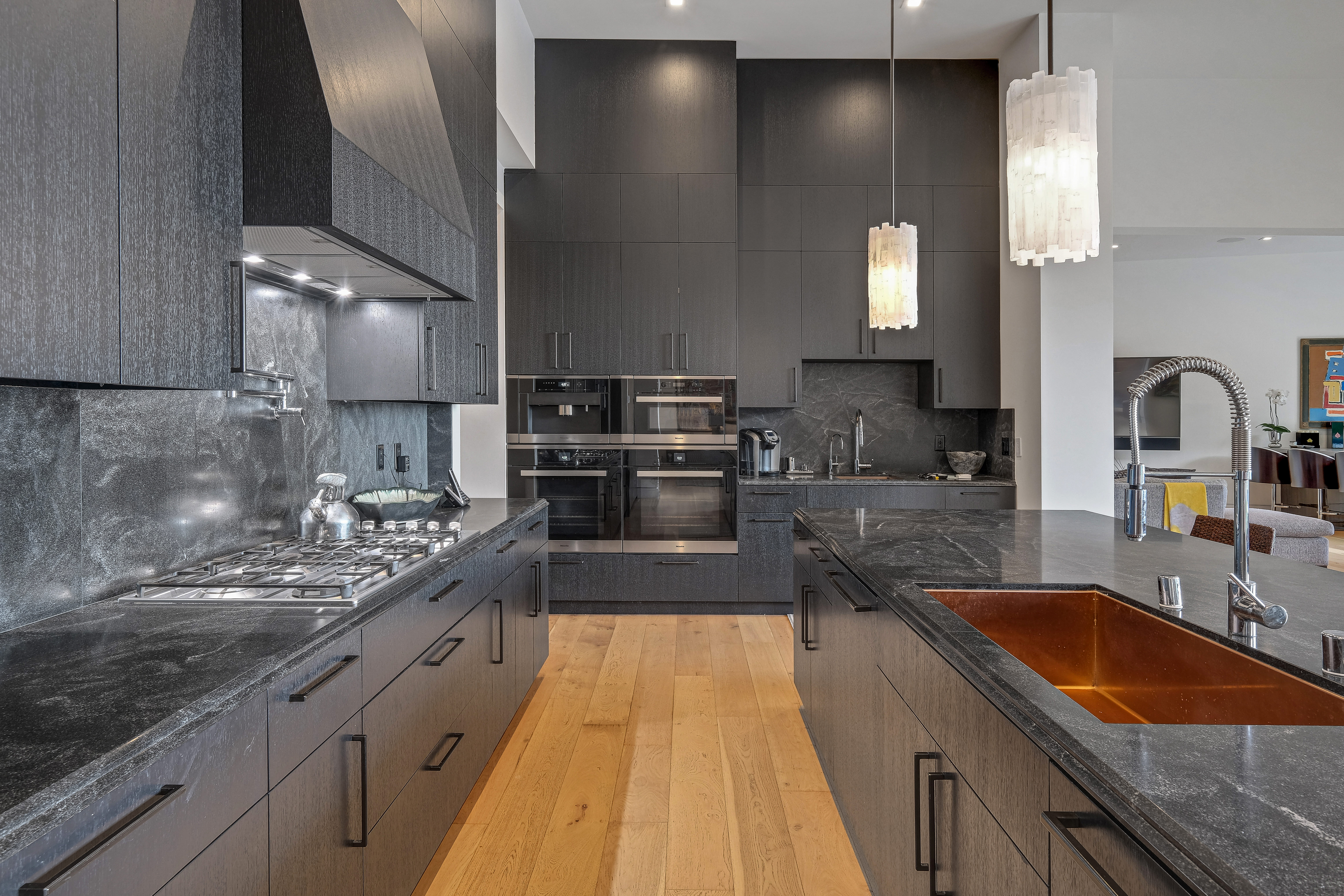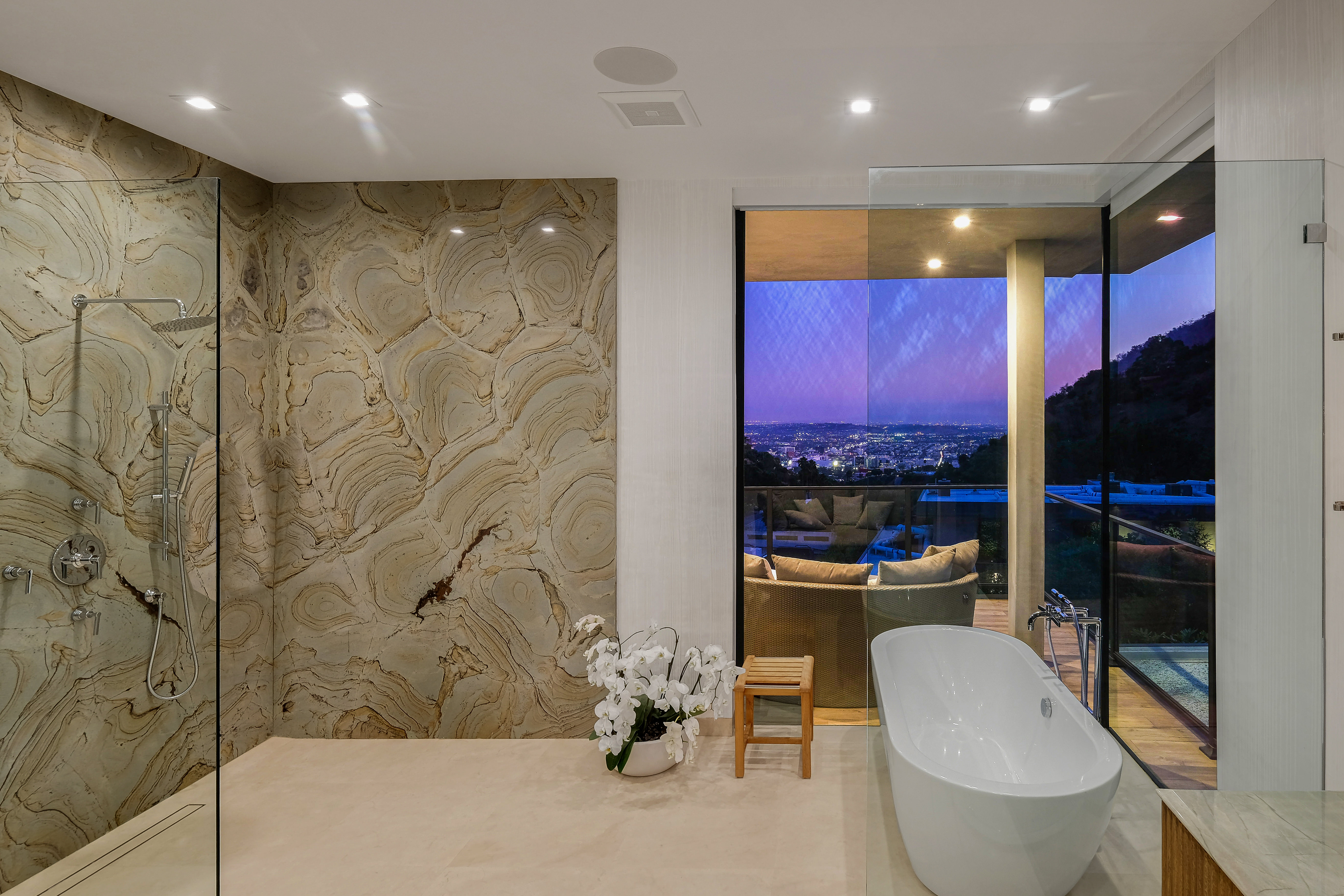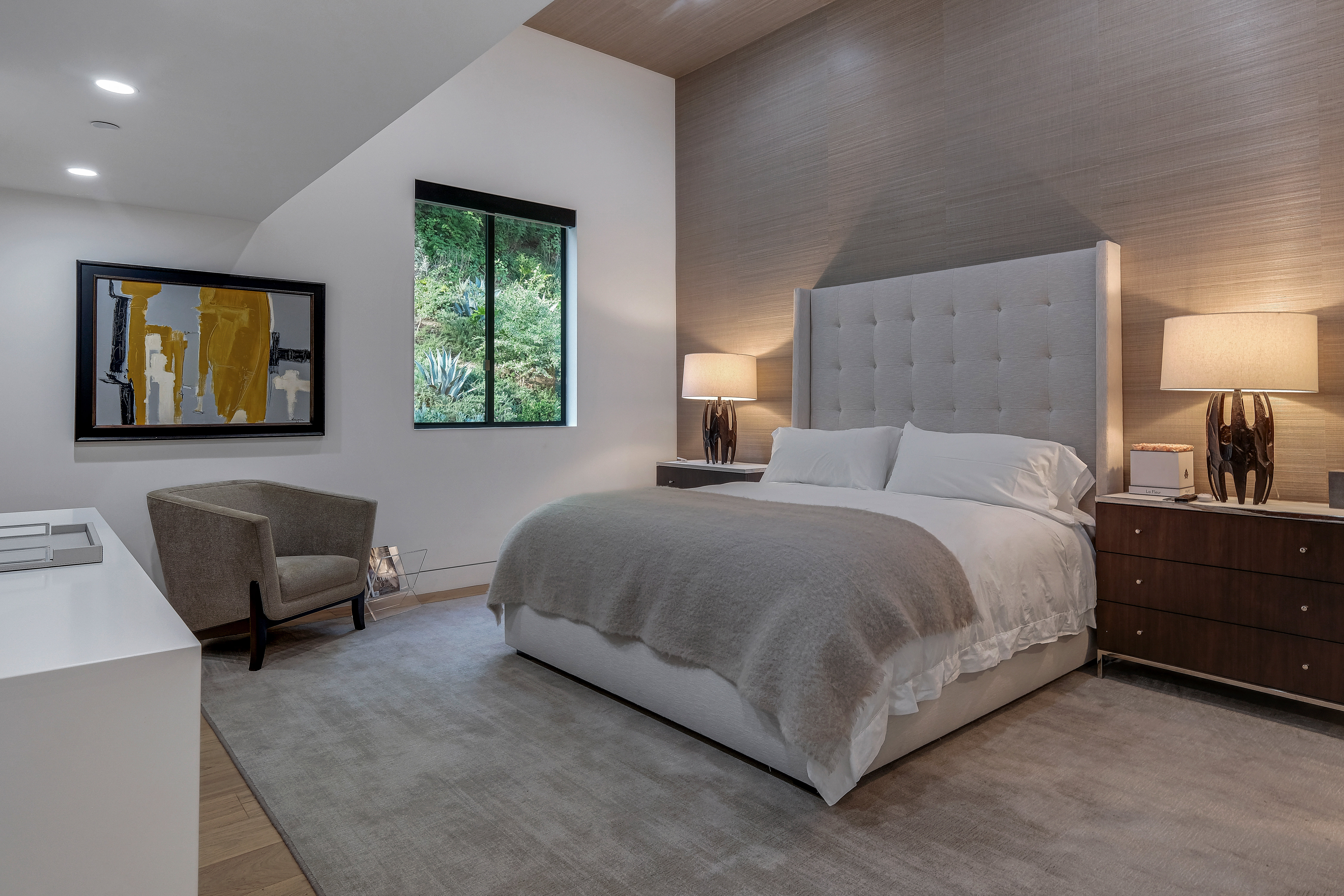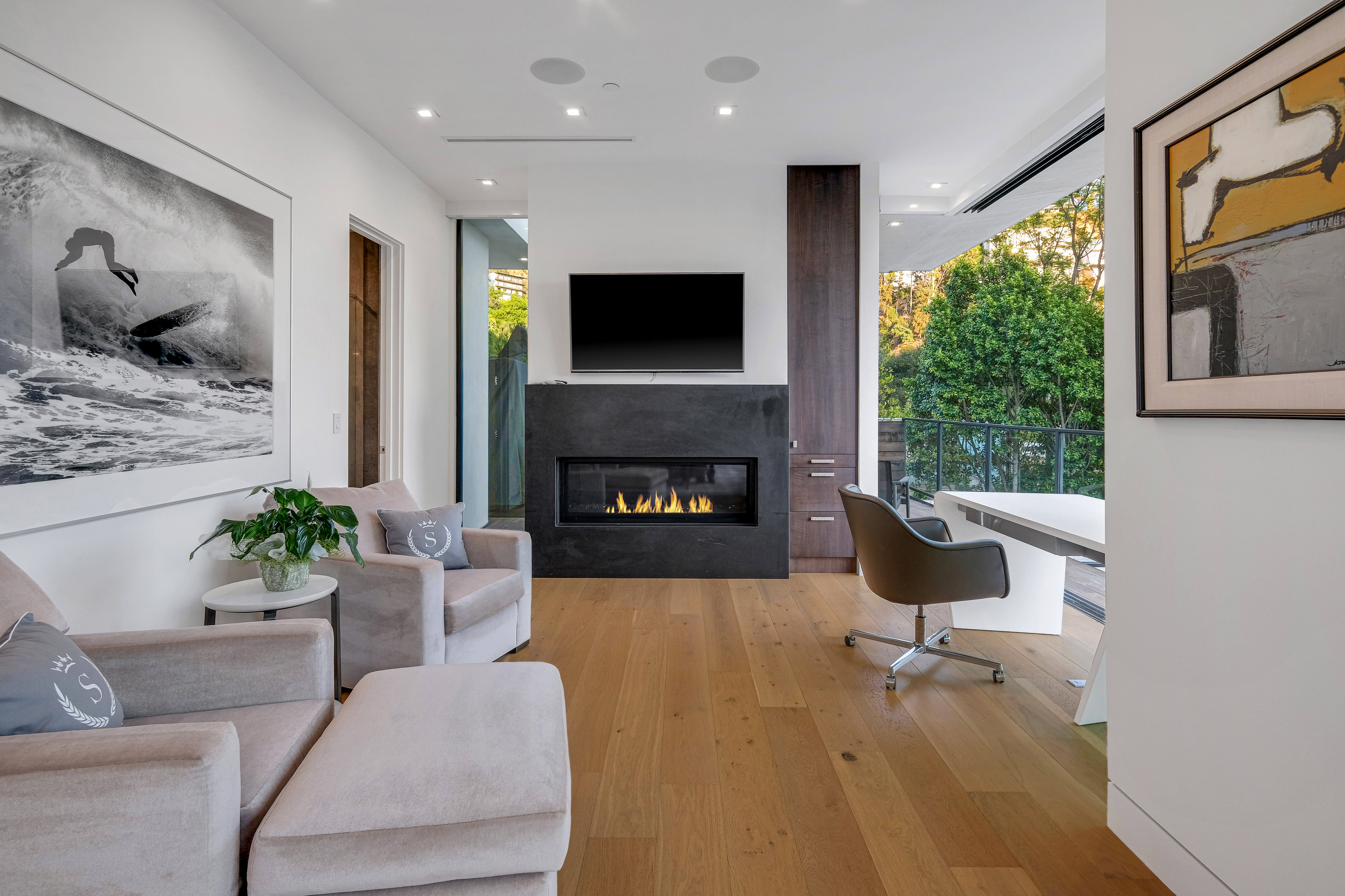 Set behind private gates on one of the Bird Street's most coveted cul-de-sac streets, this contemporary estate offers complete seclusion while boasting stunning city-to-ocean and canyon views. An open floor plan with soaring ceilings lined by massive Fleetwood doors boasts exceptional indoor-outdoor living and abundant natural light. A sleek Chef's kitchen comes replete with an impressive island, dual copper sinks, Miele appliances, and custom cabinetry with black marble countertops. The owner's suite occupies the entire upper level and includes an art gallery, a double-bath suite, dual walk-in closets, and multiple terraces to soak in the breathtaking views. The expansive backyard is a tranquil retreat with large pool and spa, grassy yard, outdoor bbq/kitchen, and ample space for entertaining.