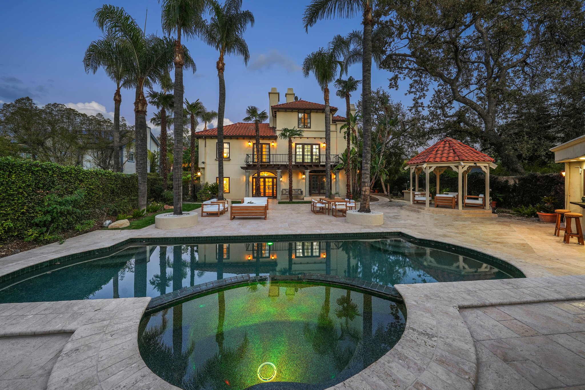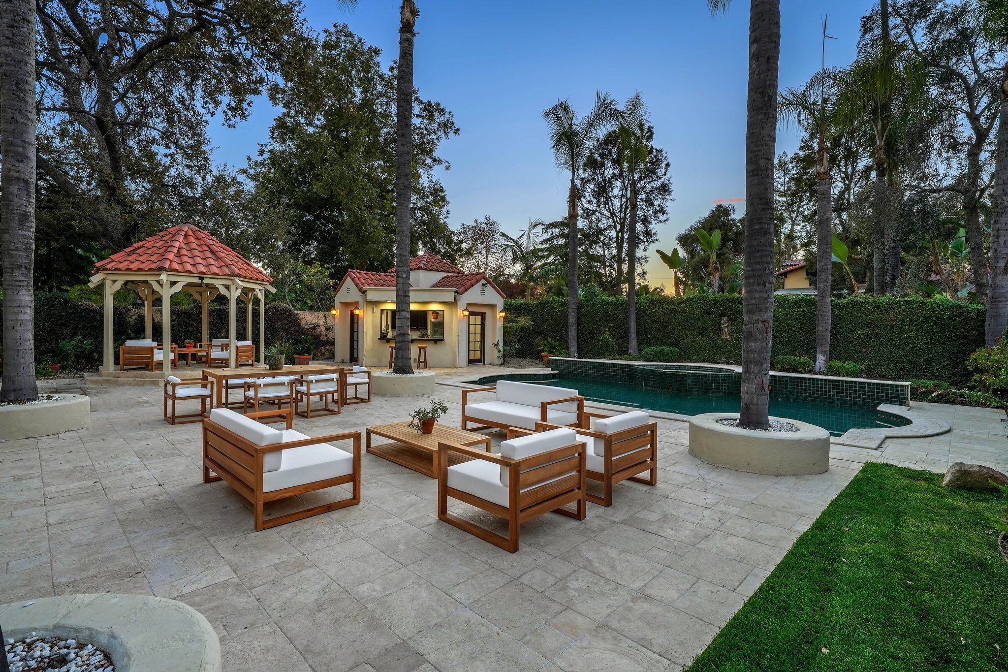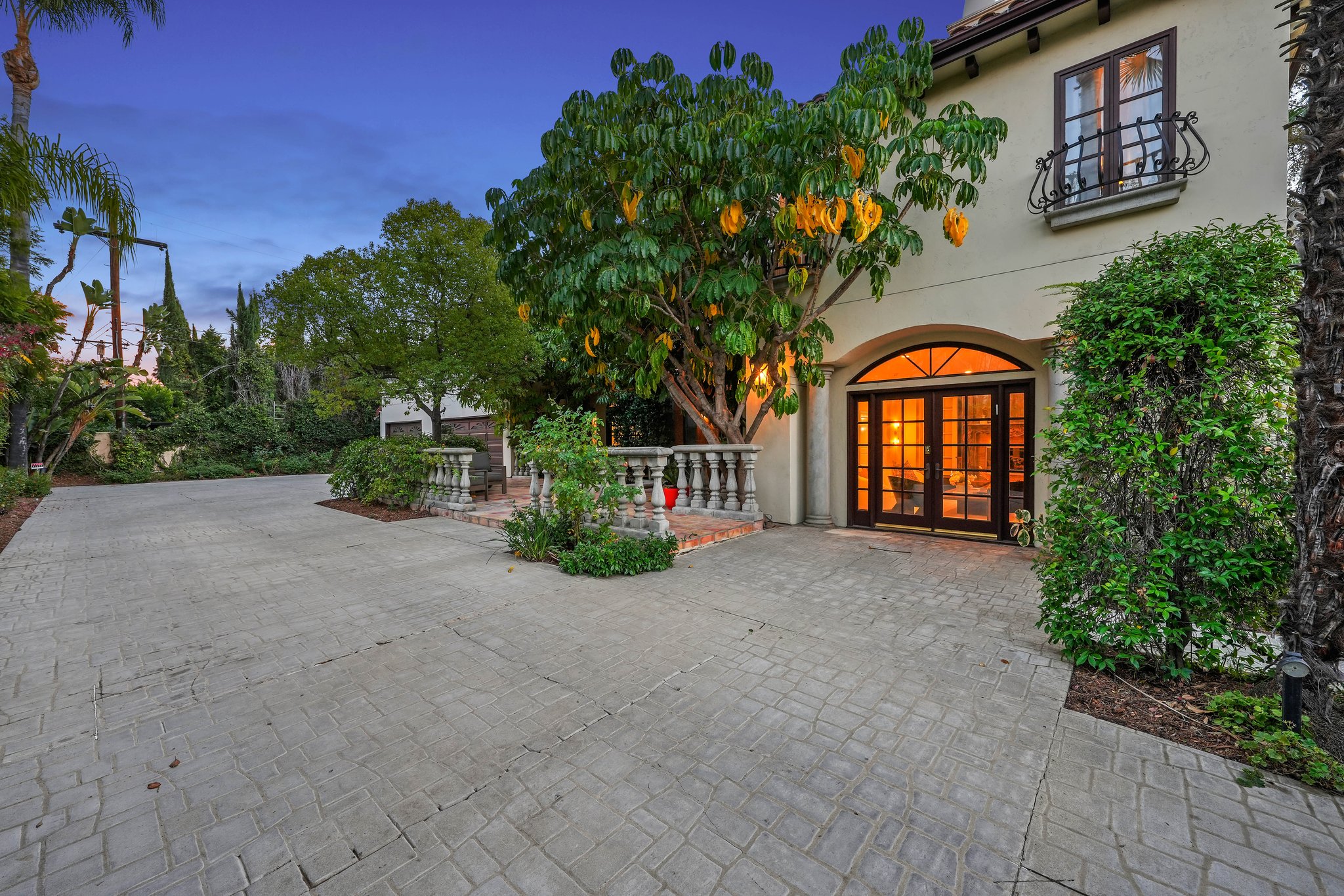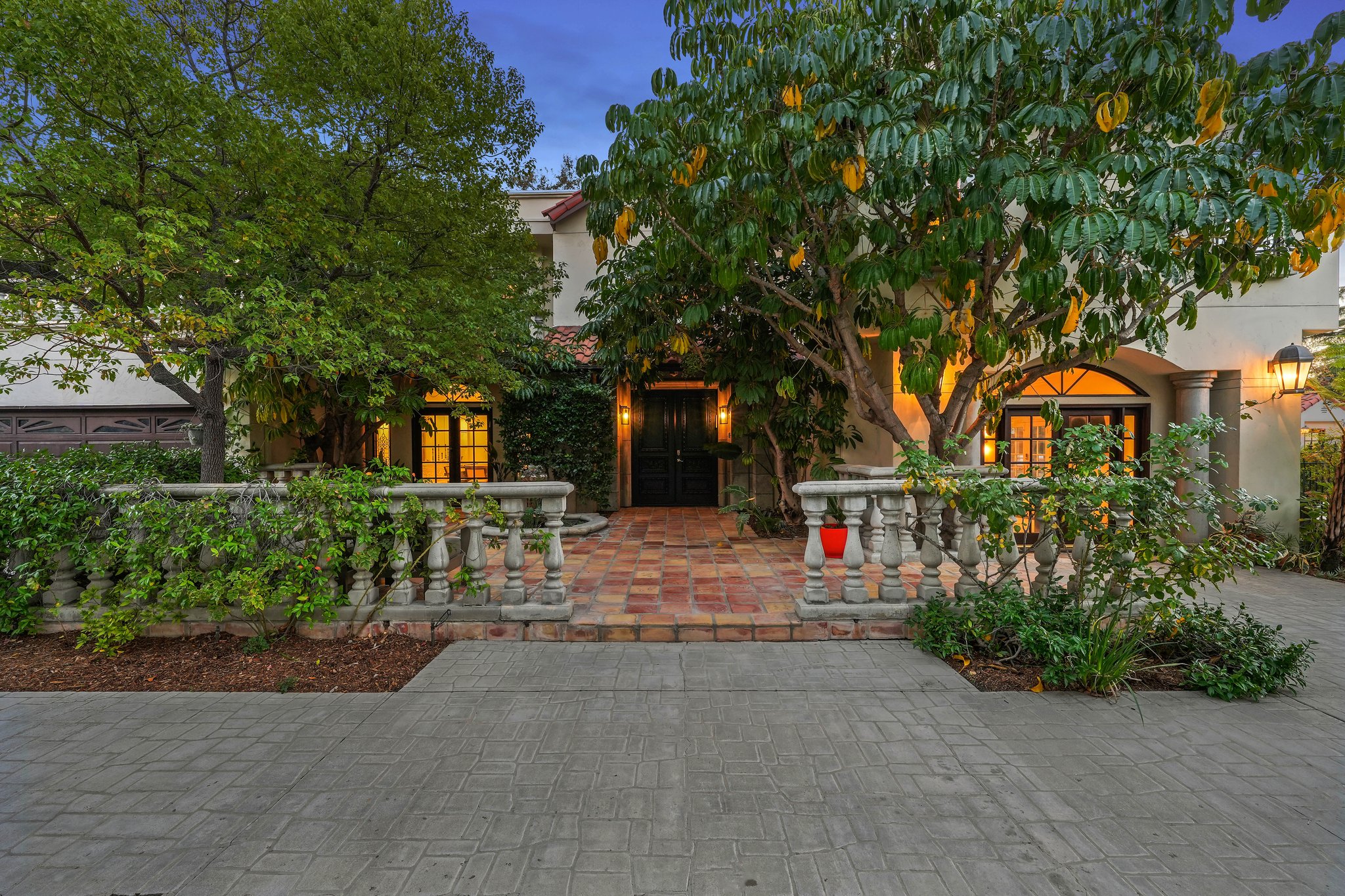 Nestled within the exclusive Amestoy Estates behind two private gates, this grand Spanish oasis is designed for entertainment and utmost privacy. Enter the estate through the long gated driveway which provides ample parking for up to six cars, and an additional four car garage. Upon entry to the home, you're welcomed by lofty cathedral ceilings and a majestic staircase. Ascending to the upper level, you will find a sprawling primary bedroom and bath featuring a luxurious soaking tub and massive walk-in closet, and four additional generously sized bedrooms. Downstairs, you'll discover the meticulously renovated chef's kitchen, graced with high-end appliances, a spacious center island, two full-size refrigerators, three ovens, three sinks, a wine/beverage refrigerator, and a walk-in pantry. A separate prep kitchen with its own sink and refrigerator adds to the culinary allure and enhances the functionality of the home. Adding an element of entertainment, a spacious movie theater creates an inviting atmosphere for relaxation. The indoor space seamlessly extends to the pergola-covered outdoor dining area and the resort-style backyard. This backyard oasis boasts a spacious pool and spa, mature palm trees, a gazebo, two built-in barbecues, an outdoor bar, a substantial gated dog run, and various entertaining and dining areas. Undoubtedly the most well priced home in Encino and beyond.