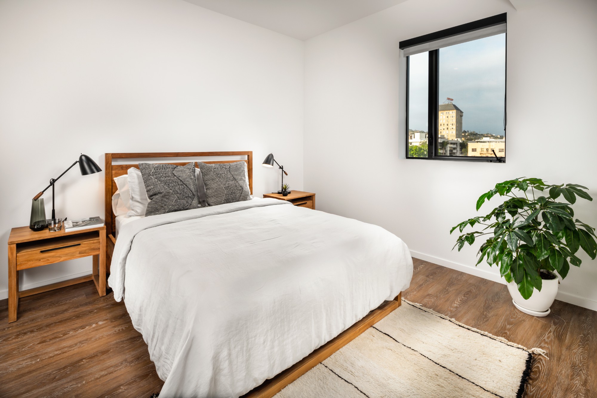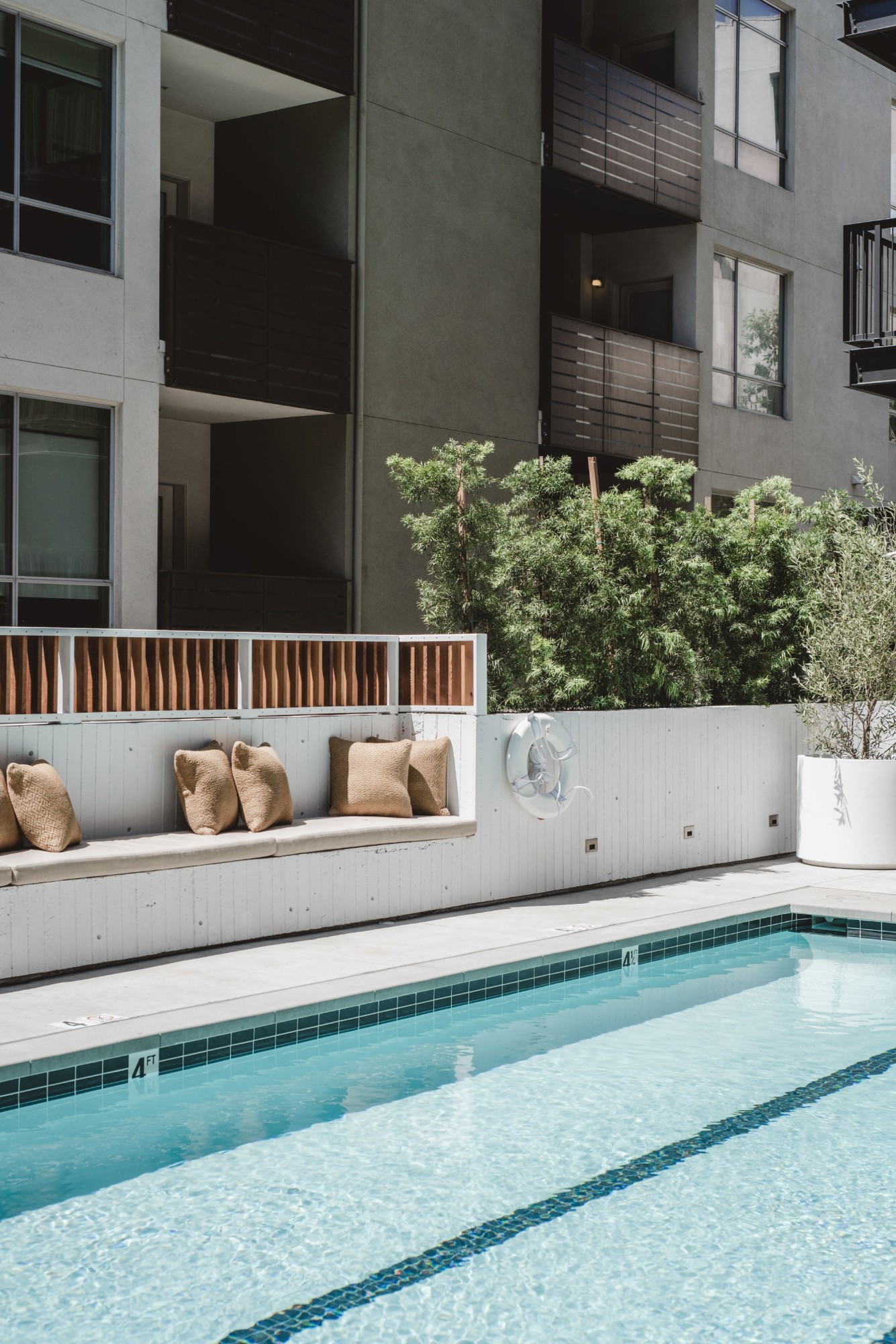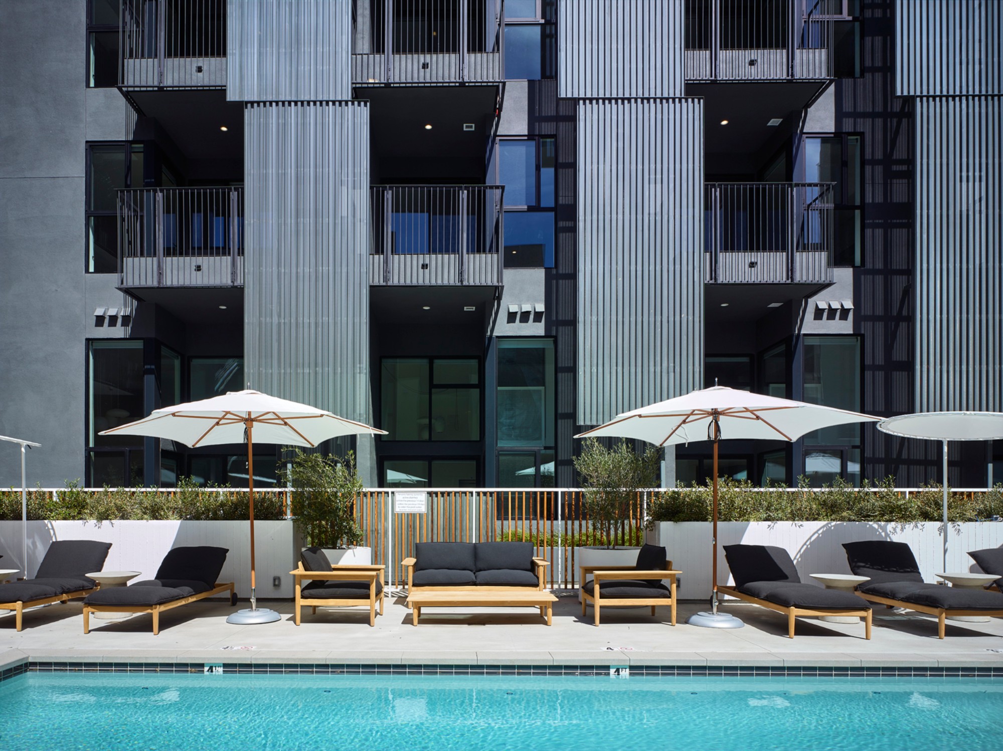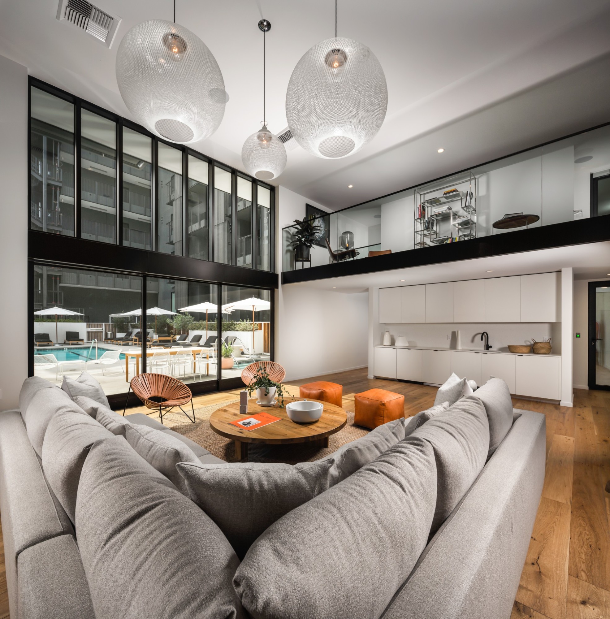 A modern classic rising above its surroundings, The Line Lofts sets the new standard for modern Hollywood architectural residences and creative living. Designed with details in mind, these exclusive luxury residences feature open living spaces with double-pane architectural windows that offer spectacular views and generous natural light in every unit. Residences range from 415 to 1,477 square feet and boast high-end fixtures, hardwood flooring, energy-efficient lighting, and GE appliances. Limited to just 82 luxury units, amenities include a second-level pool deck extending from The Recreation Room, and the penthouse-level Sky Lounge featuring sweeping views of Los Angeles from the Hollywood Hills to Downtown. Just steps away from bustling Hollywood Boulevard, with nearby access to the 101 Freeway.