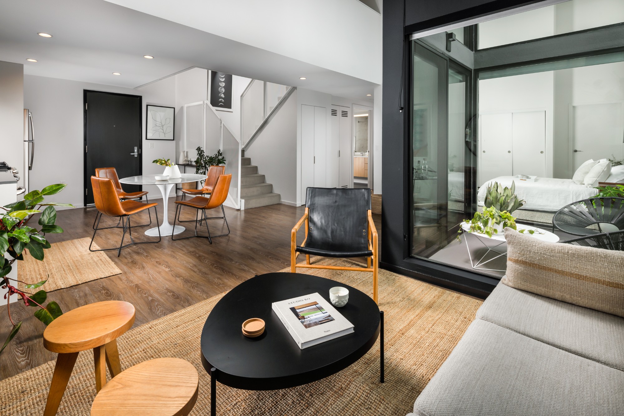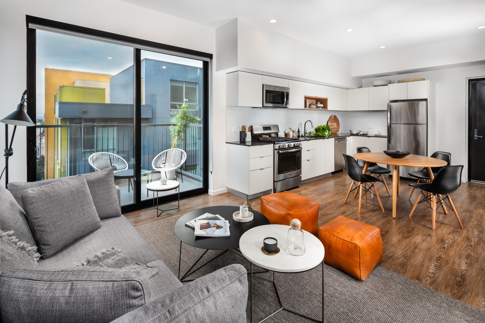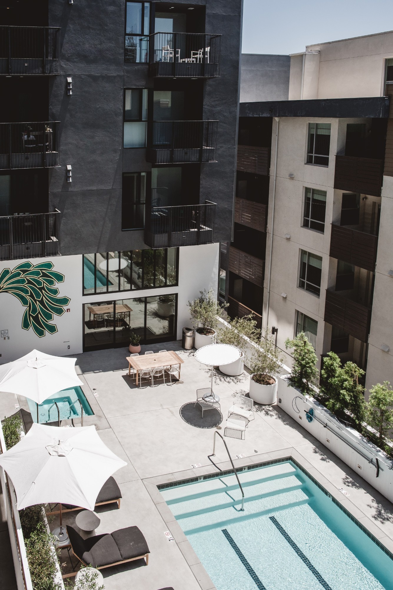 A modern classic rising above its surroundings, The Line Lofts sets the new standard for modern Hollywood architectural residences and creative living. Designed with details in mind, these exclusive luxury residences feature open living spaces with double-pane architectural windows that offer spectacular views and generous natural light in every unit. Residences range from 415 to 1,477 square feet and boast high-end fixtures, hardwood flooring, energy-efficient lighting, and GE appliances. Limited to just 82 luxury units, amenities include a second-level pool deck extending from The Recreation Room, and the penthouse-level Sky Lounge featuring sweeping views of Los Angeles from the Hollywood Hills to Downtown. Just steps away from bustling Hollywood Boulevard, with nearby access to the 101 Freeway.
