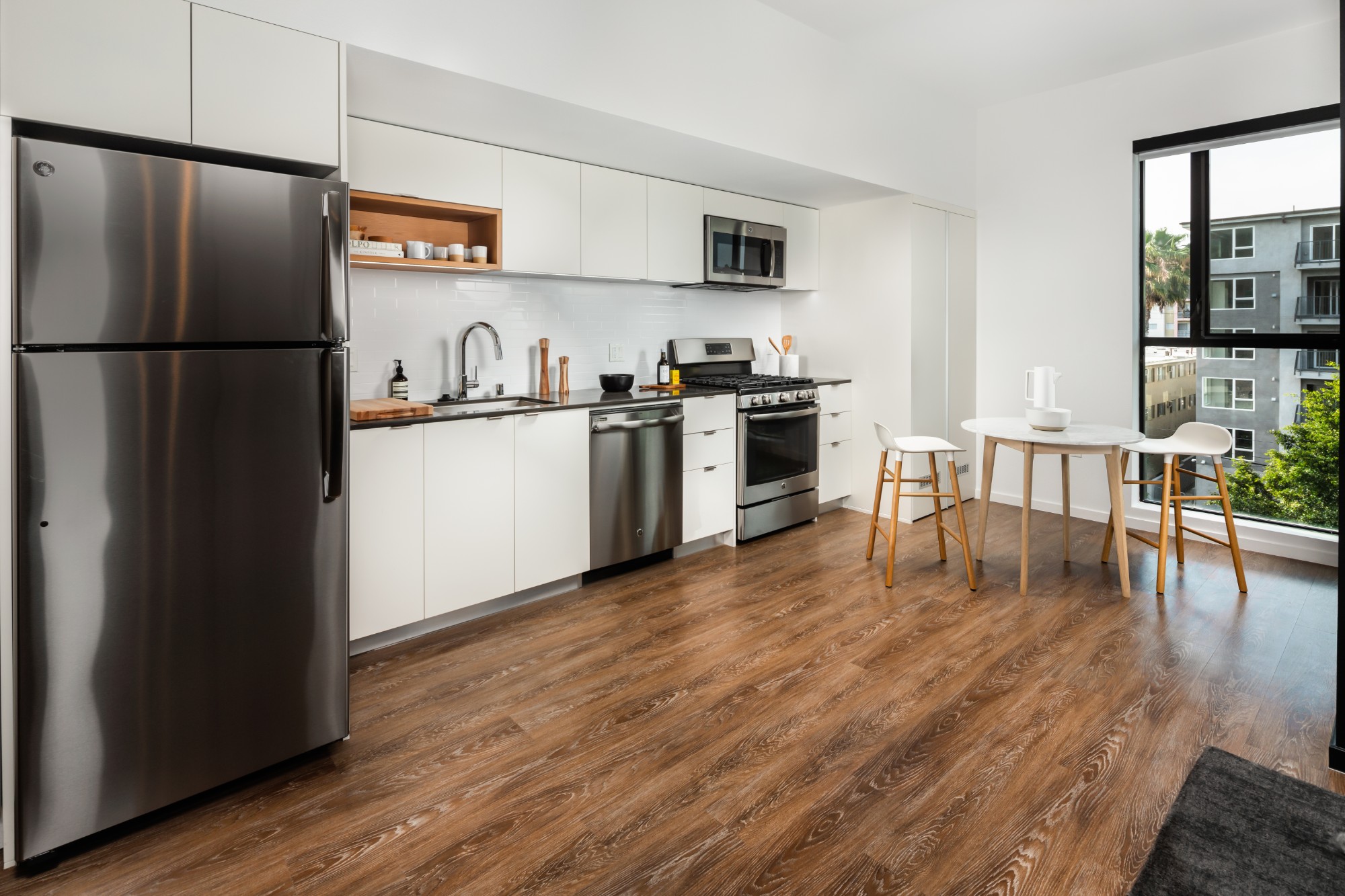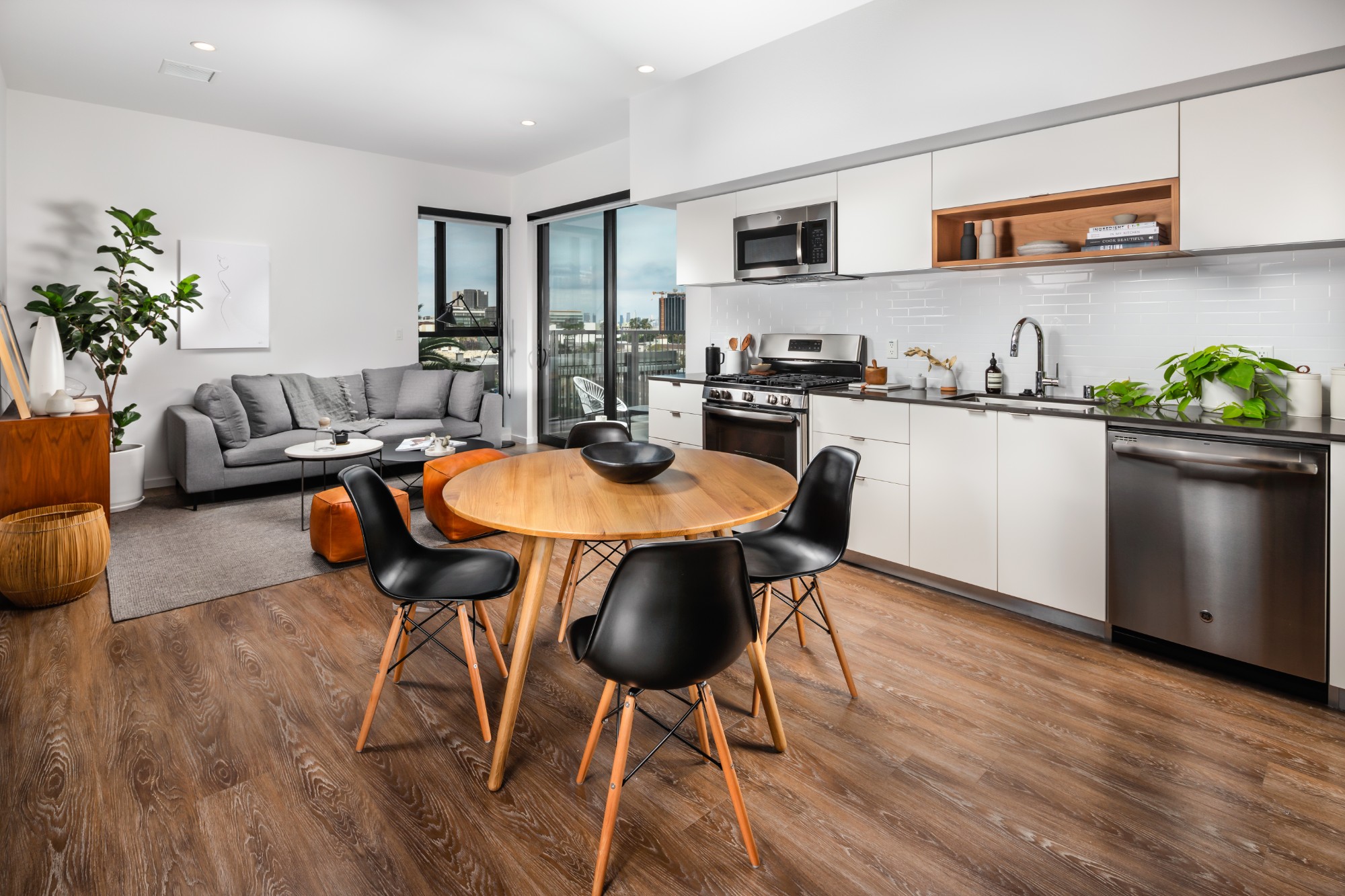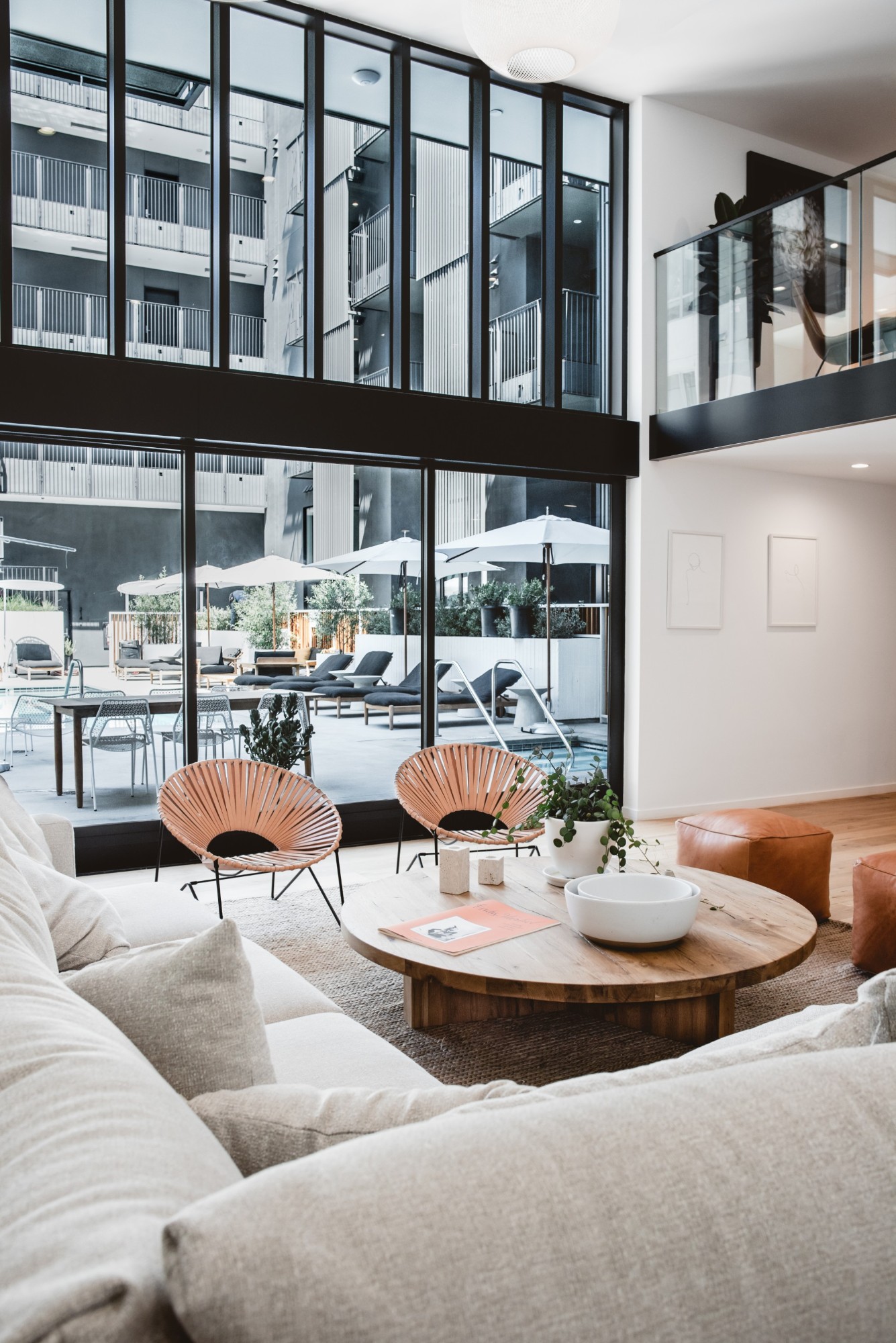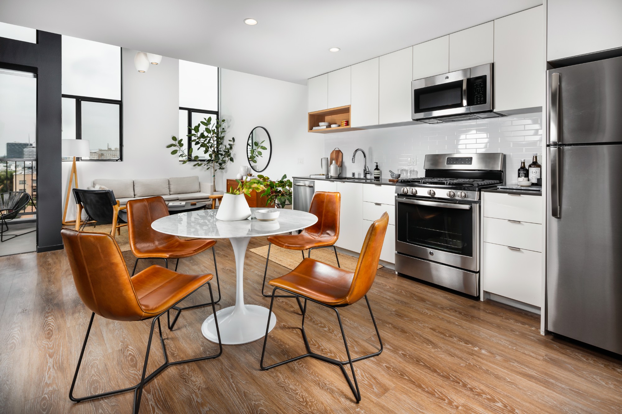 A modern classic rising above its surroundings, The Line Lofts sets the new standard for modern Hollywood architectural residences and creative living. Designed with details in mind, these exclusive luxury residences feature open living spaces with double-pane architectural windows that offer spectacular views and generous natural light in every unit. Residences range from 415 to 1,477 square feet and boast high-end fixtures, hardwood flooring, energy-efficient lighting, and GE appliances. Limited to just 82 luxury units, amenities include a second-level pool deck extending from The Recreation Room, and the penthouse-level Sky Lounge featuring sweeping views of Los Angeles from the Hollywood Hills to Downtown. Just steps away from bustling Hollywood Boulevard, with nearby access to the 101 Freeway.