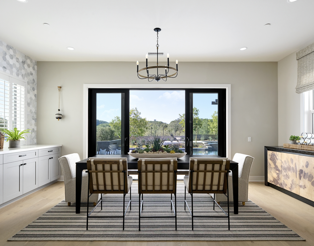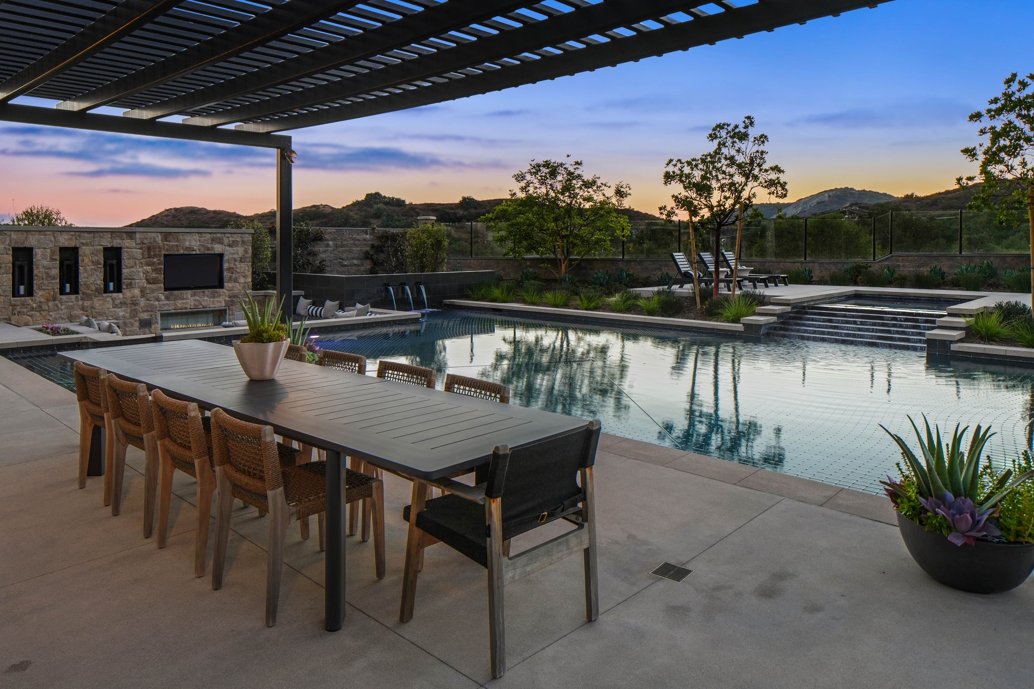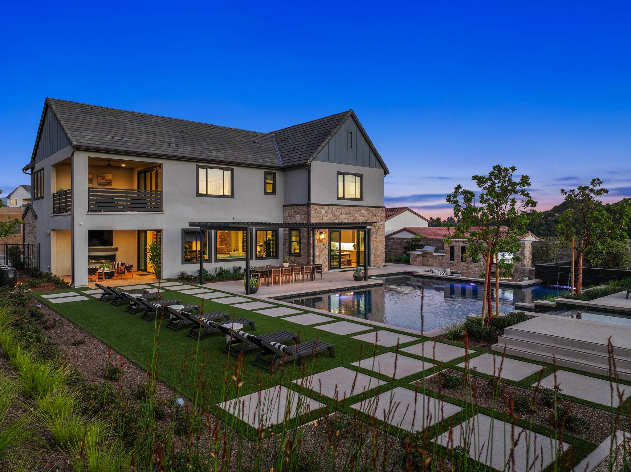 Welcome to Tri Pointe Homes Adler Plan 3 model home, now offered in the prestigious gated community of Adler at Saddle Crest. Nestled within the serene surroundings of Silverado and Silverado Canyon, this residence offers the perfect blend of luxury and tranquility, all while being just moments away from the vibrant lifestyle of Orange County. This home masterfully offers a harmonious blend of modern elegance and functional living, set against the breathtaking backdrop of stunning mountain views on just over half an acre. Spanning over 4,710 square feet, this expansive home is designed for both comfort and elegance. As you enter, you'll be greeted by a grand staircase that sets the tone for the sophisticated living spaces to follow. The formal dining area is perfect for hosting gatherings, while the casual nook and island seating in the gourmet kitchen provide a warm and inviting space for everyday meals. The living spaces seamlessly blend indoor and outdoor living with large sliding doors that open to a covered outdoor area, perfect for entertaining or relaxing by the resort-style pool and spa. The generous bonus room near the secondary bedrooms offers endless possibilities, whether it be a playroom, media room, or additional lounge space. Retreat to the luxurious primary suite, featuring a freestanding tub and two spacious walk-in closets with built-ins designed to maximize organization and ease. Completing this remarkable offering is a spacious 3-bay garage, providing ample room for vehicles and storage. Don’t miss the opportunity to make this stunning model home your own, where luxury meets the serene lifestyle of Silverado.