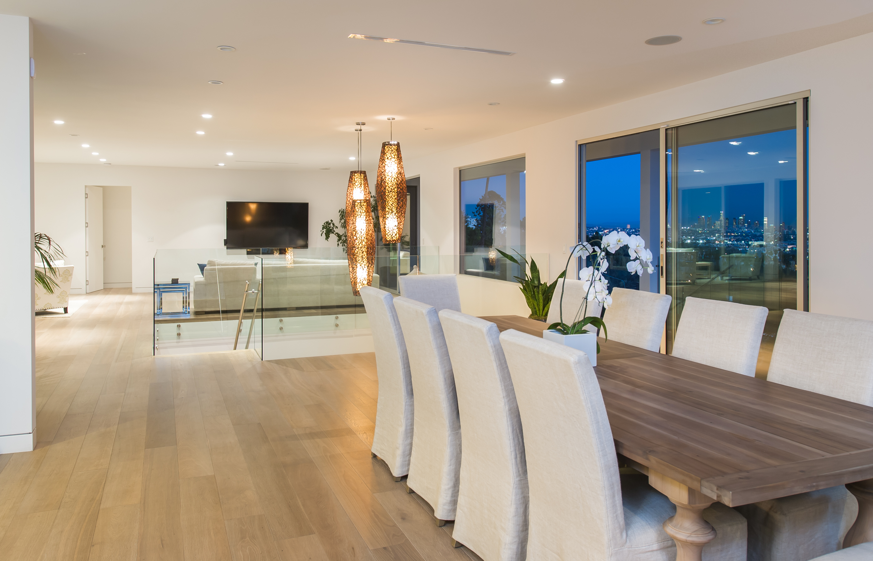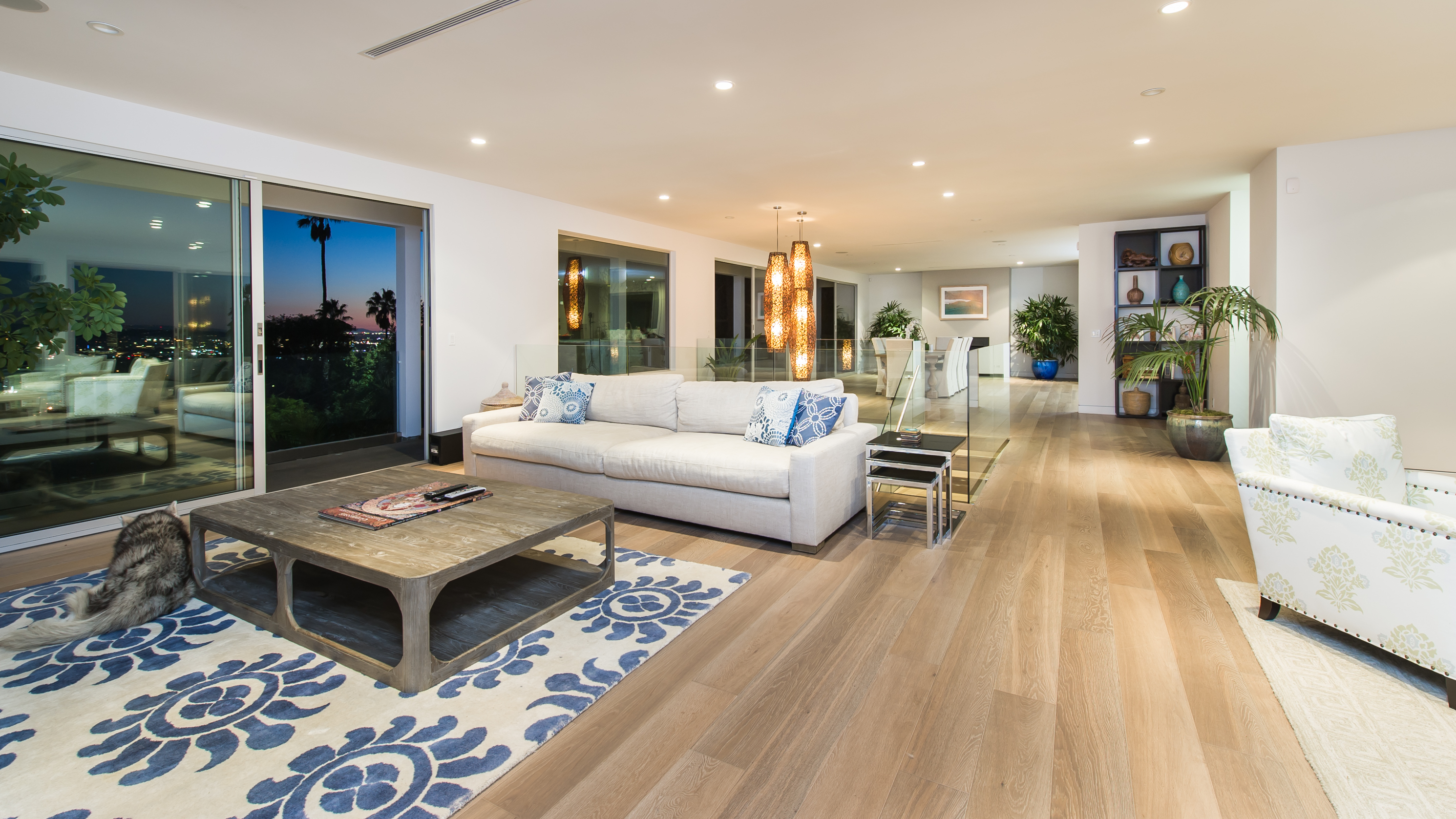 Nestled behind private gates and a long driveway, this expansive contemporary estate boasts quality finishes, meticulous craftsmanship, and stunning city and ocean views. Refined and sophisticated, the open floor plan enjoys high ceilings, bountiful natural light, and a designer chef’s kitchen replete with steel appliances and a tremendous center island. The sweeping backyard is landscaped to perfection with plentiful grass and a sizeable pool and spa.