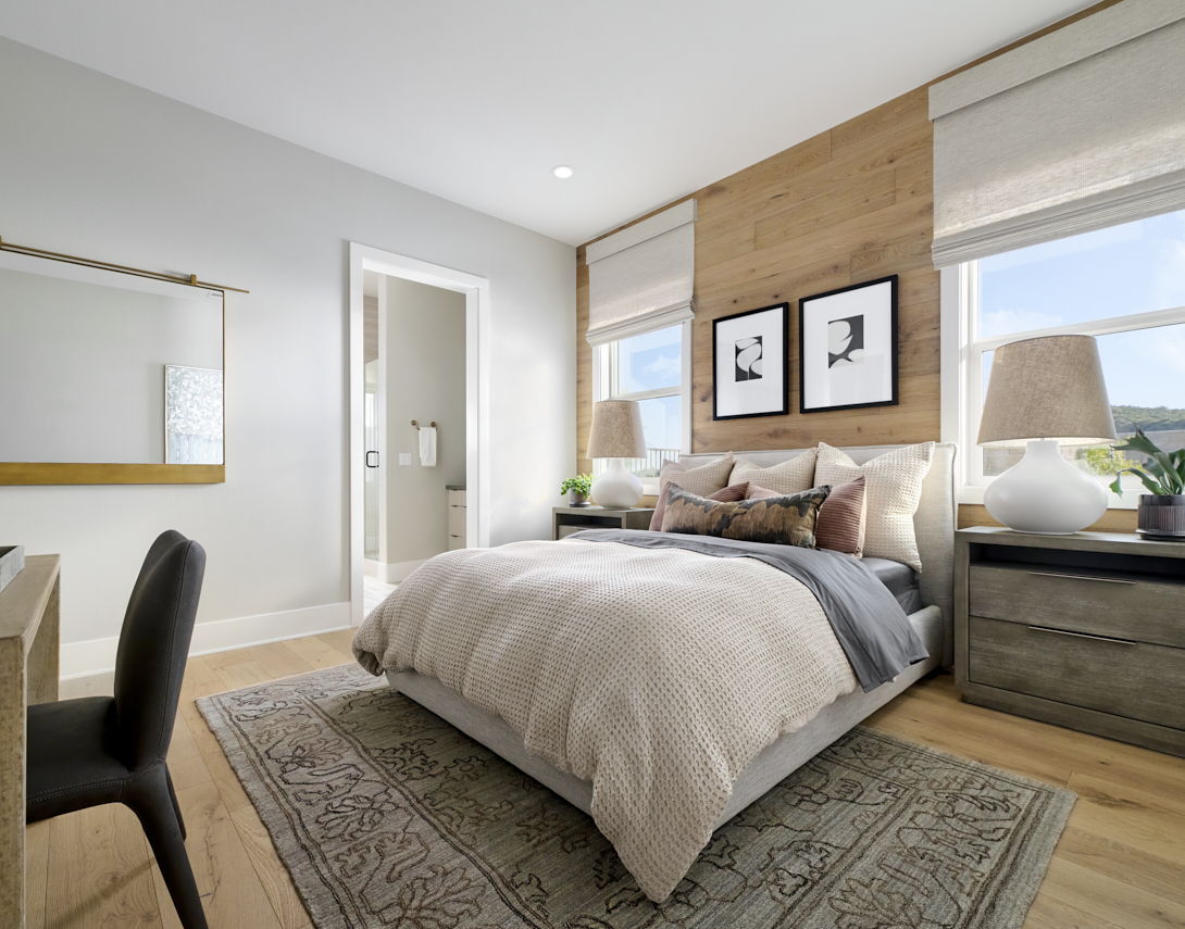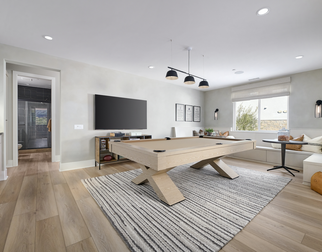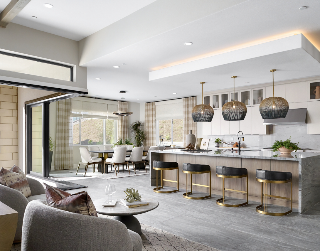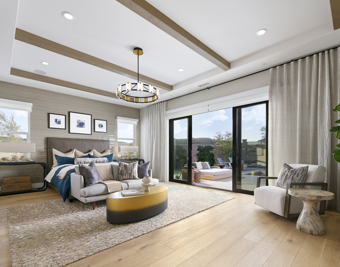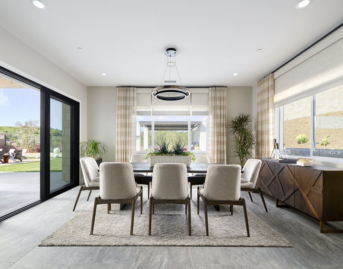 Welcome to Adler at Saddle Crest, a gated community that offers the perfect balance of tranquility and accessibility, allowing you to enjoy the best of what Orange County has to offer while feeling away from it all. This stunning Tri Pointe Homes Adler Plan 2 model home is now available in the beautiful Silverado/Silverado Canyon community. This home masterfully offers a harmonious blend of modern elegance and functional living, set against the breathtaking backdrop of stunning mountain views on just over half an acre. Upon entry, you are greeted by a grand courtyard leading to an outdoor seating area featuring a cozy fireplace and ambient lighting that creates an ideal, relaxed atmosphere. The layout features seamless connectivity between the great room, dining area, kitchen, and covered outdoor living space, creating an inviting atmosphere for both relaxation and entertaining. The kitchen serves as the focal point of the home, showcasing light, neutral, flat-panel stacked cabinets paired with elegant quartz countertops and a waterfall-edge quartzite kitchen island. Large gray flooring tiles throughout the main living areas provide a contemporary feel, while the primary and guest bedrooms feature luxurious wood flooring for added warmth. Additional features include a dedicated office or flex room, a luxurious primary suite with an expansive walk-in closet, and an oversized laundry room with ample storage space. Custom built-ins are thoughtfully incorporated into the design, enhancing the great room fireplace, drop zone, office, and bonus room. The spacious great room opens directly to a large covered patio, ideal for outdoor living and relaxation by the fireplace. This space flows into a generous backyard designed for entertaining, complete with a built-in spa that serves as a luxurious retreat. The expansive outdoor area is perfect for gatherings, providing ample space for dining and entertaining, all while offering breathtaking views of the surrounding mountains. The 769 square feet second-floor bonus room, complete with its own private entry, offers flexibility for guests or additional living space. This home is thoughtfully crafted to meet the needs of modern living while maintaining a sense of comfort and style.