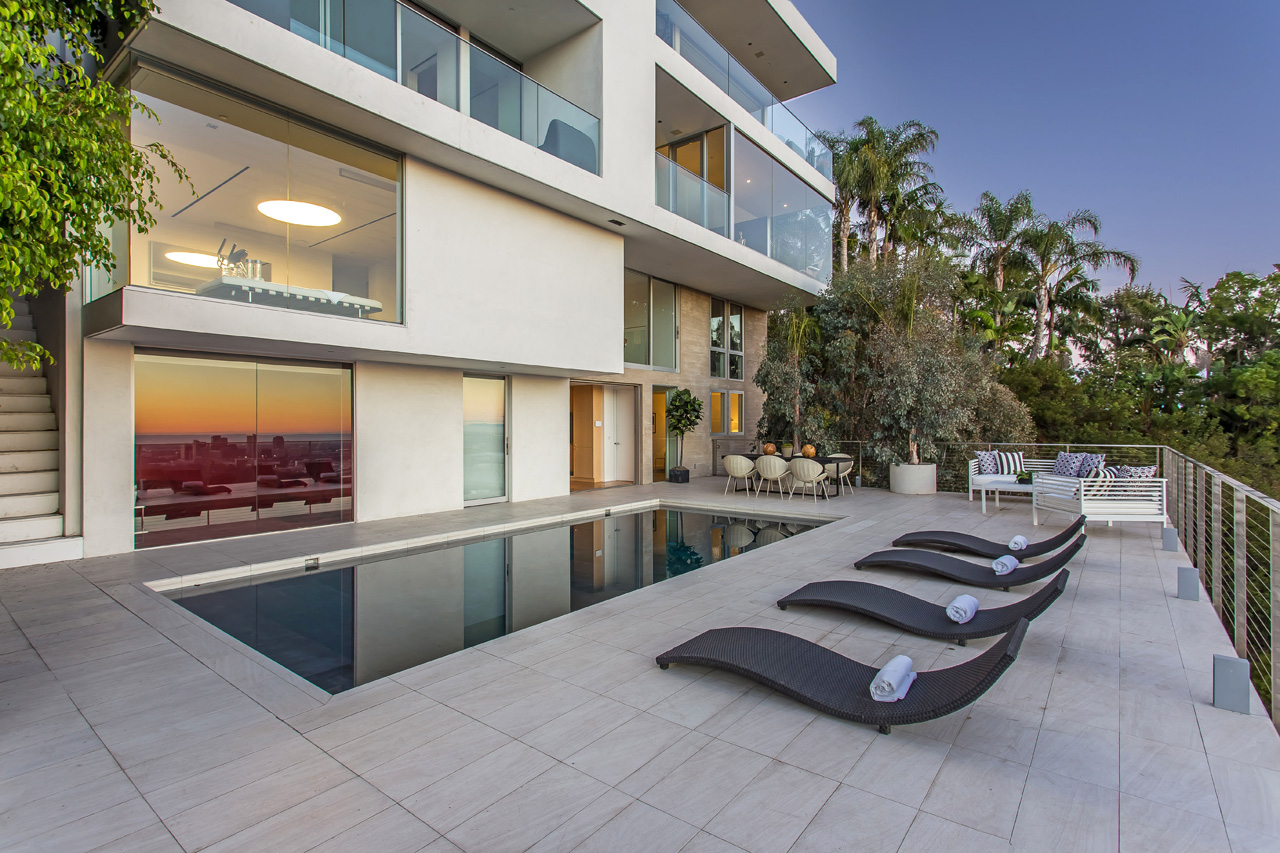 Newly constructed with refined craftsmanship, boasting soaring ceilings and panoramic unobstructed views from downtown to the ocean. Luxury amenities include a state-of-the-art theater room, gym/yoga studio, sauna, steam room, entertainer's pool deck and lounge with kitchenette, Boffi kitchen w/Miele and Wolf Appliances, Dom Vision home automation, in-wall iPads, surround in-wall sound system, and Boffi vanities/fixtures & electronic shades. Perfect for entertaining and enjoying the lifestyle of the Sunset Strip.