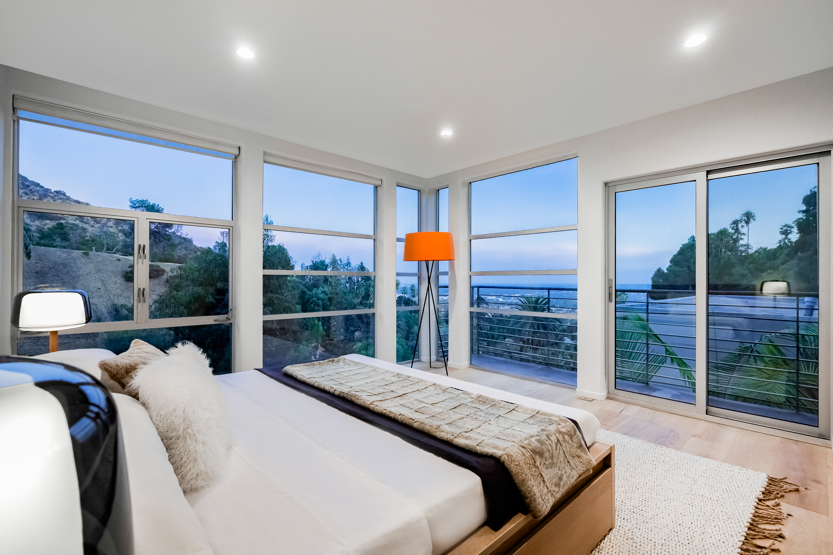 This completely remodeled contemporary home is situated in one of the most private and secluded streets in the Hollywood Hills. With 4BD/4BA, this home boasts walls of glass, multiple expansive decks, amazing city and canyon views, and a bright and airy open floor plan. The sleek kitchen has a beautiful center island and top-of-the-line appliances. Owner's suite comes replete with a huge walk-in closet, spa-like bath, fireplace, private deck, and floor-to-ceiling windows overlooking the breathtaking city views. The home includes a cozy den, elegant dining area, a large guest bedroom with a full bathroom and private balcony, and a massive family room, and a large sun deck. Grassy side yard and 3-car garage.