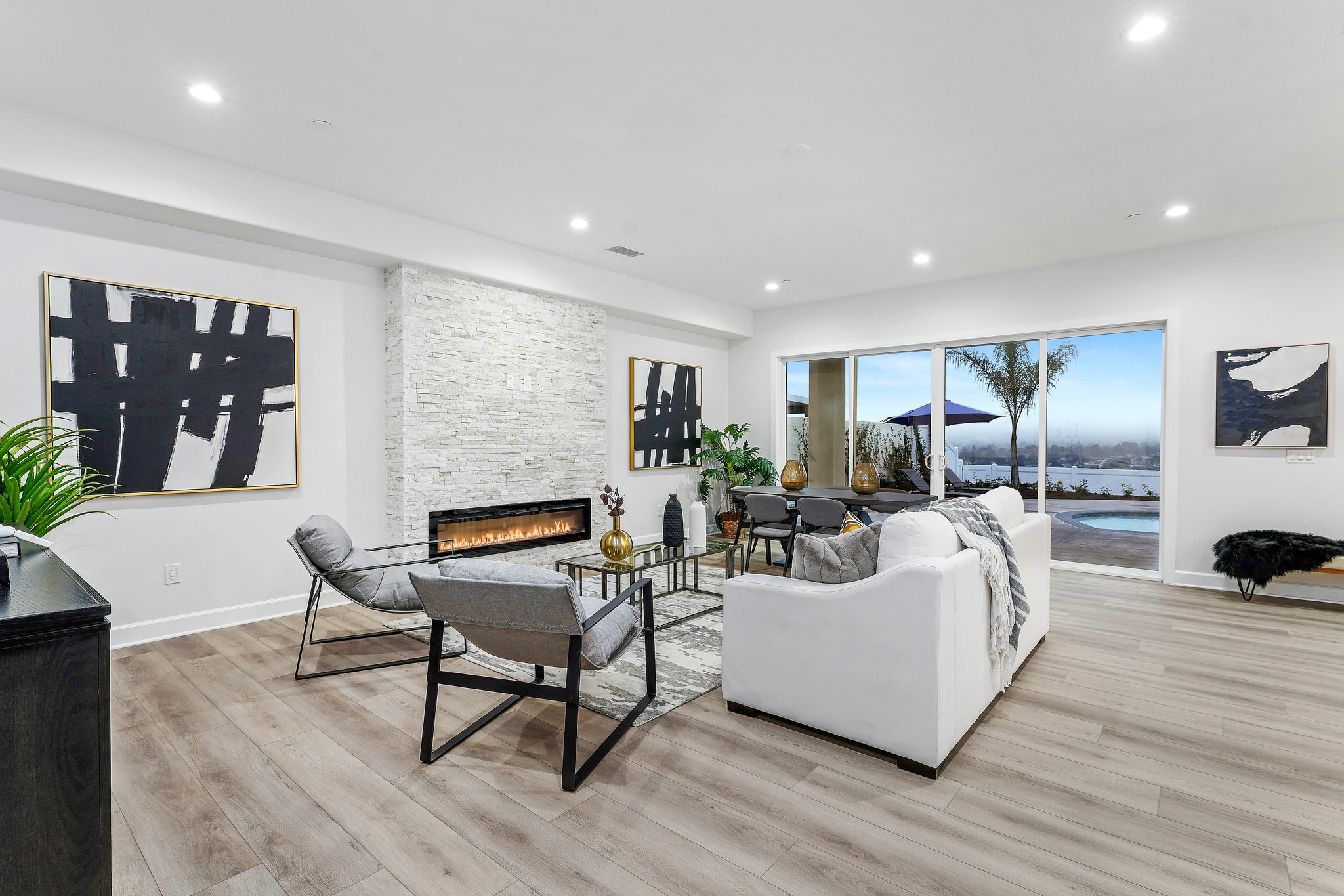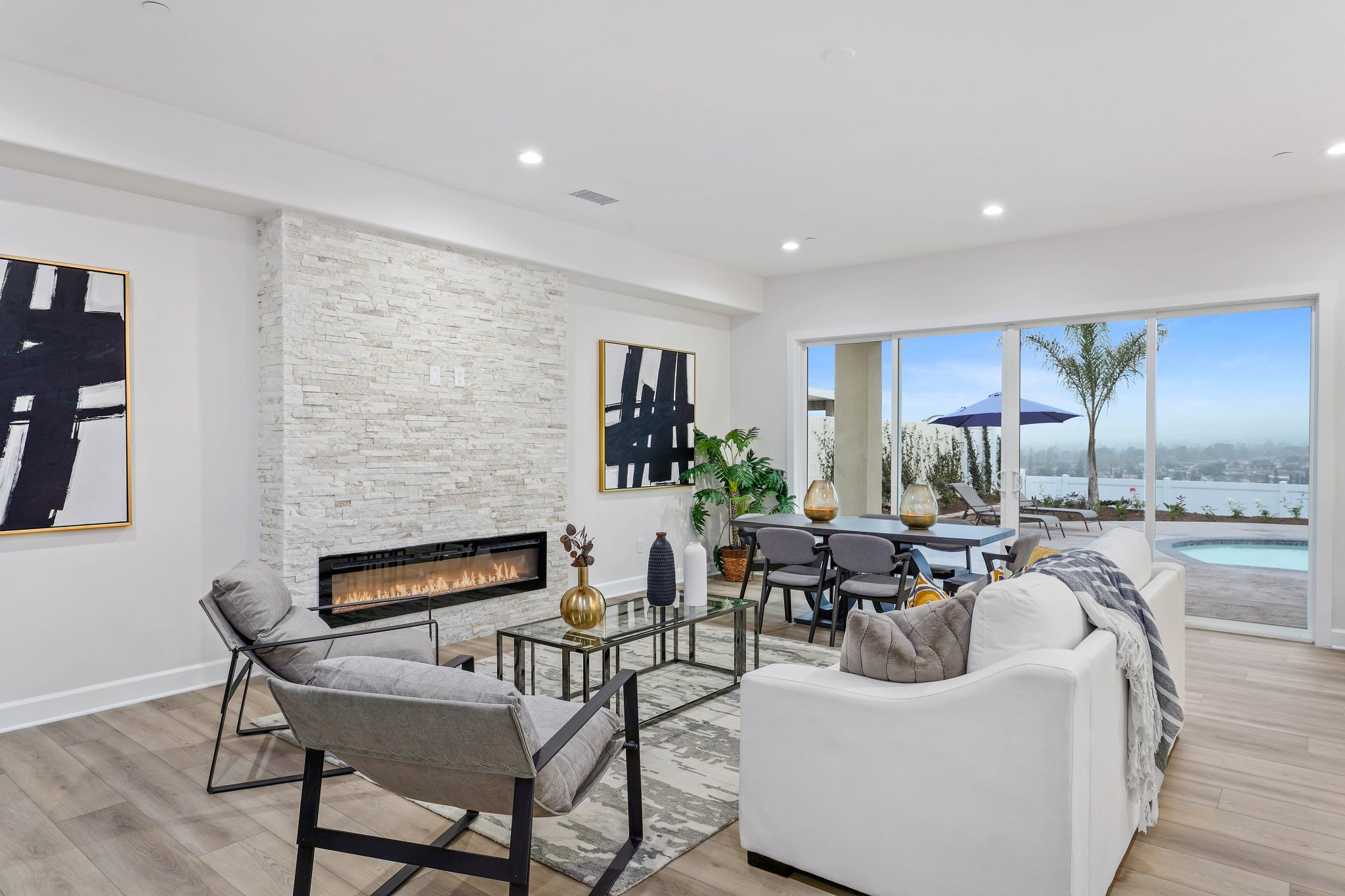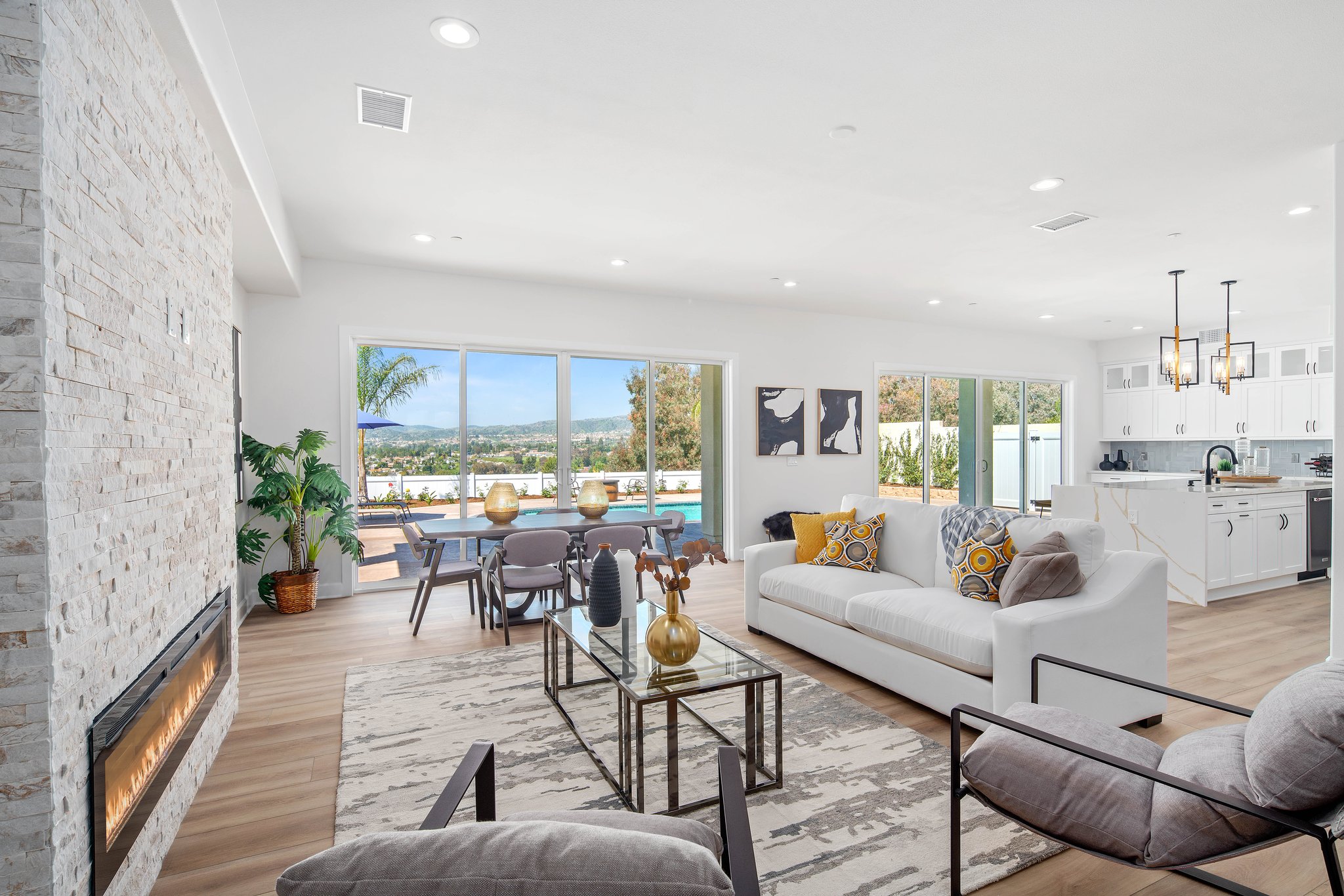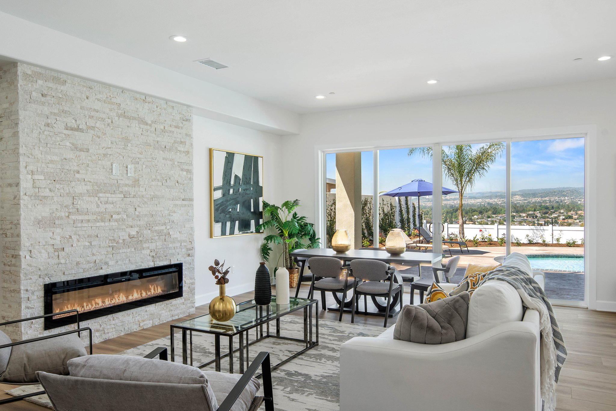 Welcome to your dream home in the heart of Yorba Linda! This stunning BRAND NEW single-family home offers the epitome of luxury living on a spacious 10,173 square foot lot. Boasting 3,415 square feet of exquisite interior living space, this home is perfect for a generational family seeking comfort, elegance, and breathtaking views. As you step inside, you're greeted by an abundance of natural light cascading through the expansive windows, illuminating the open floor plan. The main level features a primary bedroom suite or office, providing ease and convenience, while upstairs you'll find another primary bedroom alongside three additional secondary bedrooms, offering ample space for everyone in the family. The heart of this home lies in its gourmet kitchen, equipped with top-of-the-line appliances, ample storage, a walk-in pantry, and even a secondary refrigerator. With stunning views of the salt water and heated pool, the kitchen seamlessly flows into the living and dining rooms, making it an entertainer's delight. Indulge in luxury within the upstairs primary bedroom, complete with a spa-caliber bathroom suite featuring a soaking tub, stunning shower, and a spacious walk-in closet, all finished for maximum pleasure. Step outside onto the enormous balcony and be captivated by the panoramic views of the surrounding area, providing the perfect backdrop for relaxation and enjoyment. This home doesn't just offer luxury; it also prioritizes convenience and sustainability. With ample parking in the garage, private RV parking, a Tesla charging station, and a fully paid-for solar system, you can embrace modern living with ease. Additionally, the house is wired for security cameras, ensuring peace of mind for you and your loved ones. Enjoy the convenience of a spacious upstairs laundry room with ample storage, making chores a breeze. Safety is paramount, which is why the pool is equipped with a sensor system, providing added peace of mind for you and your family. Located in a top-notch school district, this property offers the perfect combination of luxury, comfort, and practicality. Don't miss out on the opportunity to make this your forever home!