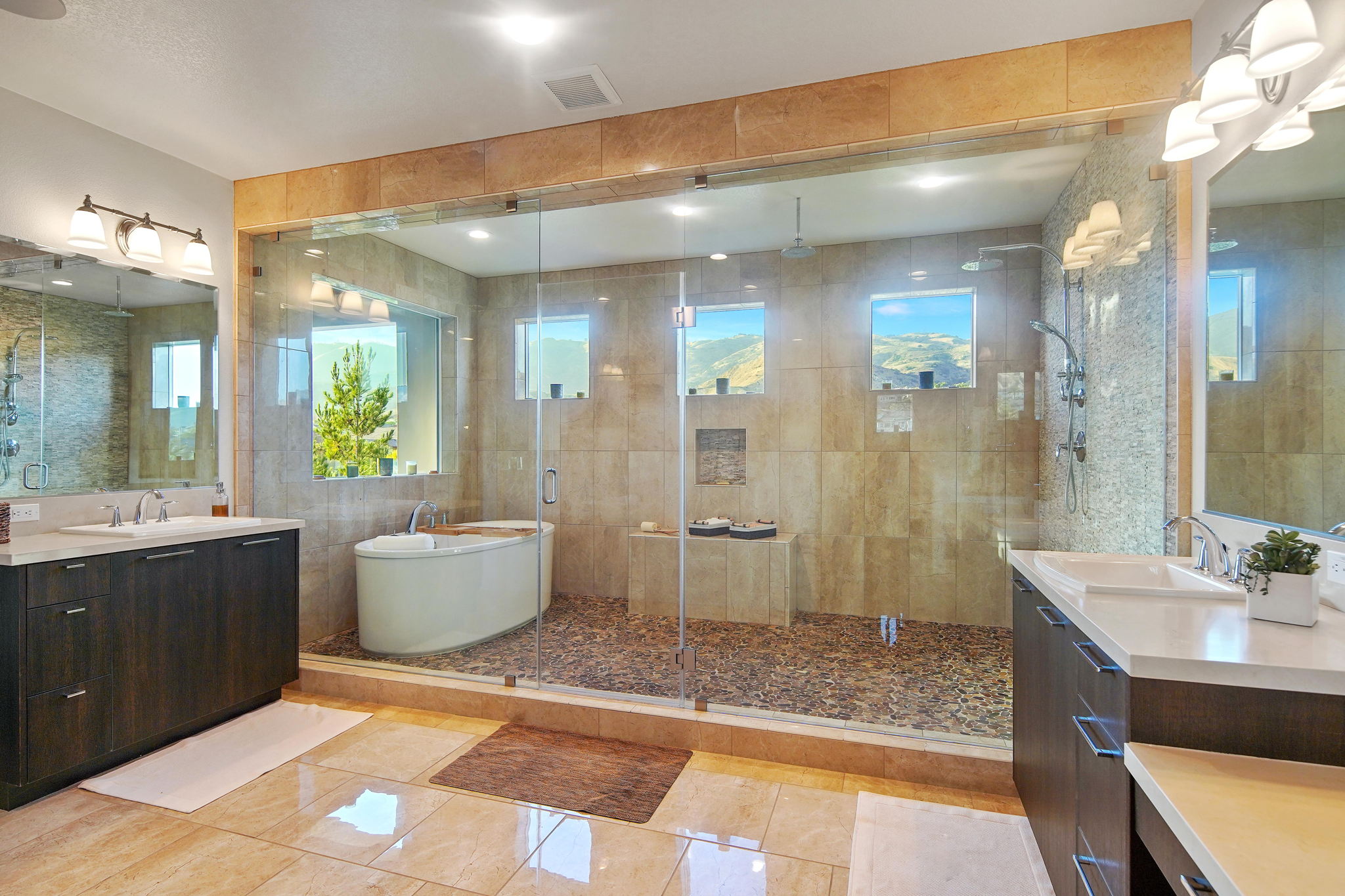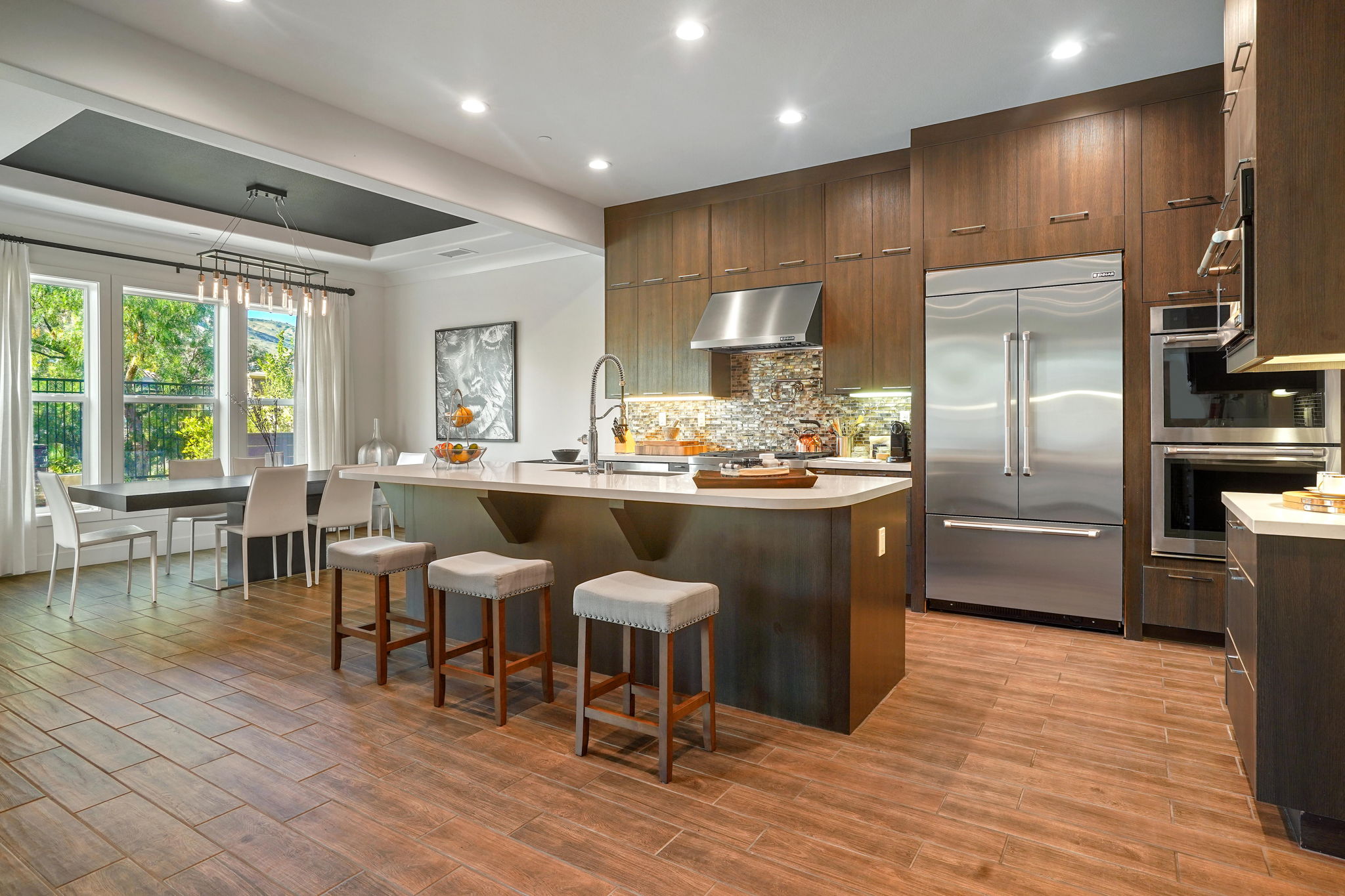 This highly sought after "Mayberry Italienate" floor plan is the most expansive and desirable model available within the prestigious gated community of "Avila Glen."Offering top of the line upgrades throughout, the home features 3,295 SF of luxurious living. Built in 2017, this newer construction home is in pristine condition offering 4 bedrooms, 5 baths, tranquil mountain views, and is an entertainer's dream with an open floor plan and indoor/outdoor living.A chef's kitchen, open to the main living and dining areas, left nothing to be desired. Stainless steel appliances, floor to ceiling cabinets, a walk-in pantry, and an oversized center island was ideally designed for modern day living. The 4th bedroom with ensuite bath, half-bath, and 2 car garage with epoxy flooring and built in storage. Sliding glass doors open from the living room, where you can enjoy a romantic fire lit dinner on the patio while unwinding to the sound of the custom water feature, or entertain friends at the built-in BBQ with motorized rotisserie and Kamato smoker.The impressive foyer has been upgraded with intricate floor to ceiling ledger stone walls. Showcasing the winding staircase that leads to 3 spacious bedrooms and family room on the 2nd level. The luxurious second level owners suite with fireplace won't disappoint with a private balcony and mountain views, massive spa style shower & soaking tub, dual shower-heads, his/hers vanities, and 145sf walk-in closet.