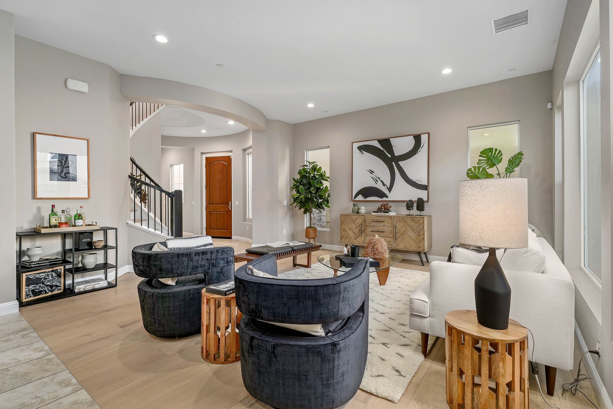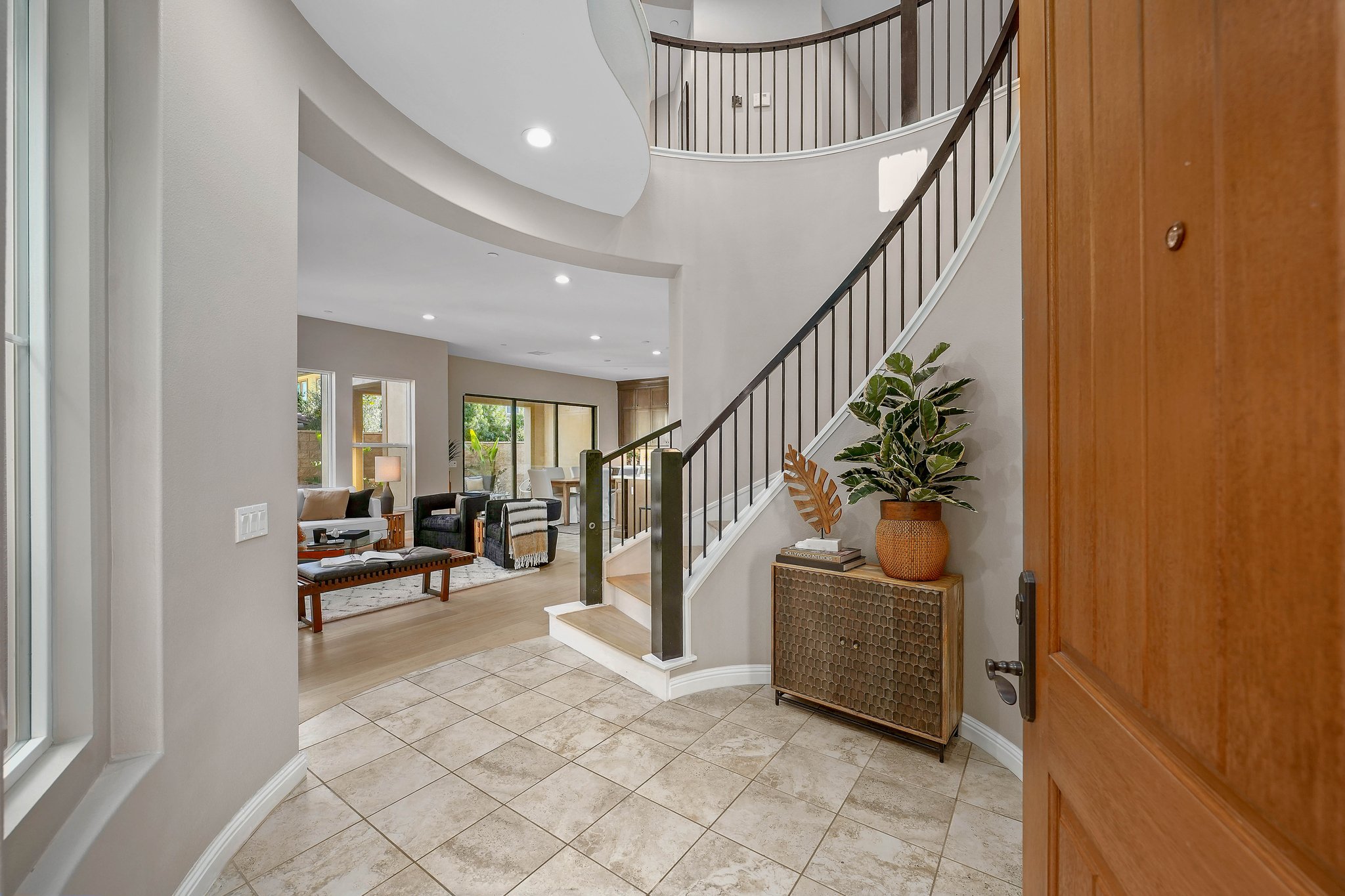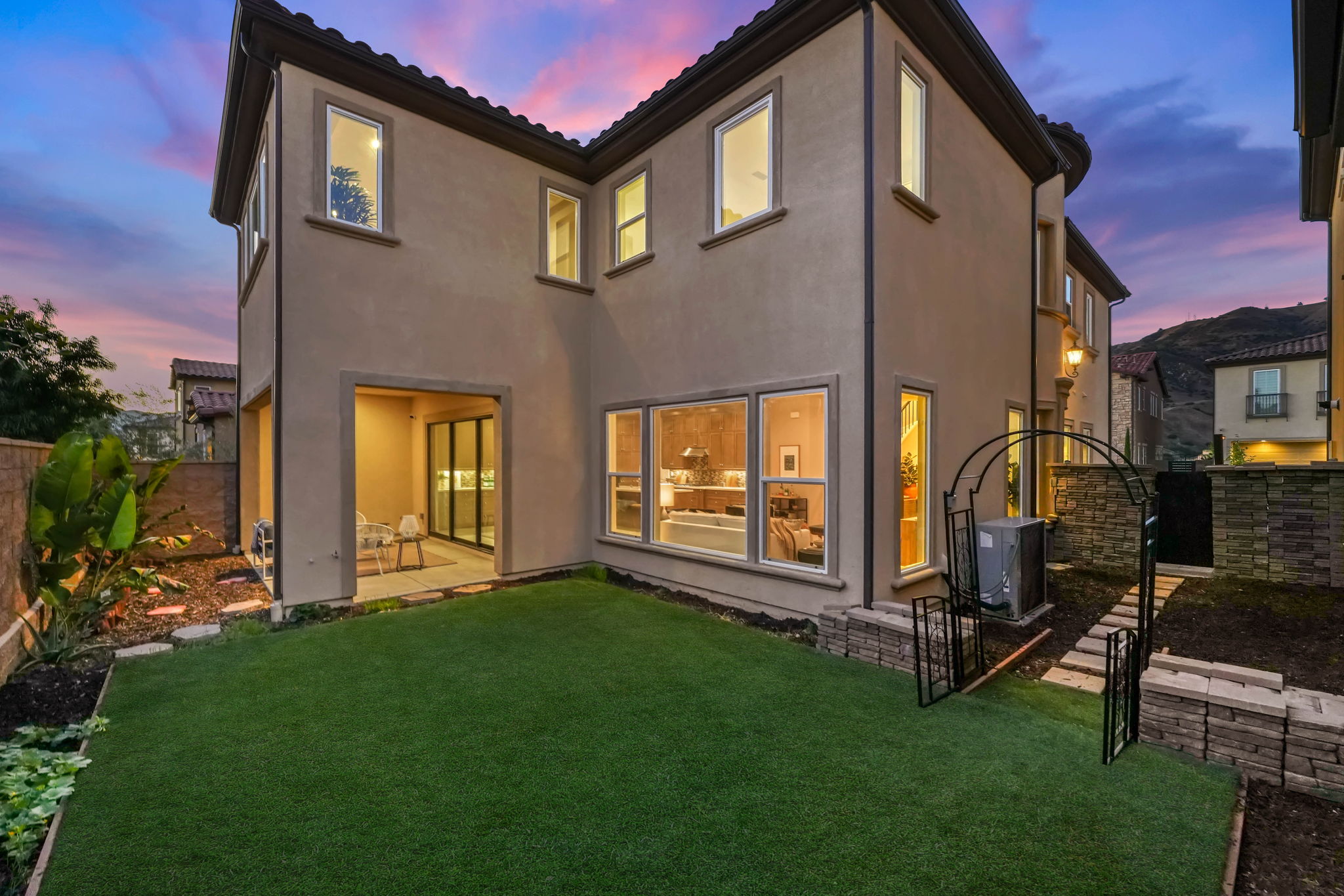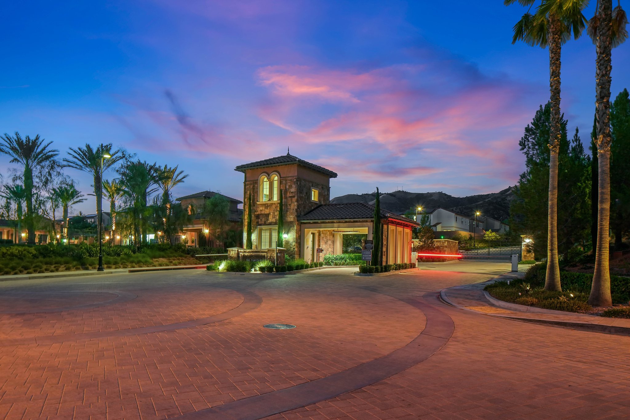 Welcome to the epitome of comfortable living in the exclusive gated community of The Canyons, nestled in the heart of Porter Ranch. This property offers ample space, blending functional design and premium amenities seamlessly. As you step inside, you are greeted by a grand curved staircase and an elegant foyer. The open-plan main floor features a great room, a spacious dining area, an office room or bedroom, and a modern, well-equipped kitchen. The gourmet kitchen takes center stage with its expansive central island and convenient breakfast bar, ideal for casual gatherings and culinary adventures. Beyond the sliding glass doors, you'll find your own private backyard with lush turf and designated areas for gardening, extending your living space to the outdoors. Upstairs, the primary bedroom is a sanctuary of comfort and tranquility, with abundant natural light pouring through the large windows. It offers a generously sized walk-in closet and a luxurious primary bath with a dual-sink vanity and a dual head shower for a spa-like experience. The second story also has 3 additional bedrooms and an open family room that provides a perfect retreat for relaxation or entertainment. The property also comes equipped with a leased solar system, not only benefiting the environment but also significantly reducing your power bills. For added convenience, the home includes an attached two-car garage and a designated laundry room with a washer and dryer. Residents of The Canyons enjoy access to a community pool, a spacious community center, and the peace of mind provided by a 24-hour guard gate. Don't miss your chance to experience the pinnacle of Porter Ranch living in this magnificent home within The Canyons.