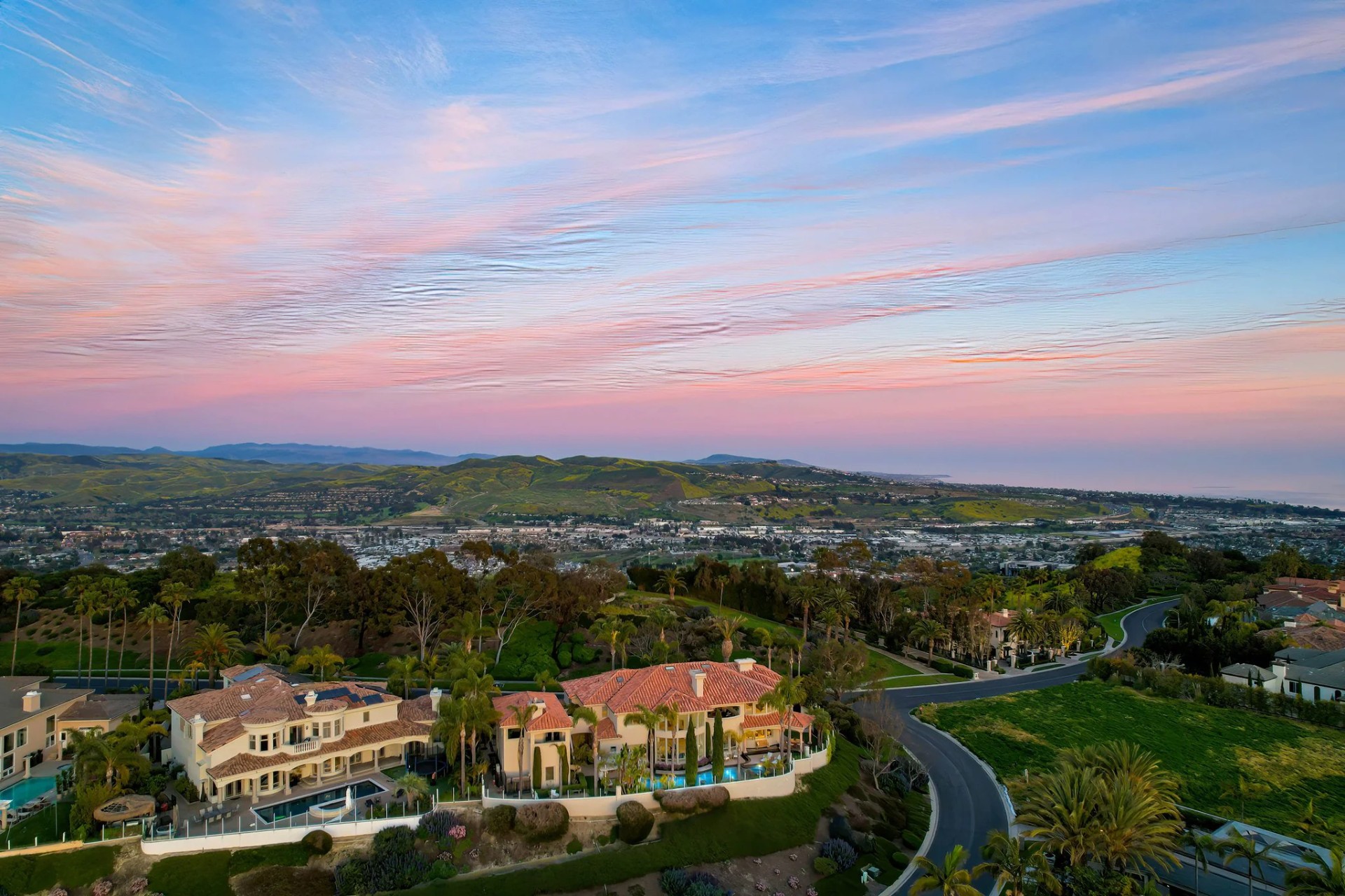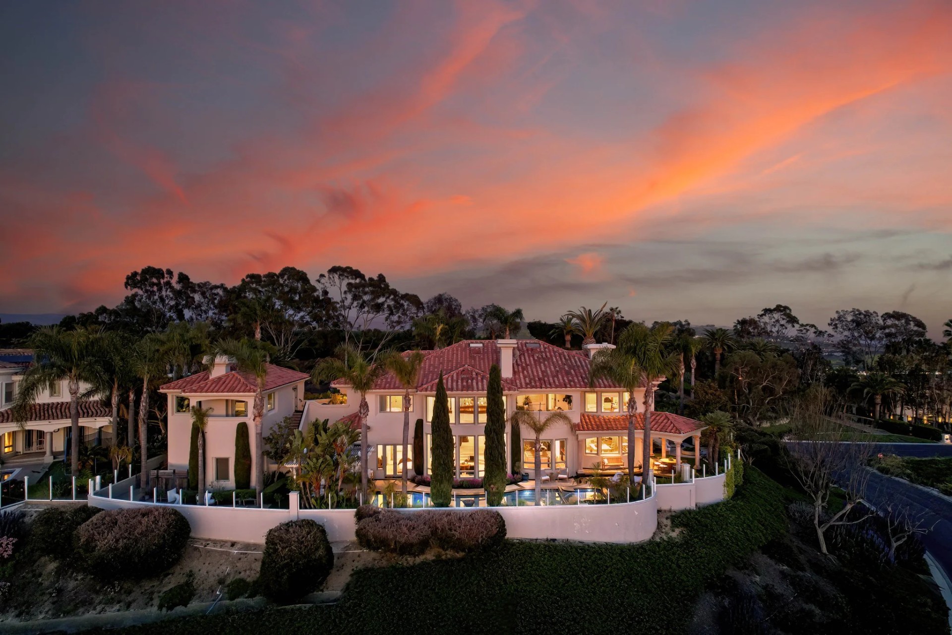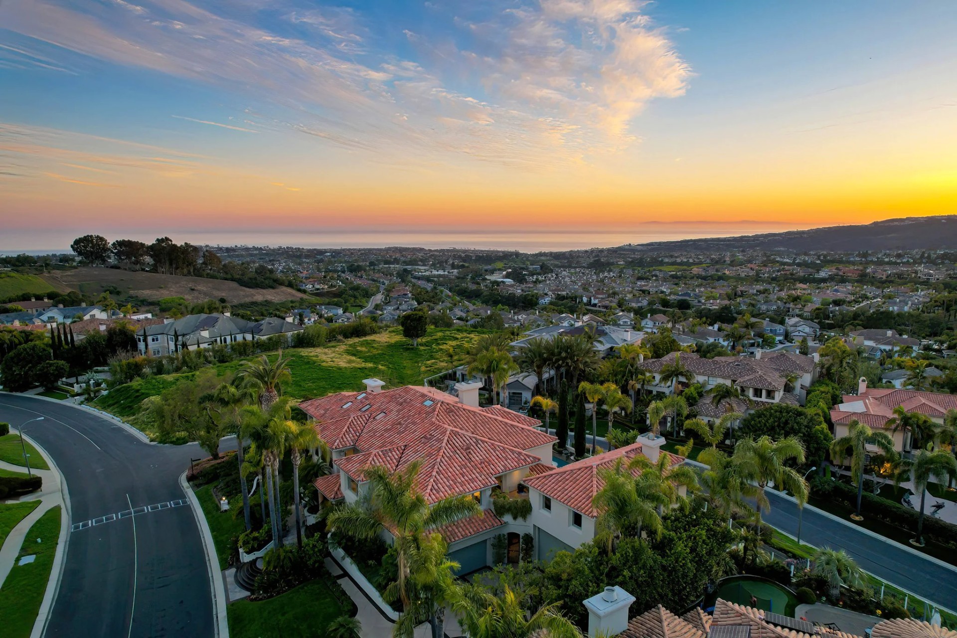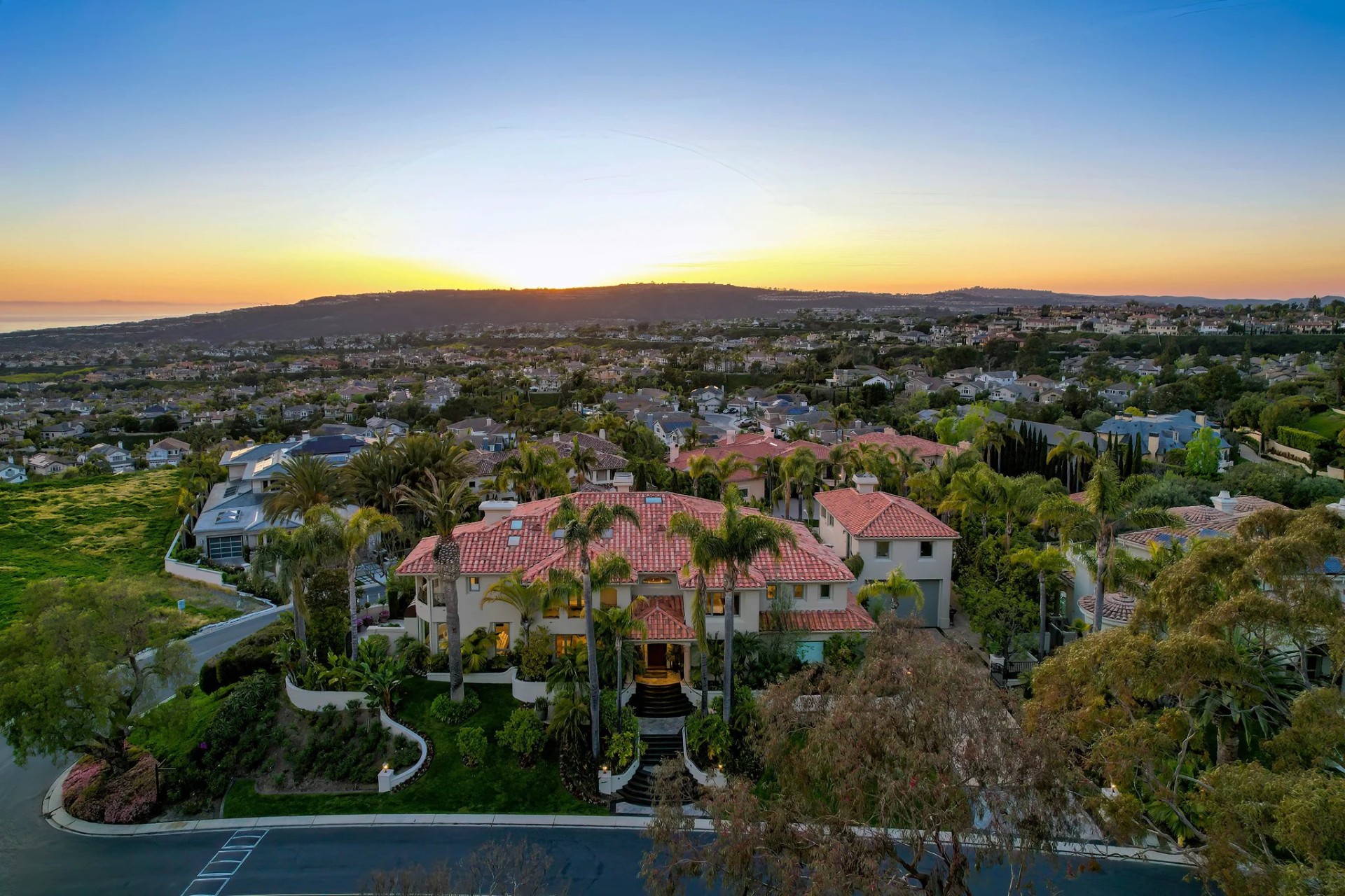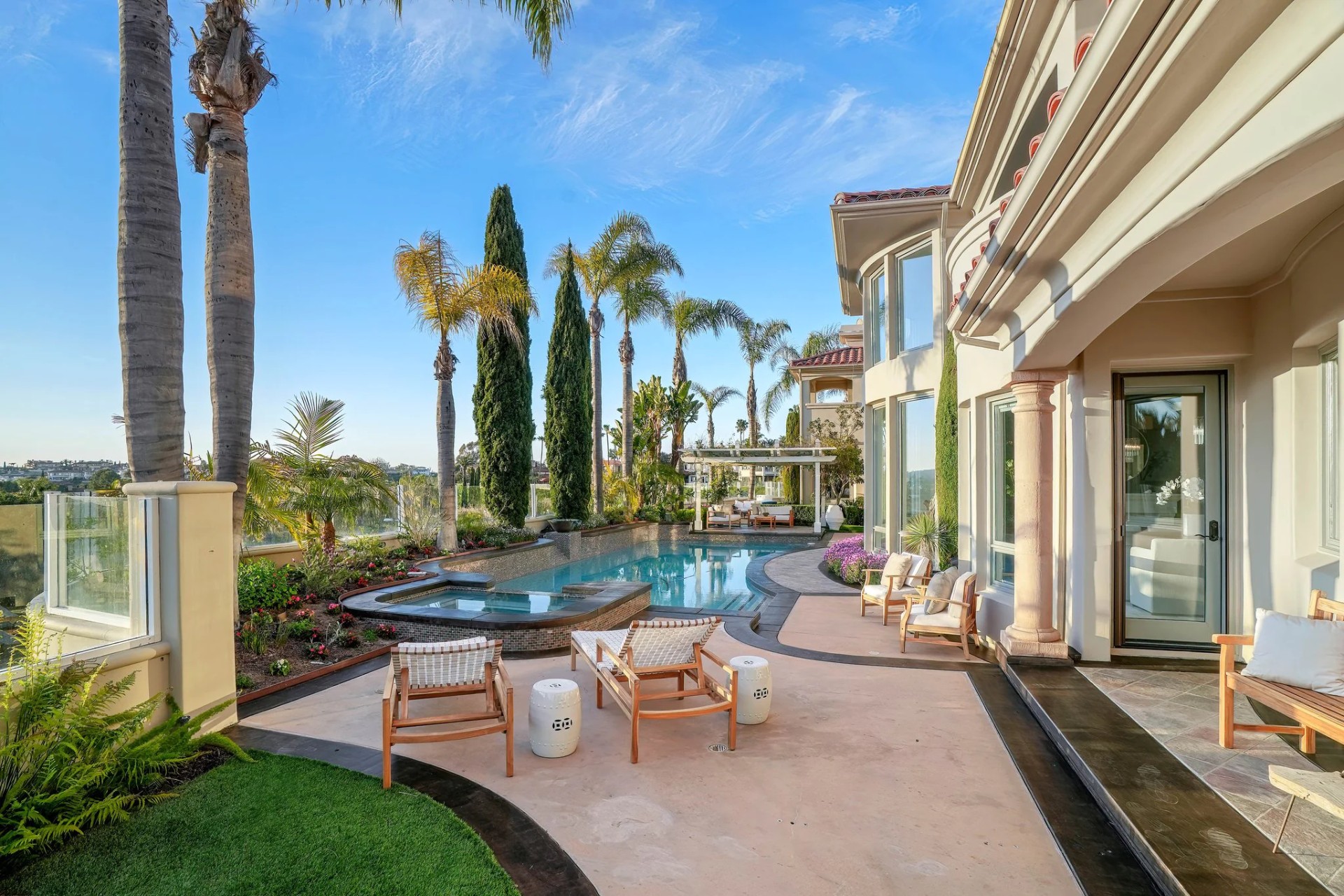 Located within the prestigious Bear Brand Ranch community in Laguna Niguel, this 7,500+ sq. ft. home sits on an expansive corner lot with views of Pacific Ocean and boasts 6 beds, 8 baths, and every amenity imaginable. Upon entrance, the foyer features a double-height ceiling, wrought iron chandelier and railings, and a grand hardwood curving staircase. The living room, also with a double-height ceiling, has an abundance of light thanks to a wall of windows overlooking the sparkling pool. The elegant dining room has a two-sided fireplace, shared with the adjacent living room, large windows with views of the pool, and a modern glass chandelier. The chef’s kitchen comes with SubZero and Wolf appliances, beautiful tile backsplash, sleek white cabinetry with Crystalo quartzite counters, and a large center island with breakfast bar. The cozy family room is bright and airy and comes with a double-sided fireplace and a bar - which is shared with the billiard room with bar seating. An ensuite guest bedroom and a gorgeous office with custom wood paneling and coffered ceiling complete this main level. The primary suite is a luxurious retreat with high vaulted ceilings, chandelier, large windows, double- sided fireplace, massive walk-in closet, and a private covered terrace with fireplace and ocean views. The spacious spa-like bathroom boasts dual sinks and vanity with marble countertops, a free-standing soaking tub, walk-in shower, and fireplace. Three additional ensuite bedrooms can be found on this level. Above the garage, you’ll find a spacious casita with vaulted ceilings and exposed wood beams, sink, mini-fridge, and a full bathroom. The expansive backyard is perfect for either a peaceful retreat or for entertaining guests. This space offers multiple covered seating/eating areas, pool and spa, and an outdoor BBQ. A fully equipped gym (located in the RV garage) and a 5-car garage complete this unique offering. Property is located near excellent public and private schools, shops, restaurants, hiking/biking trails, and world-class beaches.