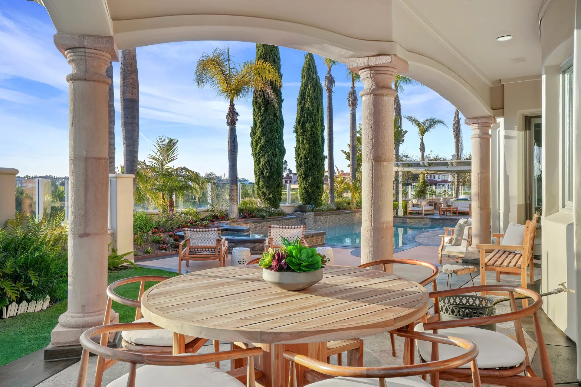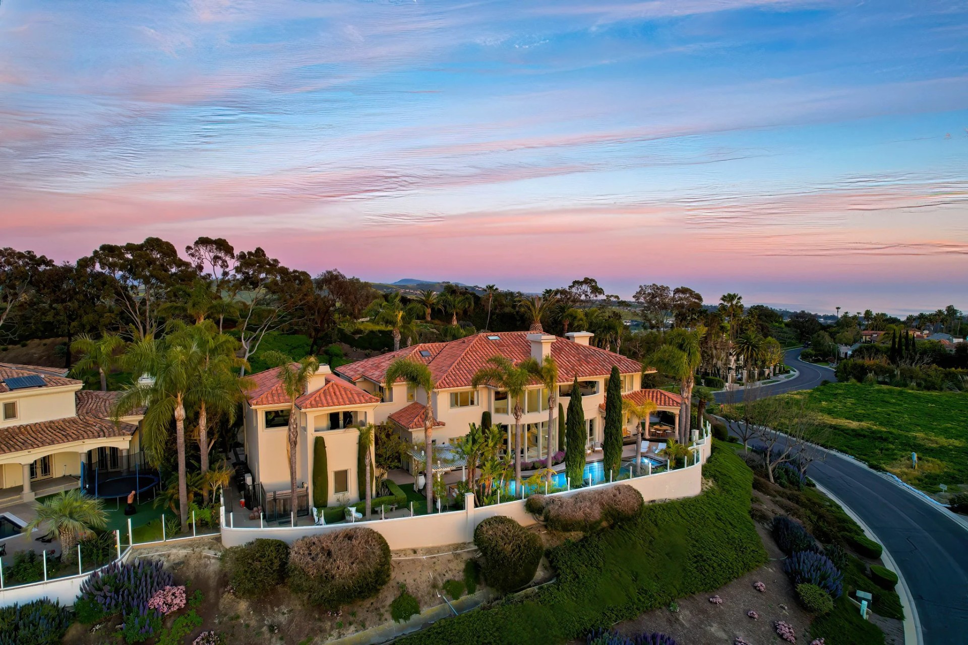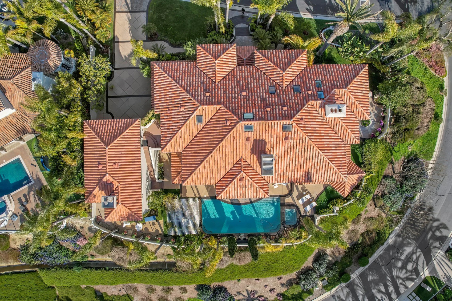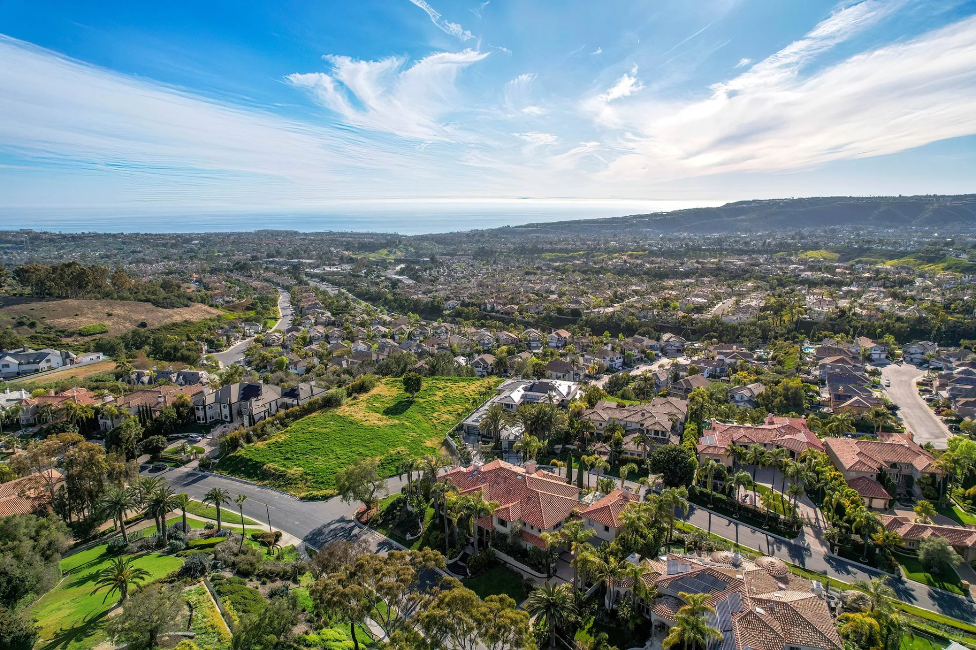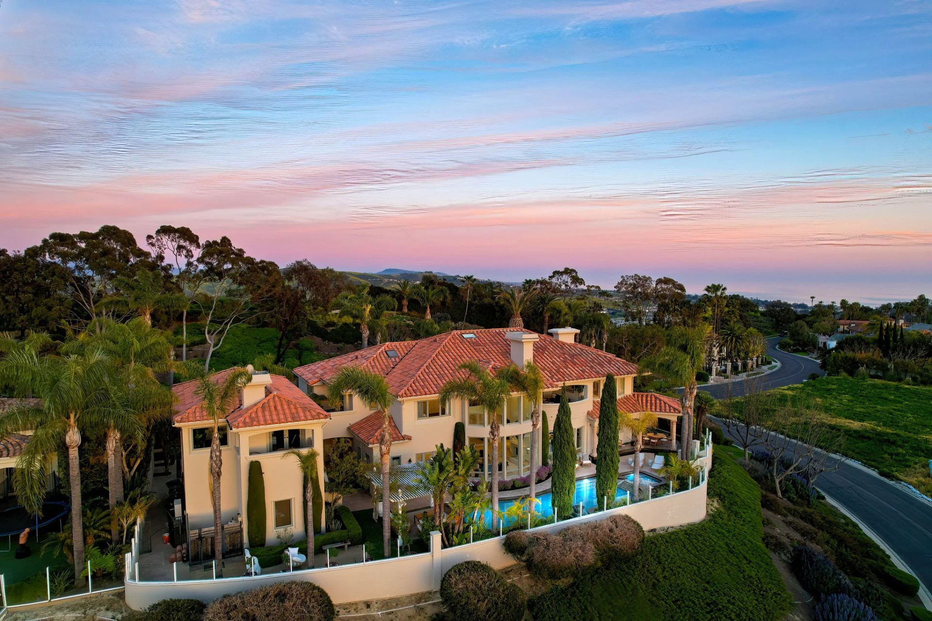 Located within the prestigious Bear Brand Ranch community in Laguna Niguel, this 7,500+ sq. ft. home sits on an expansive corner lot with views of Pacific Ocean and boasts 6 beds, 8 baths, and every amenity imaginable. Upon entrance, the foyer features a double-height ceiling, wrought iron chandelier and railings, and a grand hardwood curving staircase. The living room, also with a double-height ceiling, has an abundance of light thanks to a wall of windows overlooking the sparkling pool. The elegant dining room has a two-sided fireplace, shared with the adjacent living room, large windows with views of the pool, and a modern glass chandelier. The chef’s kitchen comes with SubZero and Wolf appliances, beautiful tile backsplash, sleek white cabinetry with Crystalo quartzite counters, and a large center island with breakfast bar. The cozy family room is bright and airy and comes with a double-sided fireplace and a bar - which is shared with the billiard room with bar seating. An ensuite guest bedroom and a gorgeous office with custom wood paneling and coffered ceiling complete this main level. The primary suite is a luxurious retreat with high vaulted ceilings, chandelier, large windows, double- sided fireplace, massive walk-in closet, and a private covered terrace with fireplace and ocean views. The spacious spa-like bathroom boasts dual sinks and vanity with marble countertops, a free-standing soaking tub, walk-in shower, and fireplace. Three additional ensuite bedrooms can be found on this level. Above the garage, you’ll find a spacious casita with vaulted ceilings and exposed wood beams, sink, mini-fridge, and a full bathroom. The expansive backyard is perfect for either a peaceful retreat or for entertaining guests. This space offers multiple covered seating/eating areas, pool and spa, and an outdoor BBQ. A fully equipped gym (located in the RV garage) and a 5-car garage complete this unique offering. Property is located near excellent public and private schools, shops, restaurants, hiking/biking trails, and world-class beaches.