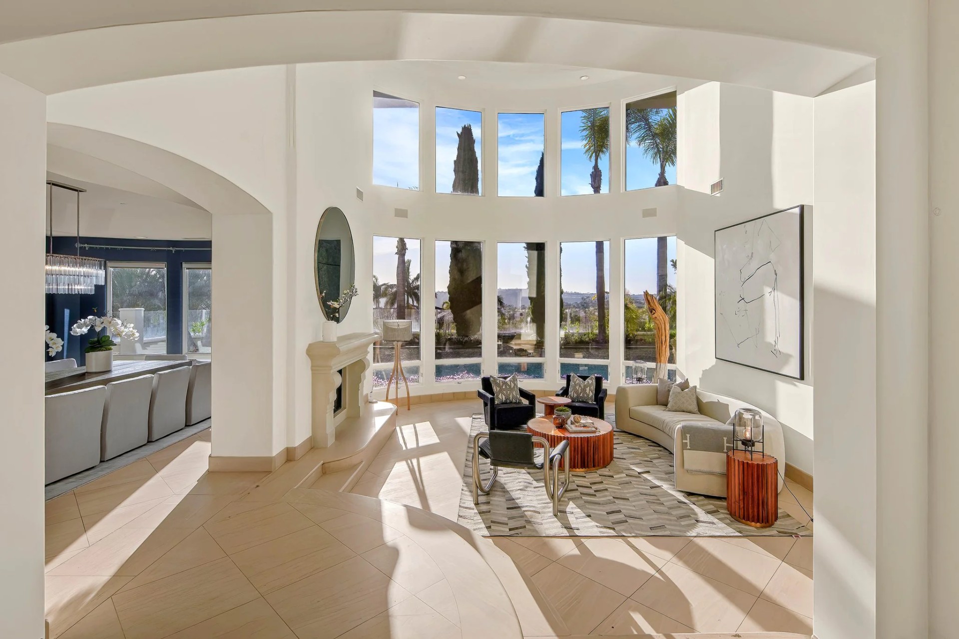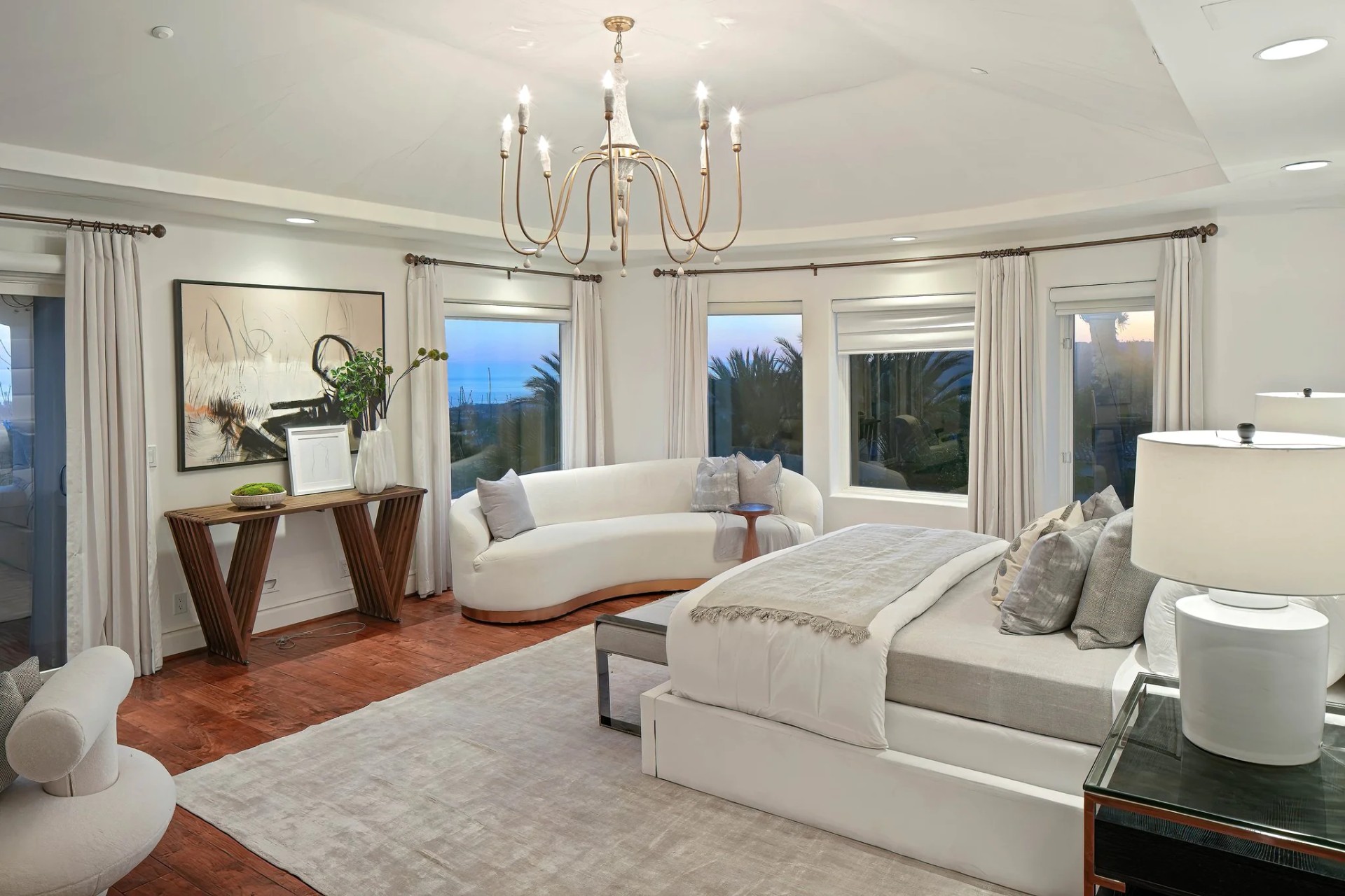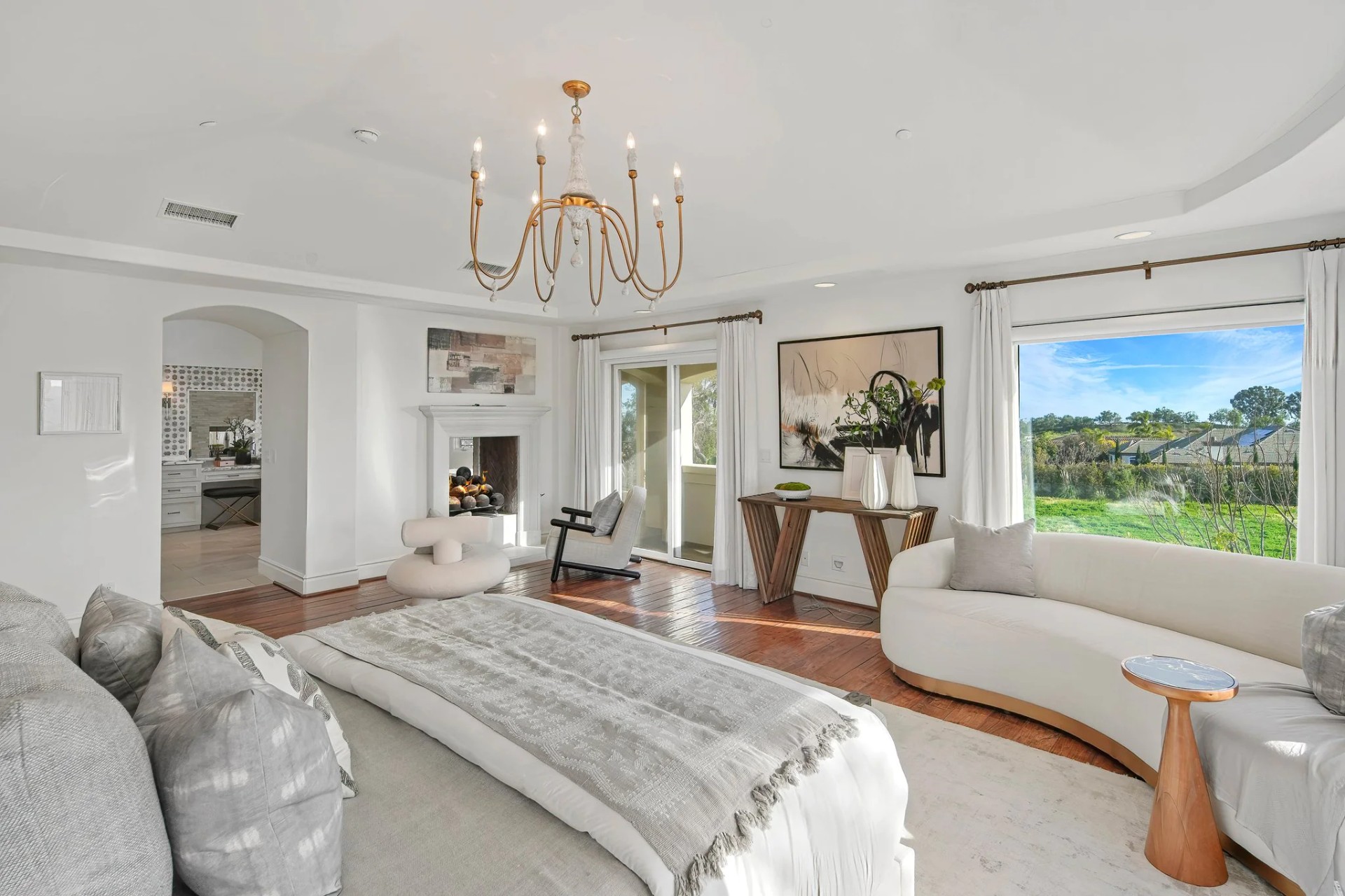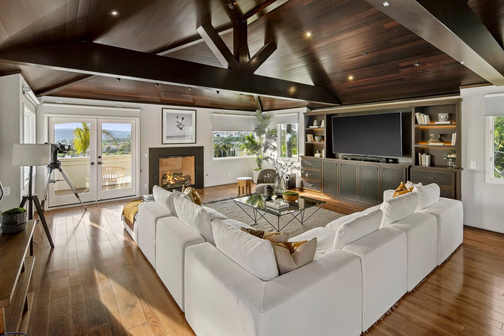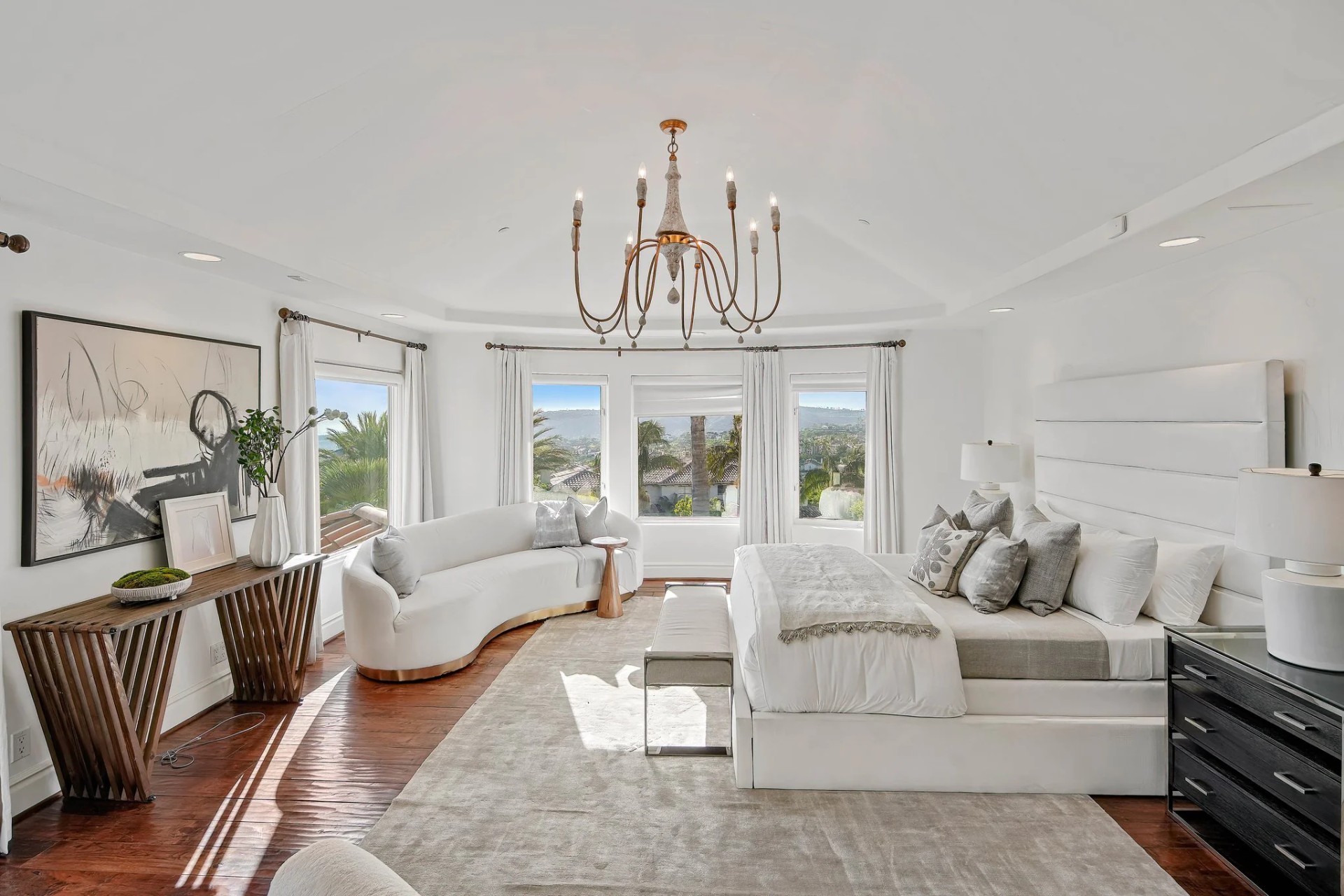 Located within the prestigious Bear Brand Ranch community in Laguna Niguel, this 7,500+ sq. ft. home sits on an expansive corner lot with views of Pacific Ocean and boasts 6 beds, 8 baths, and every amenity imaginable. Upon entrance, the foyer features a double-height ceiling, wrought iron chandelier and railings, and a grand hardwood curving staircase. The living room, also with a double-height ceiling, has an abundance of light thanks to a wall of windows overlooking the sparkling pool. The elegant dining room has a two-sided fireplace, shared with the adjacent living room, large windows with views of the pool, and a modern glass chandelier. The chef’s kitchen comes with SubZero and Wolf appliances, beautiful tile backsplash, sleek white cabinetry with Crystalo quartzite counters, and a large center island with breakfast bar. The cozy family room is bright and airy and comes with a double-sided fireplace and a bar - which is shared with the billiard room with bar seating. An ensuite guest bedroom and a gorgeous office with custom wood paneling and coffered ceiling complete this main level. The primary suite is a luxurious retreat with high vaulted ceilings, chandelier, large windows, double- sided fireplace, massive walk-in closet, and a private covered terrace with fireplace and ocean views. The spacious spa-like bathroom boasts dual sinks and vanity with marble countertops, a free-standing soaking tub, walk-in shower, and fireplace. Three additional ensuite bedrooms can be found on this level. Above the garage, you’ll find a spacious casita with vaulted ceilings and exposed wood beams, sink, mini-fridge, and a full bathroom. The expansive backyard is perfect for either a peaceful retreat or for entertaining guests. This space offers multiple covered seating/eating areas, pool and spa, and an outdoor BBQ. A fully equipped gym (located in the RV garage) and a 5-car garage complete this unique offering. Property is located near excellent public and private schools, shops, restaurants, hiking/biking trails, and world-class beaches.
