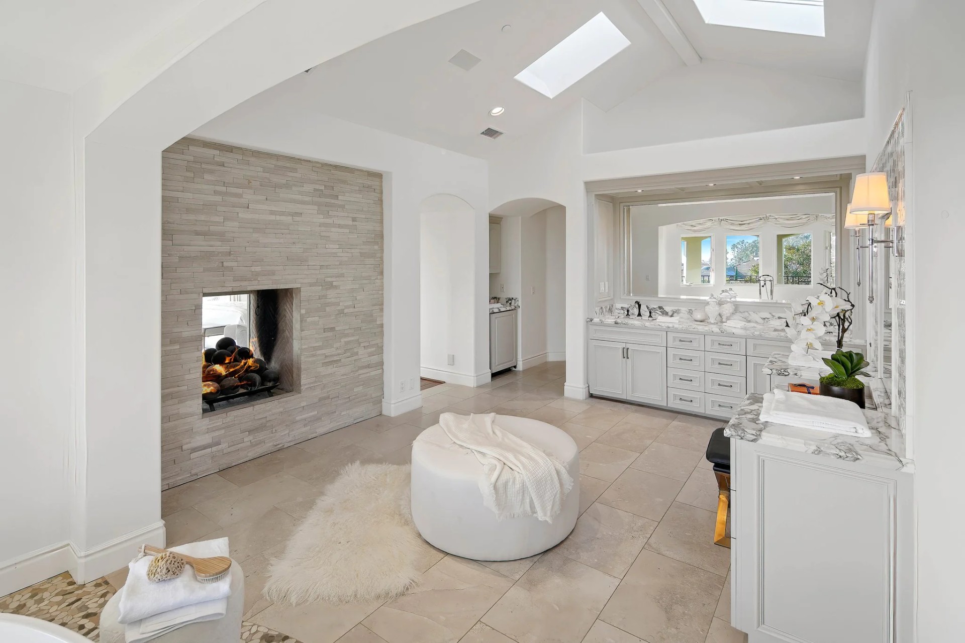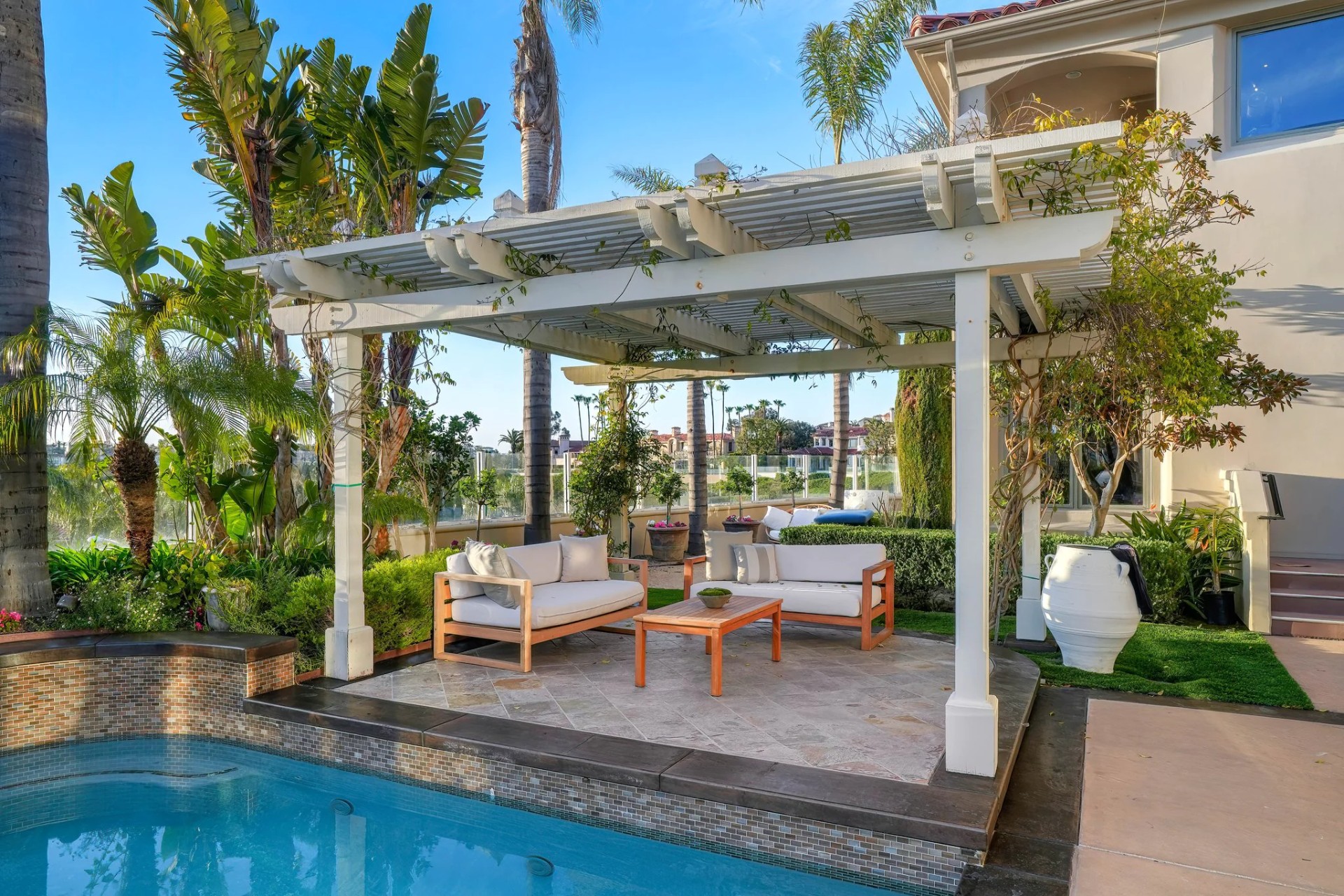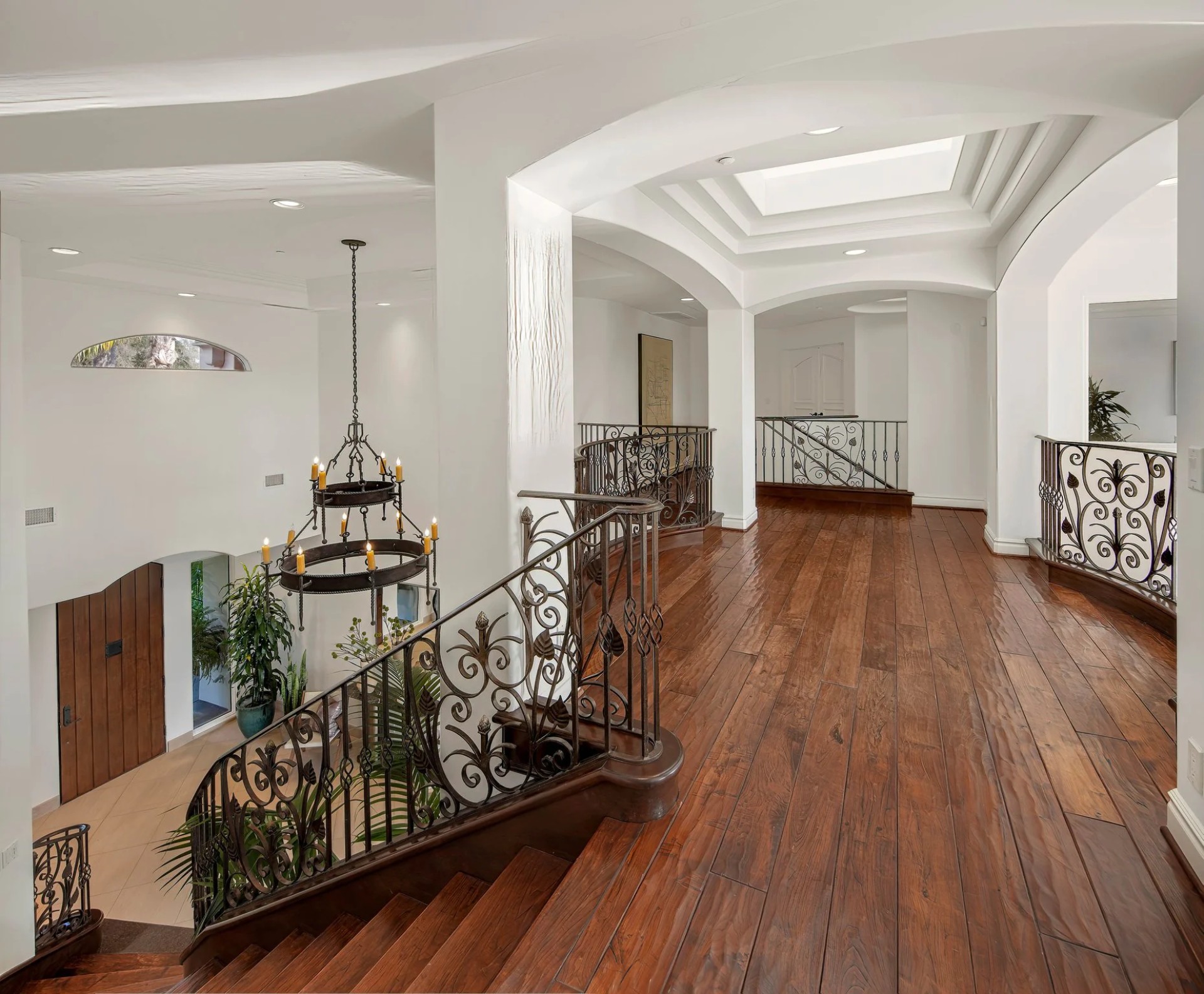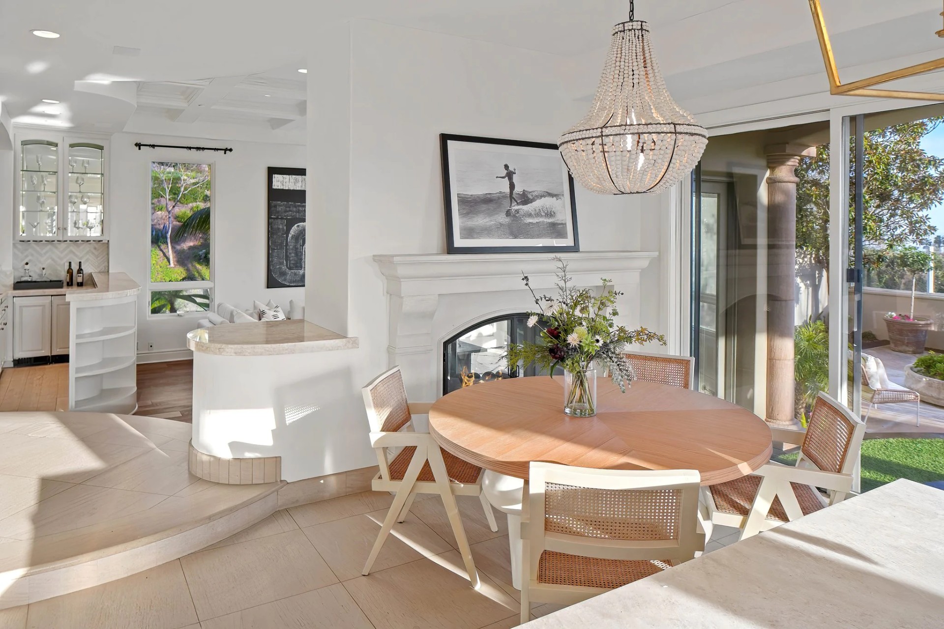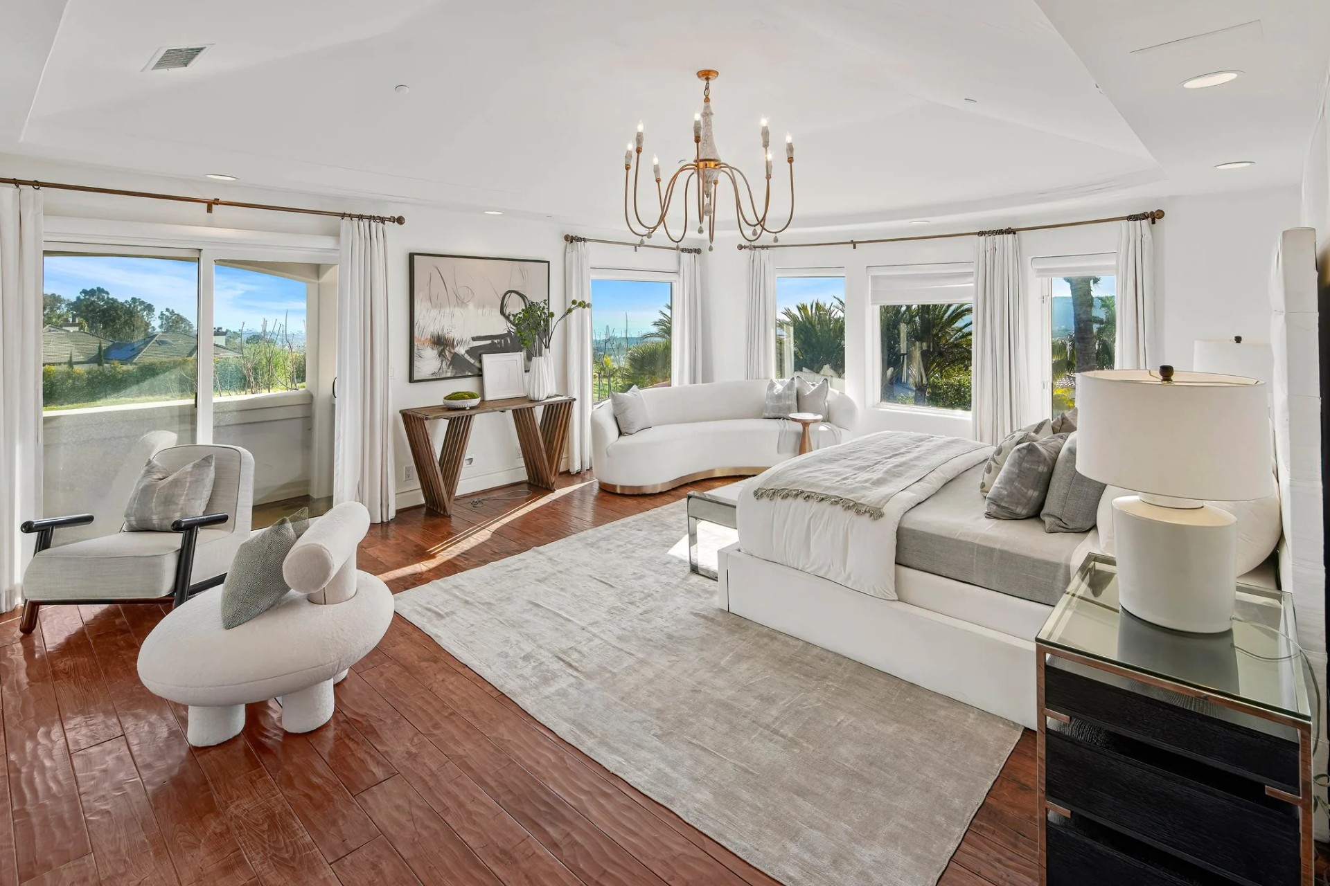 Located within the prestigious Bear Brand Ranch community in Laguna Niguel, this 7,500+ sq. ft. home sits on an expansive corner lot with views of Pacific Ocean and boasts 6 beds, 8 baths, and every amenity imaginable. Upon entrance, the foyer features a double-height ceiling, wrought iron chandelier and railings, and a grand hardwood curving staircase. The living room, also with a double-height ceiling, has an abundance of light thanks to a wall of windows overlooking the sparkling pool. The elegant dining room has a two-sided fireplace, shared with the adjacent living room, large windows with views of the pool, and a modern glass chandelier. The chef’s kitchen comes with SubZero and Wolf appliances, beautiful tile backsplash, sleek white cabinetry with Crystalo quartzite counters, and a large center island with breakfast bar. The cozy family room is bright and airy and comes with a double-sided fireplace and a bar - which is shared with the billiard room with bar seating. An ensuite guest bedroom and a gorgeous office with custom wood paneling and coffered ceiling complete this main level. The primary suite is a luxurious retreat with high vaulted ceilings, chandelier, large windows, double- sided fireplace, massive walk-in closet, and a private covered terrace with fireplace and ocean views. The spacious spa-like bathroom boasts dual sinks and vanity with marble countertops, a free-standing soaking tub, walk-in shower, and fireplace. Three additional ensuite bedrooms can be found on this level. Above the garage, you’ll find a spacious casita with vaulted ceilings and exposed wood beams, sink, mini-fridge, and a full bathroom. The expansive backyard is perfect for either a peaceful retreat or for entertaining guests. This space offers multiple covered seating/eating areas, pool and spa, and an outdoor BBQ. A fully equipped gym (located in the RV garage) and a 5-car garage complete this unique offering. Property is located near excellent public and private schools, shops, restaurants, hiking/biking trails, and world-class beaches.