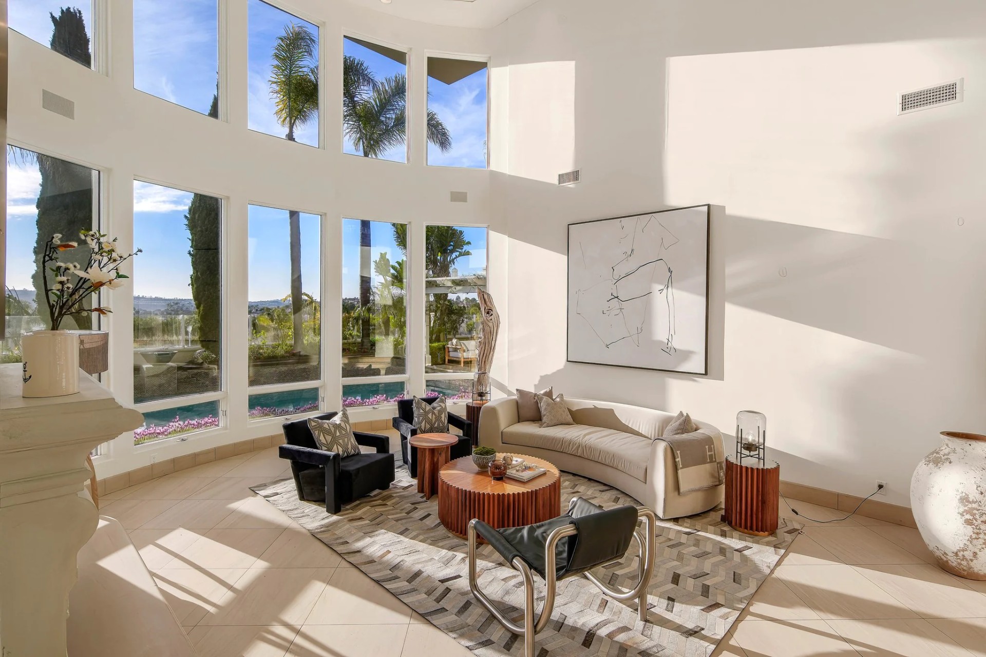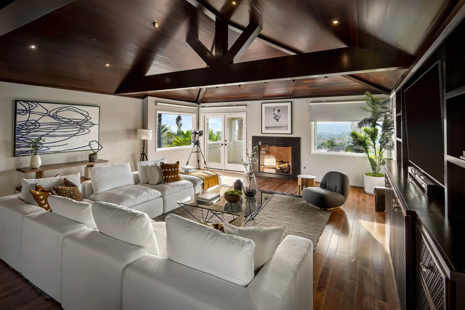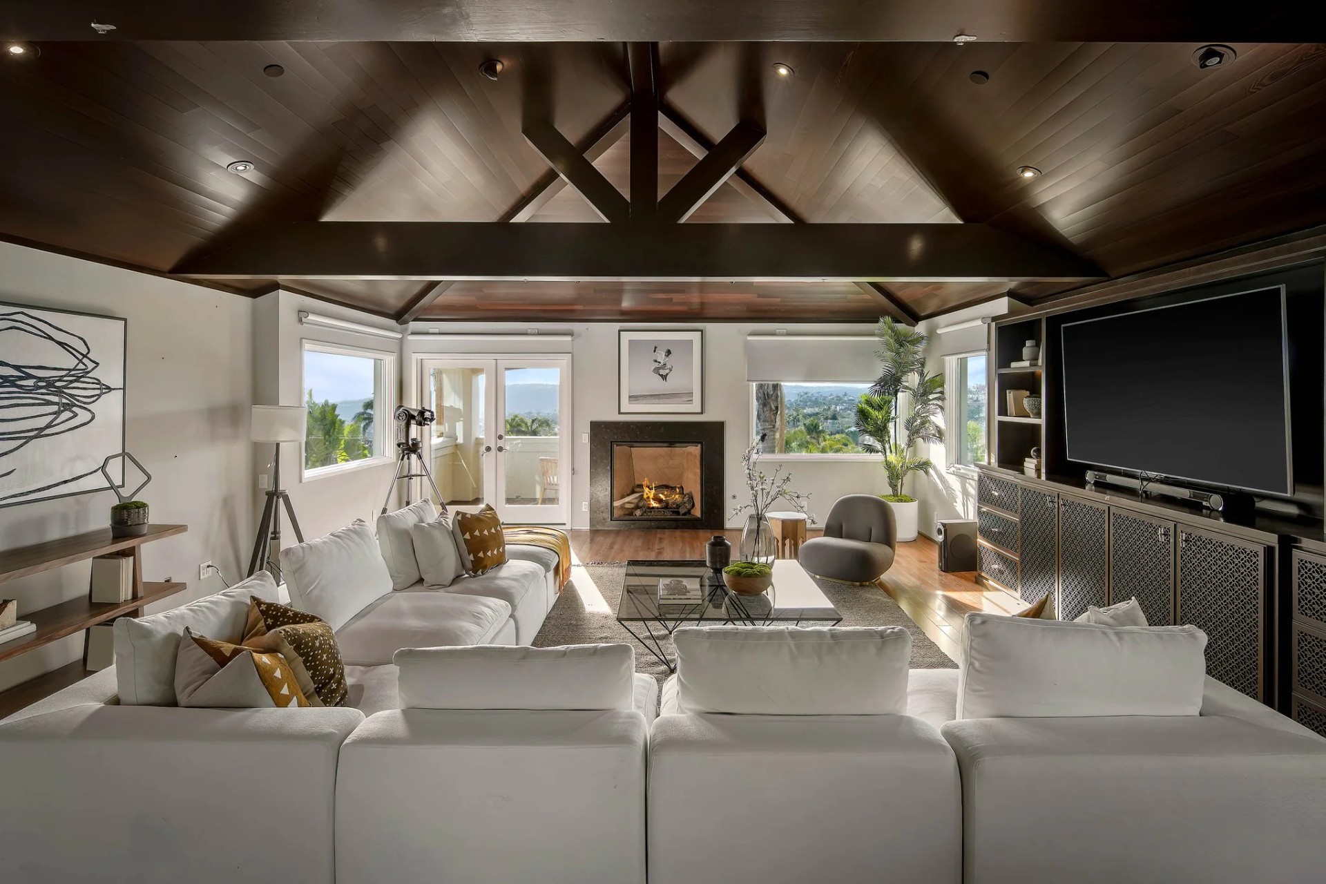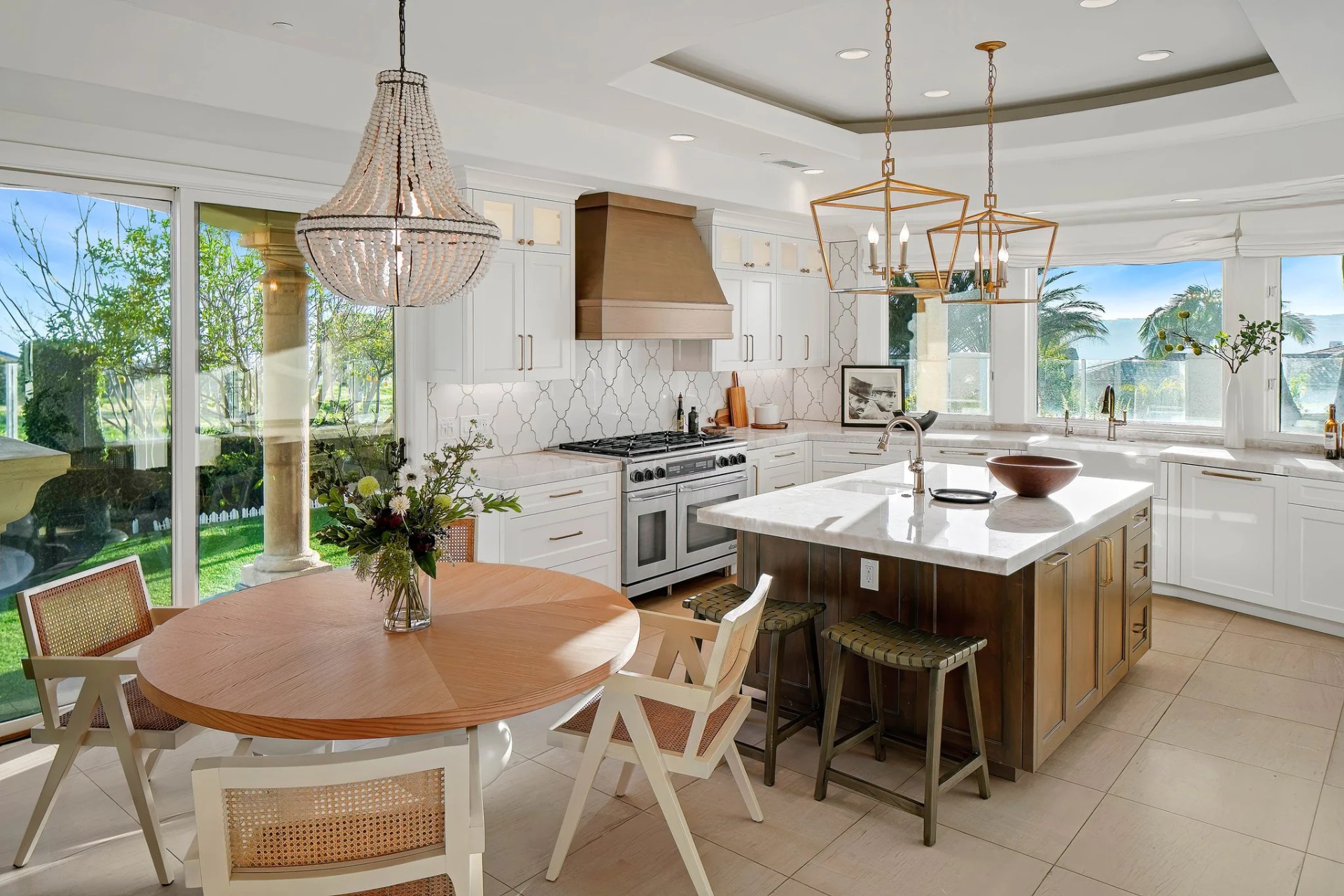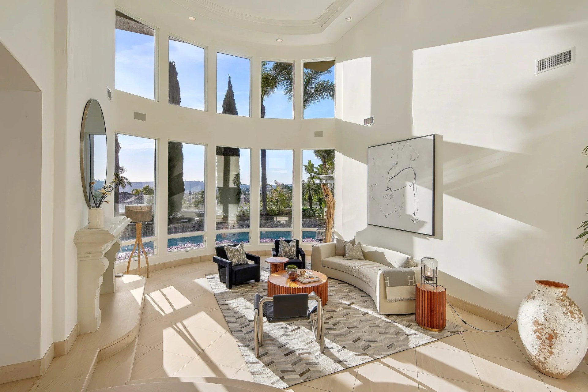 Located within the prestigious Bear Brand Ranch community in Laguna Niguel, this 7,500+ sq. ft. home sits on an expansive corner lot with views of Pacific Ocean and boasts 6 beds, 8 baths, and every amenity imaginable. Upon entrance, the foyer features a double-height ceiling, wrought iron chandelier and railings, and a grand hardwood curving staircase. The living room, also with a double-height ceiling, has an abundance of light thanks to a wall of windows overlooking the sparkling pool. The elegant dining room has a two-sided fireplace, shared with the adjacent living room, large windows with views of the pool, and a modern glass chandelier. The chef’s kitchen comes with SubZero and Wolf appliances, beautiful tile backsplash, sleek white cabinetry with Crystalo quartzite counters, and a large center island with breakfast bar. The cozy family room is bright and airy and comes with a double-sided fireplace and a bar - which is shared with the billiard room with bar seating. An ensuite guest bedroom and a gorgeous office with custom wood paneling and coffered ceiling complete this main level. The primary suite is a luxurious retreat with high vaulted ceilings, chandelier, large windows, double- sided fireplace, massive walk-in closet, and a private covered terrace with fireplace and ocean views. The spacious spa-like bathroom boasts dual sinks and vanity with marble countertops, a free-standing soaking tub, walk-in shower, and fireplace. Three additional ensuite bedrooms can be found on this level. Above the garage, you’ll find a spacious casita with vaulted ceilings and exposed wood beams, sink, mini-fridge, and a full bathroom. The expansive backyard is perfect for either a peaceful retreat or for entertaining guests. This space offers multiple covered seating/eating areas, pool and spa, and an outdoor BBQ. A fully equipped gym (located in the RV garage) and a 5-car garage complete this unique offering. Property is located near excellent public and private schools, shops, restaurants, hiking/biking trails, and world-class beaches.