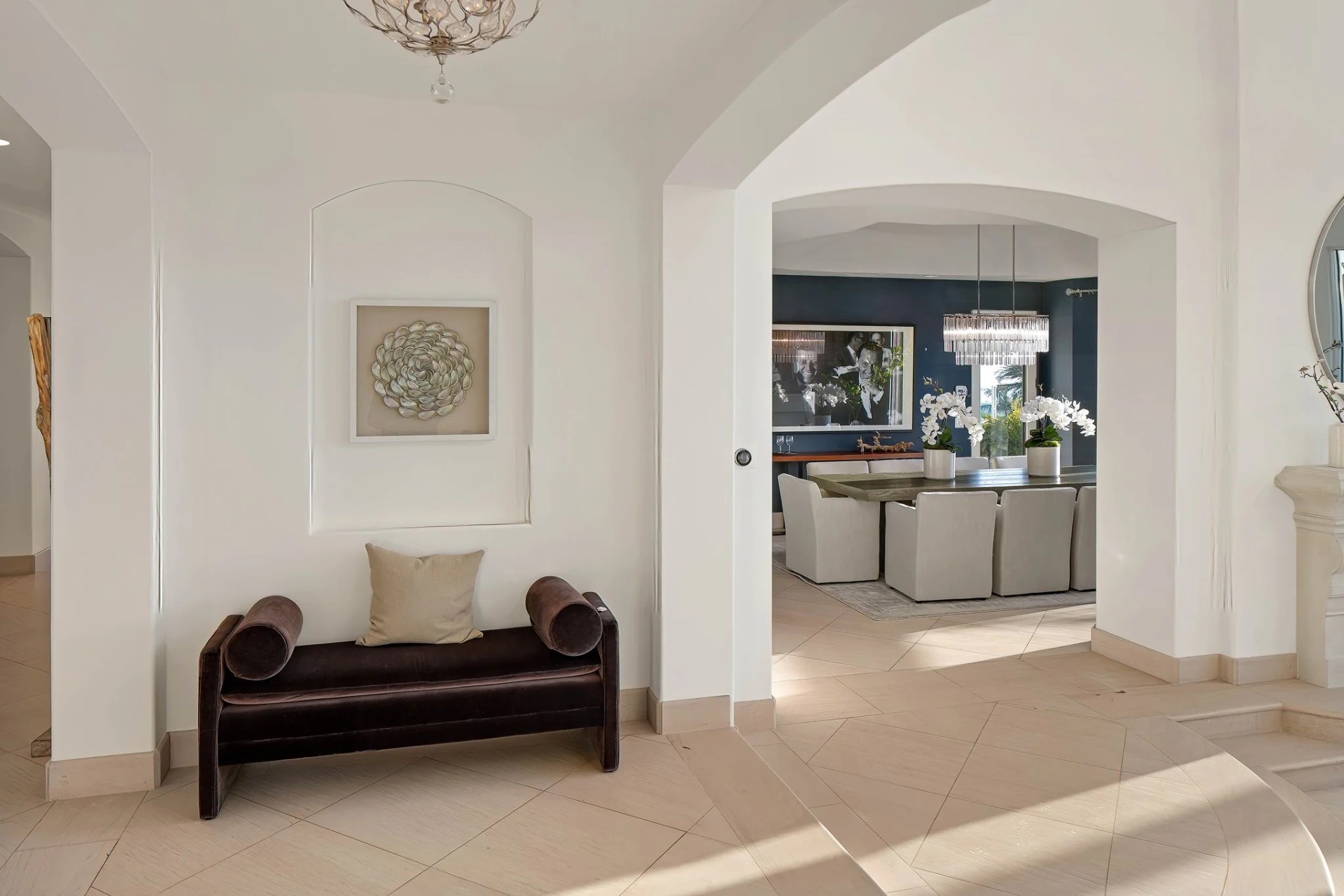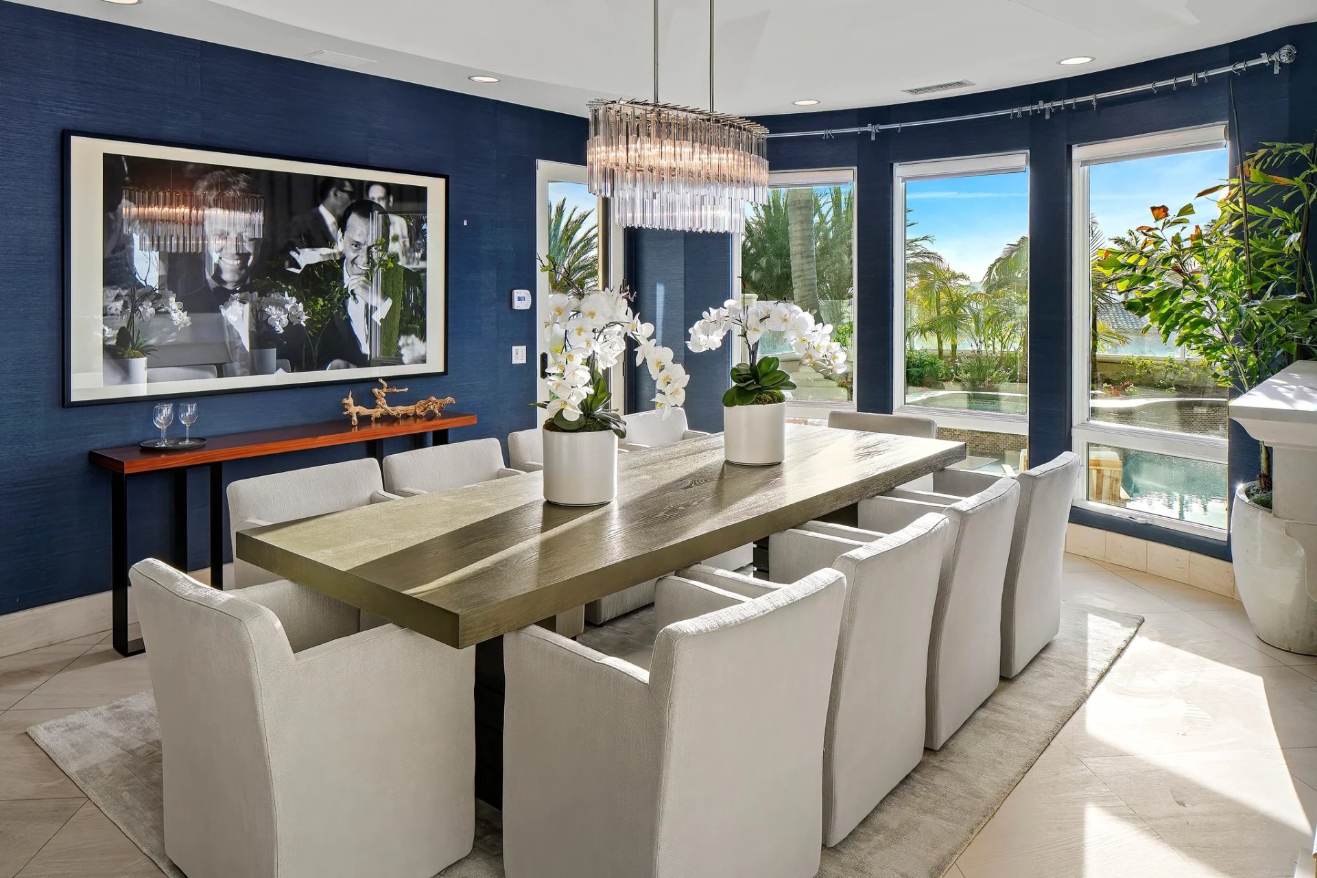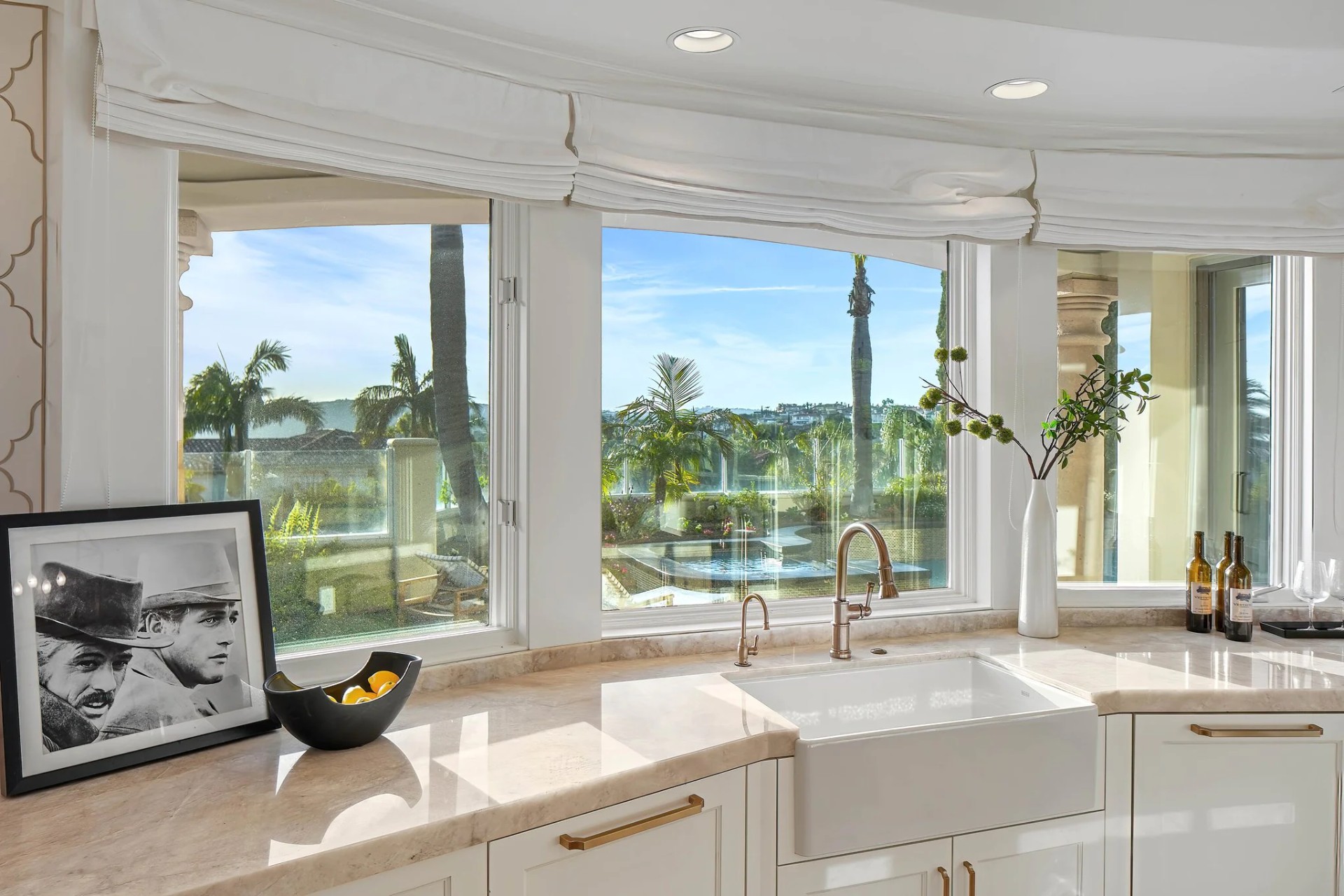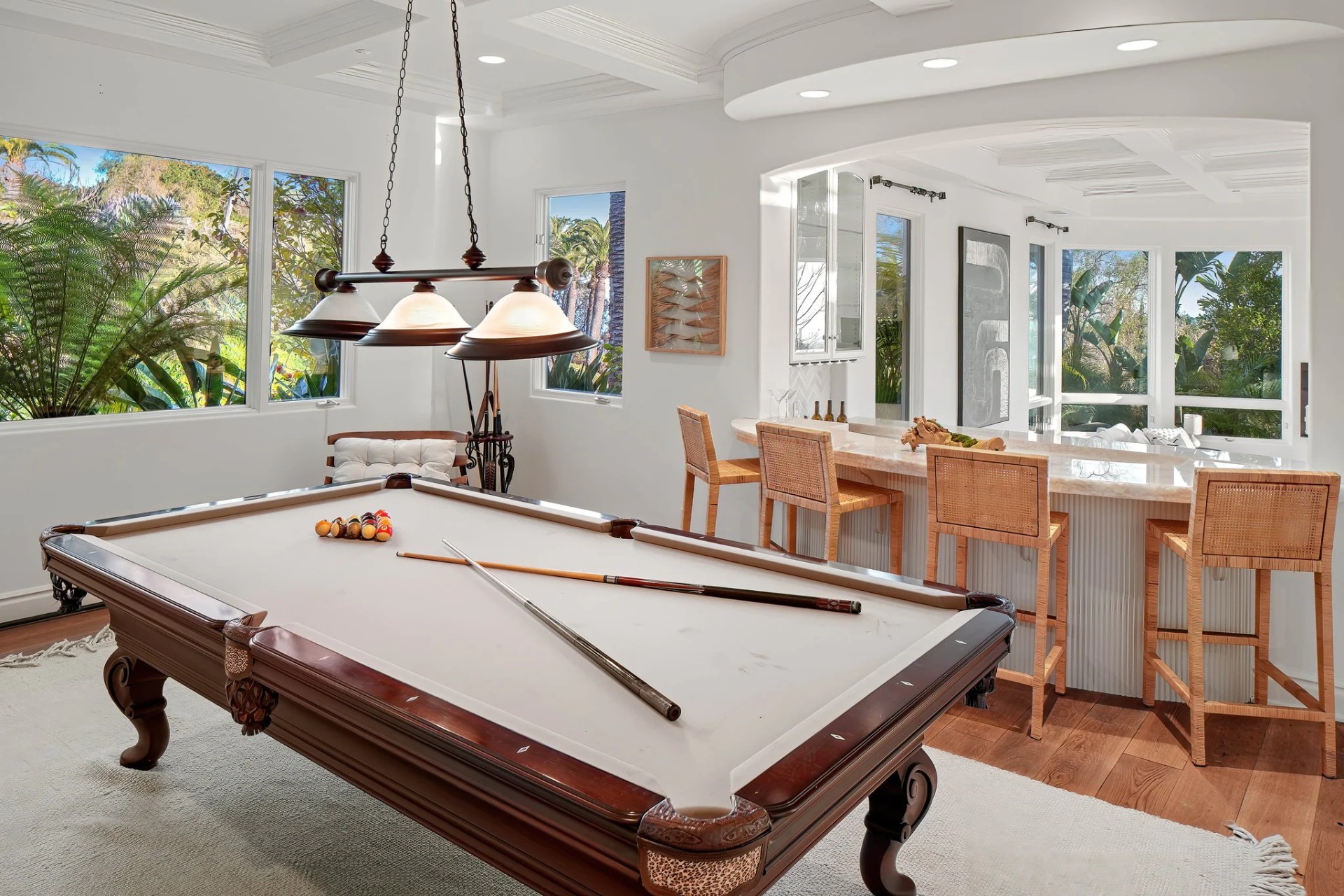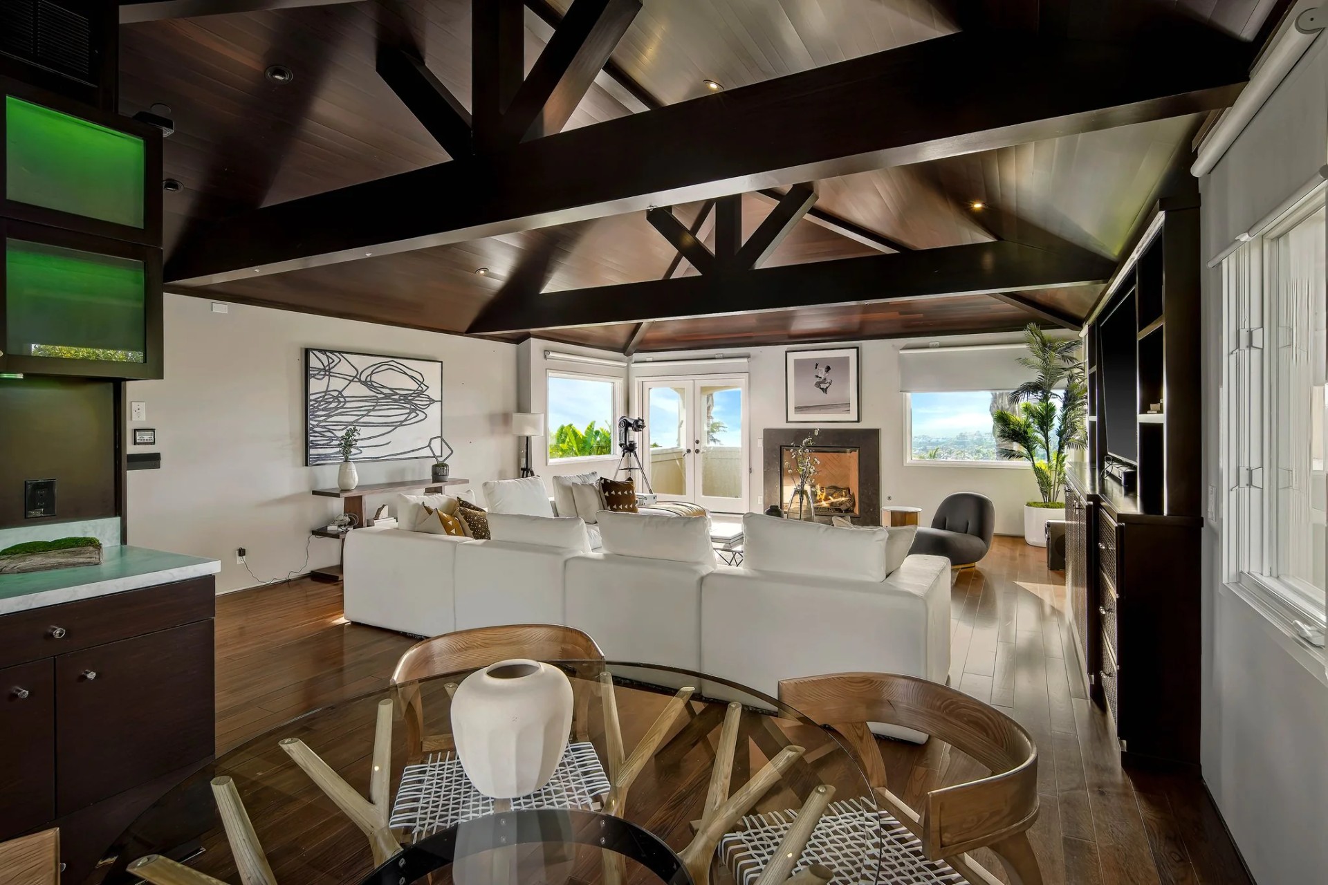 Located within the prestigious Bear Brand Ranch community in Laguna Niguel, this 7,500+ sq. ft. home sits on an expansive corner lot with views of Pacific Ocean and boasts 6 beds, 8 baths, and every amenity imaginable. Upon entrance, the foyer features a double-height ceiling, wrought iron chandelier and railings, and a grand hardwood curving staircase. The living room, also with a double-height ceiling, has an abundance of light thanks to a wall of windows overlooking the sparkling pool. The elegant dining room has a two-sided fireplace, shared with the adjacent living room, large windows with views of the pool, and a modern glass chandelier. The chef’s kitchen comes with SubZero and Wolf appliances, beautiful tile backsplash, sleek white cabinetry with Crystalo quartzite counters, and a large center island with breakfast bar. The cozy family room is bright and airy and comes with a double-sided fireplace and a bar - which is shared with the billiard room with bar seating. An ensuite guest bedroom and a gorgeous office with custom wood paneling and coffered ceiling complete this main level. The primary suite is a luxurious retreat with high vaulted ceilings, chandelier, large windows, double- sided fireplace, massive walk-in closet, and a private covered terrace with fireplace and ocean views. The spacious spa-like bathroom boasts dual sinks and vanity with marble countertops, a free-standing soaking tub, walk-in shower, and fireplace. Three additional ensuite bedrooms can be found on this level. Above the garage, you’ll find a spacious casita with vaulted ceilings and exposed wood beams, sink, mini-fridge, and a full bathroom. The expansive backyard is perfect for either a peaceful retreat or for entertaining guests. This space offers multiple covered seating/eating areas, pool and spa, and an outdoor BBQ. A fully equipped gym (located in the RV garage) and a 5-car garage complete this unique offering. Property is located near excellent public and private schools, shops, restaurants, hiking/biking trails, and world-class beaches.