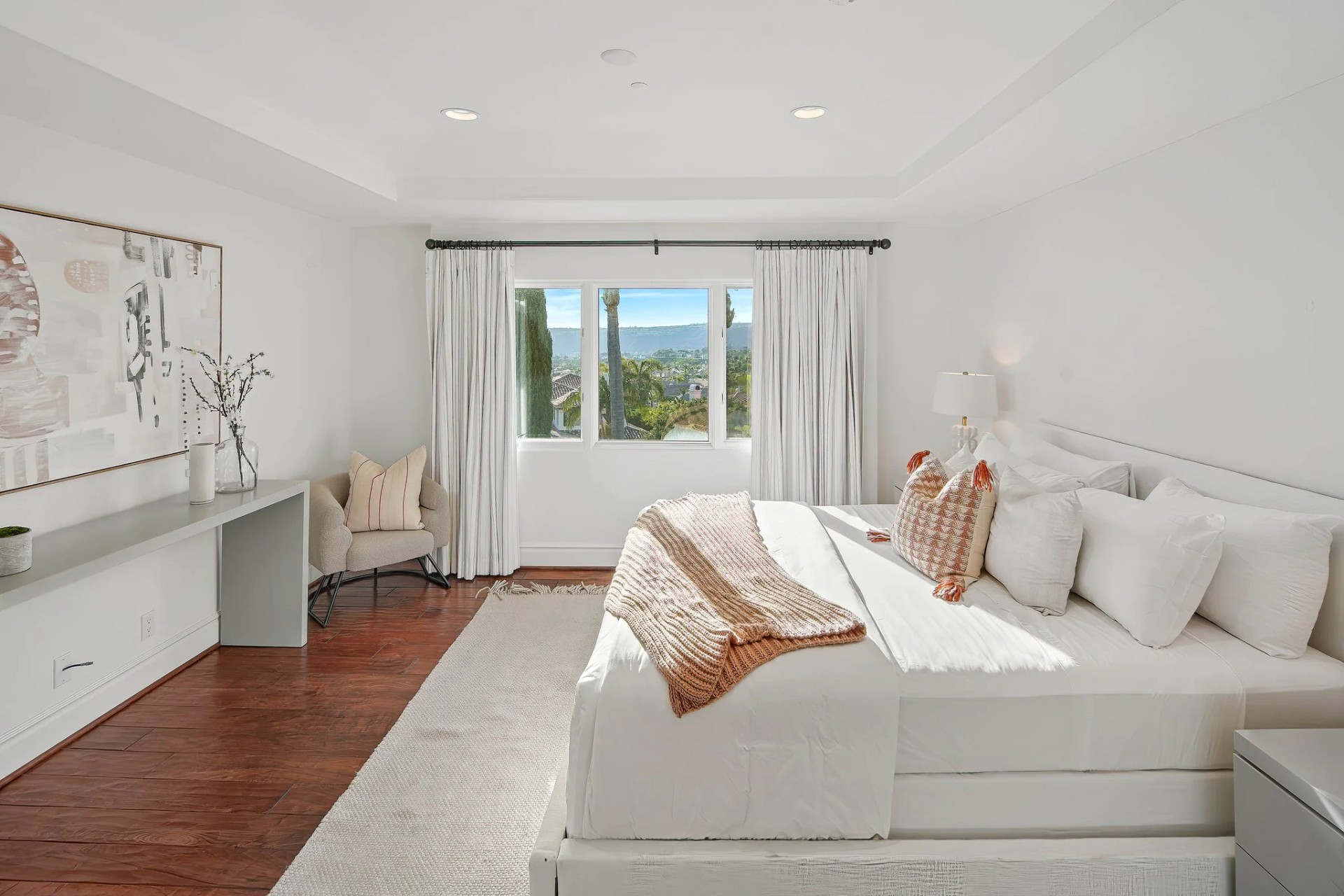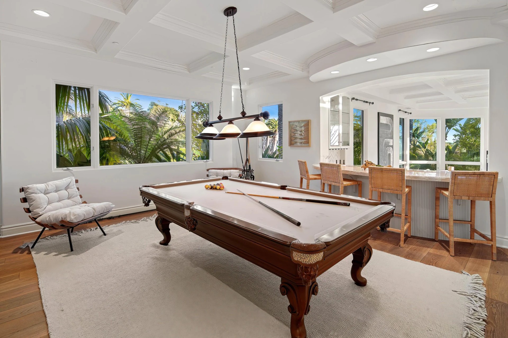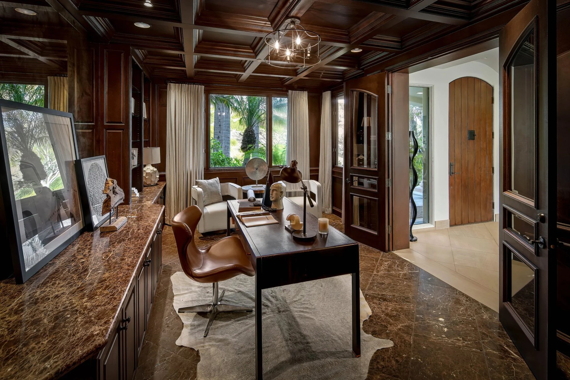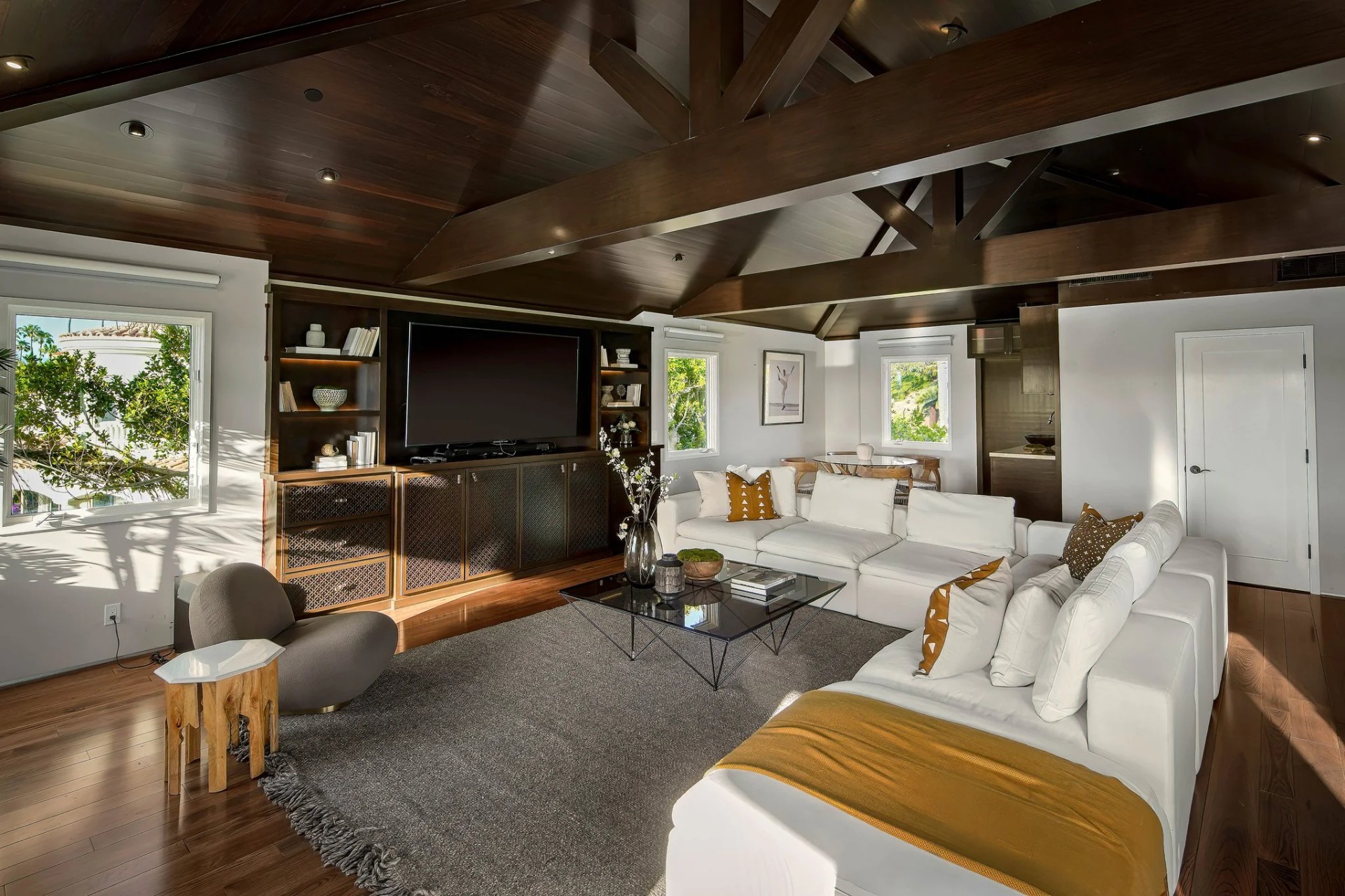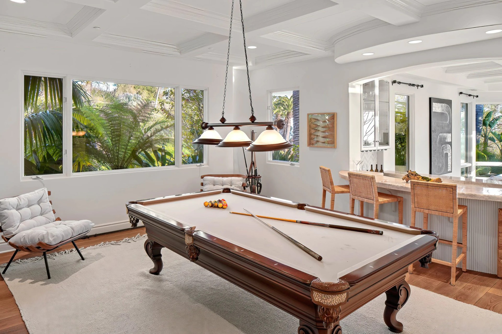 Located within the prestigious Bear Brand Ranch community in Laguna Niguel, this 7,500+ sq. ft. home sits on an expansive corner lot with views of Pacific Ocean and boasts 6 beds, 8 baths, and every amenity imaginable. Upon entrance, the foyer features a double-height ceiling, wrought iron chandelier and railings, and a grand hardwood curving staircase. The living room, also with a double-height ceiling, has an abundance of light thanks to a wall of windows overlooking the sparkling pool. The elegant dining room has a two-sided fireplace, shared with the adjacent living room, large windows with views of the pool, and a modern glass chandelier. The chef’s kitchen comes with SubZero and Wolf appliances, beautiful tile backsplash, sleek white cabinetry with Crystalo quartzite counters, and a large center island with breakfast bar. The cozy family room is bright and airy and comes with a double-sided fireplace and a bar - which is shared with the billiard room with bar seating. An ensuite guest bedroom and a gorgeous office with custom wood paneling and coffered ceiling complete this main level. The primary suite is a luxurious retreat with high vaulted ceilings, chandelier, large windows, double- sided fireplace, massive walk-in closet, and a private covered terrace with fireplace and ocean views. The spacious spa-like bathroom boasts dual sinks and vanity with marble countertops, a free-standing soaking tub, walk-in shower, and fireplace. Three additional ensuite bedrooms can be found on this level. Above the garage, you’ll find a spacious casita with vaulted ceilings and exposed wood beams, sink, mini-fridge, and a full bathroom. The expansive backyard is perfect for either a peaceful retreat or for entertaining guests. This space offers multiple covered seating/eating areas, pool and spa, and an outdoor BBQ. A fully equipped gym (located in the RV garage) and a 5-car garage complete this unique offering. Property is located near excellent public and private schools, shops, restaurants, hiking/biking trails, and world-class beaches.