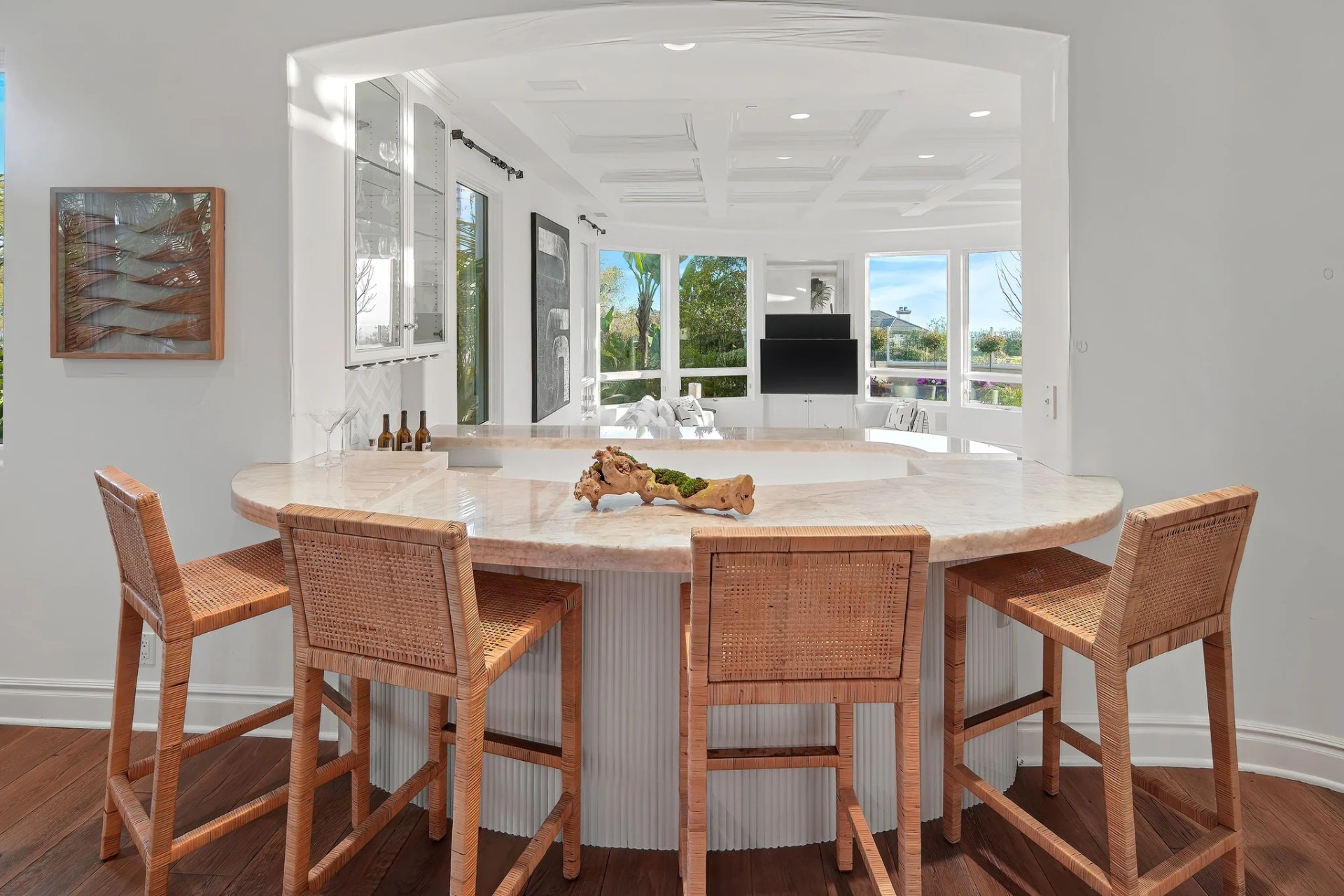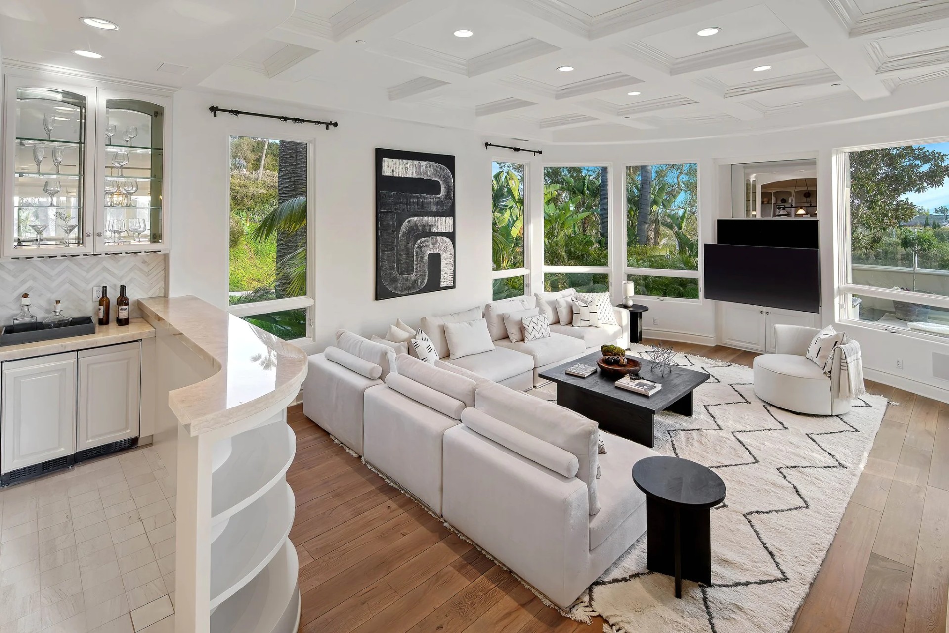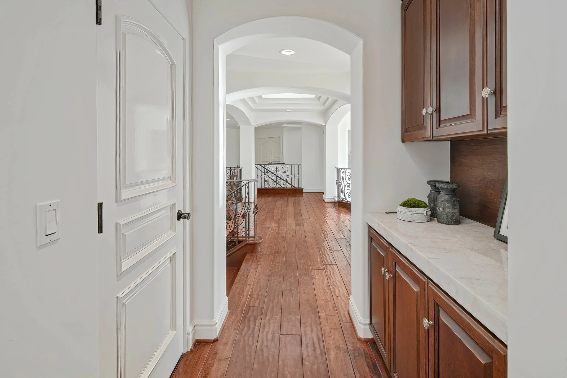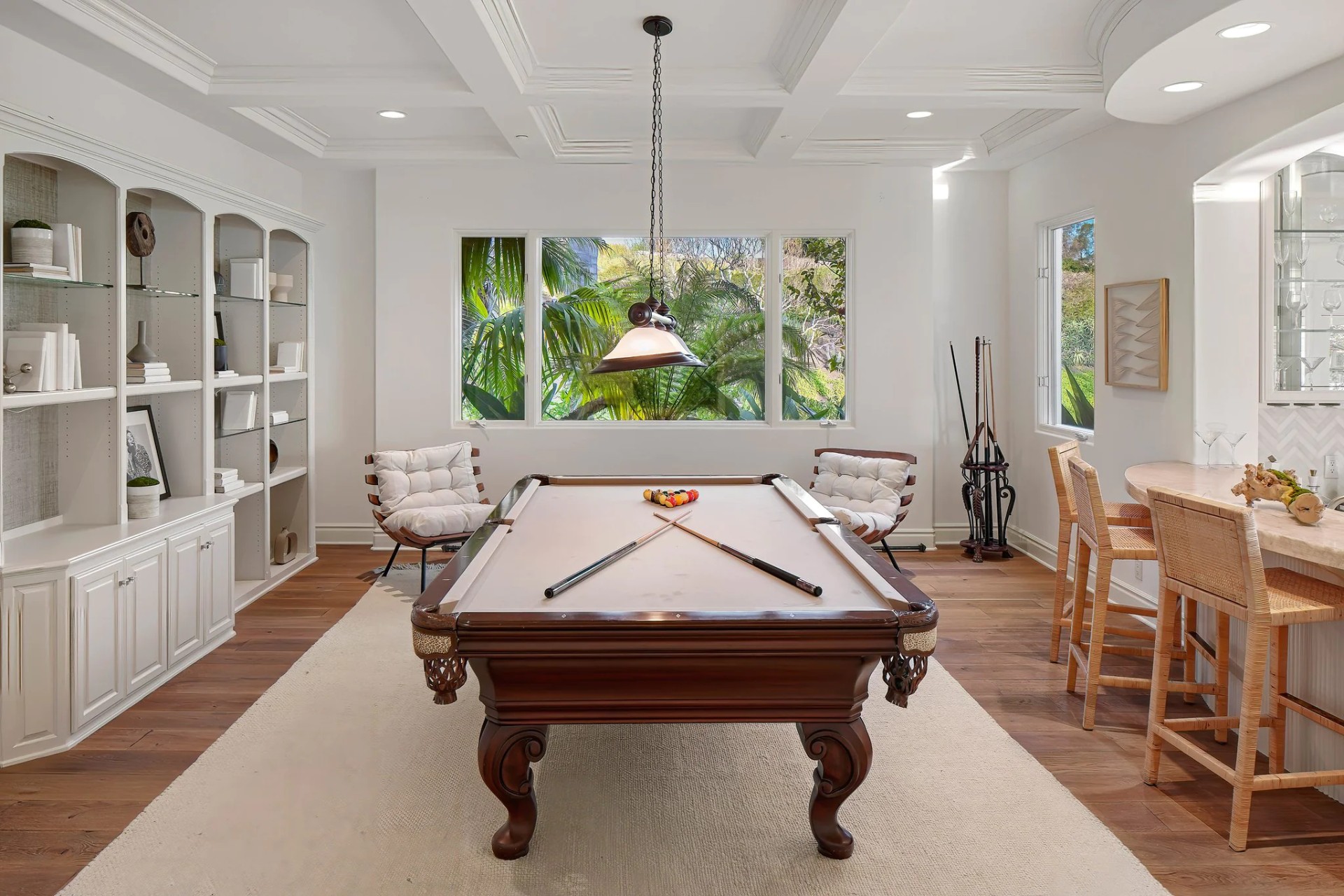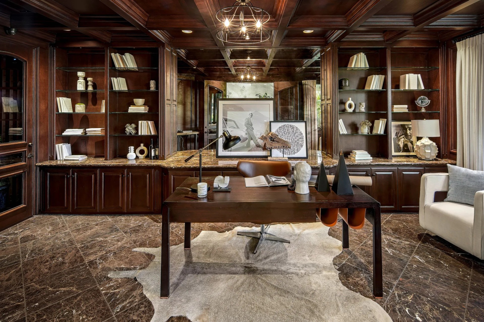Located within the prestigious Bear Brand Ranch community in Laguna Niguel, this 7,500+ sq. ft. home sits on an expansive corner lot with views of Pacific Ocean and boasts 6 beds, 8 baths, and every amenity imaginable. Upon entrance, the foyer features a double-height ceiling, wrought iron chandelier and railings, and a grand hardwood curving staircase. The living room, also with a double-height ceiling, has an abundance of light thanks to a wall of windows overlooking the sparkling pool. The elegant dining room has a two-sided fireplace, shared with the adjacent living room, large windows with views of the pool, and a modern glass chandelier. The chef’s kitchen comes with SubZero and Wolf appliances, beautiful tile backsplash, sleek white cabinetry with Crystalo quartzite counters, and a large center island with breakfast bar. The cozy family room is bright and airy and comes with a double-sided fireplace and a bar - which is shared with the billiard room with bar seating. An ensuite guest bedroom and a gorgeous office with custom wood paneling and coffered ceiling complete this main level. The primary suite is a luxurious retreat with high vaulted ceilings, chandelier, large windows, double- sided fireplace, massive walk-in closet, and a private covered terrace with fireplace and ocean views. The spacious spa-like bathroom boasts dual sinks and vanity with marble countertops, a free-standing soaking tub, walk-in shower, and fireplace. Three additional ensuite bedrooms can be found on this level. Above the garage, you’ll find a spacious casita with vaulted ceilings and exposed wood beams, sink, mini-fridge, and a full bathroom. The expansive backyard is perfect for either a peaceful retreat or for entertaining guests. This space offers multiple covered seating/eating areas, pool and spa, and an outdoor BBQ. A fully equipped gym (located in the RV garage) and a 5-car garage complete this unique offering. Property is located near excellent public and private schools, shops, restaurants, hiking/biking trails, and world-class beaches.