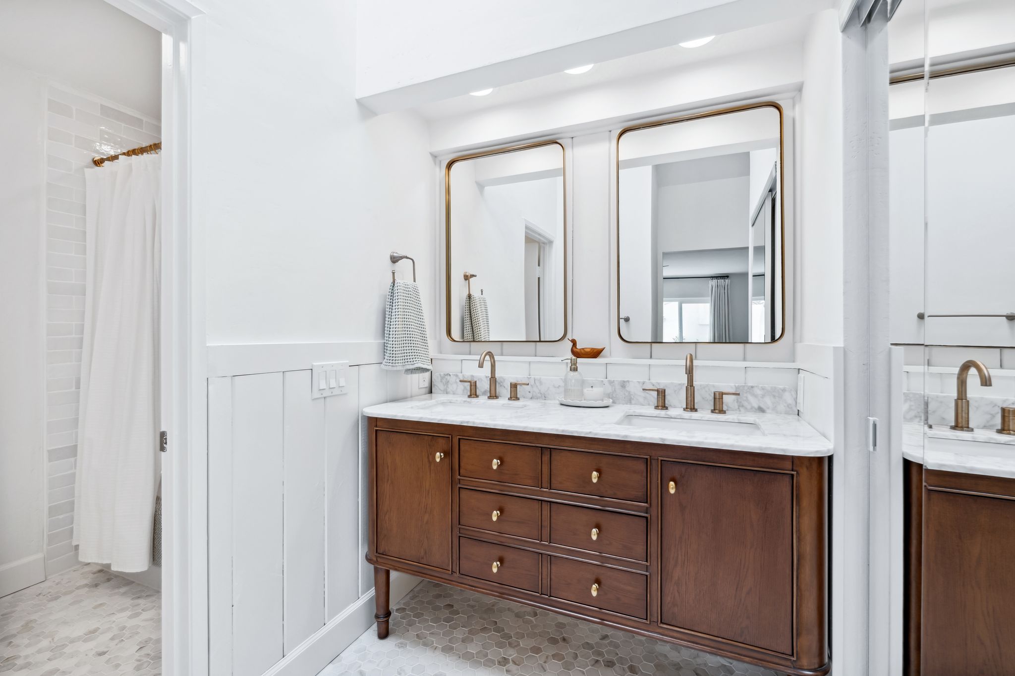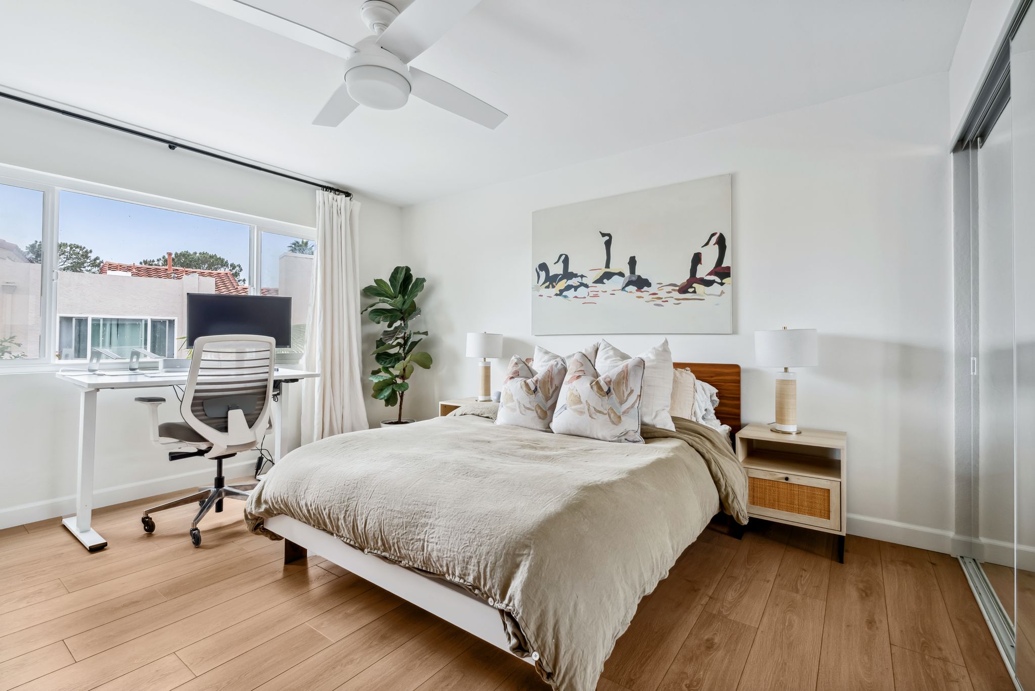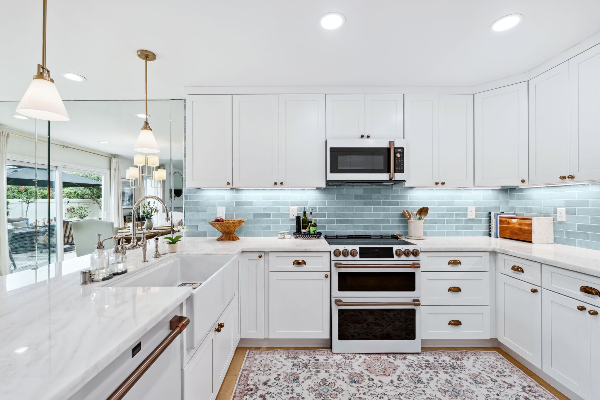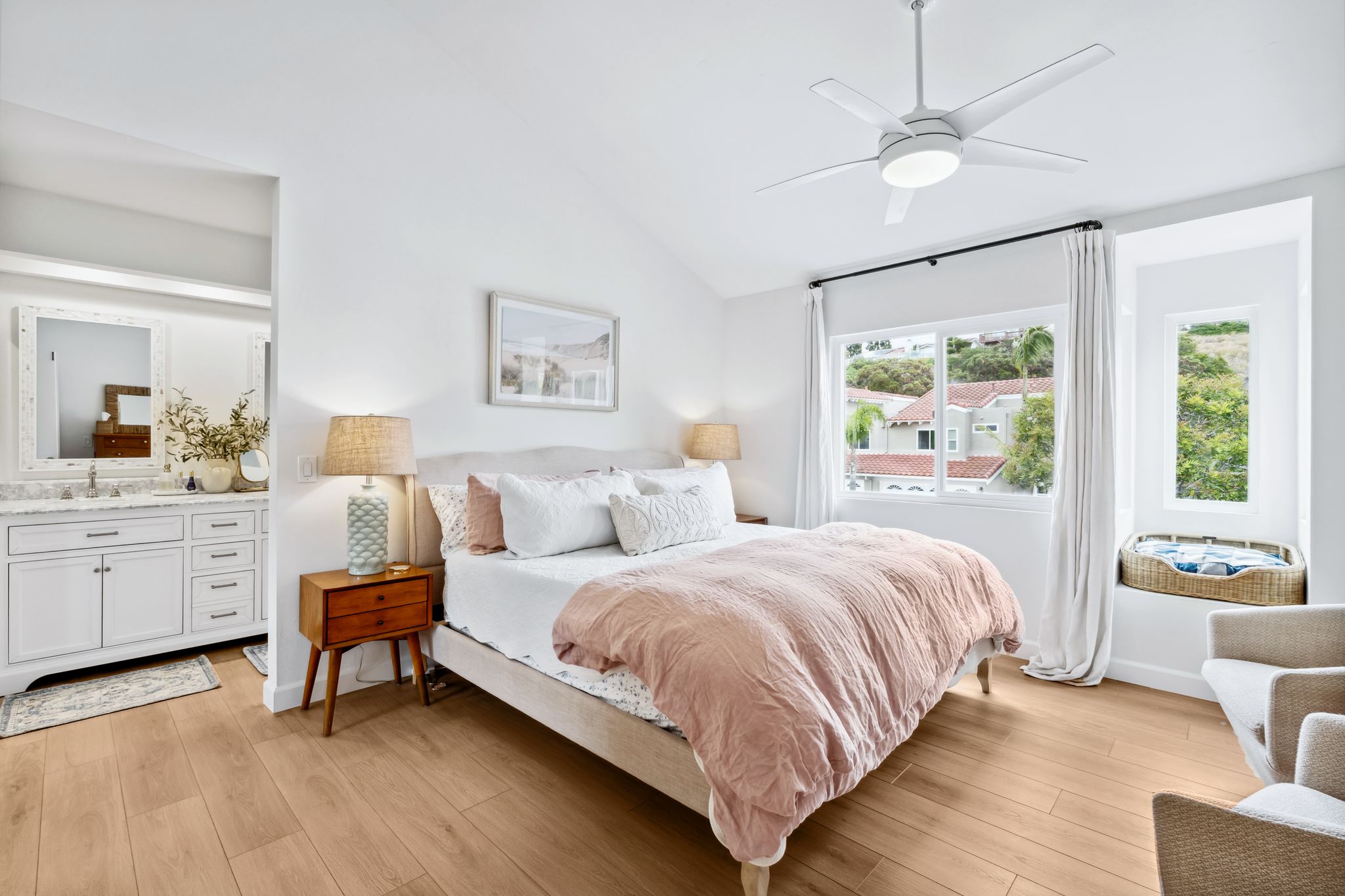 Coastal luxury meets everyday functionality in this beautifully upgraded home in Cardiff Park, one of Cardiff-by-the-Sea’s most desirable communities. Located just 1 mile from the beach, this 3 bed, 3 full bath residence offers 1,549 SqFt of thoughtfully renovated, open-concept living, complete with vaulted ceilings and an abundance of natural light throughout. The layout includes a convenient first-floor bedroom and full bathroom—ideal for guests, multi-gen living, or a home office. Upstairs, you’ll find two spacious en-suite bedrooms, both with fully renovated bathrooms featuring high-end fixtures. This home boasts over $200,000 in market valued high-end upgrades, including a full custom kitchen remodel with natural quartzite countertops, GE Café appliances, and premium Rohl plumbing fixtures. The designer bathrooms are beautifully appointed, and premium engineered hardwood flooring flows throughout. Additional features include a 7.2kW owned solar system, new roofing, dual-pane windows throughout, and a comprehensive smart home lighting package with smart switches and high-performance LED lighting for modern convenience. Other highlights include smooth skim-coated walls, a new marble fireplace, central heating & air, a custom laundry station, and a two-car garage. The private backyard features a grassy area for pets or play plus a padded zone perfect for BBQs or outdoor dining. Located in Cardiff Park, a community with low HOA fees that provide access to a pool, spa, and BBQ area, and just minutes from Encinitas Community Park, Cardiff’s top-rated schools, Cardiff Plaza, Coast Hwy 101, and downtown Encinitas—this is turnkey North County coastal living at its finest.