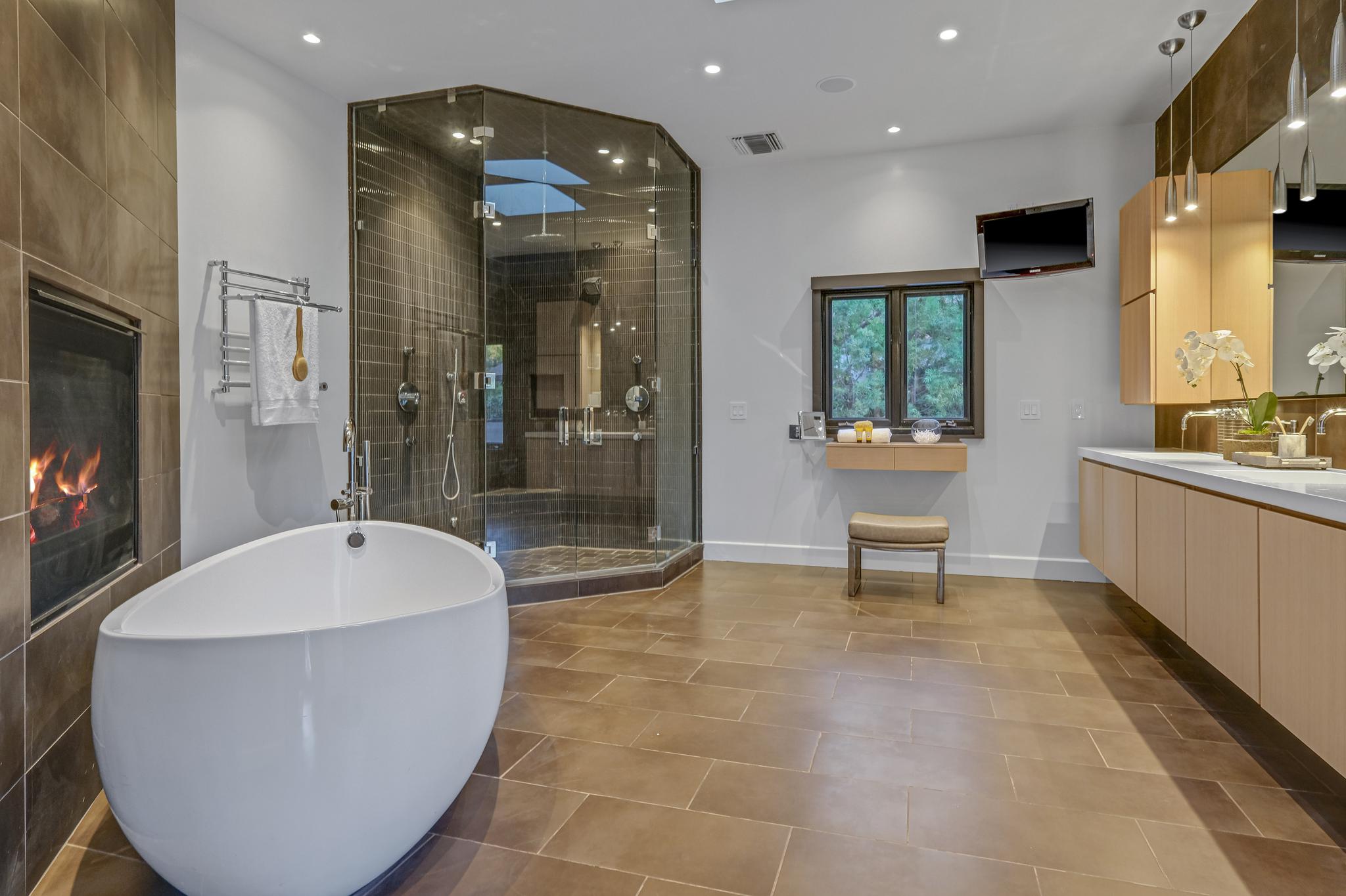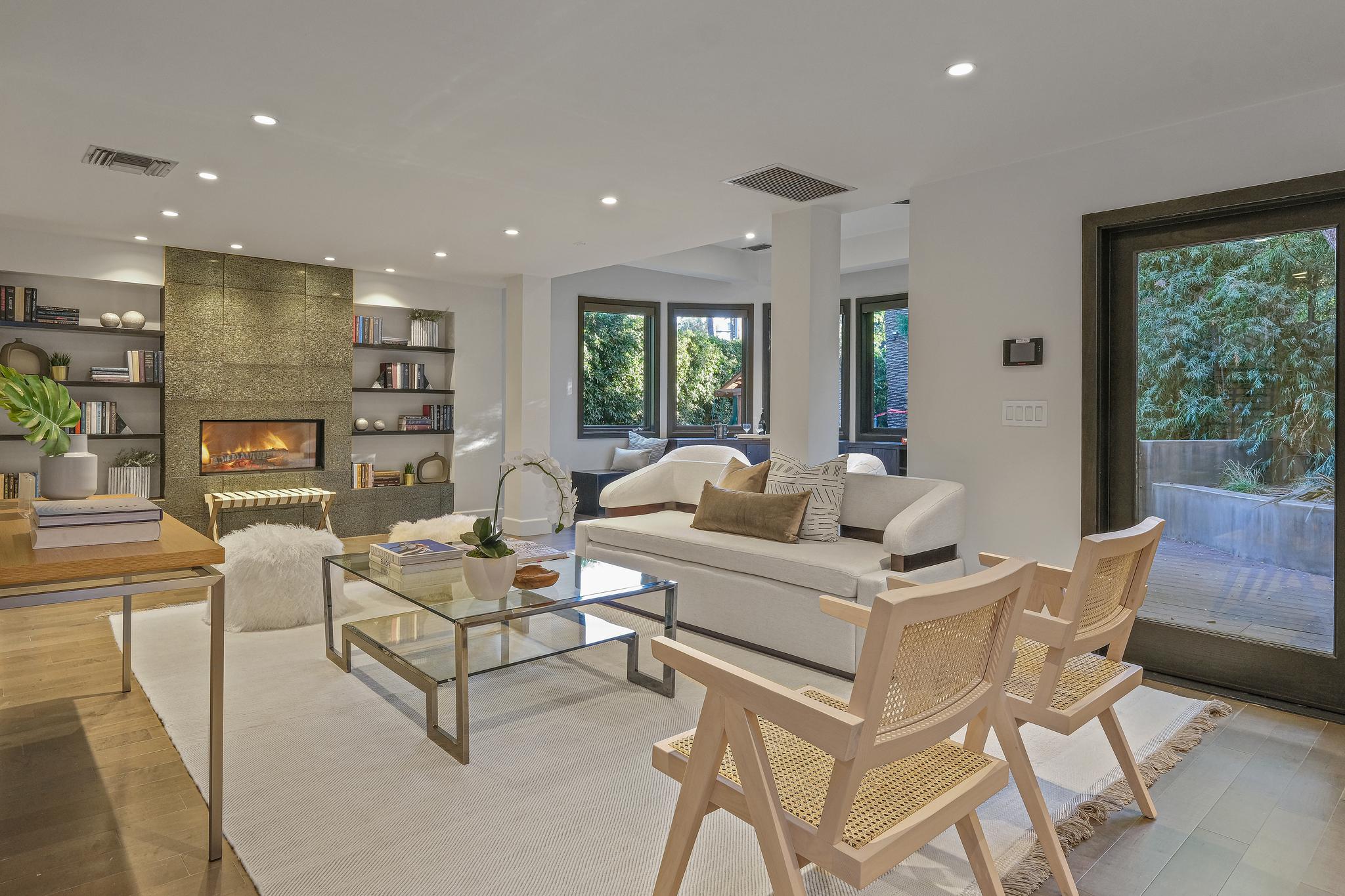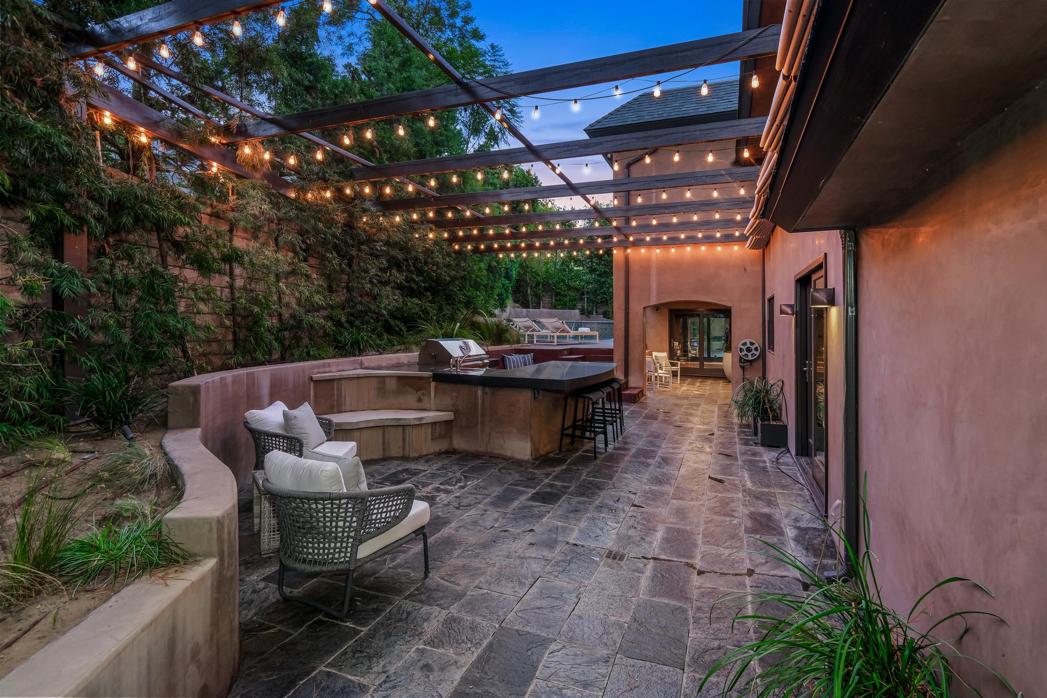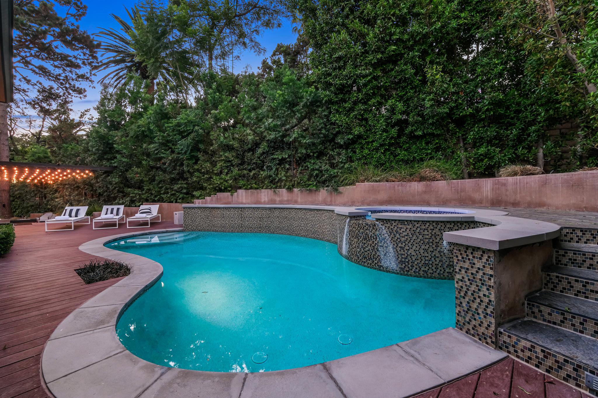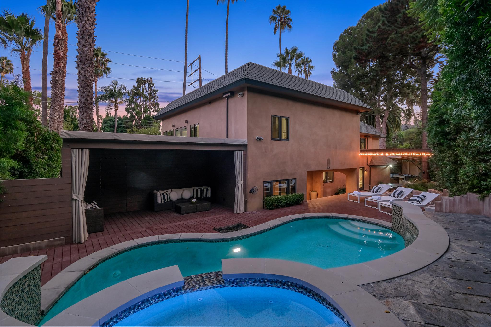 Stunning, sleek, stylish - this dramatic contemporary, 3 bed/3.5 bath home with a top of the line in-home theater and gym, has been renovated throughout with meticulous attention to design and detail. The seamless indoor-outdoor flow creates inviting spaces for entertaining; including an outdoor kitchen, al fresco dining area, and private pool/spa with a relaxing cabana. Expansive windows throughout the home maximize the lush, serene outlooks, and basks the home with abundant natural light. Completely gated and private, this home boasts a chef's kitchen replete with Miele appliances and Italian cabinetry, 2 large ensuite guest bedrooms with ample closet space, and an owner's suite with spa-quality bathroom, 2 walk-in closets, and large balcony. A true Smart Home, including a Crestron system with automatic blinds, a Savant Home Theater system, and sound/security throughout the inside/outside of the house, this compound checks all the boxes for high-quality Southern California living.