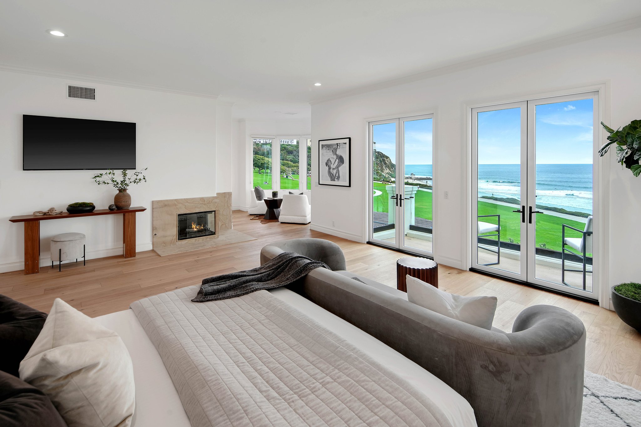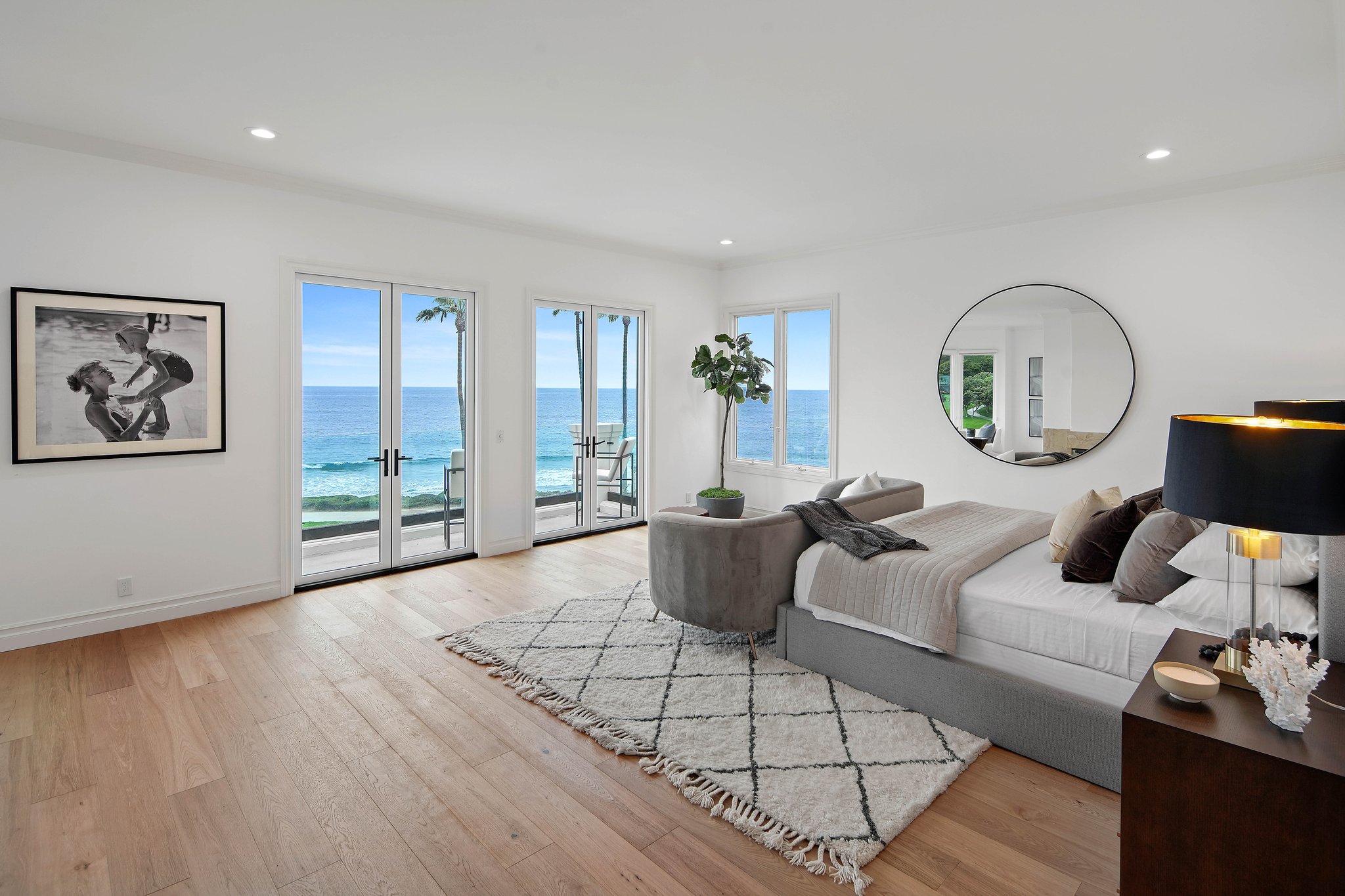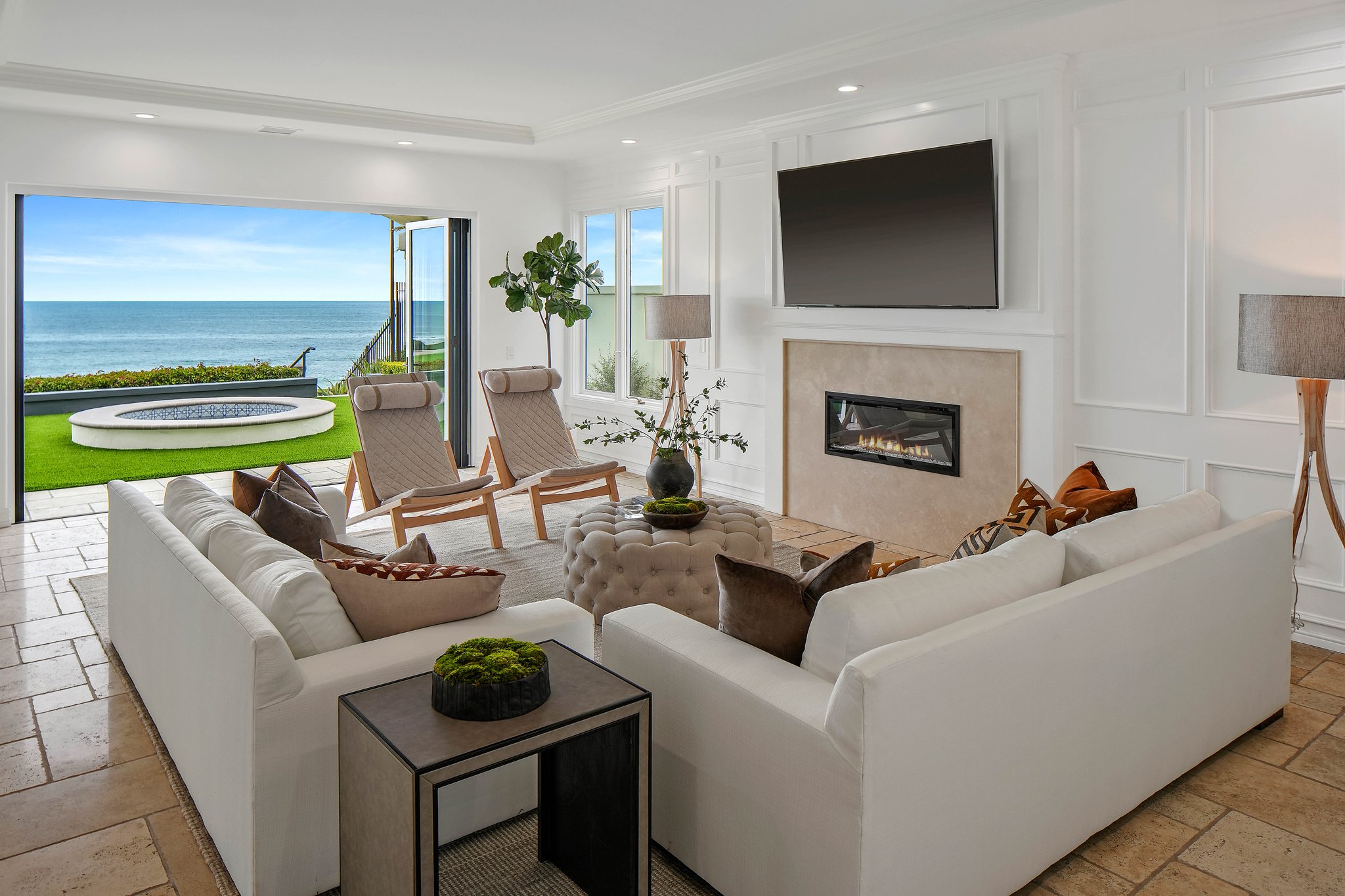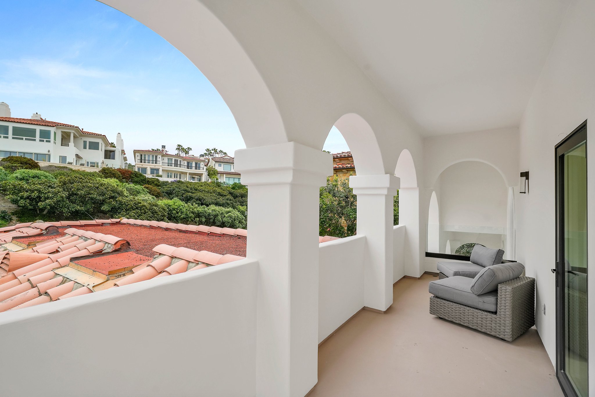 Welcome to this exquisite oceanfront residence situated in the guard-gated community of Ritz Cove, one of the most sought-after coastal communities in Orange County where unrivaled luxury and exclusivity converge. Nestled between the iconic Ritz Carlton luxury hotel and the Monarch Beach Golf Course, this one-of-a-kind beachfront property offers breathtaking year-round views of sunsets over the break at Salt Creek Beach and Catalina Island from nearly every room in the home. Upon entering, you are enveloped by the welcoming, bright and airy floor plan and feel instantly at peace in your own private oasis. Five bedrooms and five bathrooms are spread across two levels, and a bonus room provides the flexibility to create a home office, media room, or gym. Each room is generously apportioned and flows seamlessly into the next, while bespoke finishes blend architectural elements with contemporary design, resulting in a truly captivating aesthetic. The large curved glass window in the kitchen invites the ocean inside, while the attached living room space creates an entertaining paradise that opens up onto the private patio with spa, setting the perfect stage for outdoor gatherings and sophisticated entertaining. The master suite is a true sanctuary, featuring an expansive bedroom and private balcony with sweeping views of the Pacific Ocean and the Ritz Carlton, which shimmers in the evening sky. The master bath boasts a lavish soaking tub for two, a separate shower, and exquisite dual vanities, all under a skylight that bathes the room in a glowing light, creating a spa-like ambiance that elevates daily rituals to moments of bliss. The suite extends into an extensive private master closet space apportioned with all the necessary amenities, including a 3-way mirror and attached locking closet. Additionally, a private stairway with a private gated entrance grants direct access to the pristine beach and countless walking trails directly from the backyard. This breathtaking beachfront property presents an unparalleled opportunity for a personal haven of relaxation and entertaining while offering the most captivating ocean and white-water views.