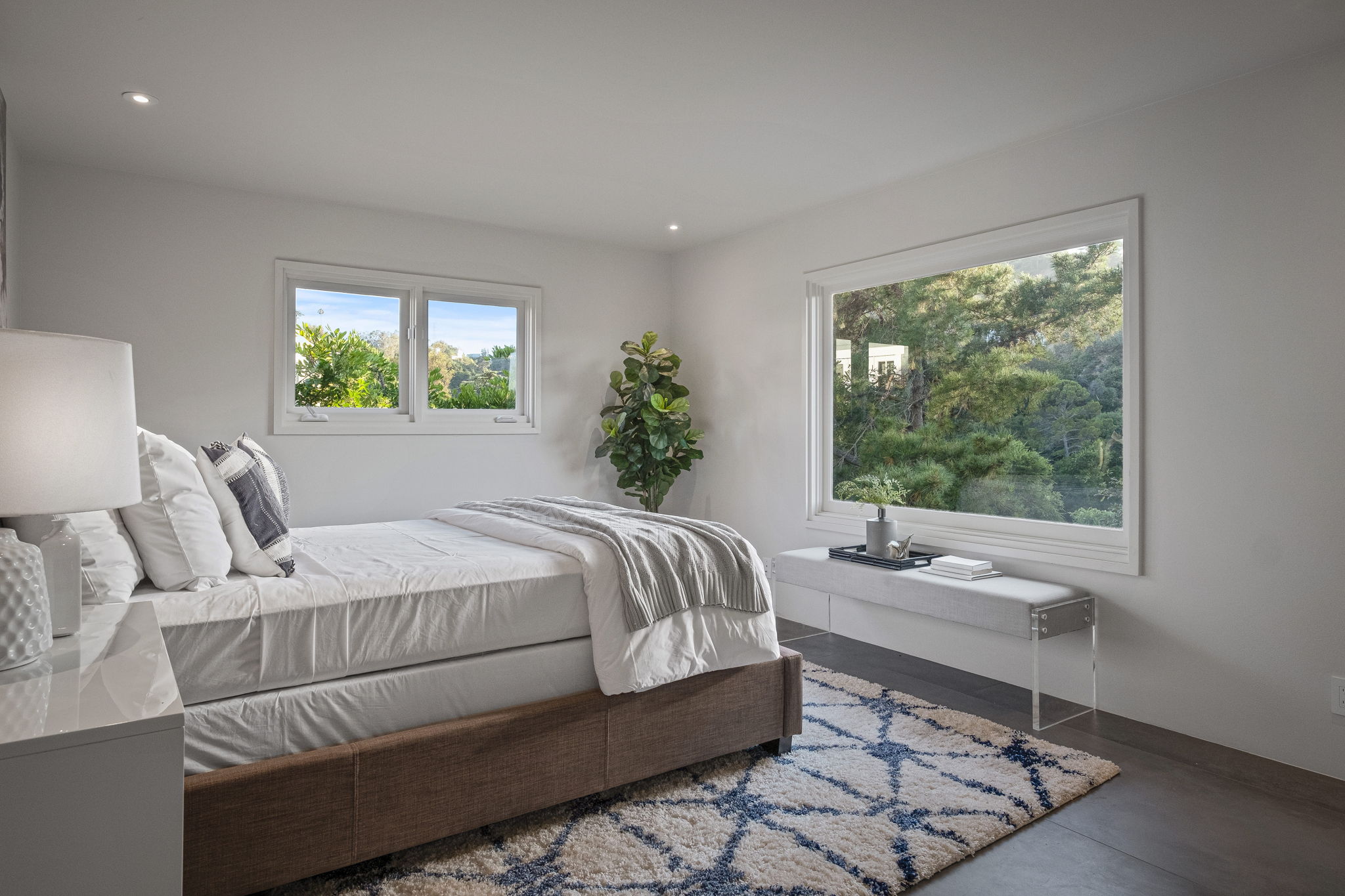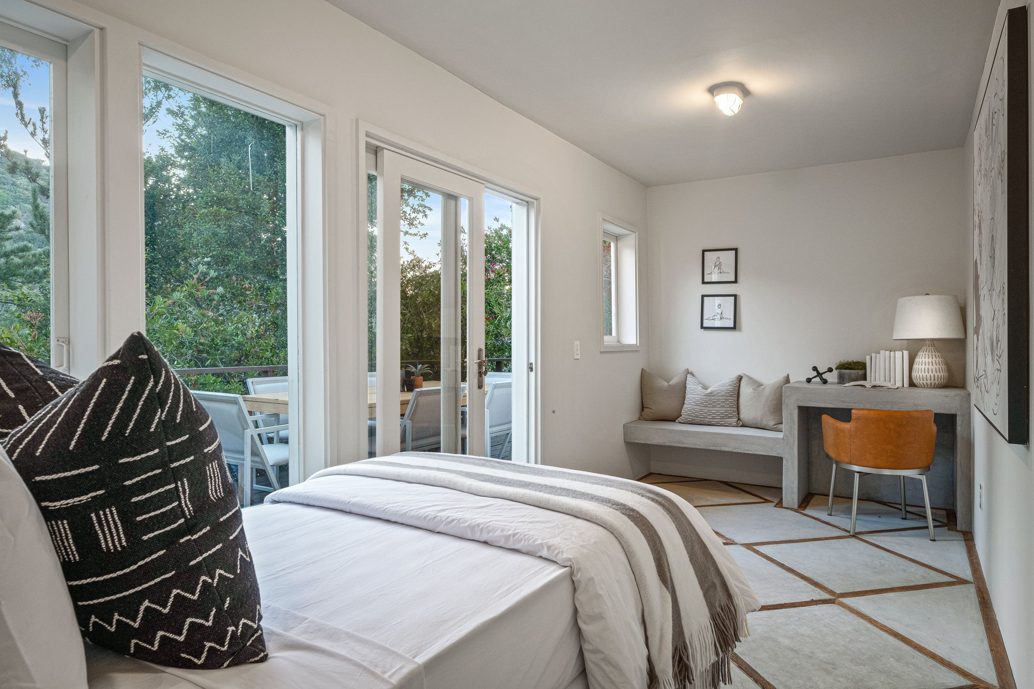 A private architectural retreat with stunning canyon views. Impeccably designed and re-imagined, this charming home features an open floor plan, exposed wood beam ceilings, oversized windows that allow an abundance of natural light, imported Italian tiles, and tastefully exposed concrete finishes. The chef’s kitchen is replete with with white and dark oak Italian cabinetry, white quartz countertops, hints of natural volcanic stone, Bertazzoni appliances and built-in espresso maker. The elegant owner’s suite has a spa-like bath with a contemporary cement Japanese soaking tub, oversized dual vanity sinks, and dual walk-in closets. Significant deck space for tranquil indoor/outdoor flow and entertaining, the home also features a private studio with dedicated entrance that can function as an additional guest suite, gym, office, or artistic inspiration. Located in the Wonderland School District.