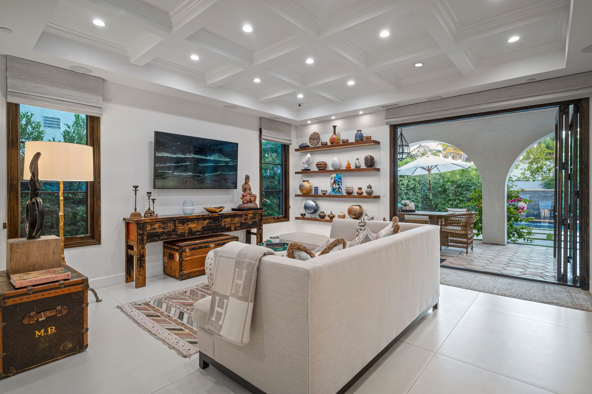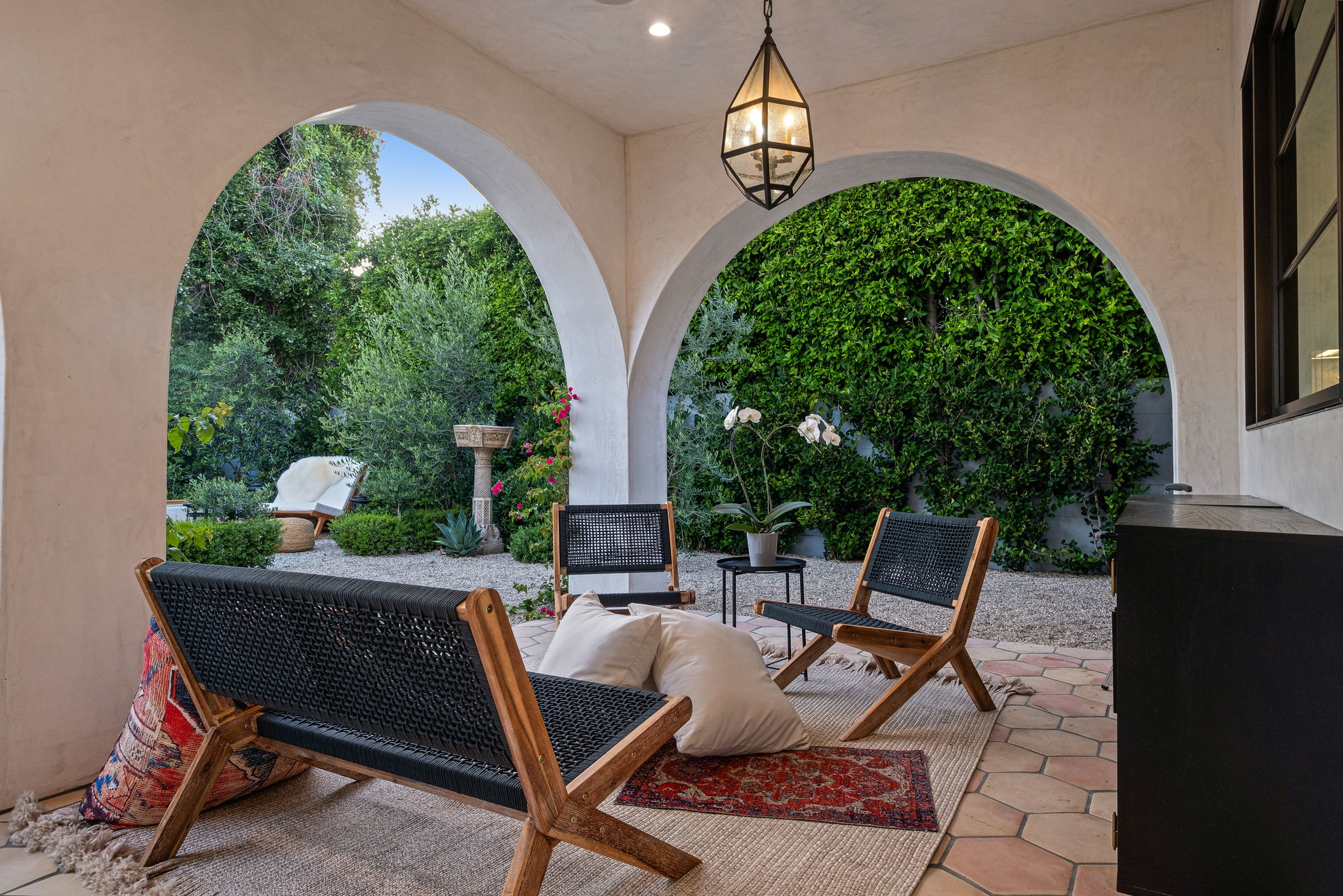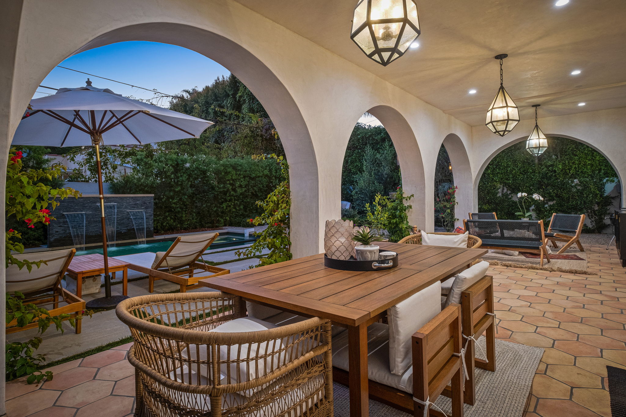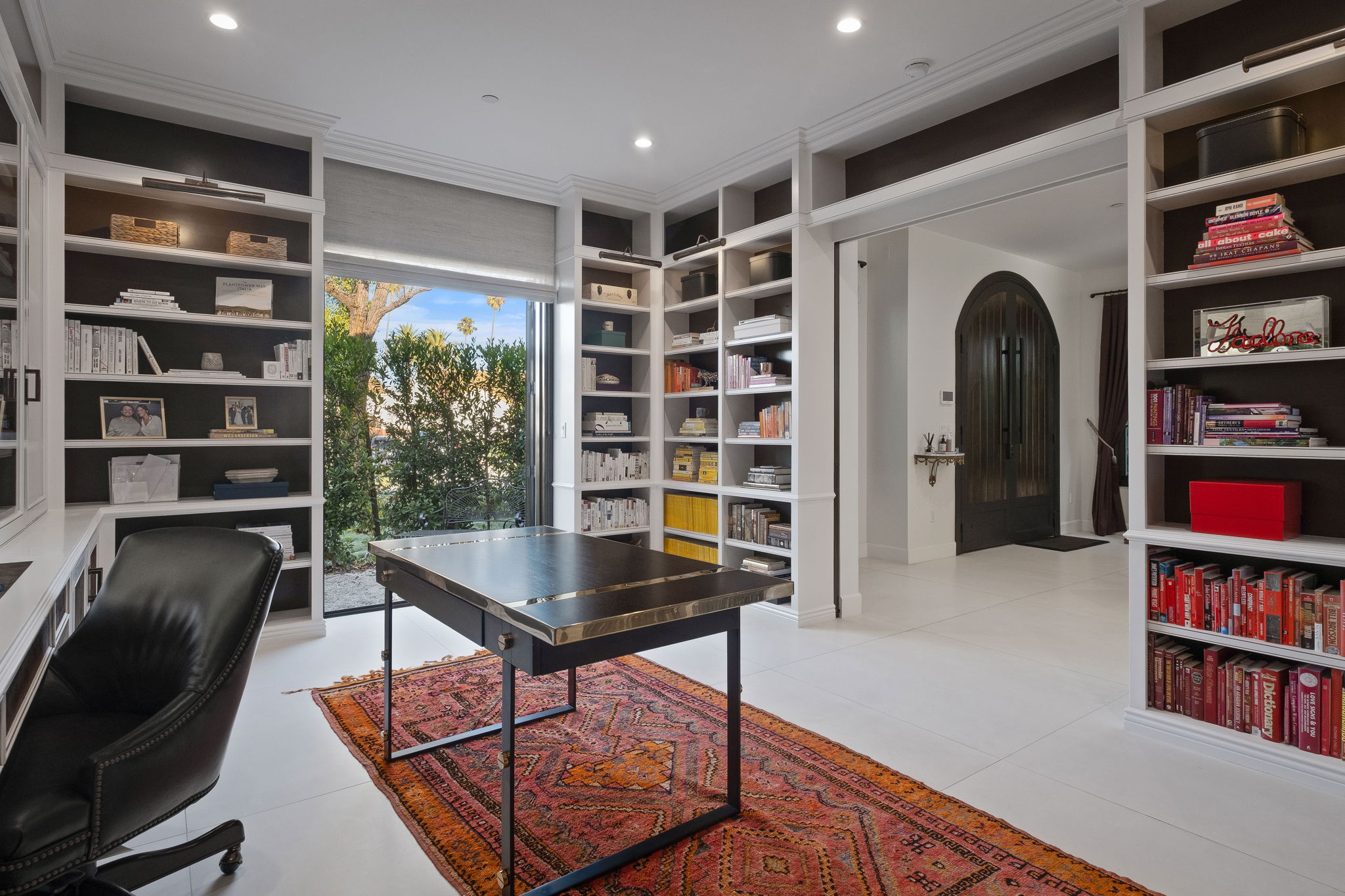 A beautiful contemporary Spanish estate in the heart of Beverly Hills. Purchased brand new in 2019, the current owners have spent several hundred thousand dollars refining the interior with sophisticated built-ins and finishes, and perfectly manicuring both front and back yards. The living and dining rooms feature elegant coffered ceilings and lead to the charming covered patio, spacious yard, and resort-style pool/spa via floor-to-ceiling glass doors. The chefs kitchen is replete with top-of-the-line Wolf and Sub-Zero appliances and custom center island with bar seating. A gorgeous office completes the first level of the house, with amazing pocket glass doors, library-style shelving, and privately hedged outdoor space. Upstairs, the grand and extra-wide staircase leads to 4 large bedrooms suites, each with beautiful vaulted ceilings and their own en-suite bathrooms. The large owner's suite offers a private balcony, amazing oversized spa-like bathroom, and a huge walk-in closet.