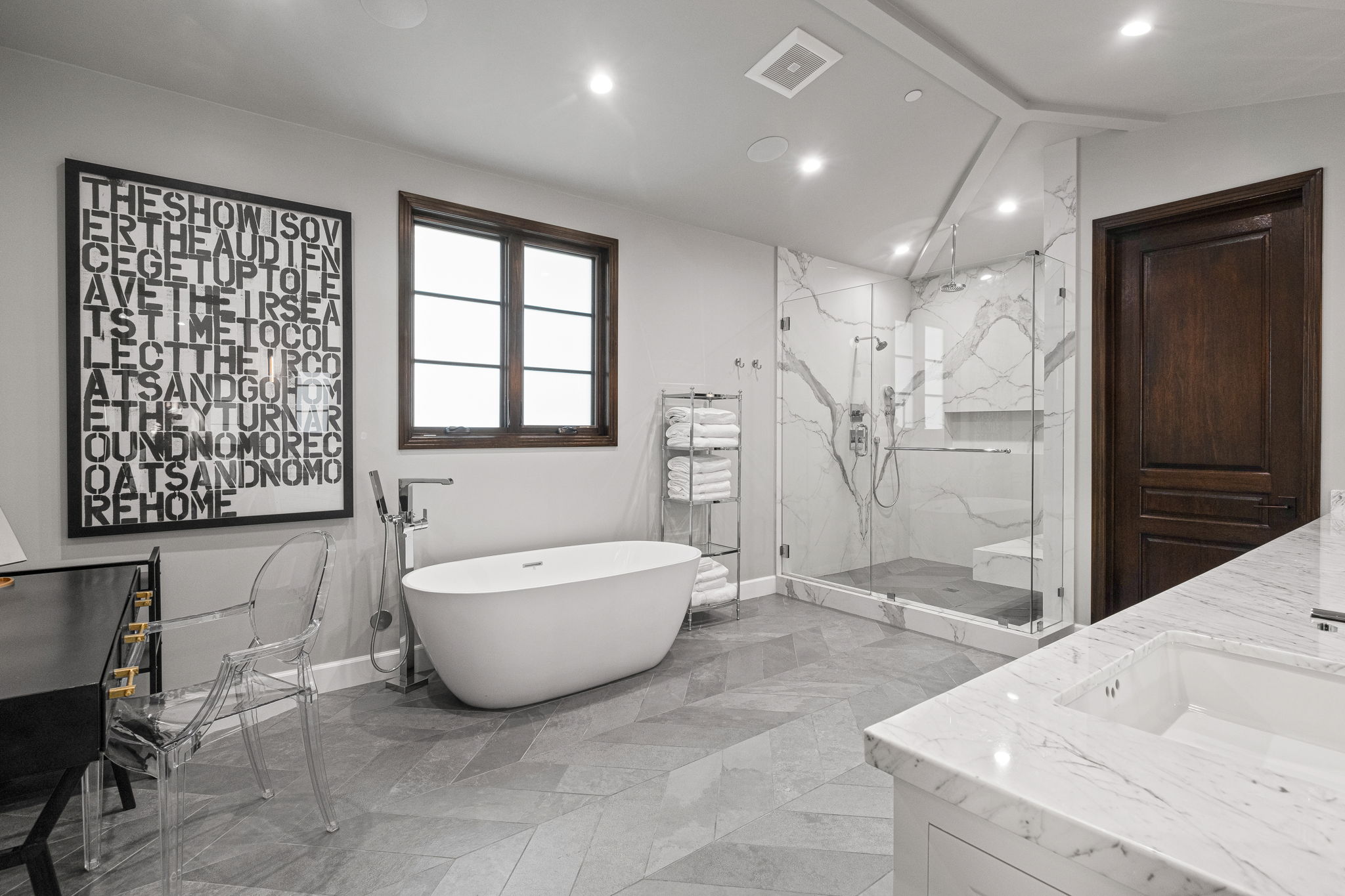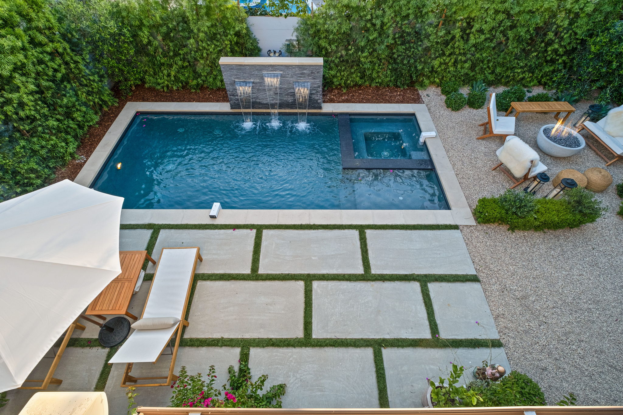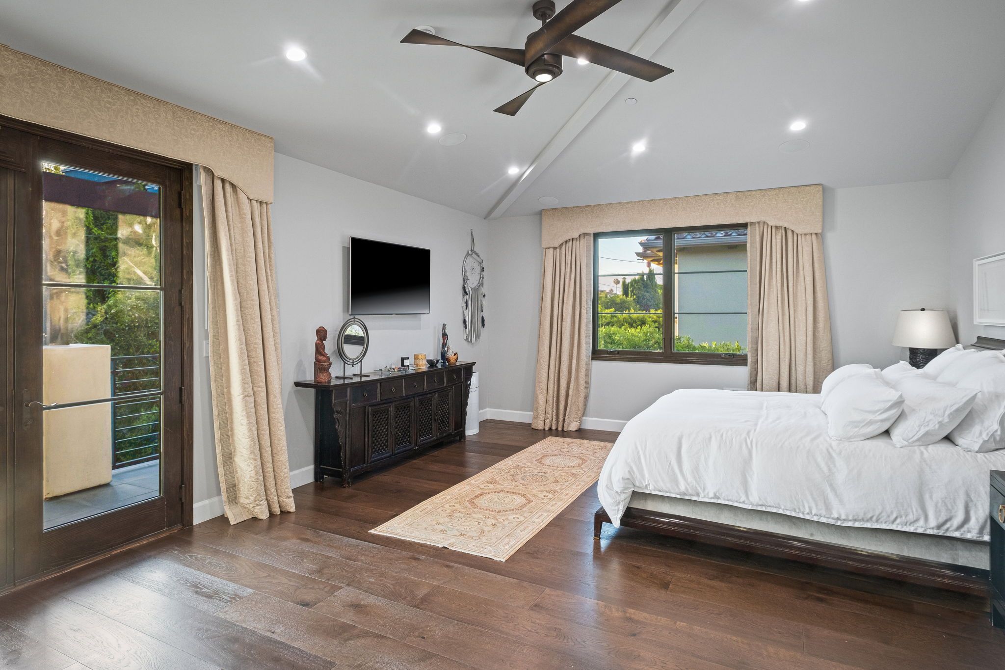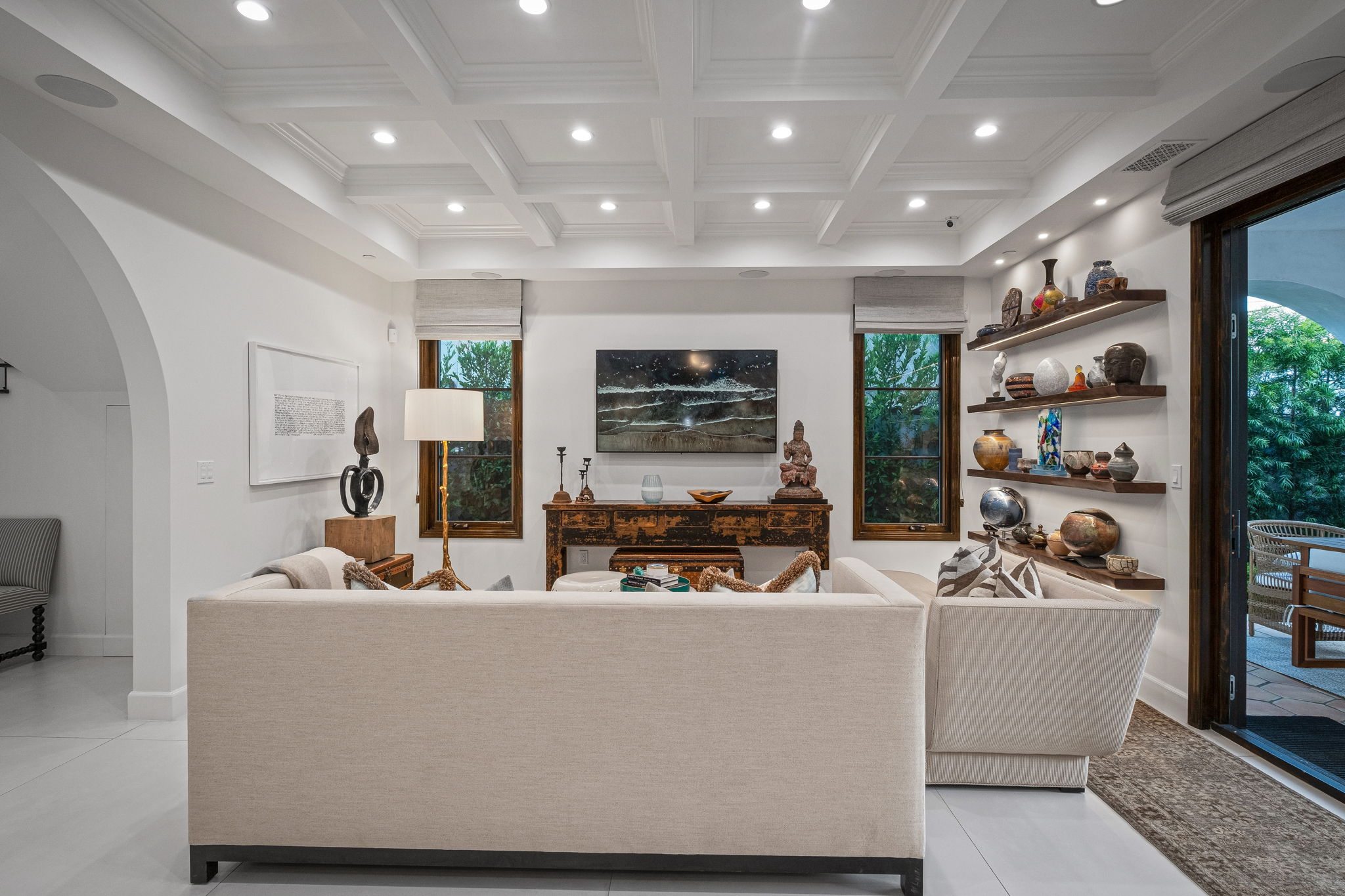 A beautiful contemporary Spanish estate in the heart of Beverly Hills. Purchased brand new in 2019, the current owners have spent several hundred thousand dollars refining the interior with sophisticated built-ins and finishes, and perfectly manicuring both front and back yards. The living and dining rooms feature elegant coffered ceilings and lead to the charming covered patio, spacious yard, and resort-style pool/spa via floor-to-ceiling glass doors. The chefs kitchen is replete with top-of-the-line Wolf and Sub-Zero appliances and custom center island with bar seating. A gorgeous office completes the first level of the house, with amazing pocket glass doors, library-style shelving, and privately hedged outdoor space. Upstairs, the grand and extra-wide staircase leads to 4 large bedrooms suites, each with beautiful vaulted ceilings and their own en-suite bathrooms. The large owner's suite offers a private balcony, amazing oversized spa-like bathroom, and a huge walk-in closet.