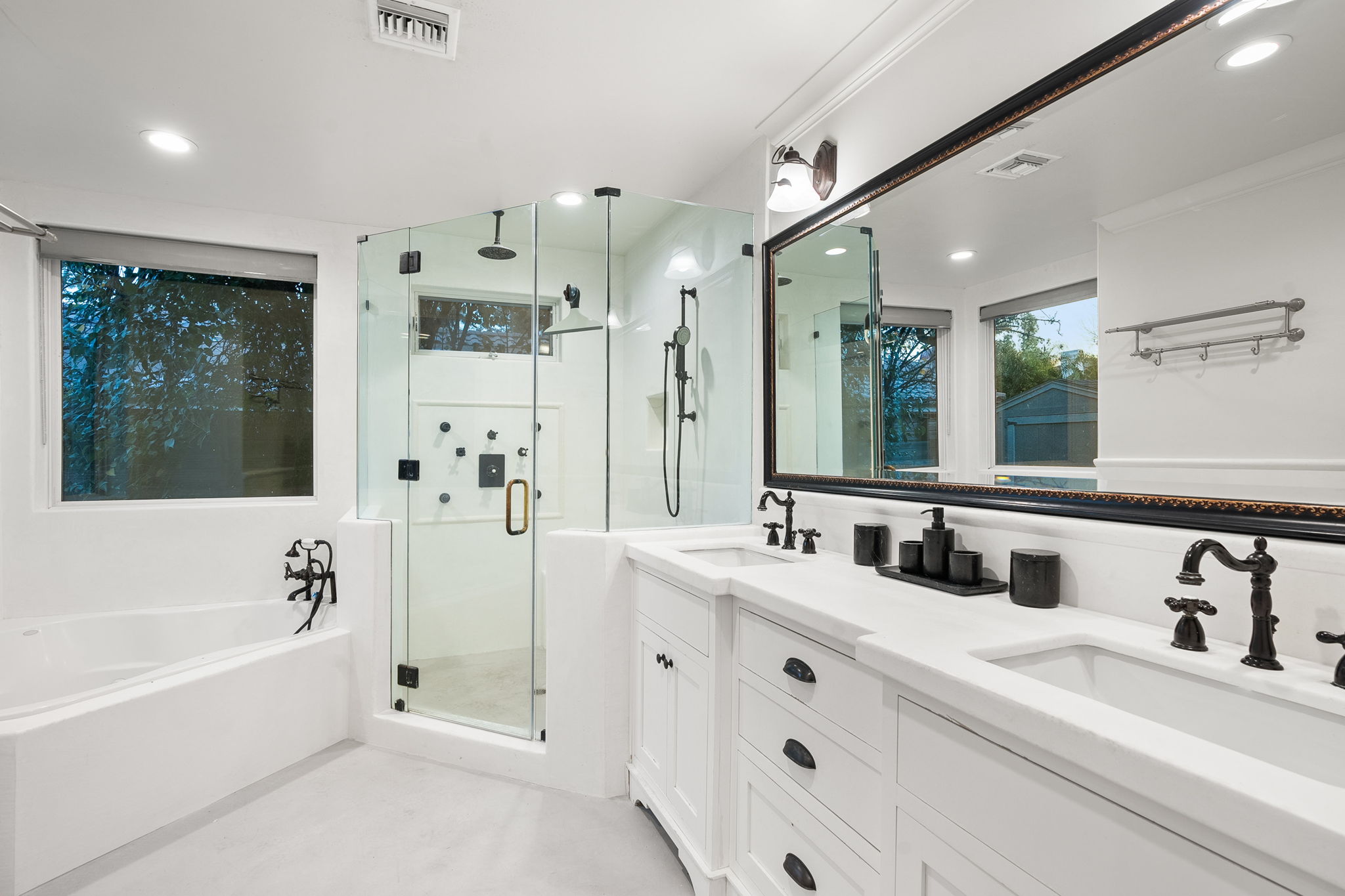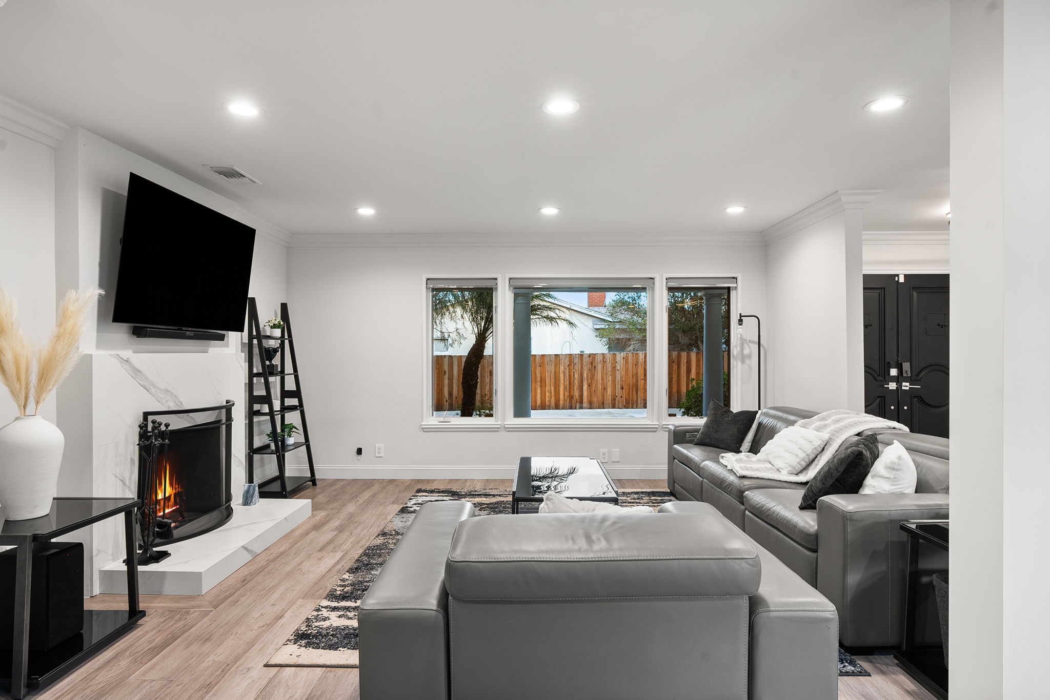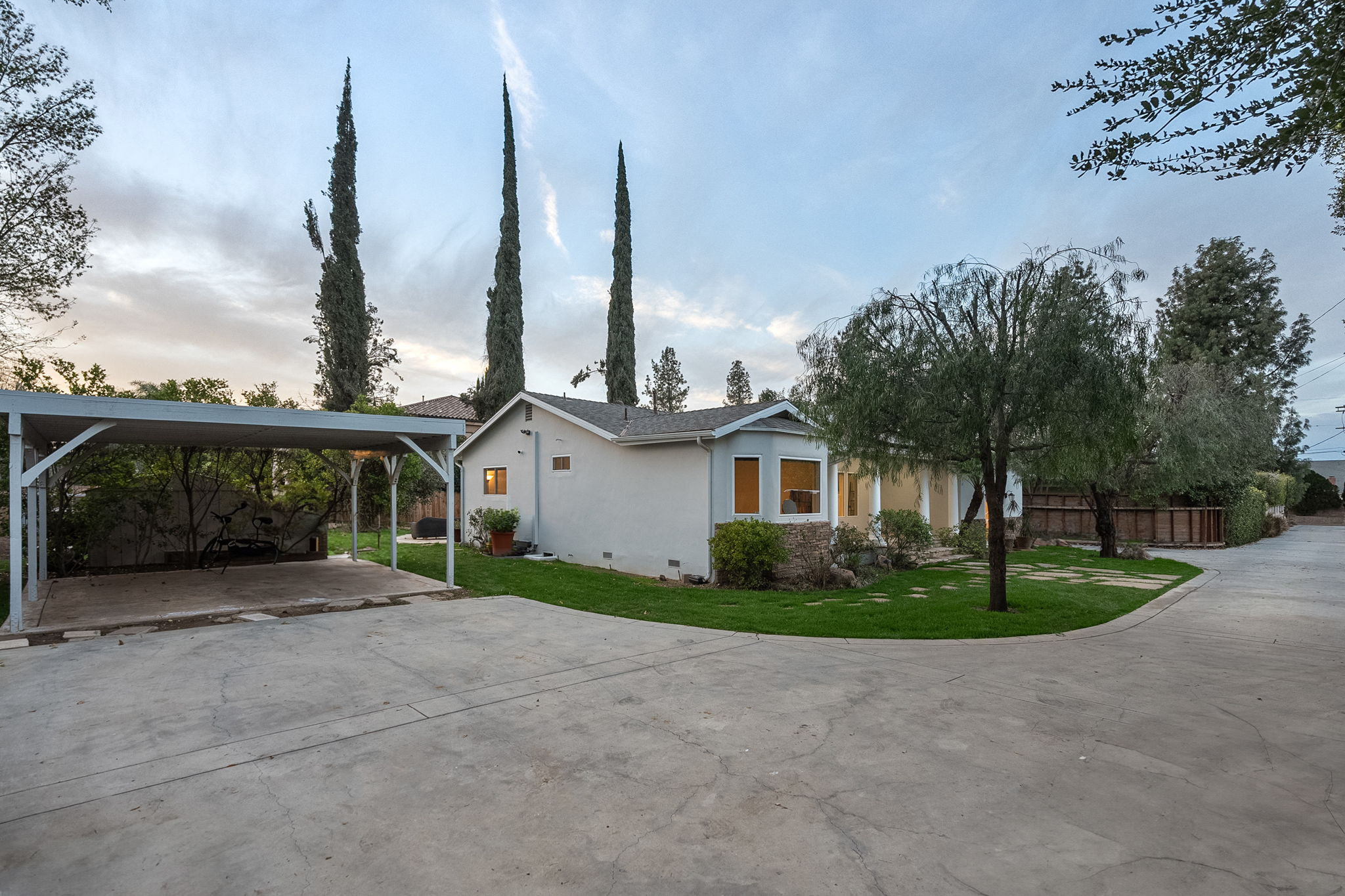 Welcome to this stunningly remodeled home, nestled in the heart of Woodland Hills behind private gates on a sprawling .36-acre flat lot. Designed for both elegance and luxury, this 5-bedroom, 3-bathroom residence spans 2,762 sq. ft. of beautifully curated living space. A long private driveway leads to this secluded retreat, offering a sense of security and tranquility. Inside, the home boasts an open-concept layout with high-end finishes, a gourmet kitchen, and spacious living areas perfect for both relaxation and gathering. Large windows invite natural light, while French doors leading to the entertainer's yard creates an optimal indoor-outdoor flow and enhances the California lifestyle. With ample space for outdoor enjoyment whether it's hosting gatherings, creating a lush garden oasis, or lounging by the sparkling pool this home is a rare gem in a coveted location. A perfect blend of sophistication and comfort, this property is a must-see for those seeking luxury and privacy in Woodland Hills.