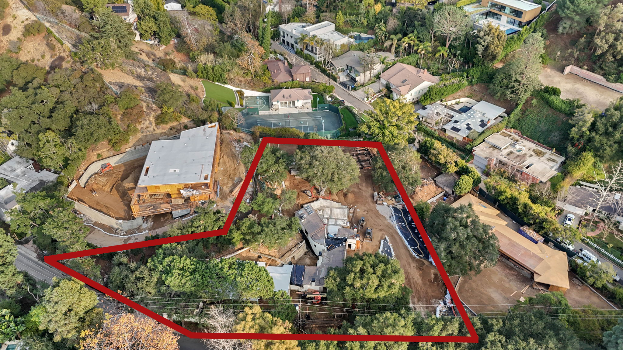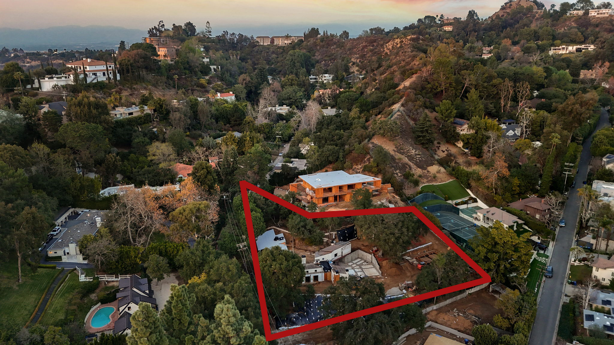 Tucked away above the prestigious enclave of Trousdale Estates, this extraordinary nearly one-acre development opportunity offers an unparalleled blend of privacy, prestige, and possibility. Steeped in Hollywood lore, the original 1927 residence was home to legendary figures including Katherine Hepburn and Boris Karloff, and is now poised for a breathtaking transformation. Permits have been pulled and construction has already begun on a masterfully reimagined estate with approved plans for a grand 9,000+ square-foot estate, seamlessly blending old-world charm with contemporary sophistication. The reimagined compound will feature a stately two-story main residence with a long private driveway, a well-appointed ADU, a dedicated pool house, and a resort-style pool, all set amidst a lush, expansive backyard designed for ultimate privacy and tranquility. Perfect for the discerning owner-user or investor, this is an unmissable opportunity to craft an extraordinary estate in one of Los Angeles' most coveted neighborhoods. A property of this caliber - rich in history, unrivaled in potential - comes along once in a lifetime.