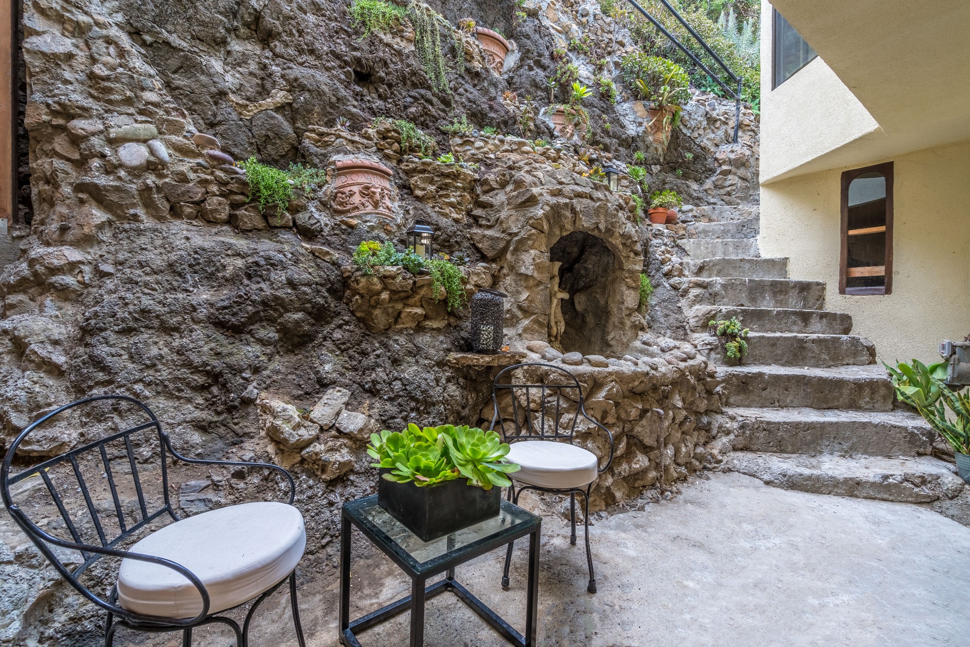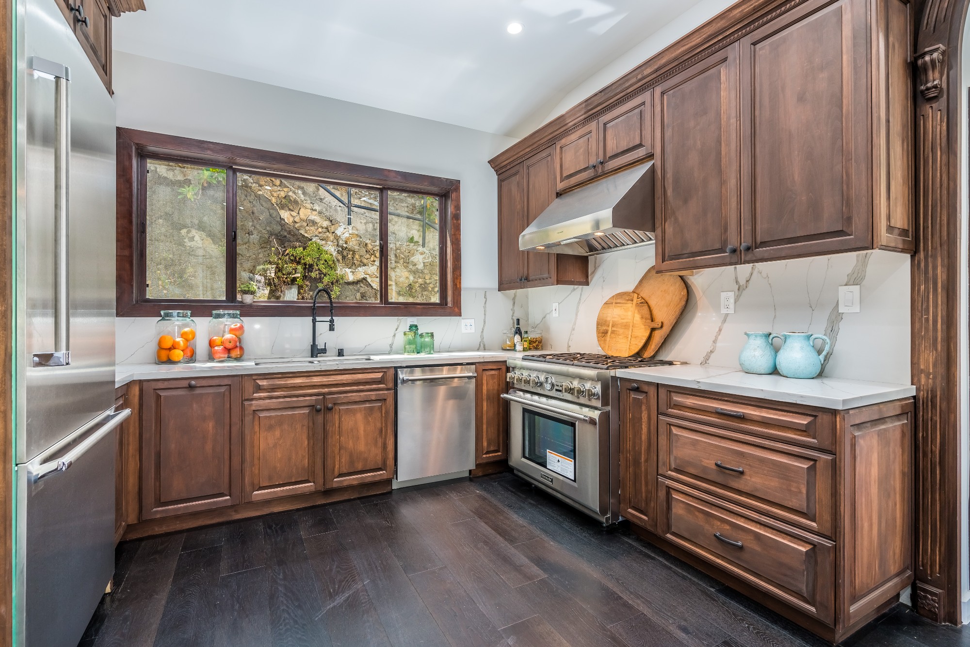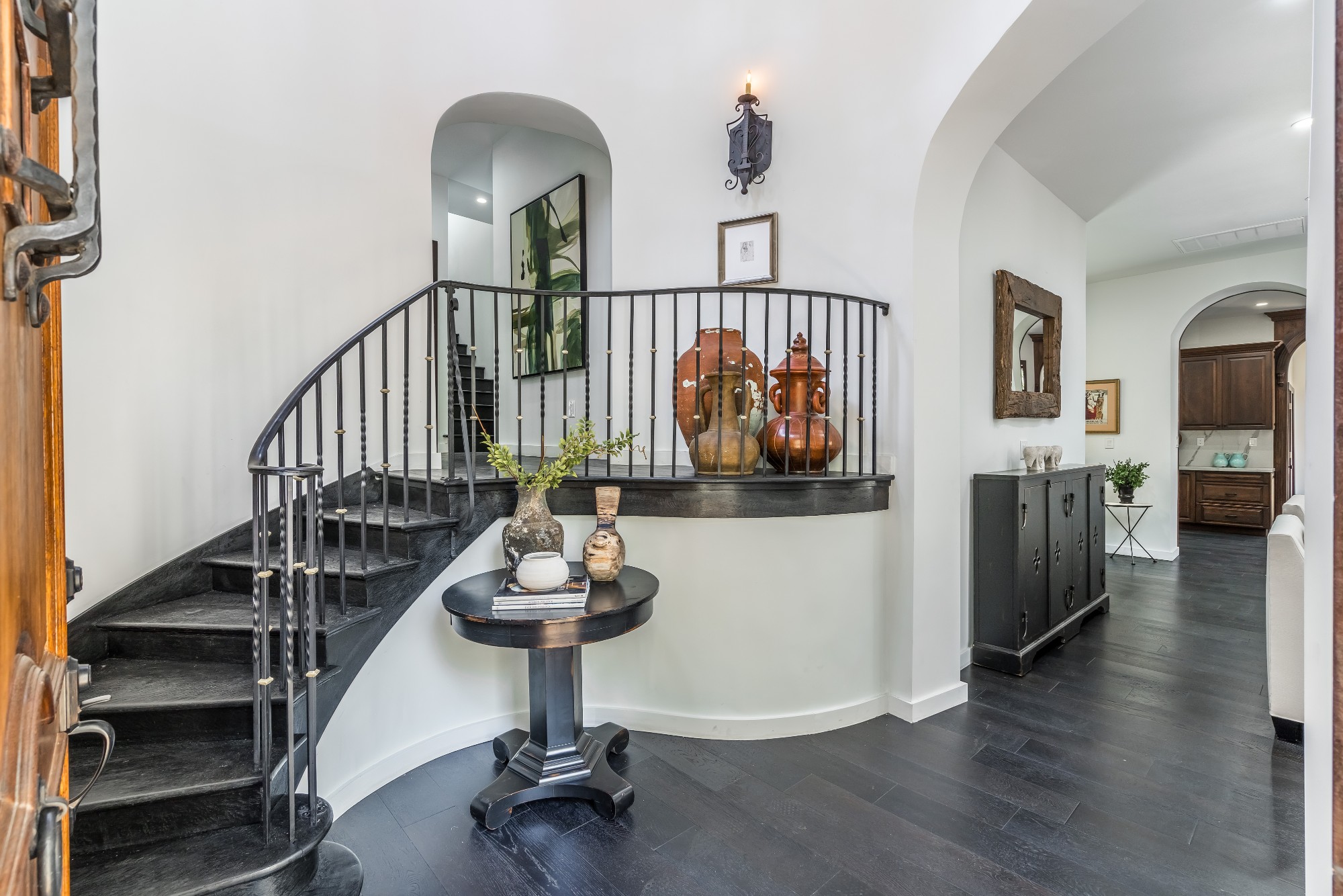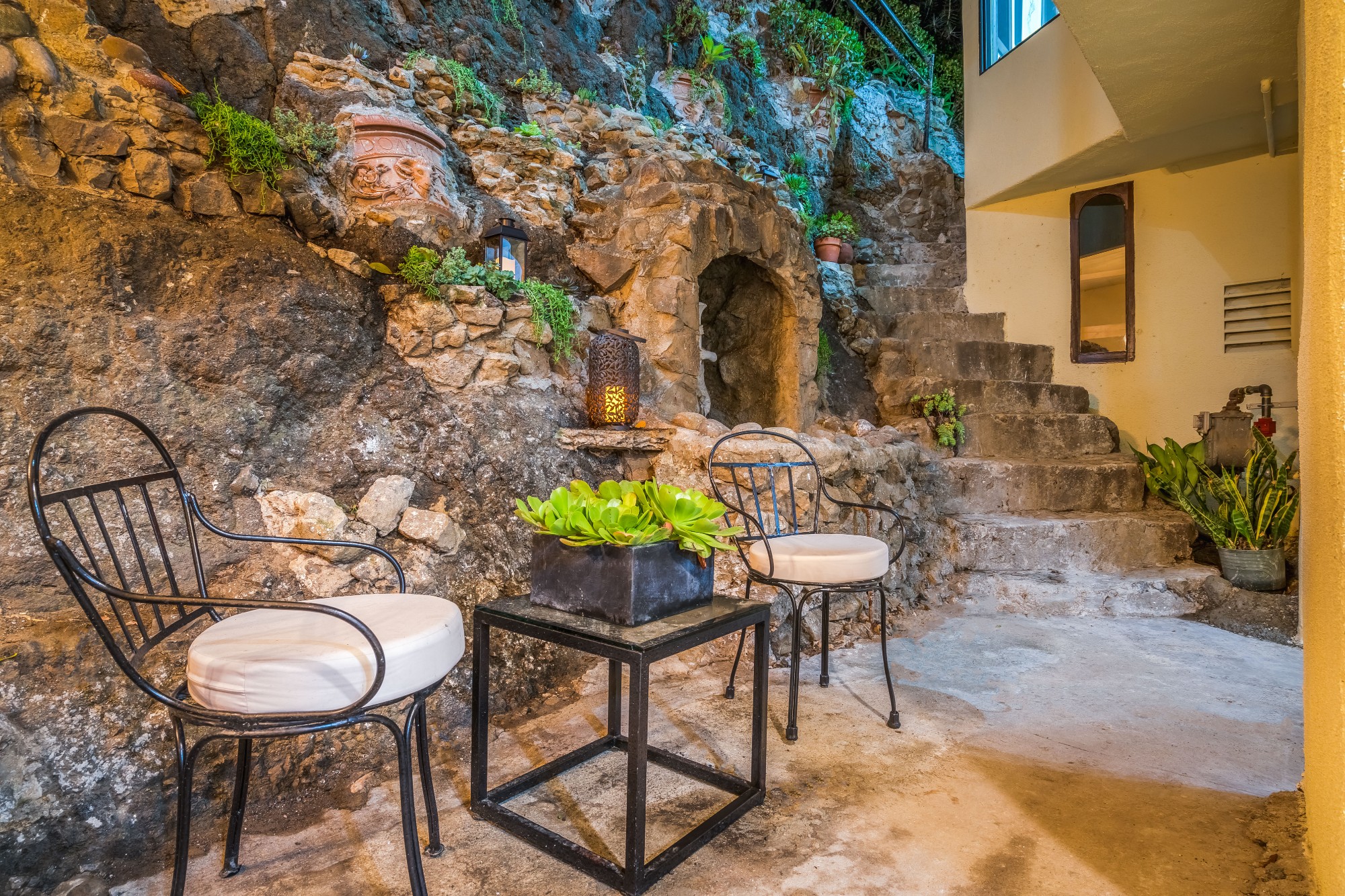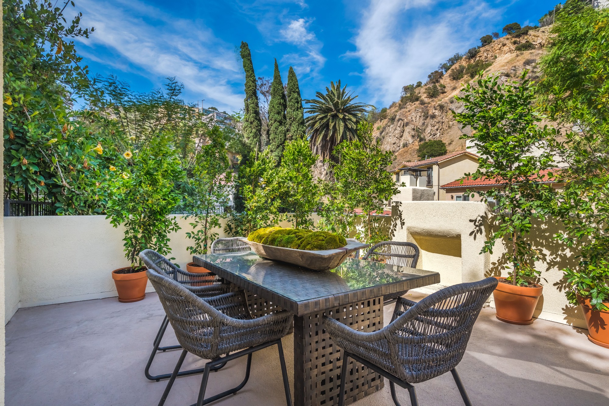 Exquisitely remodeled and restored Spanish Revival located in prime Hollywood Dell. No expense was spared and no detail missed. Enter into an expansive 20' turret entryway which leads to an oversized formal living area, complete with wood-burning fireplace, soaring ceilings, and french doors opening to breezy balconies. Archways with hand-carved wooden details lead to a gourmet chef's kitchen complete with stainless steel appliances, Marble countertops, and backsplash, and eating area with cozy fireplace. Three bedrooms with private balconies, including an owner's suite with walk-in closet and a luxurious, spa-like bathroom with carrera marble flooring, dual sinks, shower, and bathtub. Generously-sized downstairs living/media room with fireplace, perfect for entertaining. Tranquil rooftop terrace surrounded by mature greenery and immaculate landscaping. Stunning backyard with rock-wall vertical garden, fountain, and private grotto nestled into the hillside. 2-car garage with additional parking.